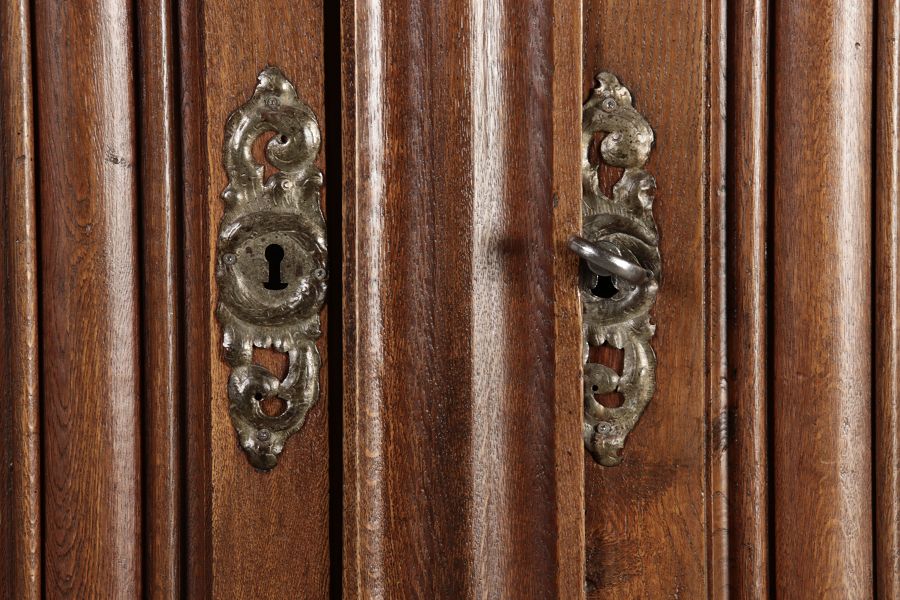 Frankfurter Barock Wellenschrank Eiche massiv aus dem 18 Jh. Der Schrank