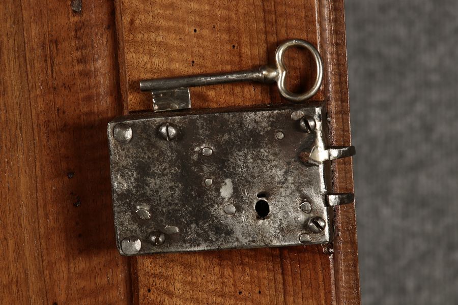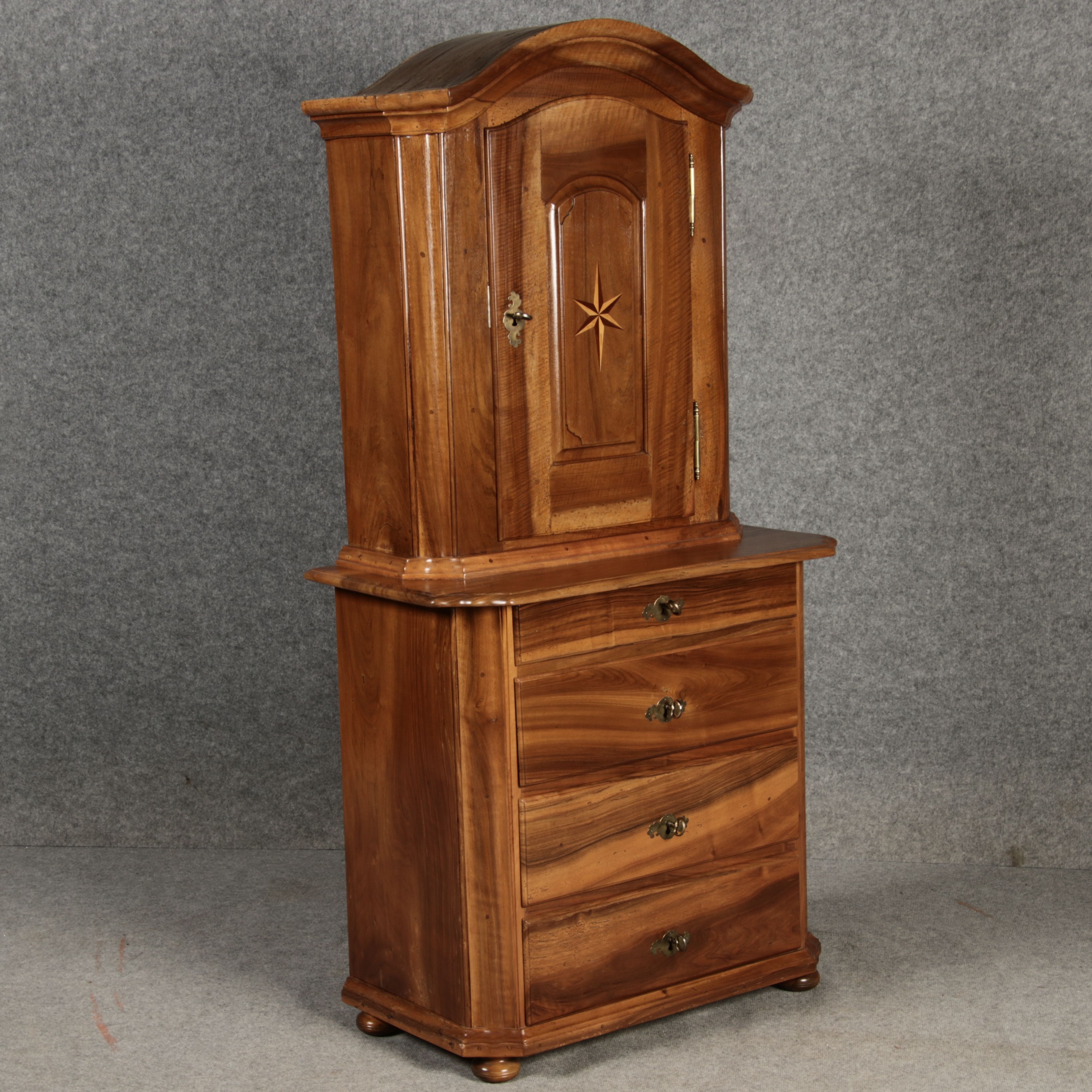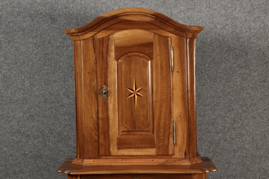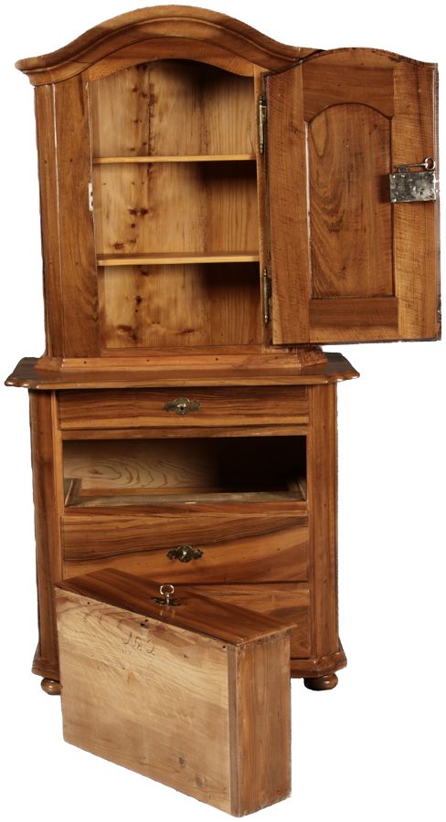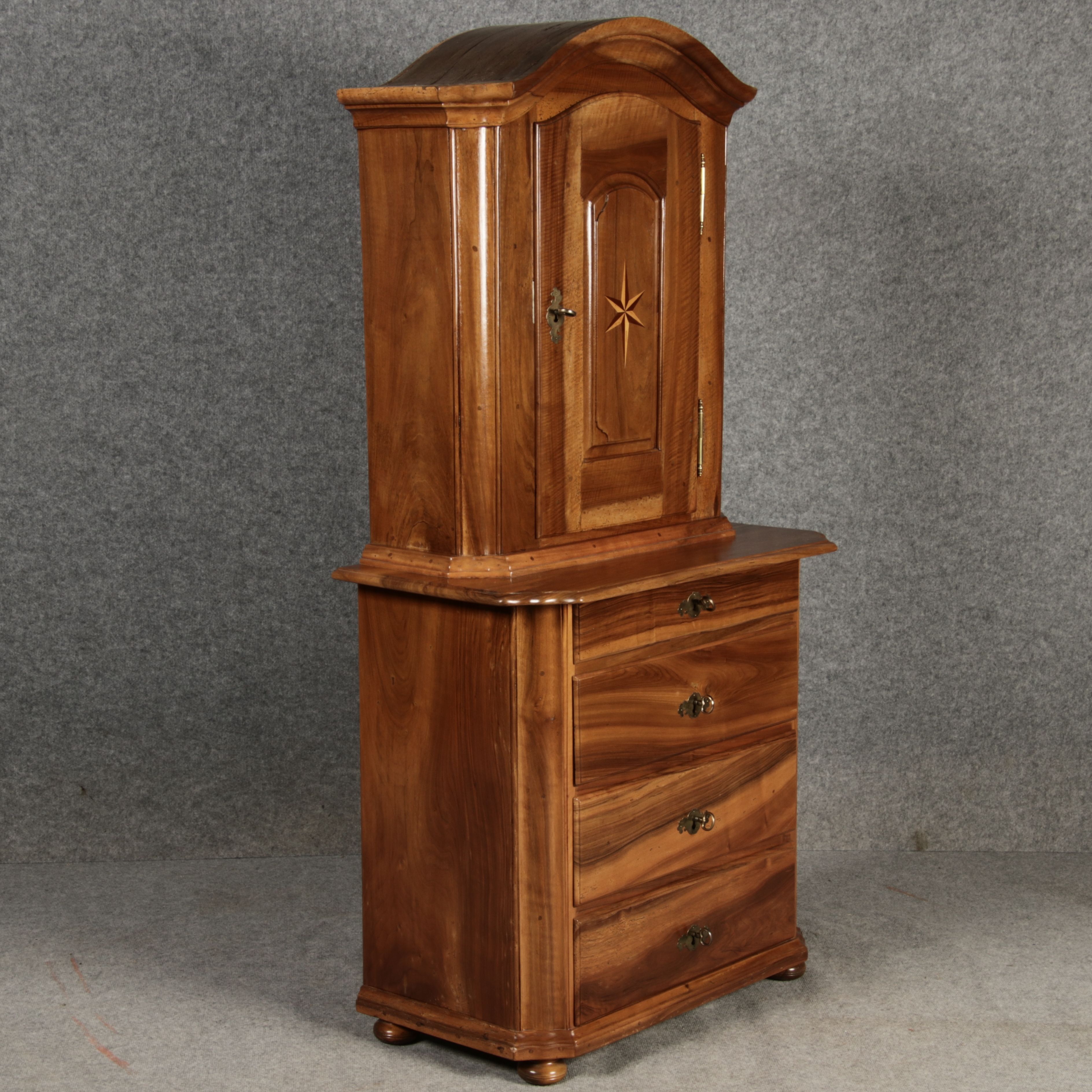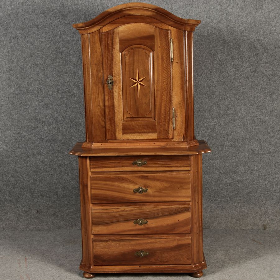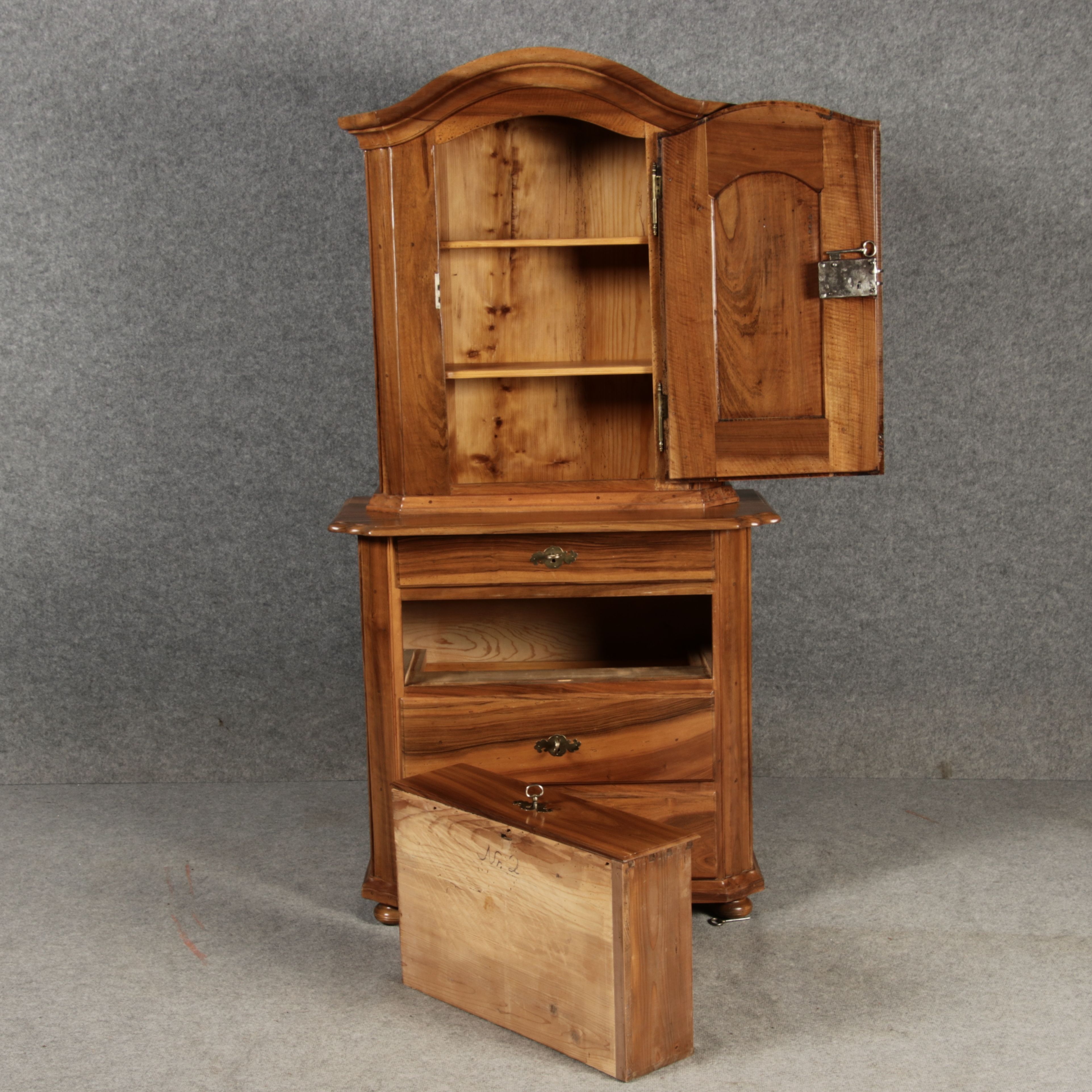 | Antiker schmaler Aufsatzschrank 92 cm breit 18 Jh. Nussbaum massiv |