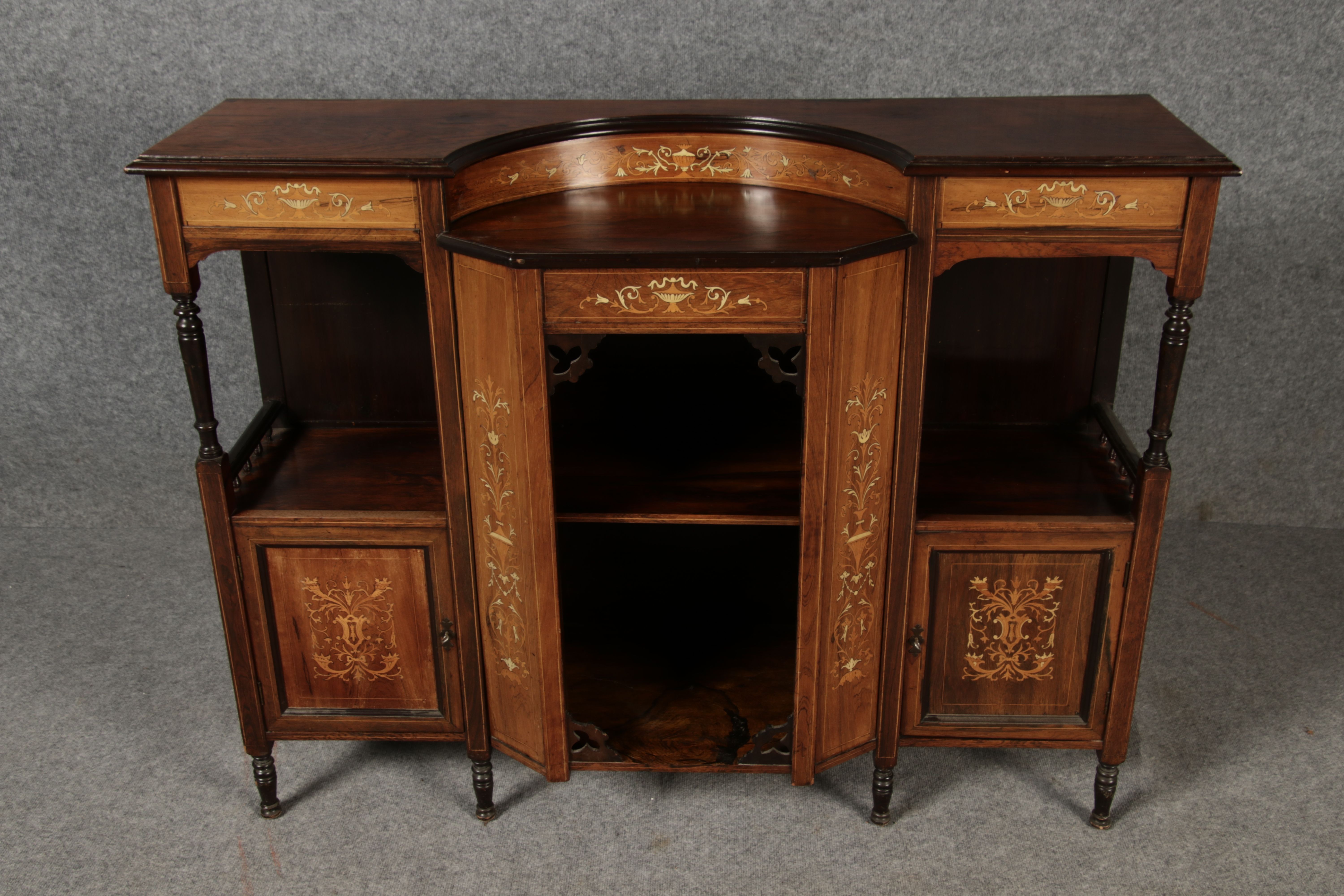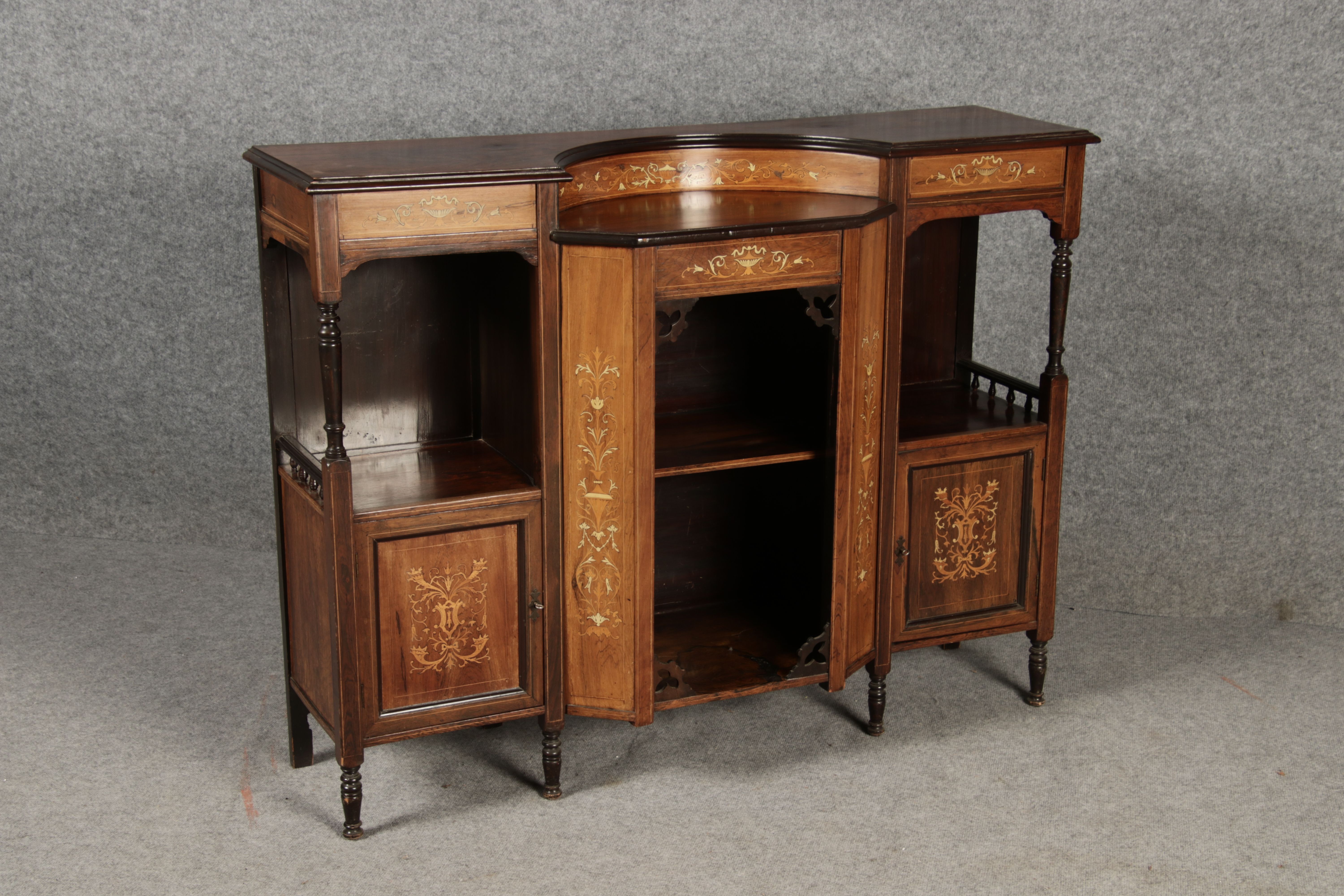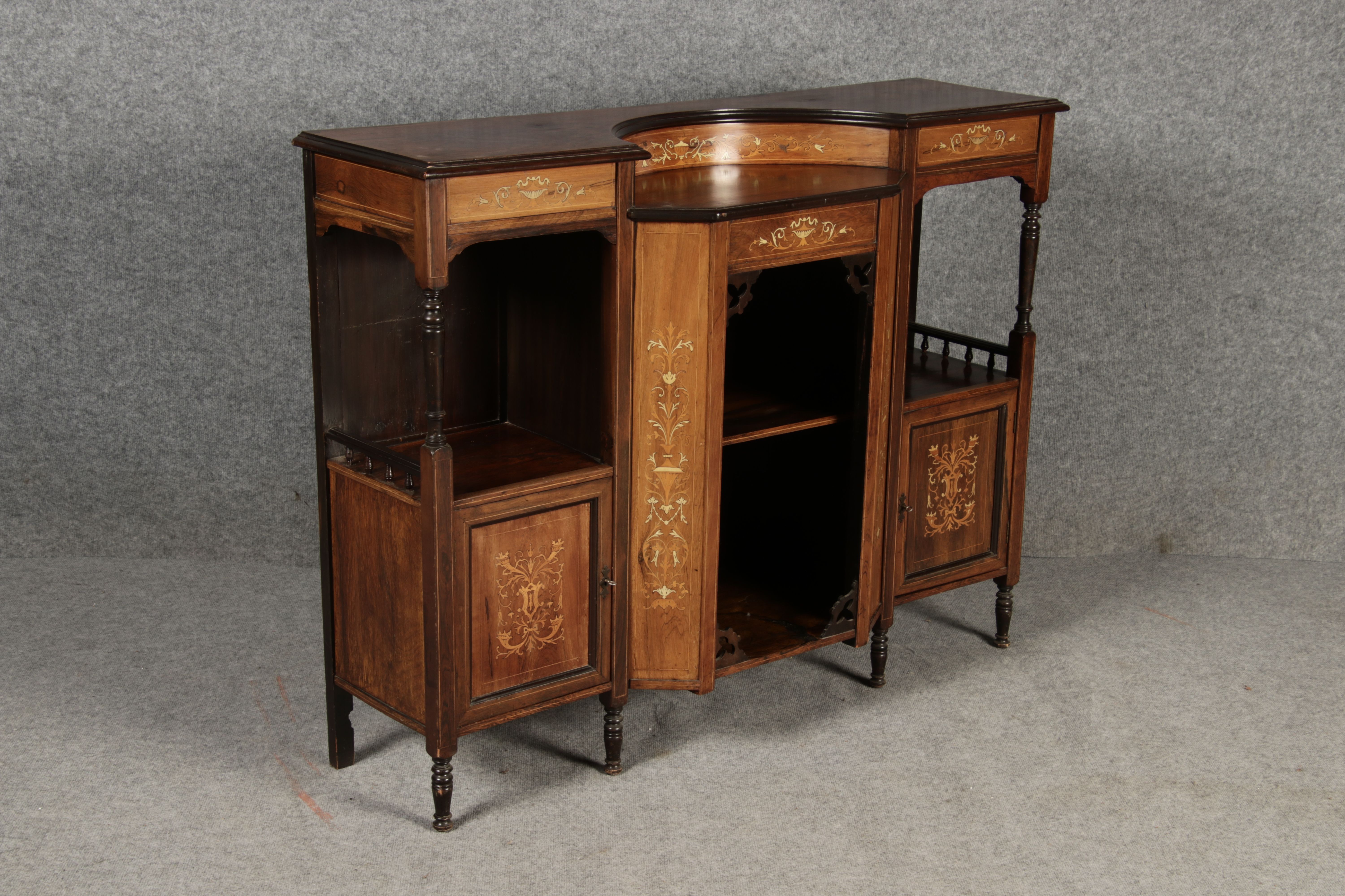 | Antiker Halbschrank, Anrichte um 1900 Palisander und andere Hölzer mit Einlegearbeiten |