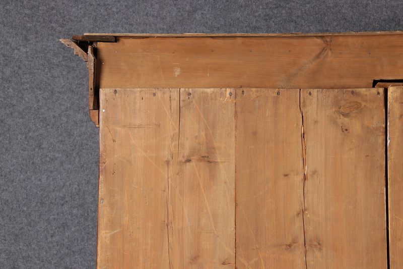 Masse/dimensions: Höhe/Height ca. 218,5 cm, Breite Korpus/Broad Boda ca. 167 cm, Breite Gesims/Broad cornice ca. 189 cm, Tiefe Korpus/Deep body ca. 57 cm, Tiefe Gesims/Deep cornice ca. 73 cm,