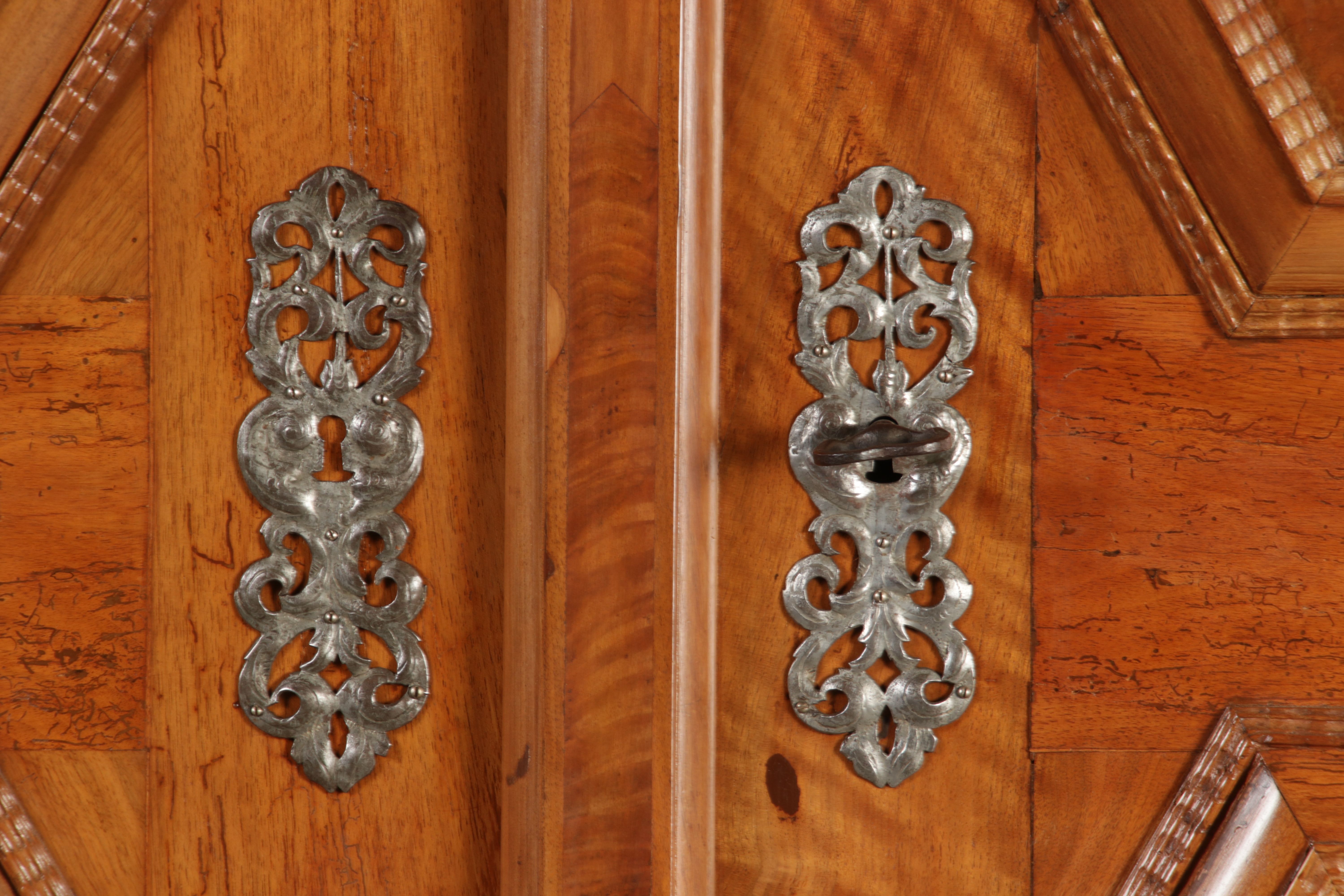Antiker spät Renaissance früh Barock Schrank um 1700 Nussbaum mit Korkenzieher Säulen |
