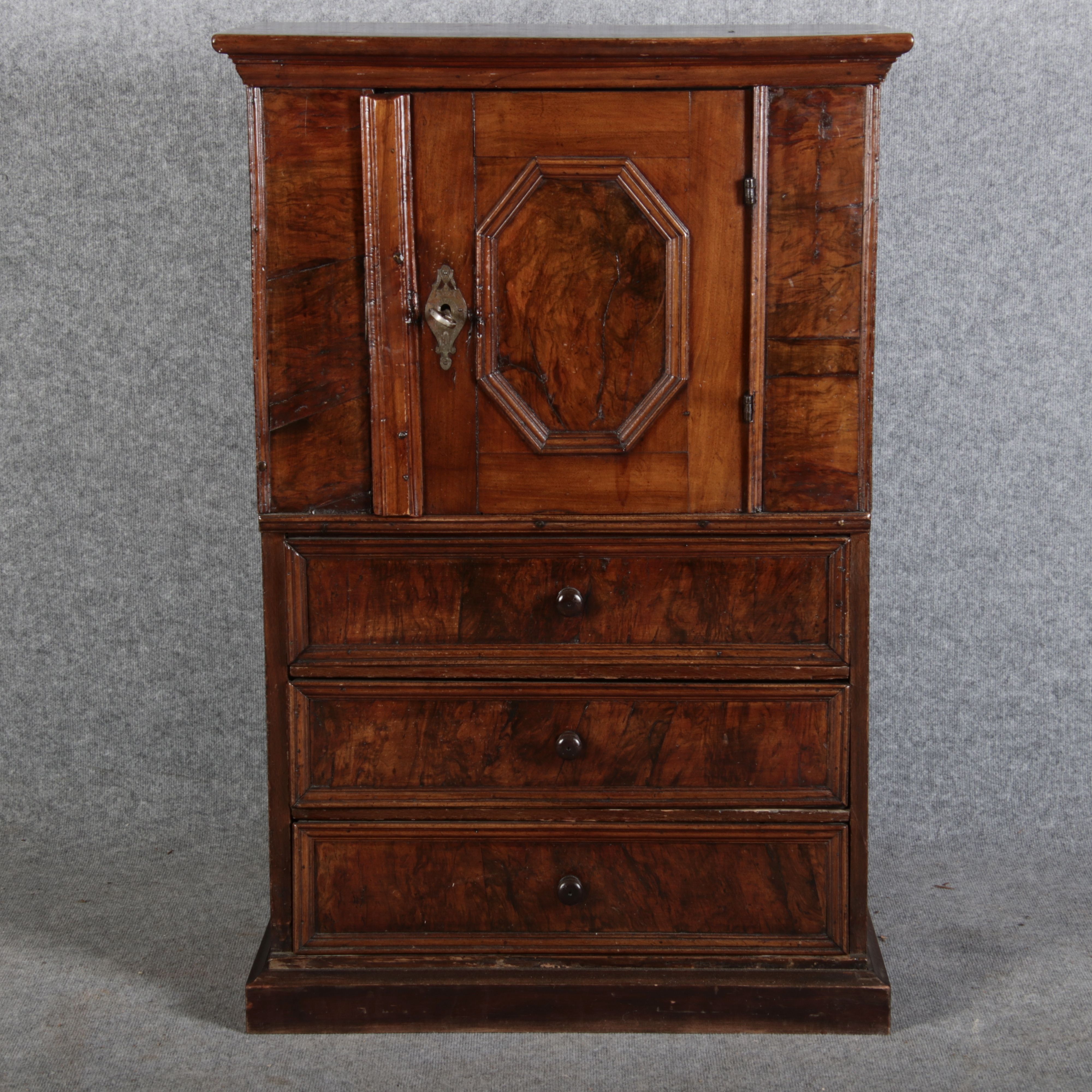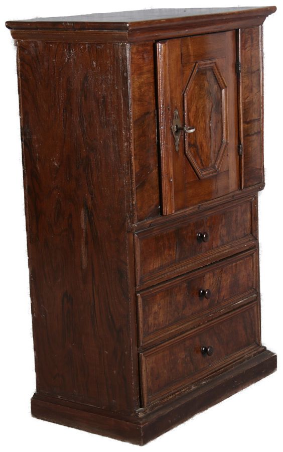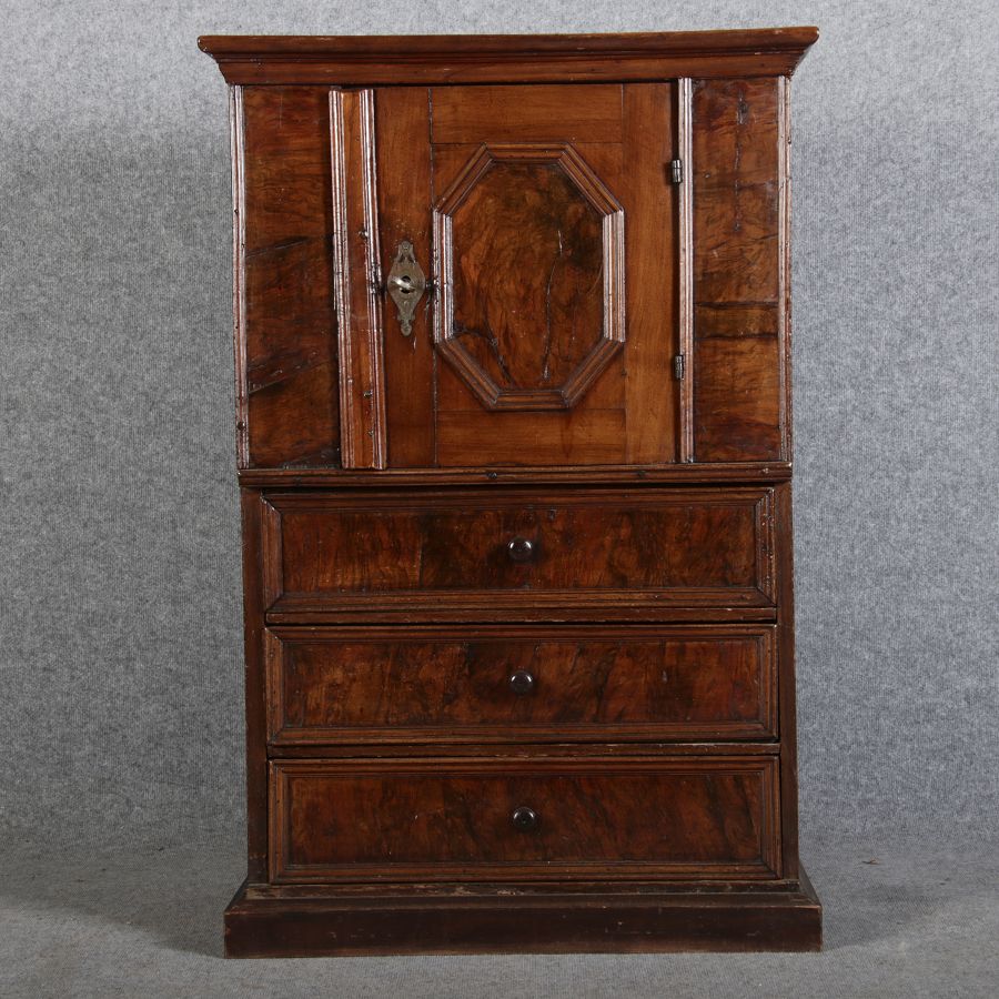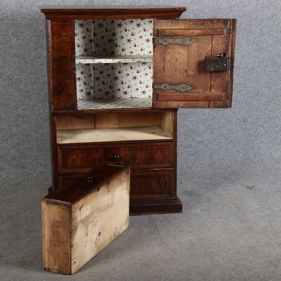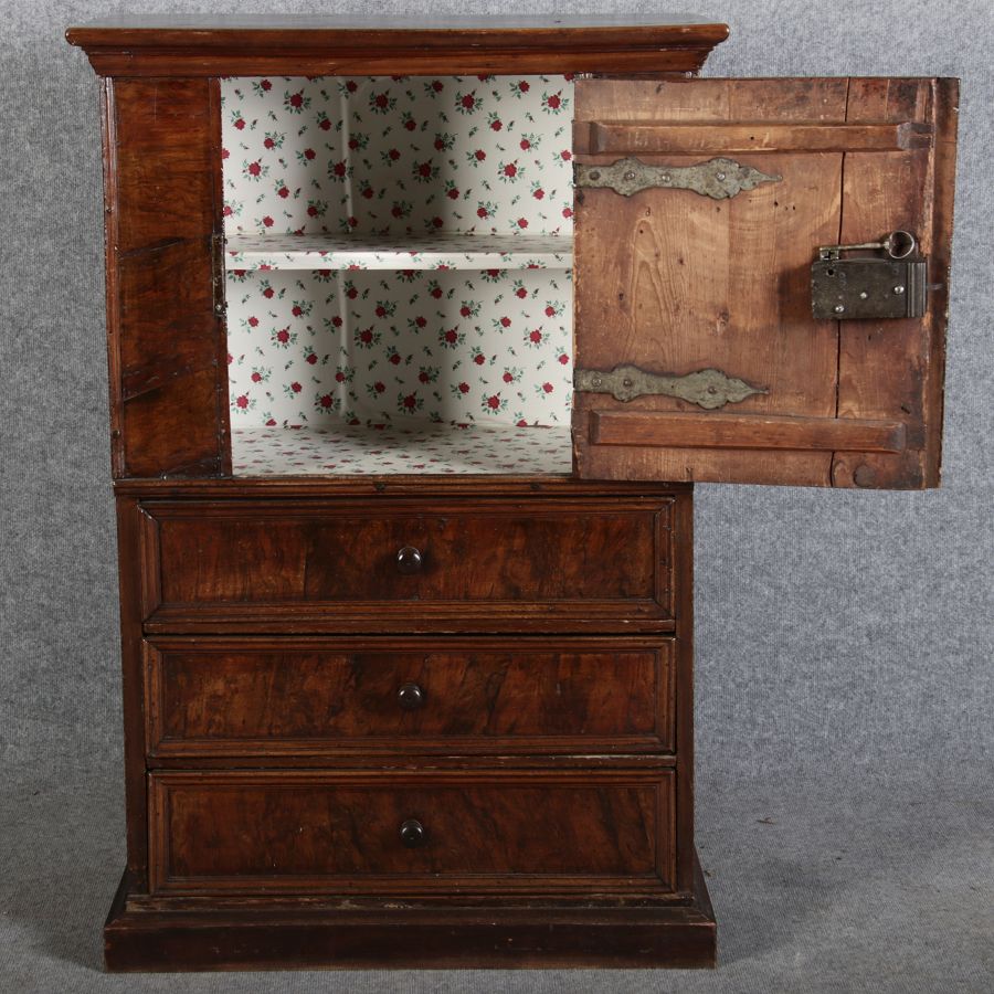 | Antiker Barock- Schrank Kommode Windellade Nussbaum 18 Jh. Eisenschloss |