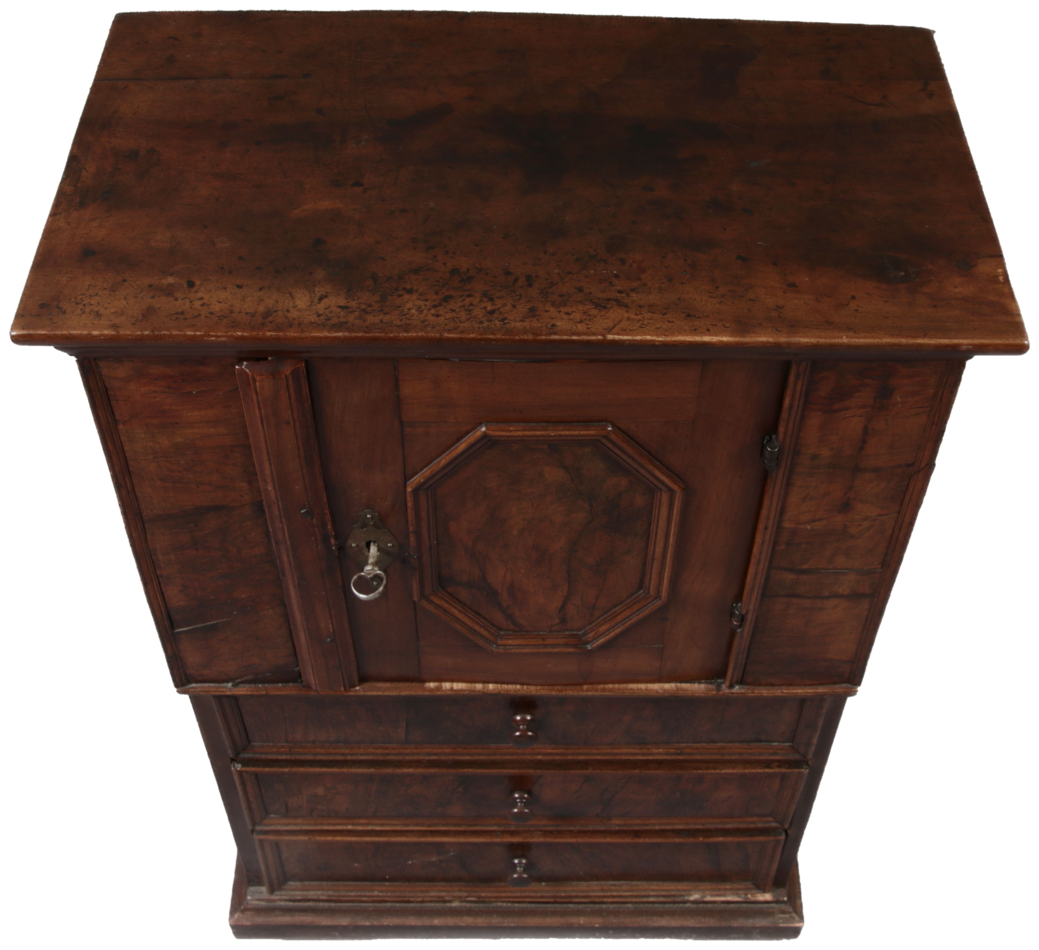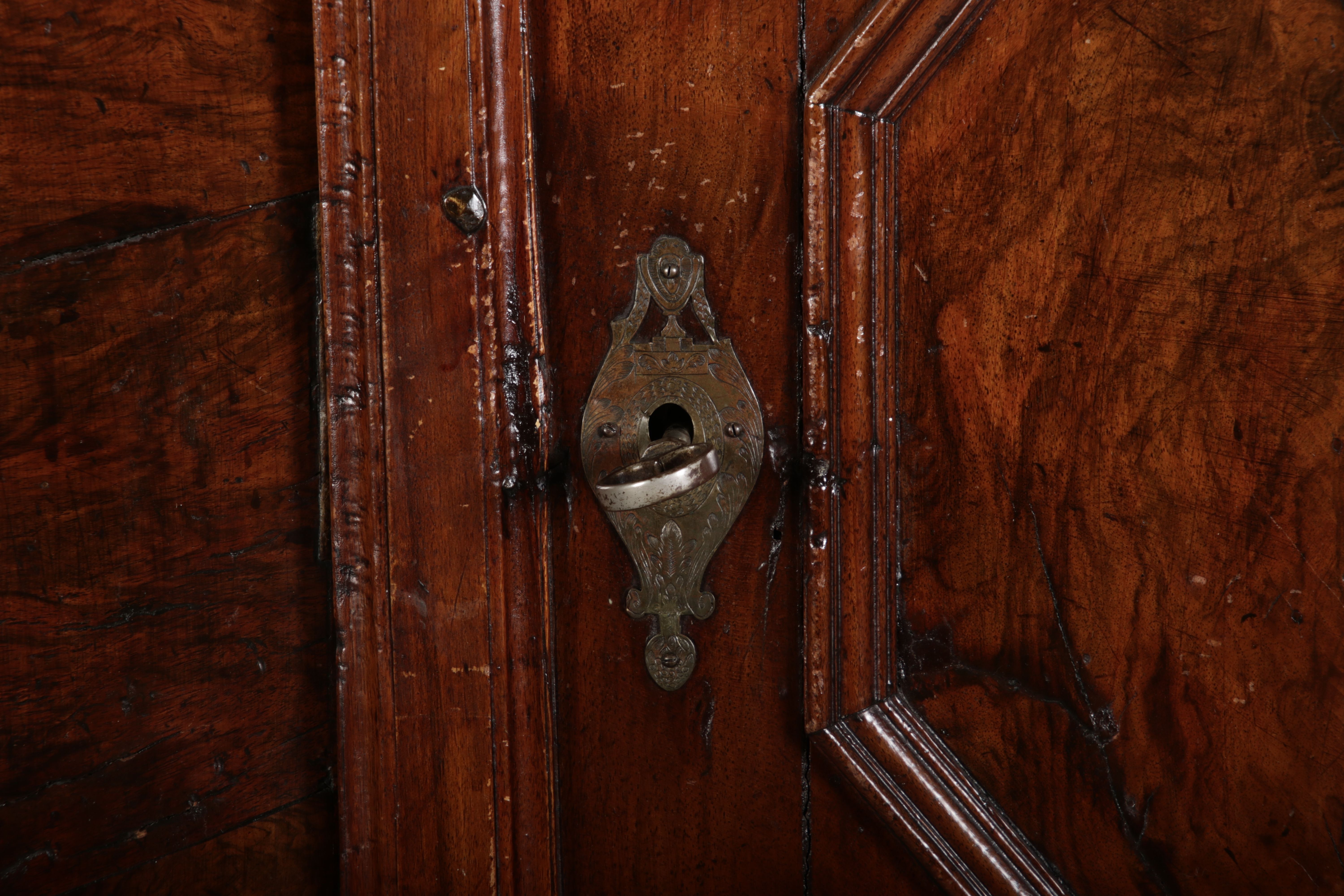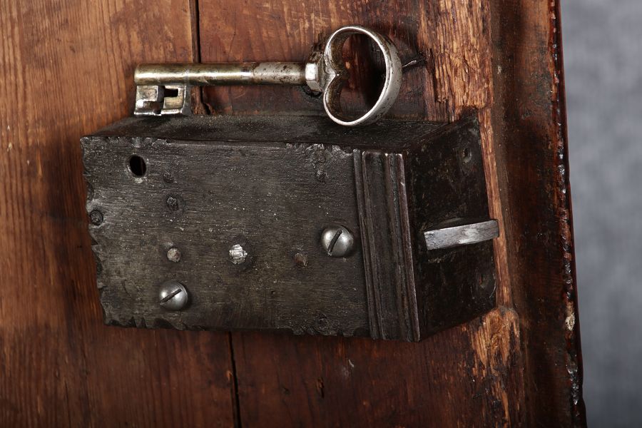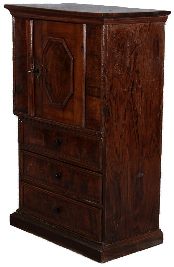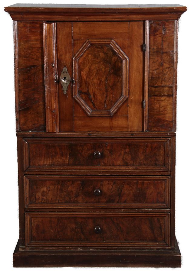 | Antiker Barock- Schrank Kommode Windellade Nussbaum 18 Jh. Eisenschloss |