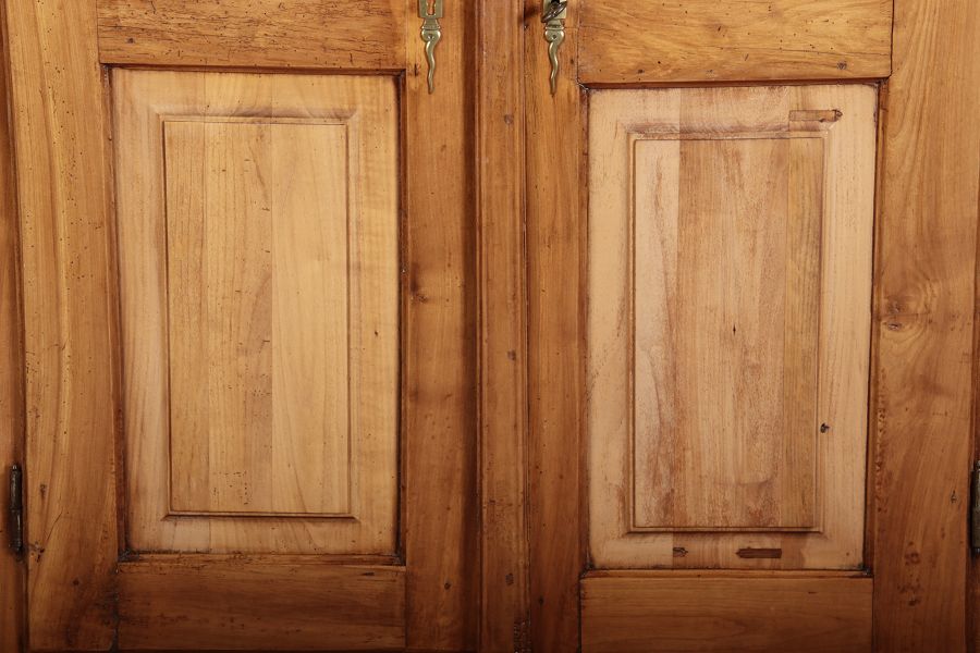 Konstruktion/construction: Der Schrank ist ein Spaltschrank und besteht aus vier Teilen, Kleinteilen und der Inneneinteilung