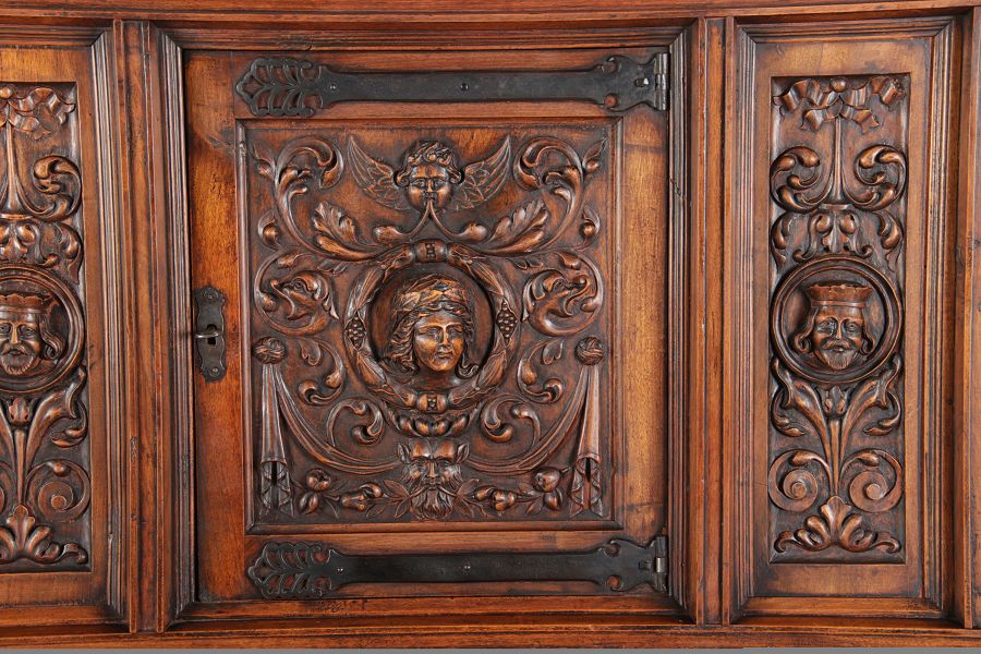 | Antiker Historismus Schrank mit Fratzen u. Löwen Schnitzereien im Renaissance Stil | ||||||||||||||||||||||||||||||||||||||||||||||||||||