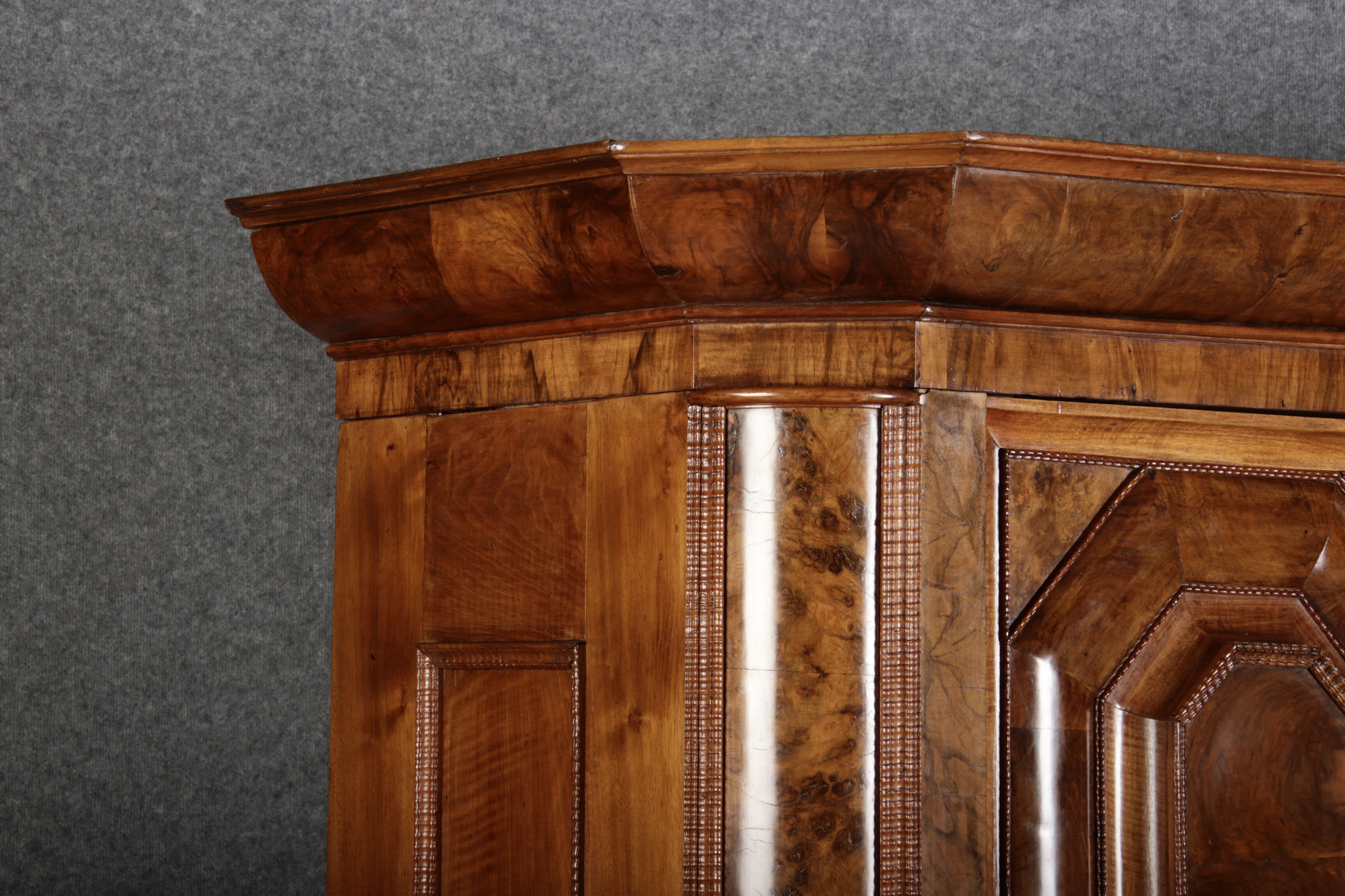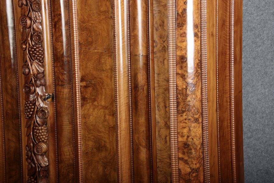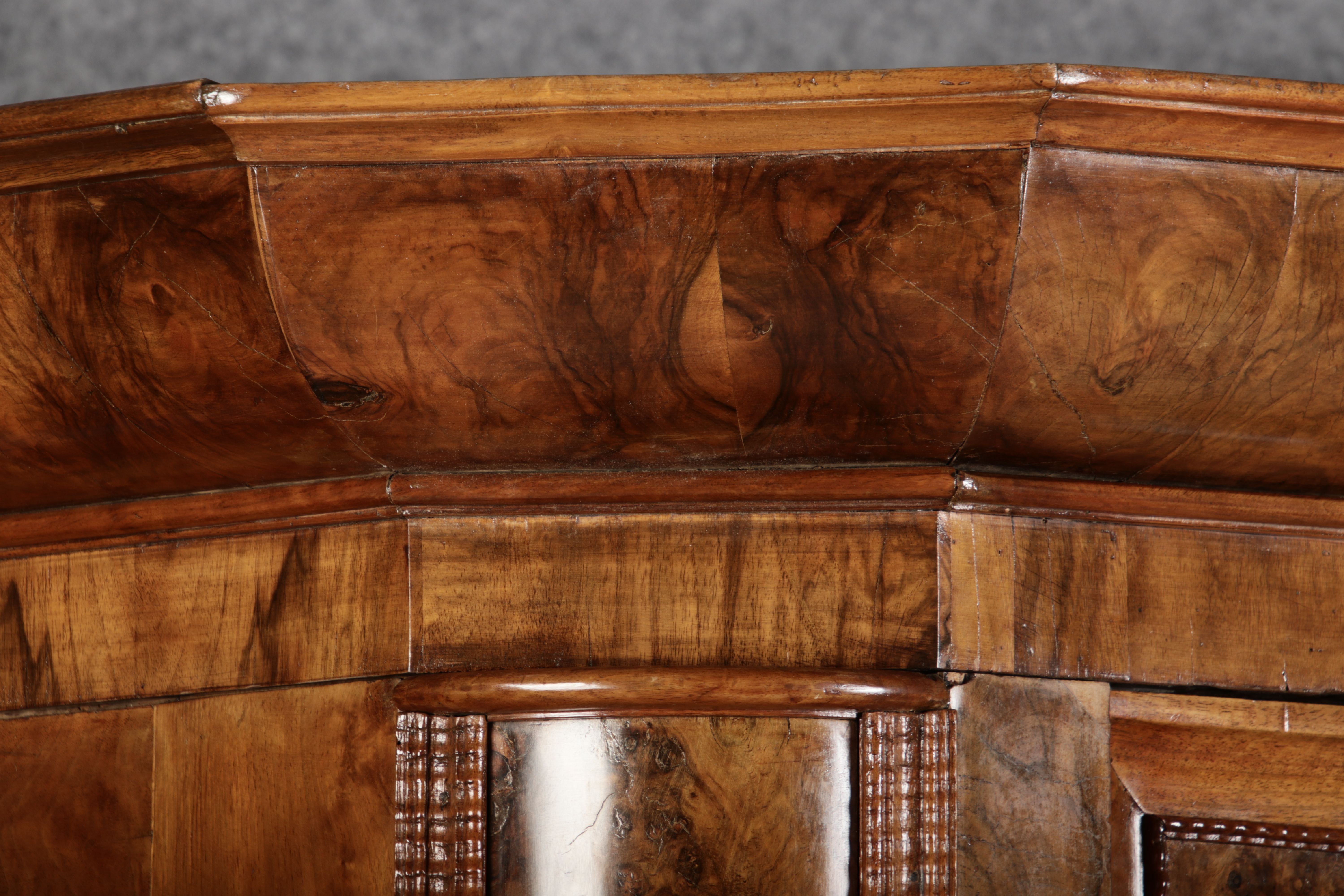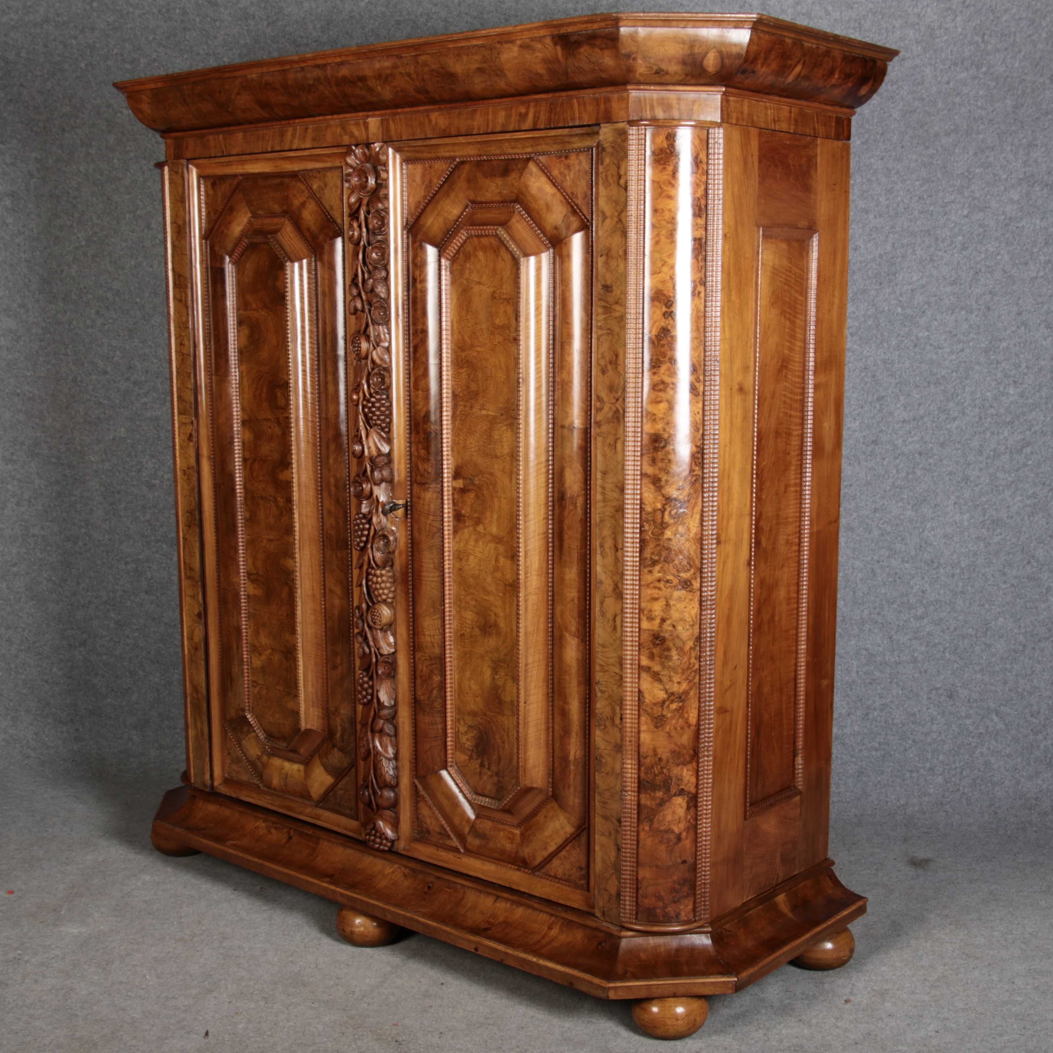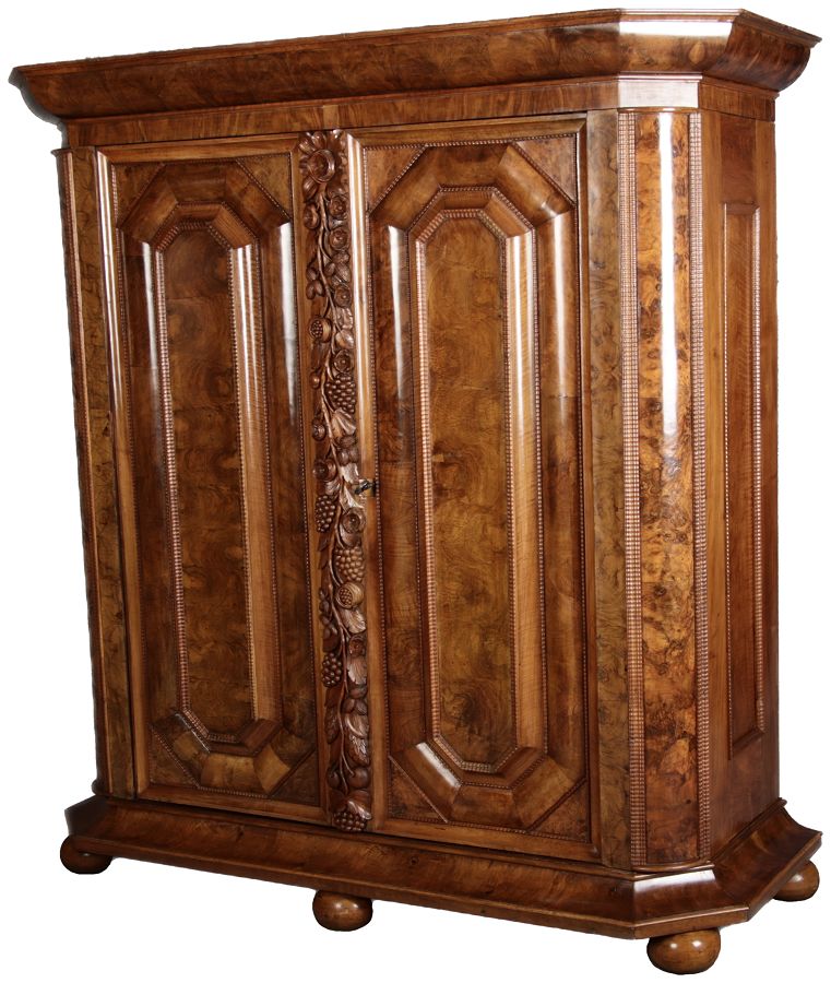 | Antiker Barockschrank um 1740-60 Nussbaum mit Trauben Schnitzereien |