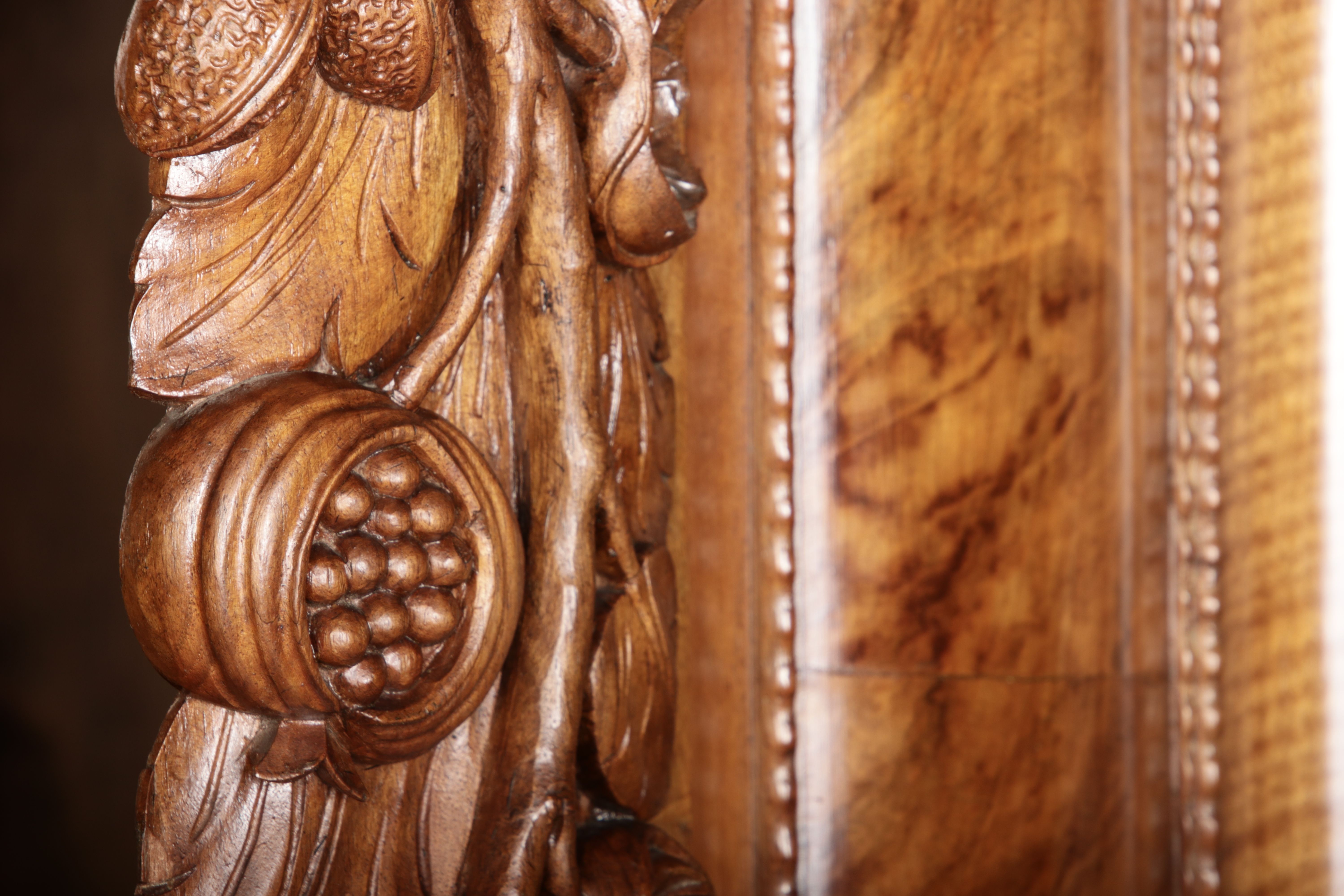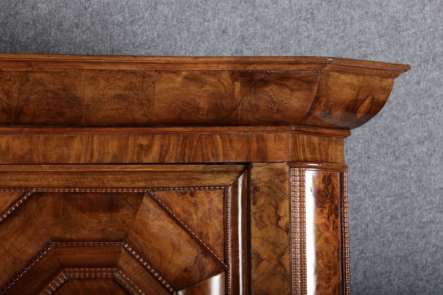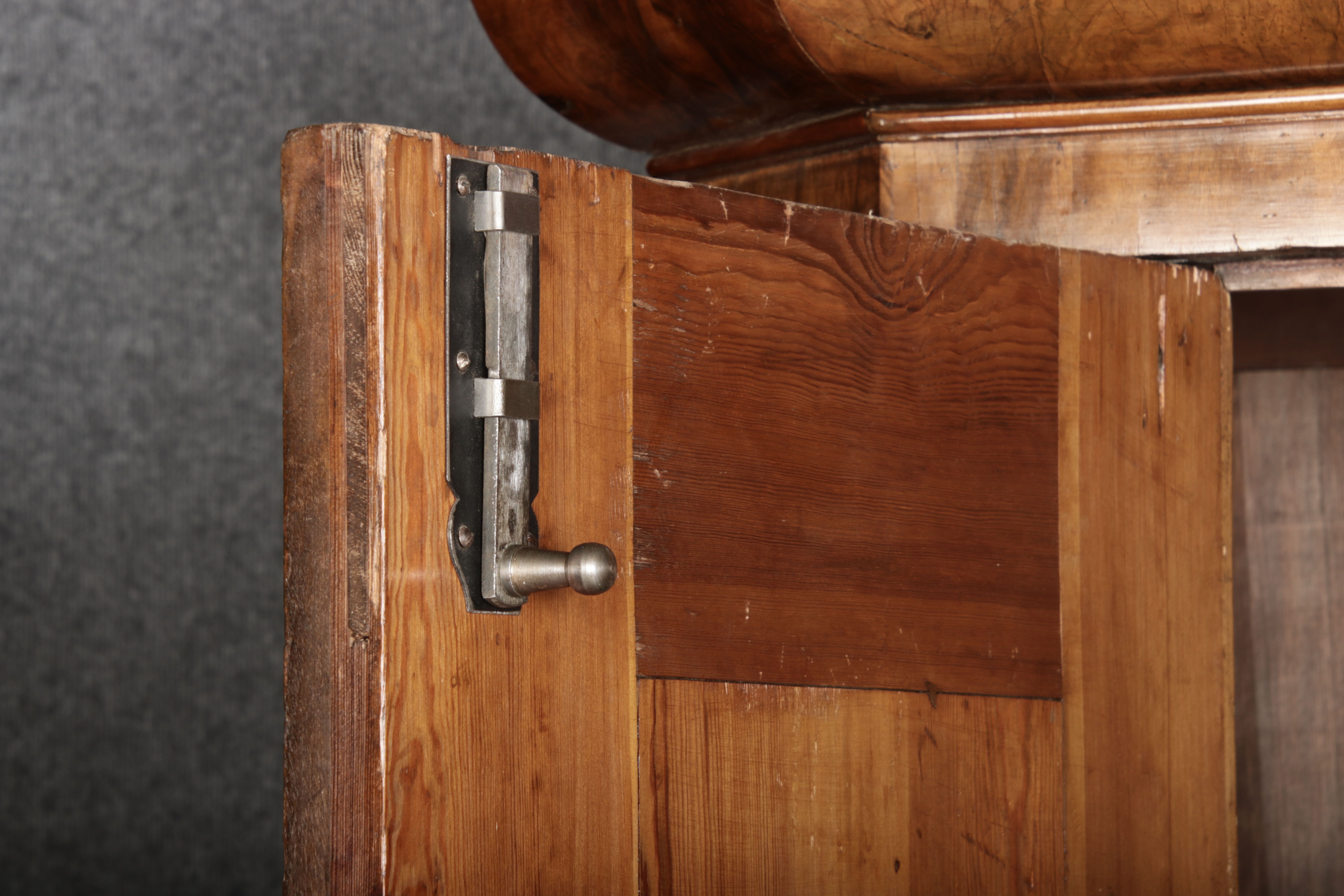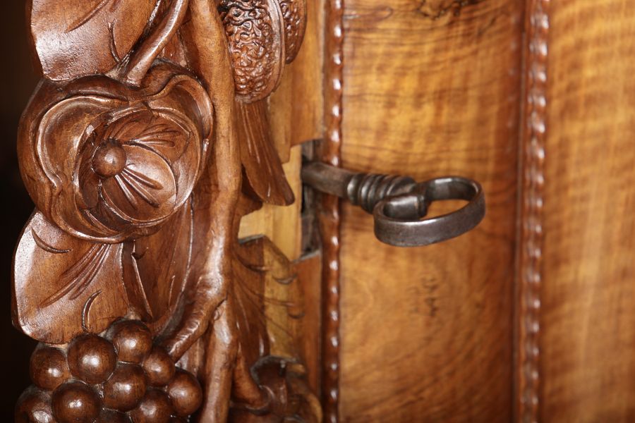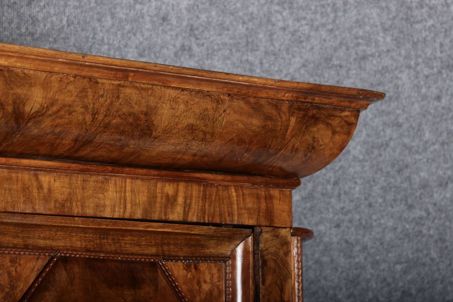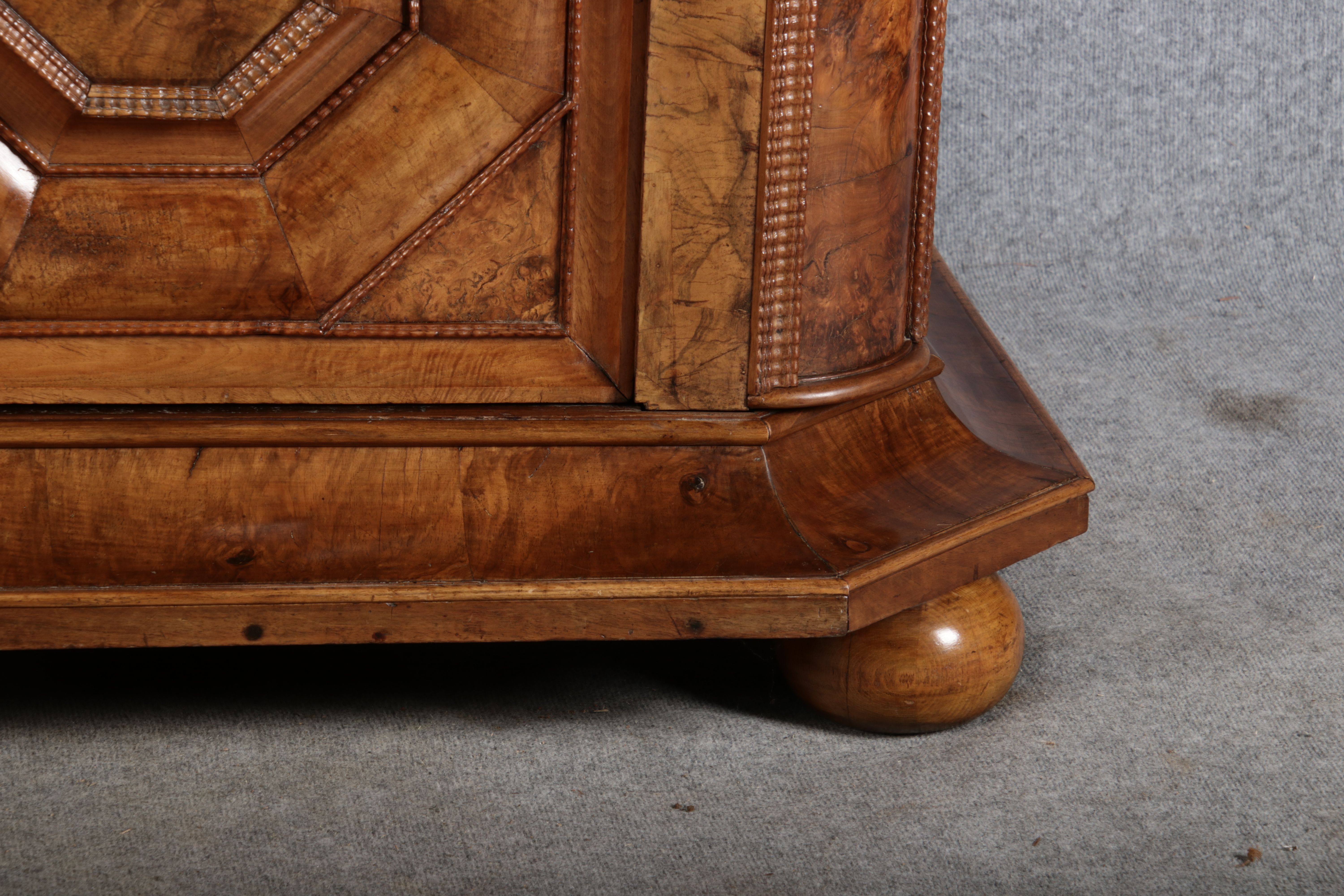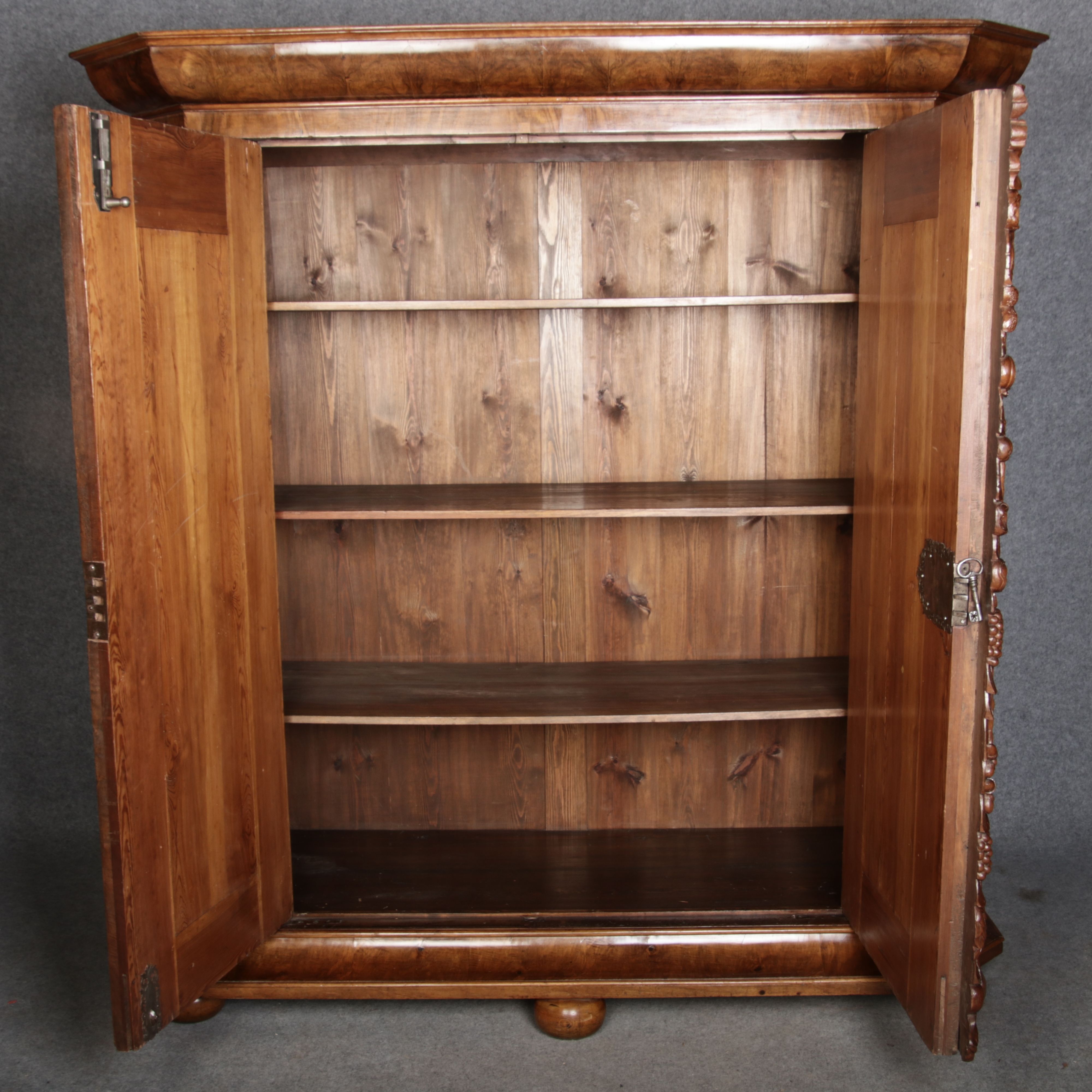 | Antiker Barockschrank um 1740-60 Nussbaum mit Trauben Schnitzereien |