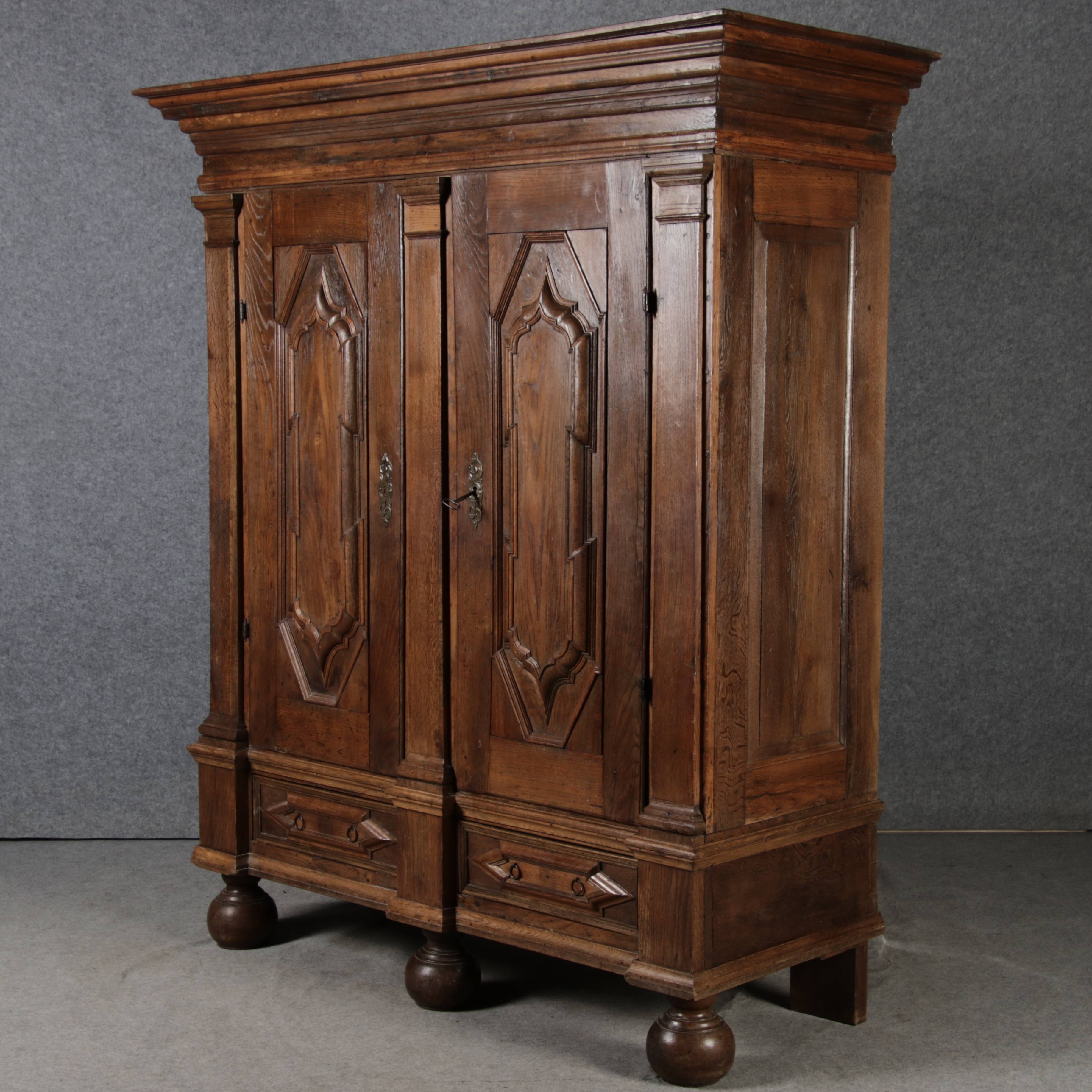 Antiker Barockschrank Ostfriesland mit Bastionsfüllungen erste Hälfte 18 Jh. um 1730, Eiche Massiv. |