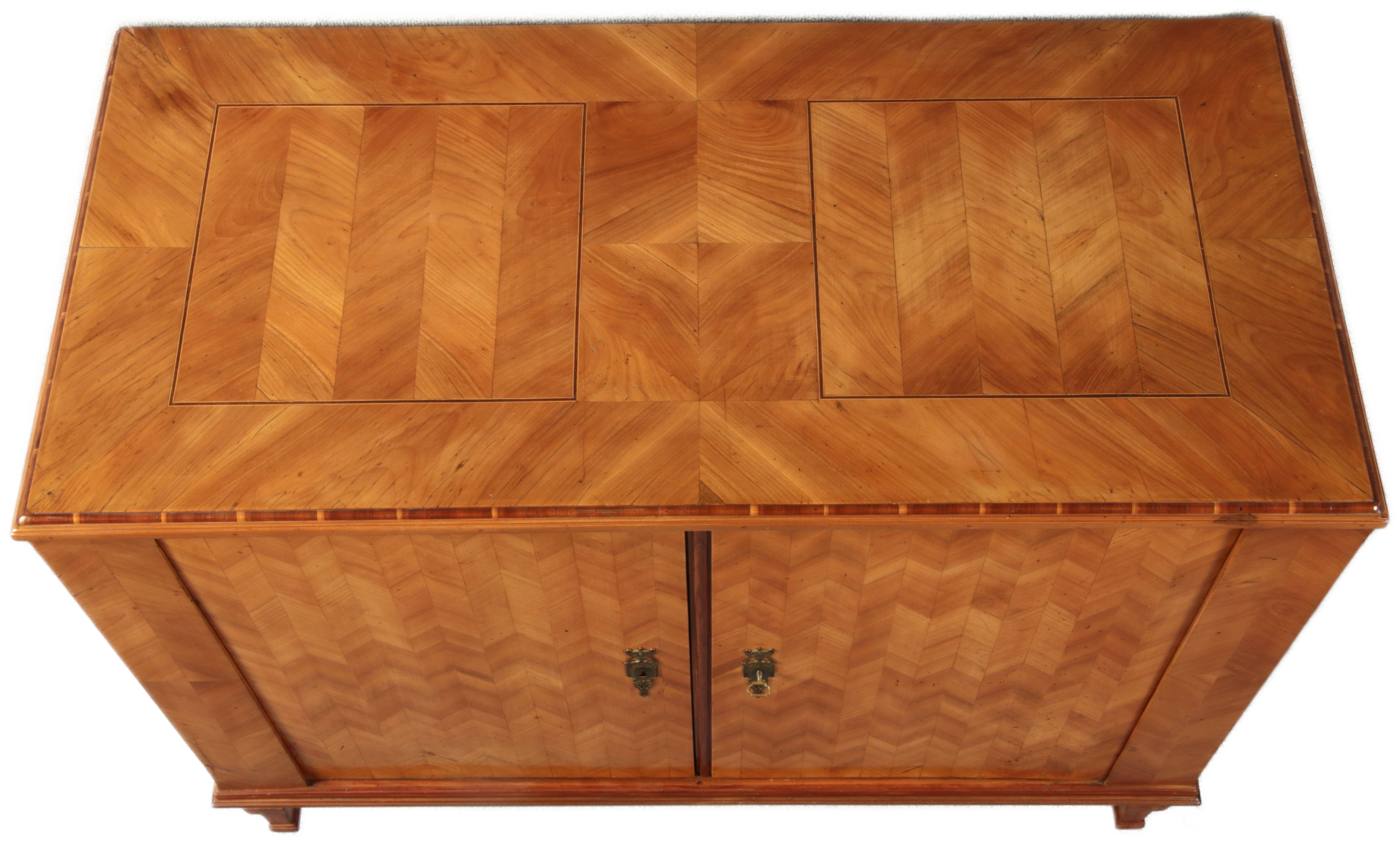 Antiker Barock Halb Schrank Anrichte Kirschbaum furniert im Fischgräten Muster um 1780 |