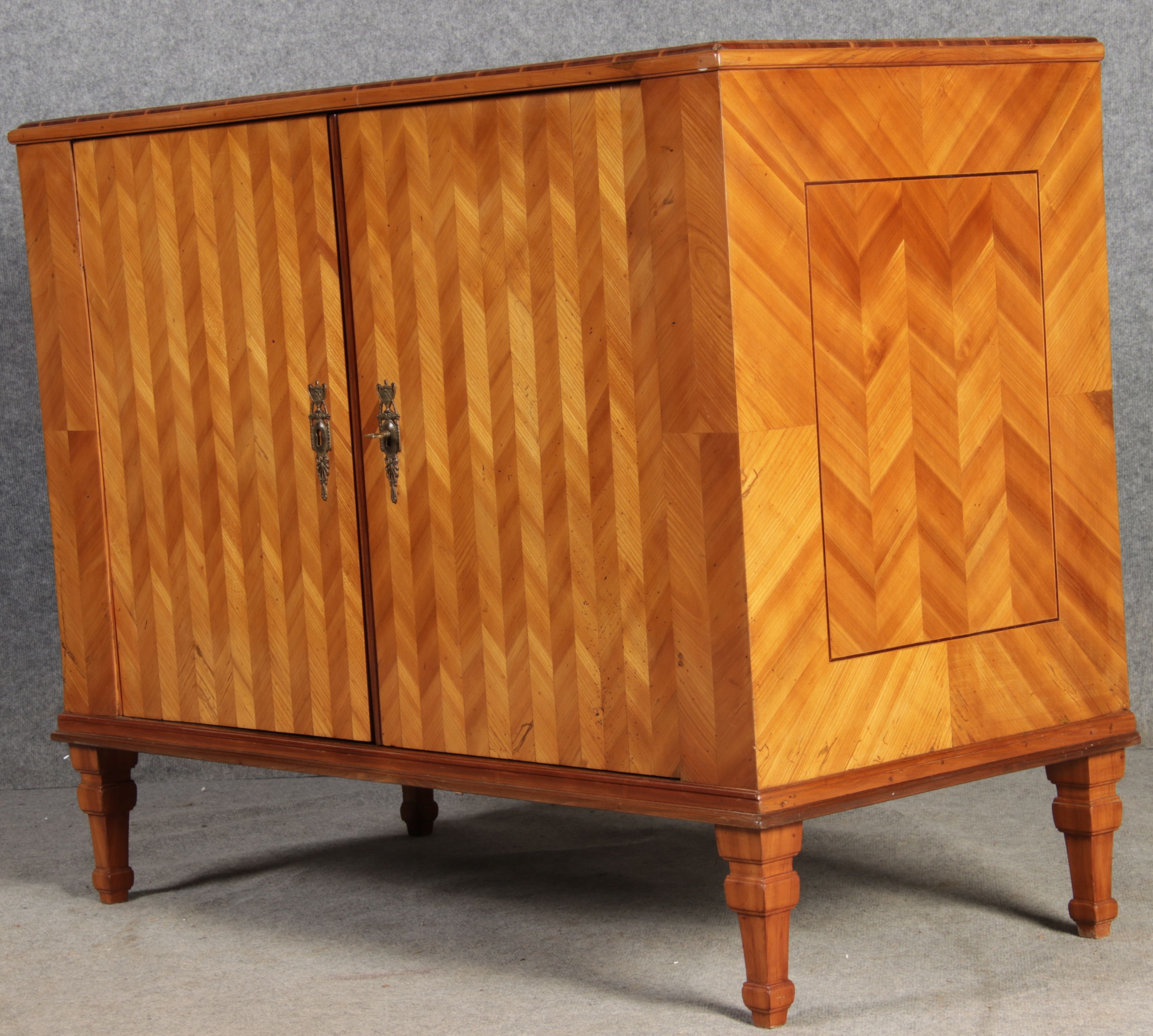 | Antiker Barock Halb Schrank Anrichte Kirschbaum furniert im Fischgräten Muster um 1780 |