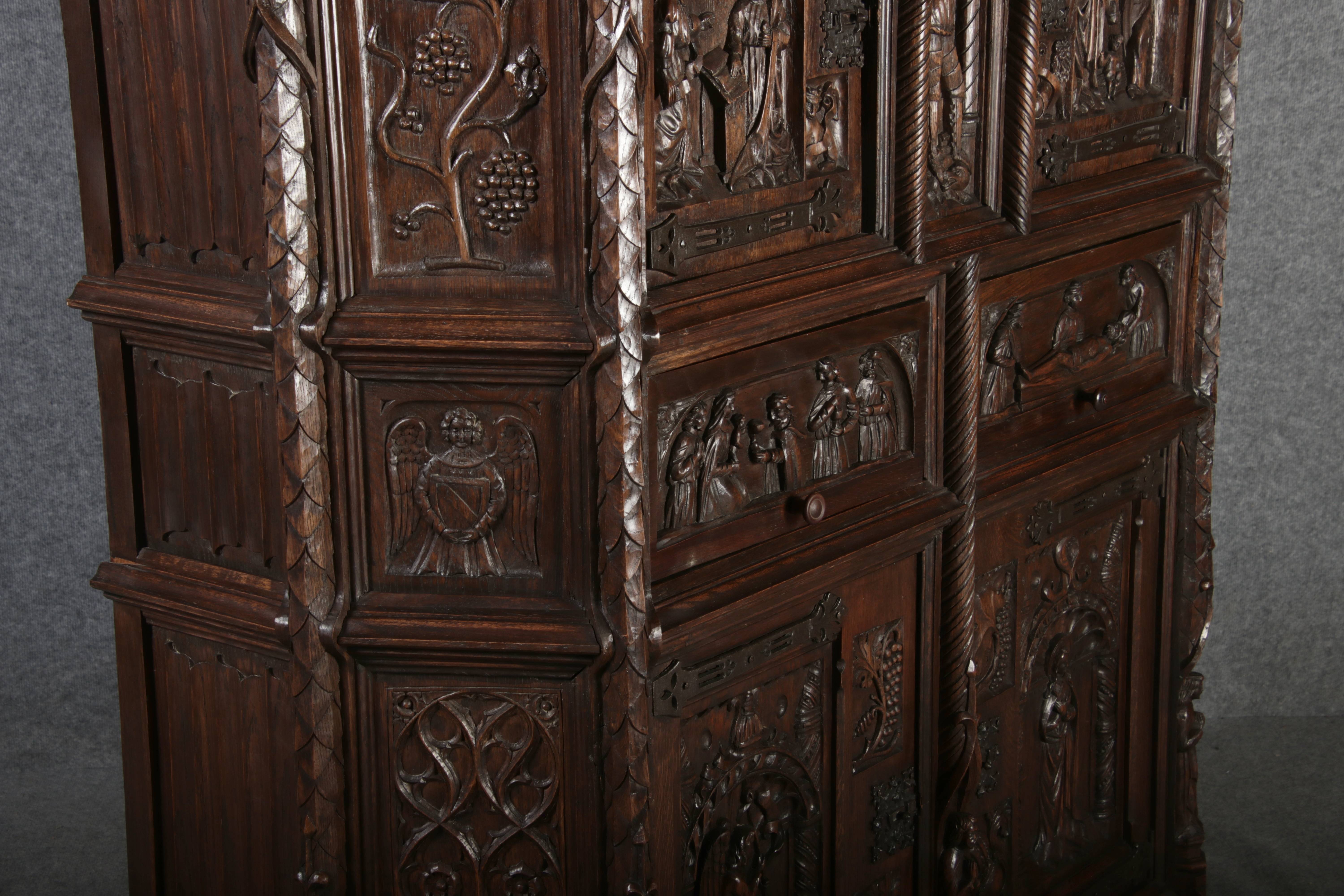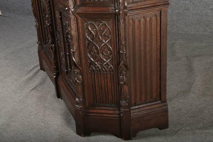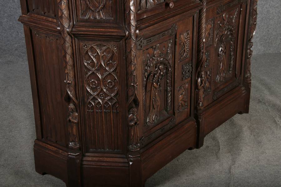 | Antiker Historismus Schrank im Gotischen Stil Schnitzwerk Eiche Massiv |