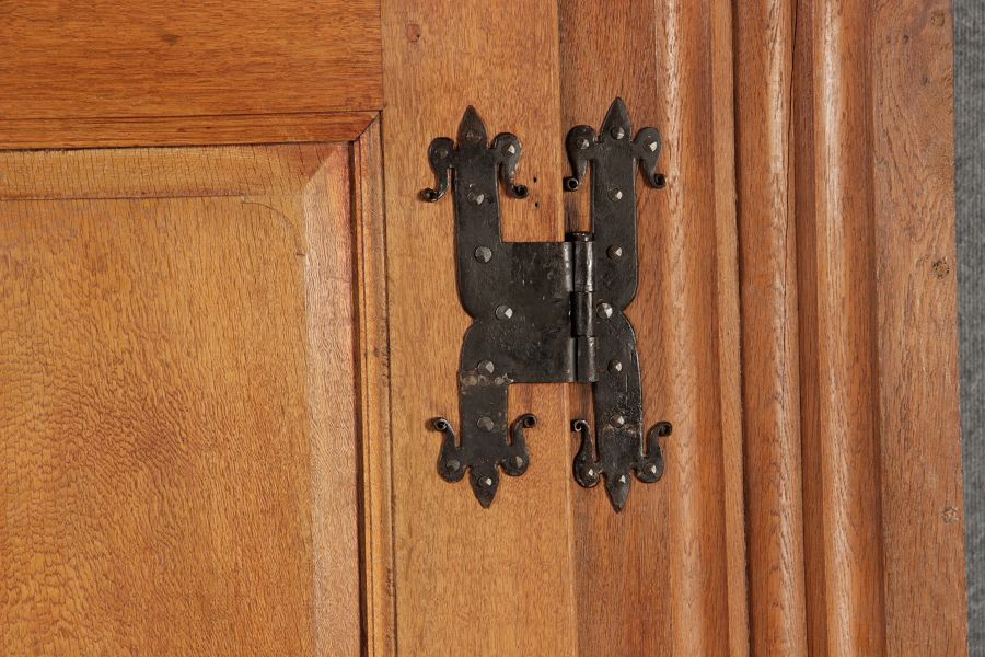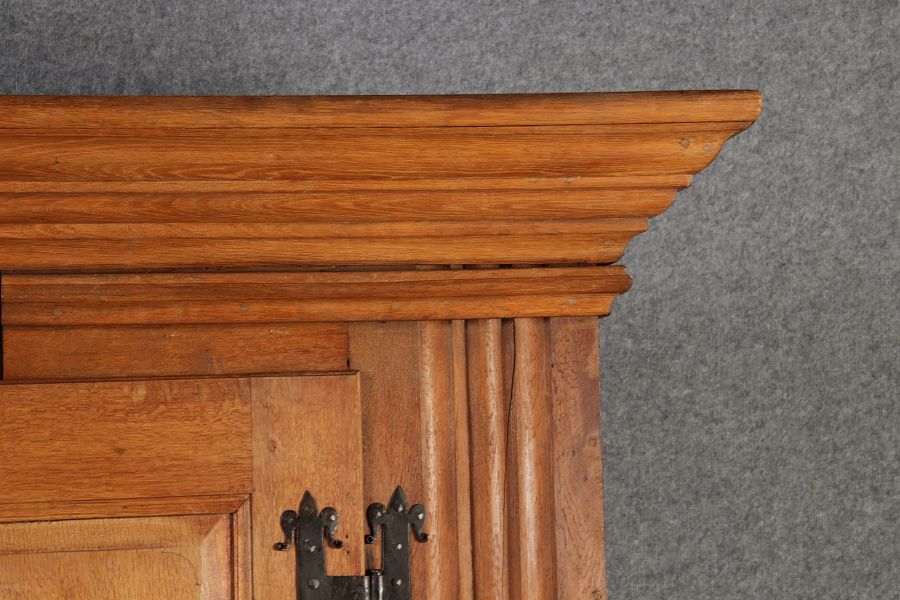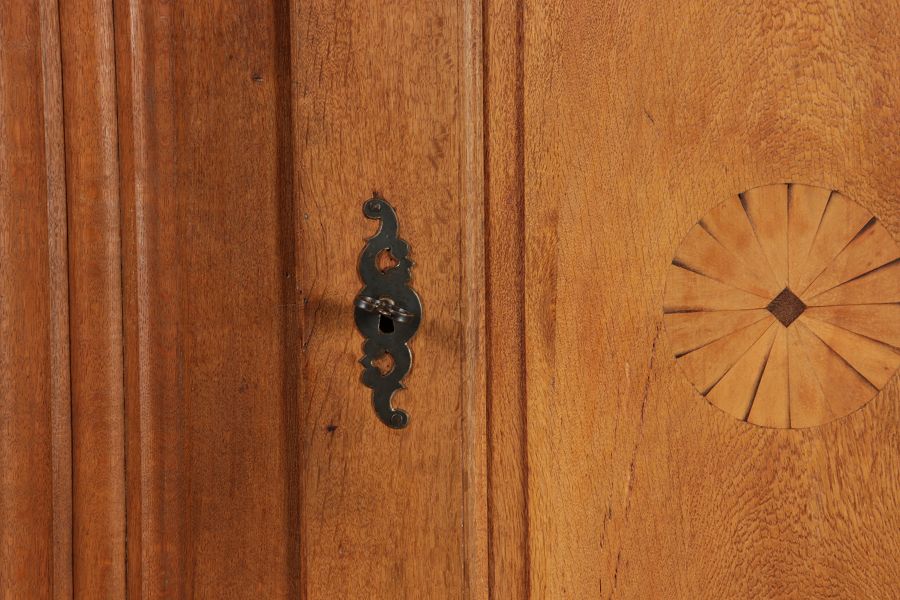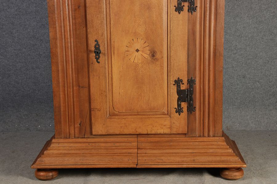 Masse/dimensions: Höhe/Height ca. 191 cm, Breite Korpus/Broad Boda ca. 128 cm, Breite Gesims/Broad cornice ca. 162 cm, Tiefe Korpus/Deep body ca. 48 cm, Tiefe Gesims/Deep cornice ca. 65 cm,