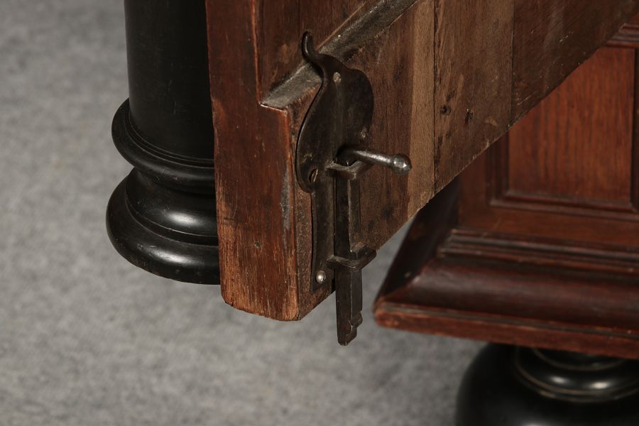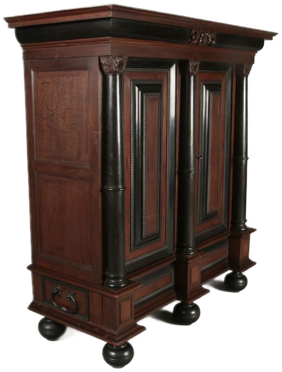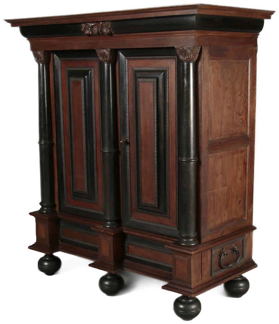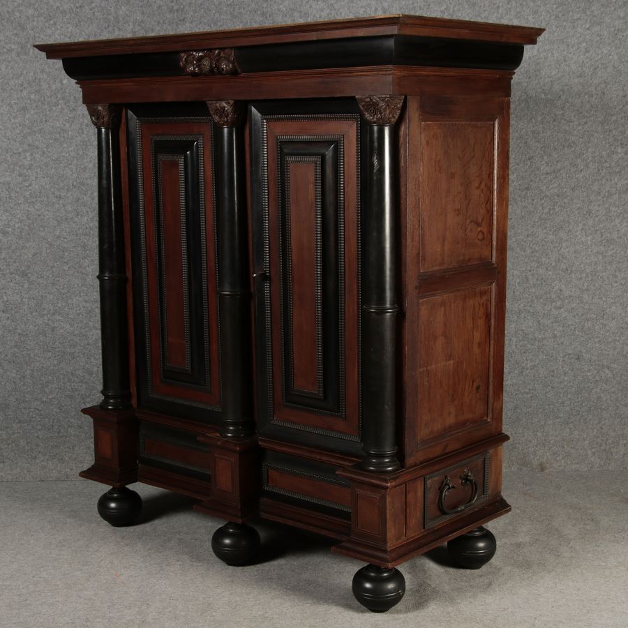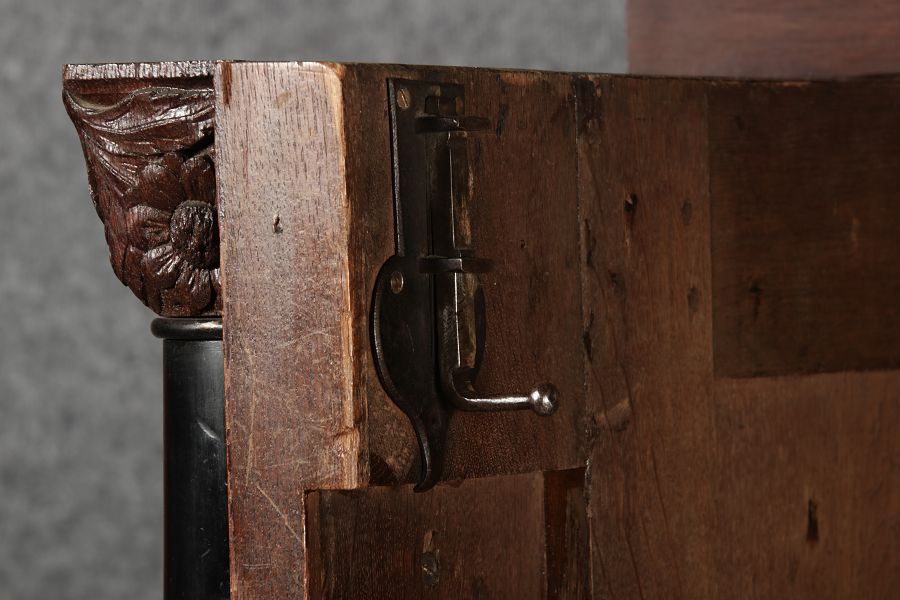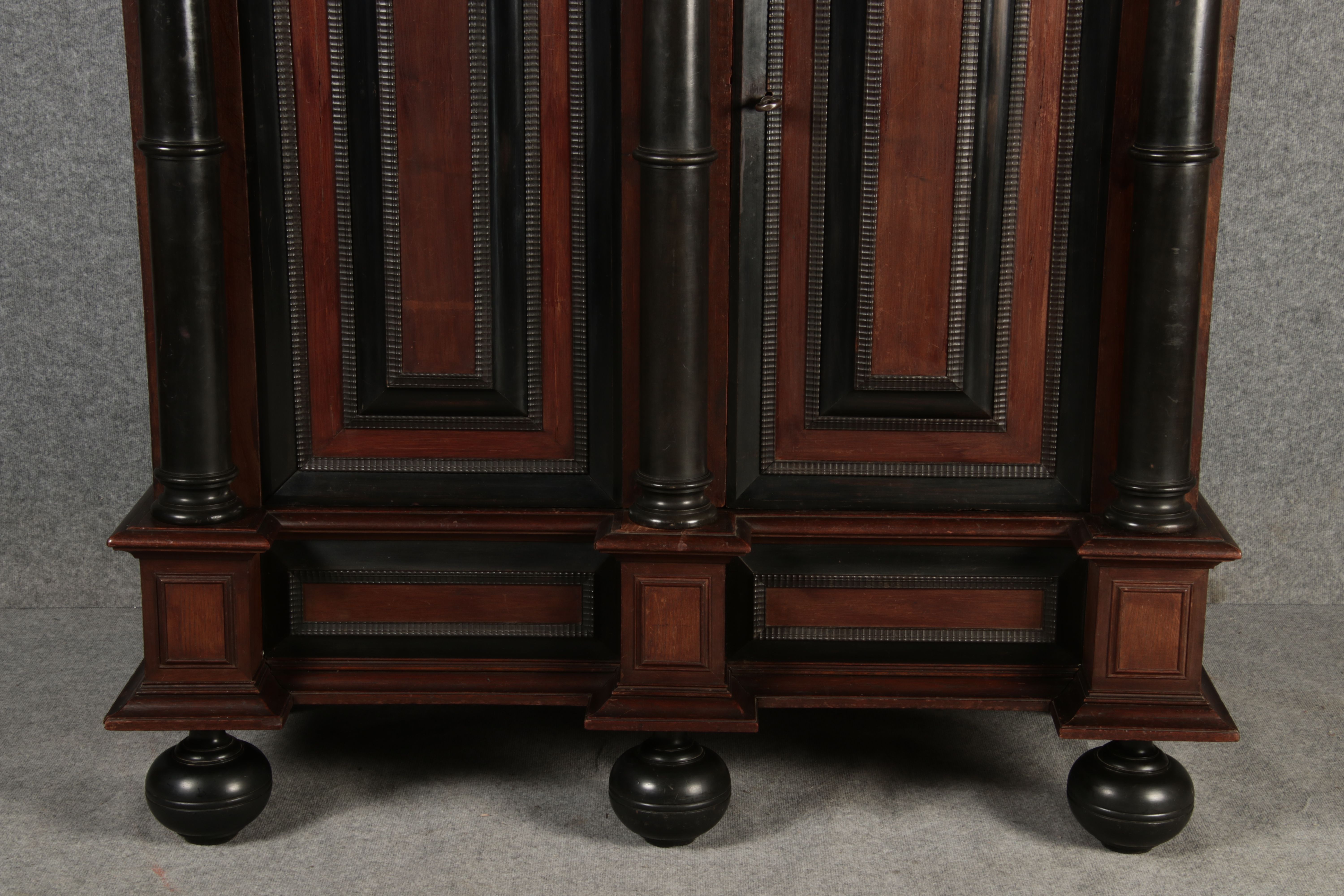 | Antiker Holländischer Renaissance früh Barock Schrank mit 3 Säulen Eisenschloss um 1700 |