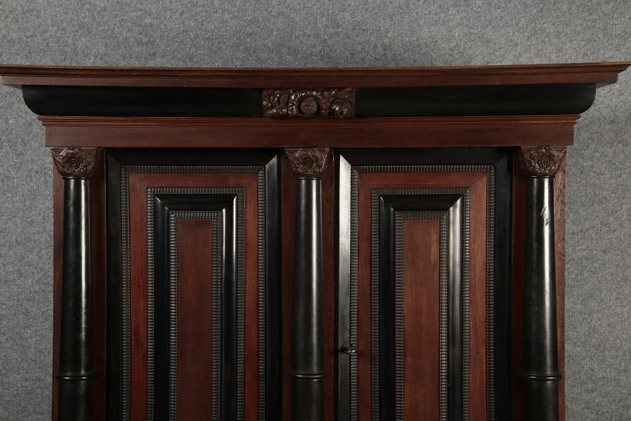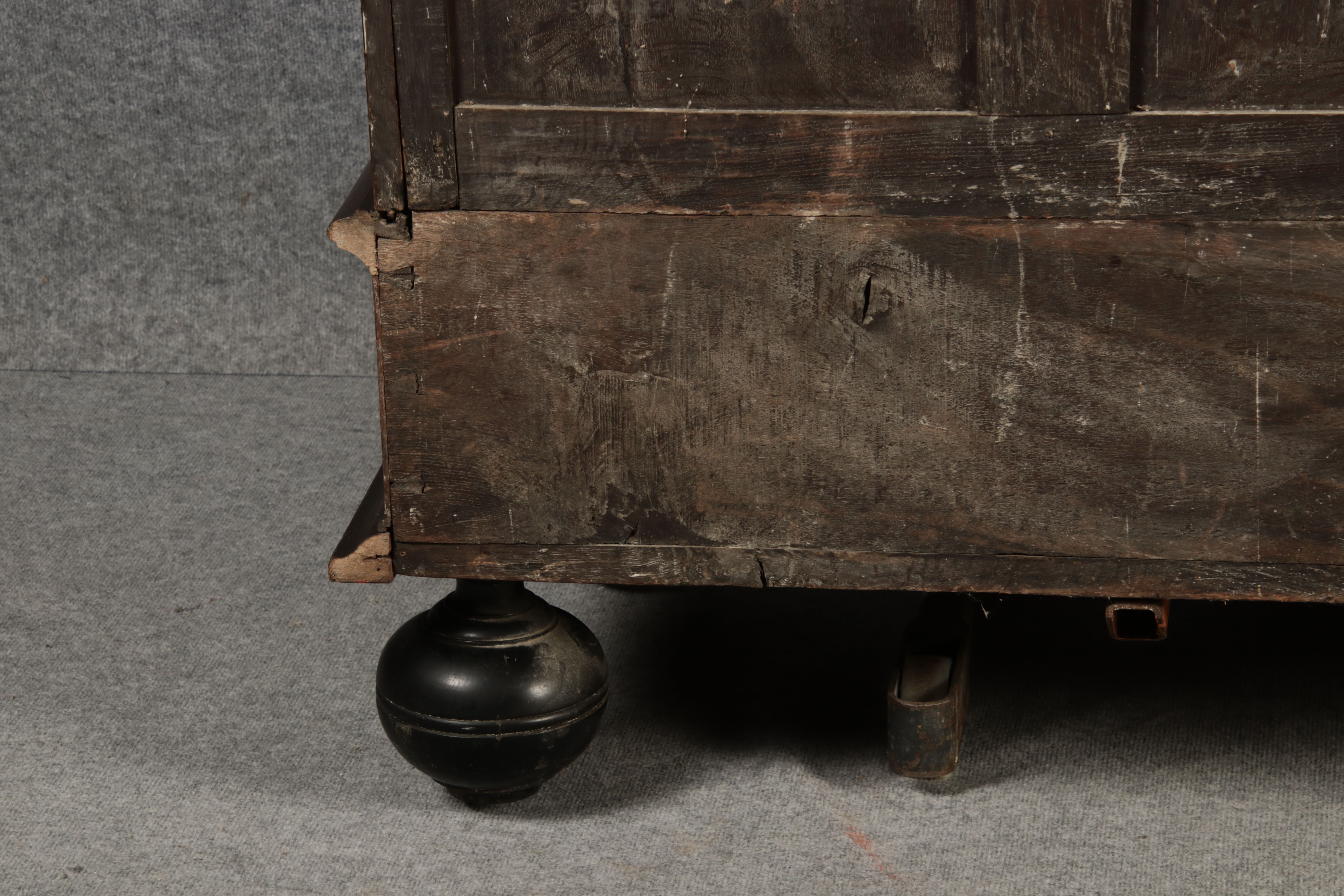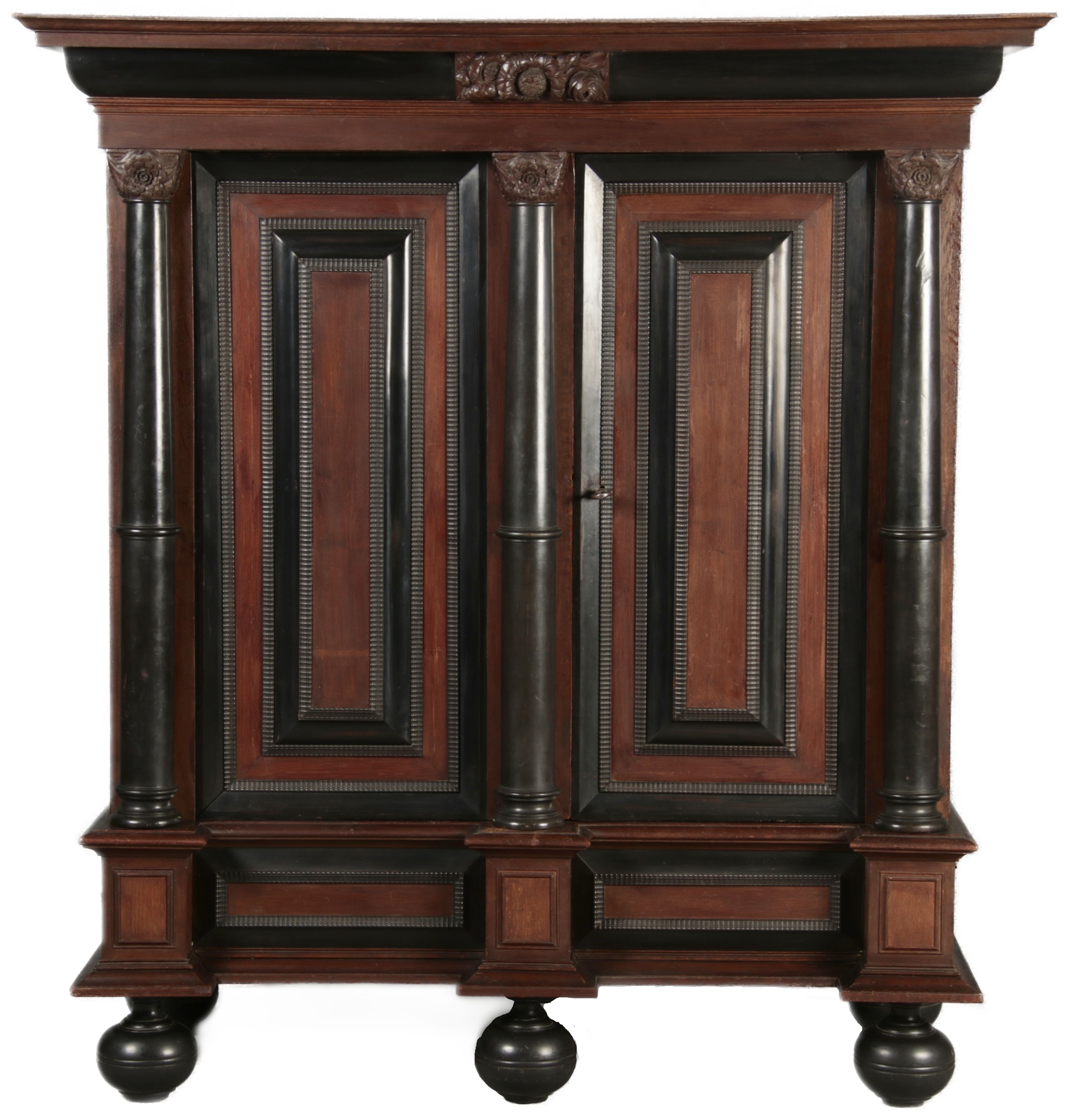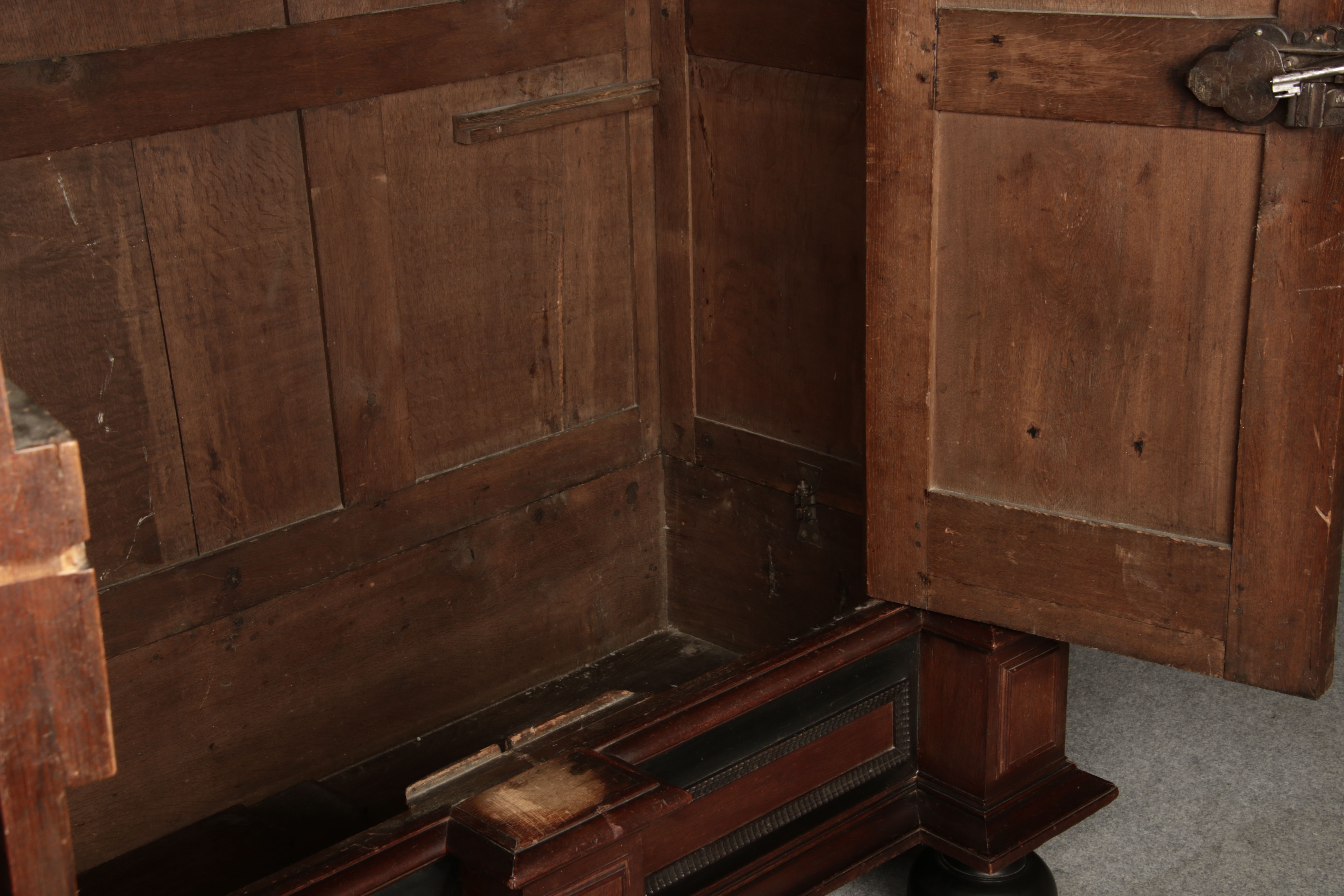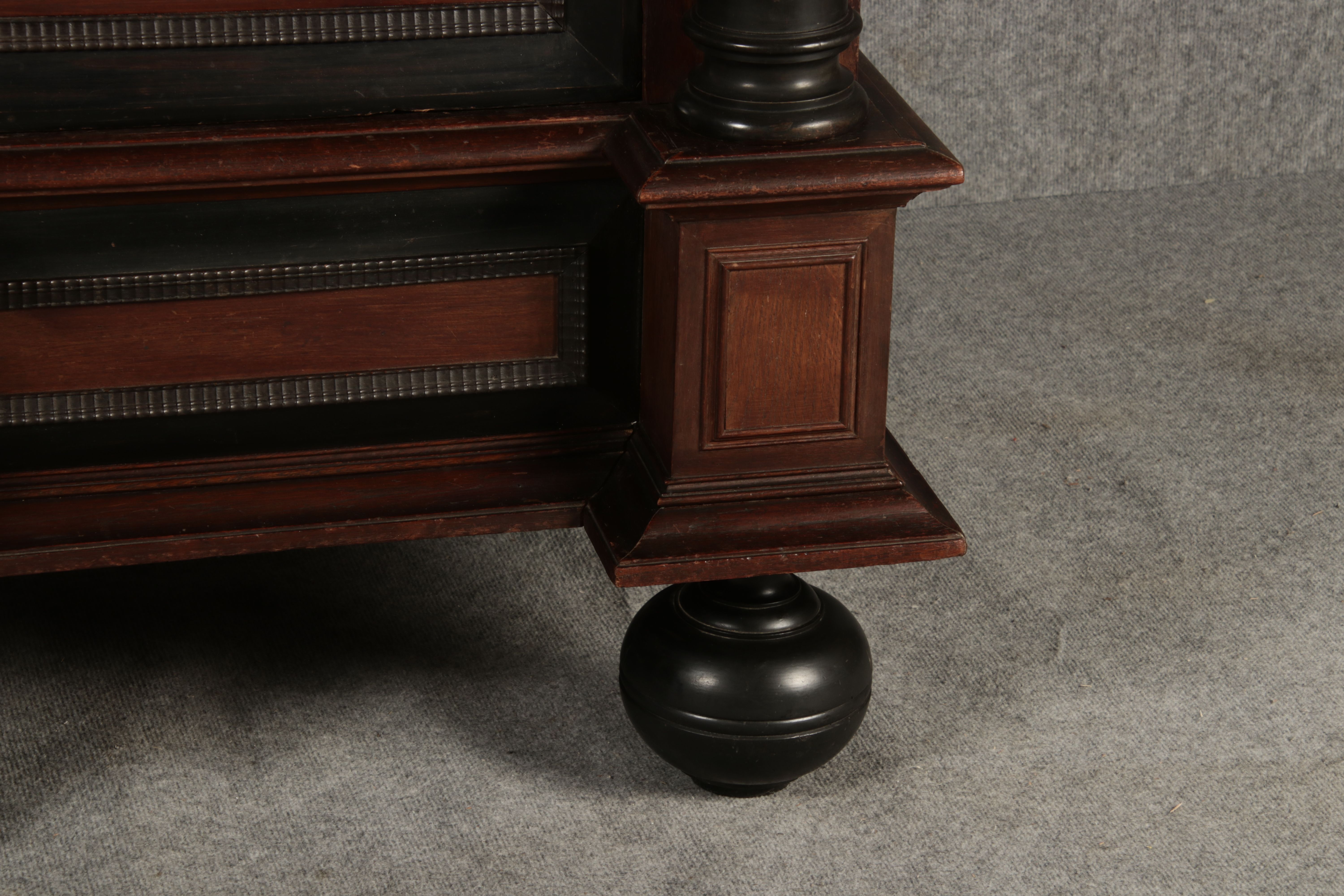 | Antiker Holländischer Renaissance früh Barock Schrank mit 3 Säulen Eisenschloss um 1700 |