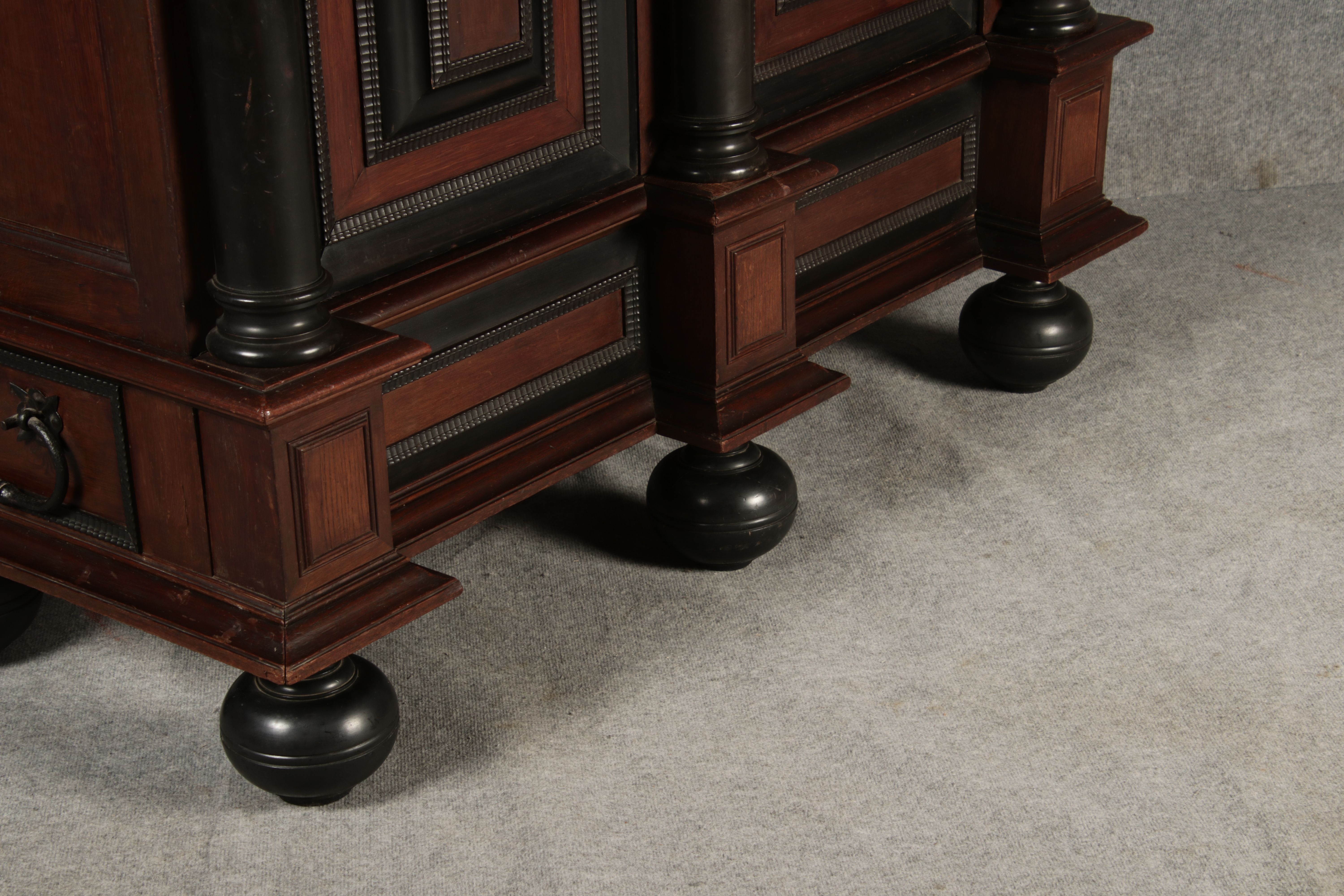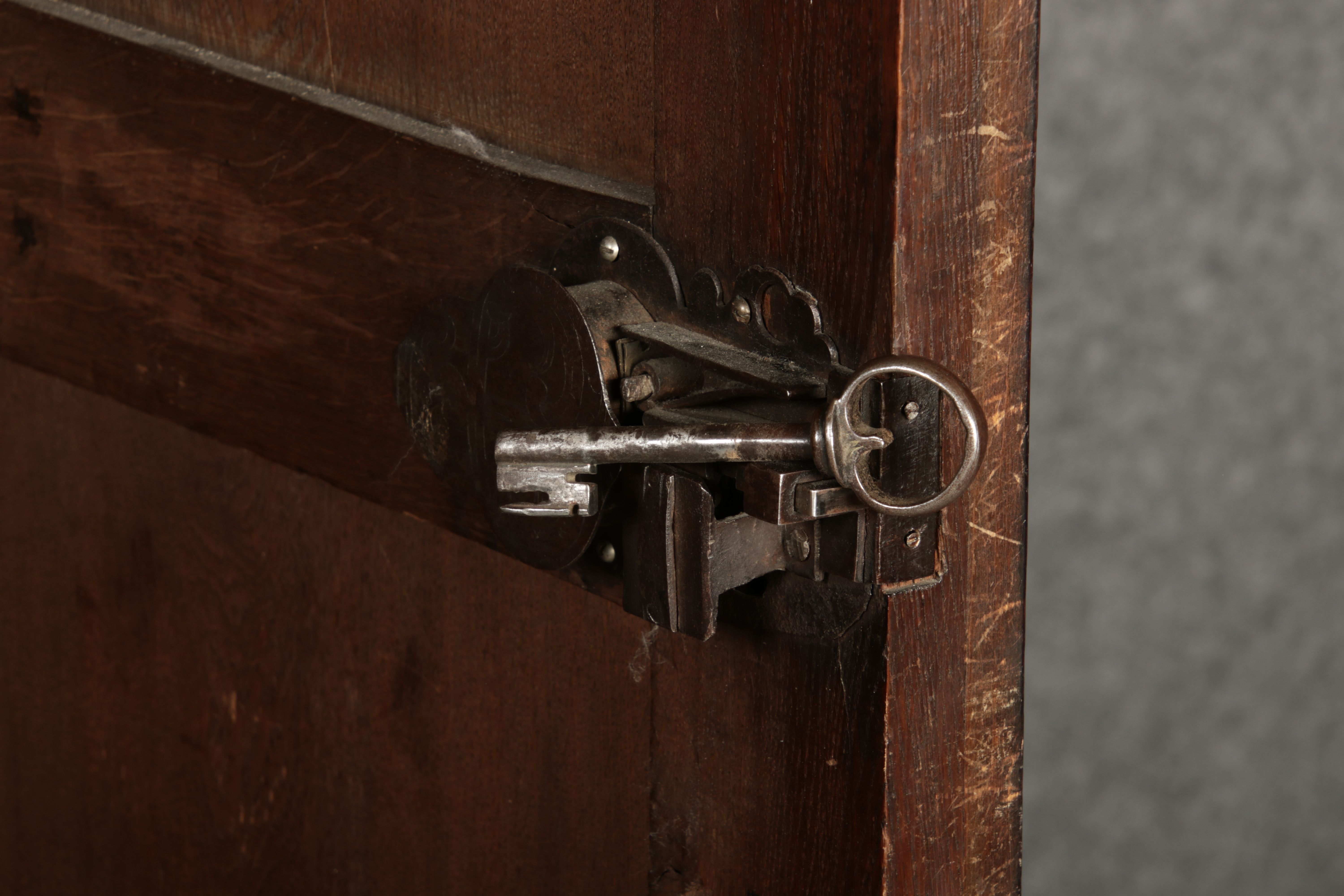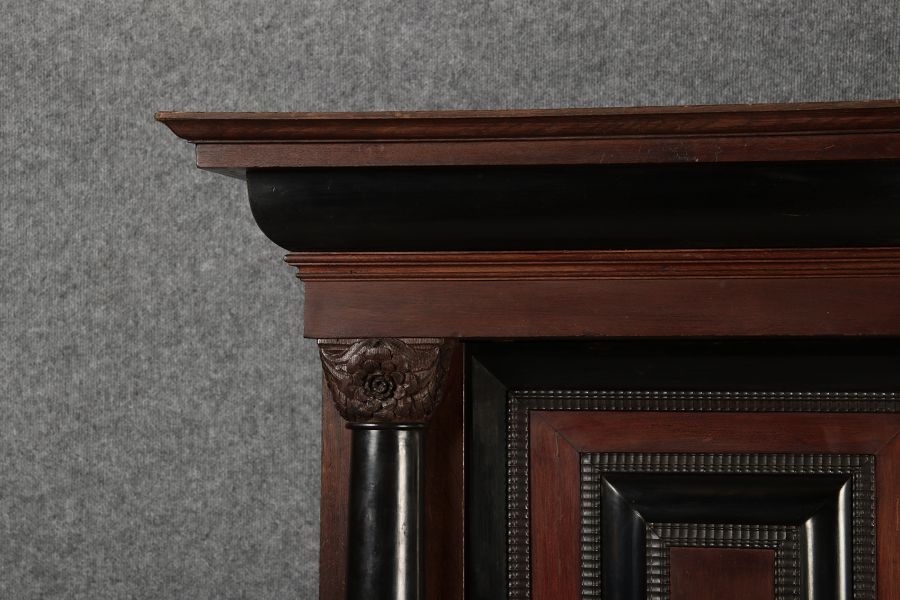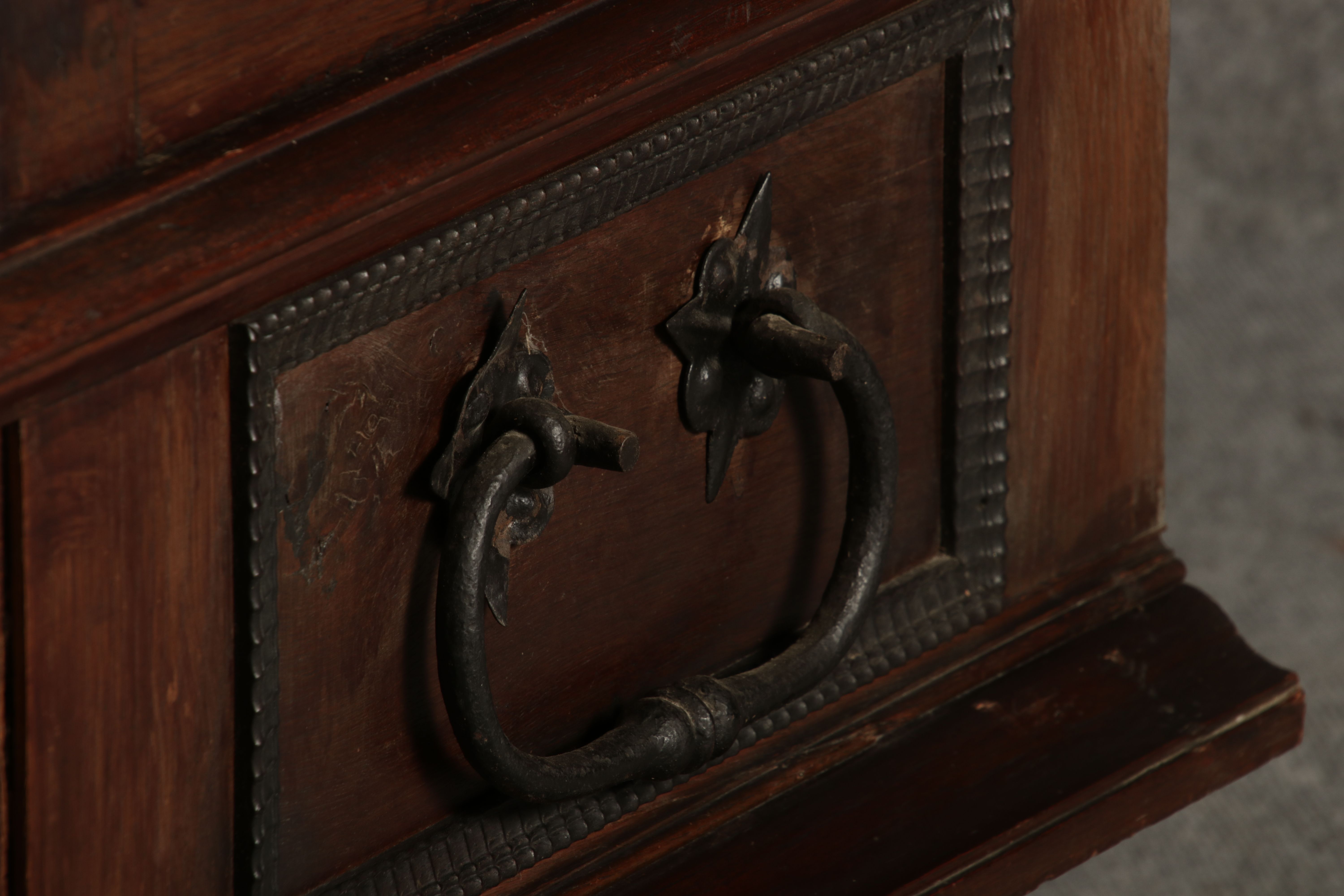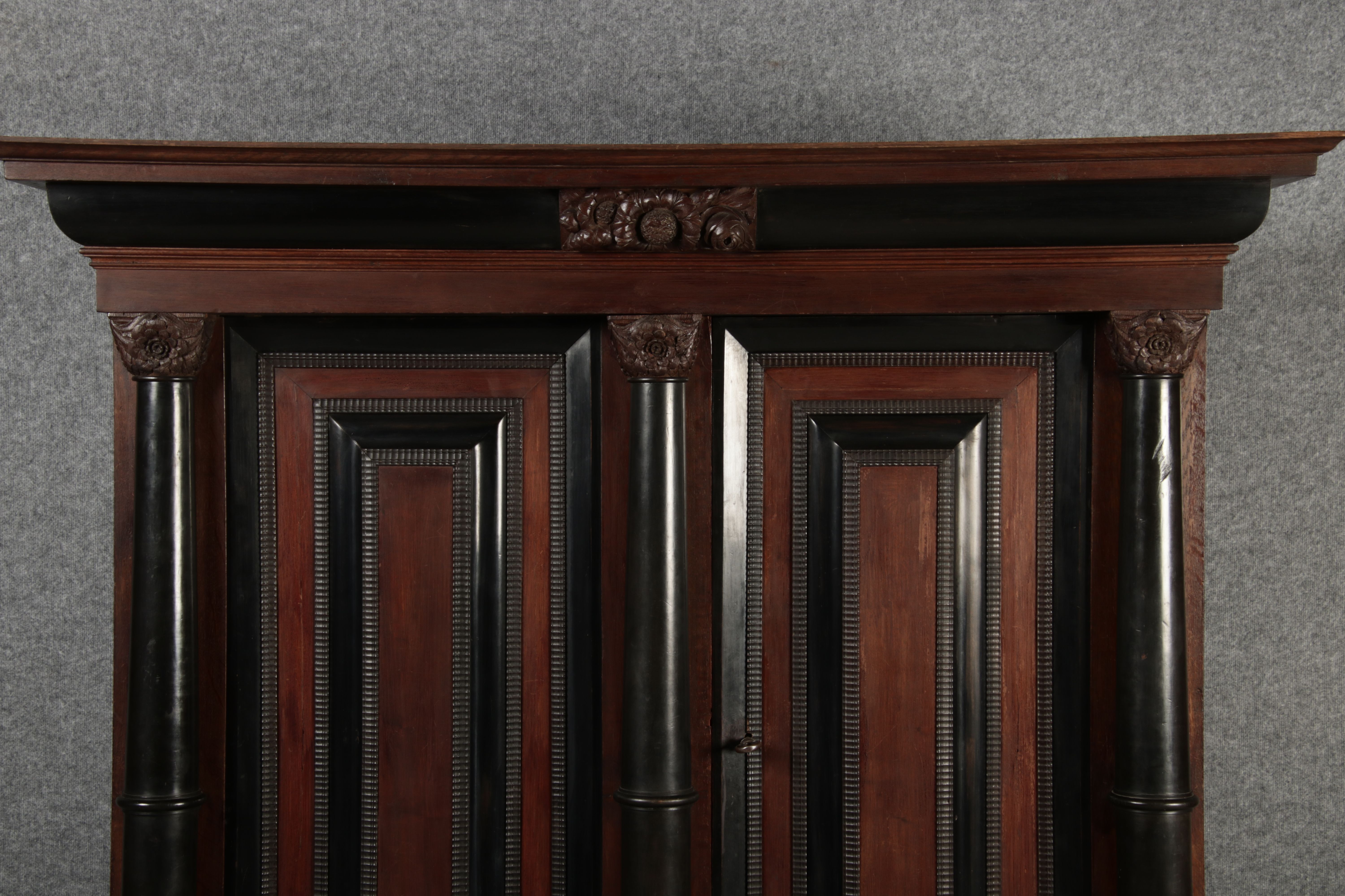| Antiker Holländischer Renaissance früh Barock Schrank mit 3 Säulen Eisenschloss um 1700 |