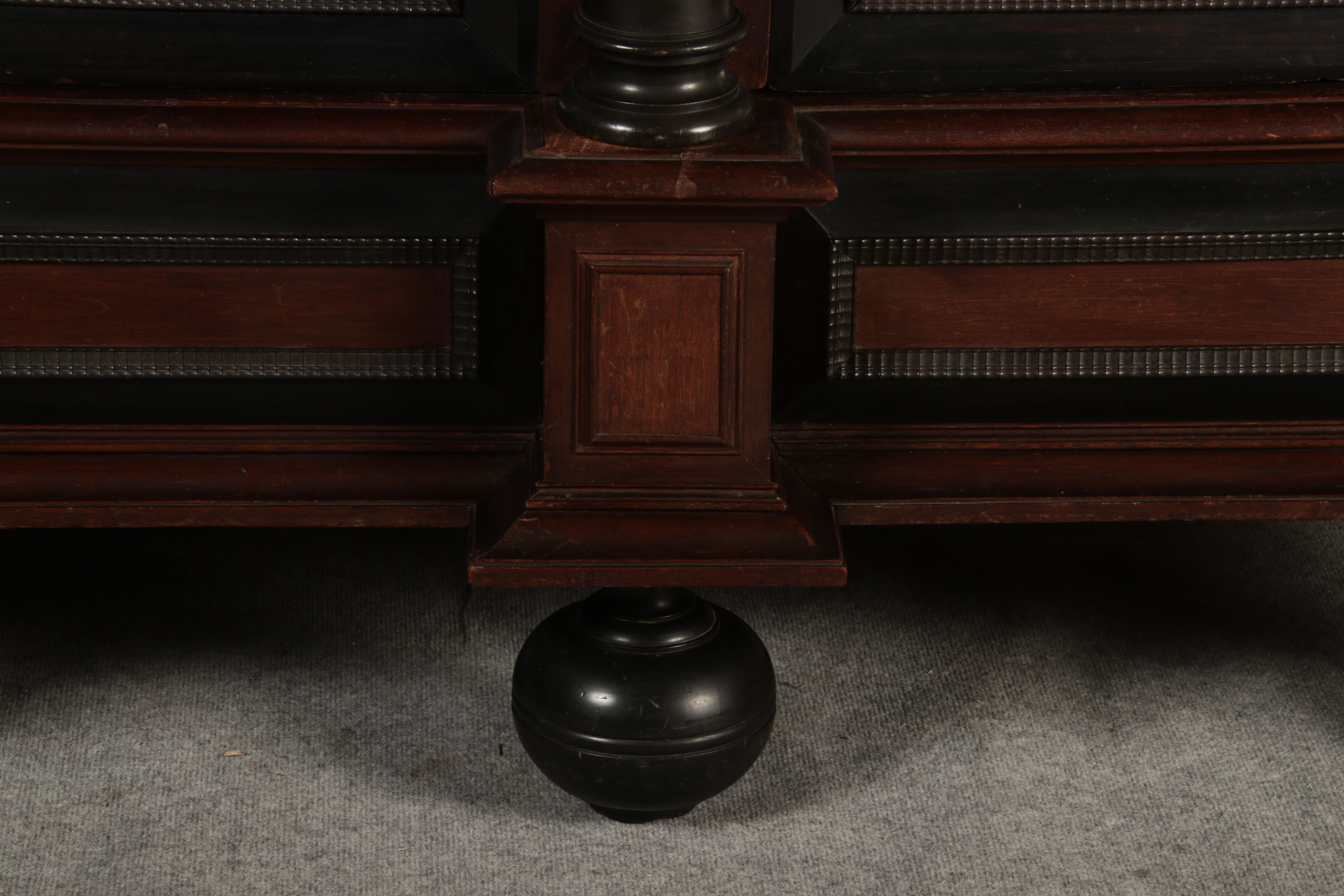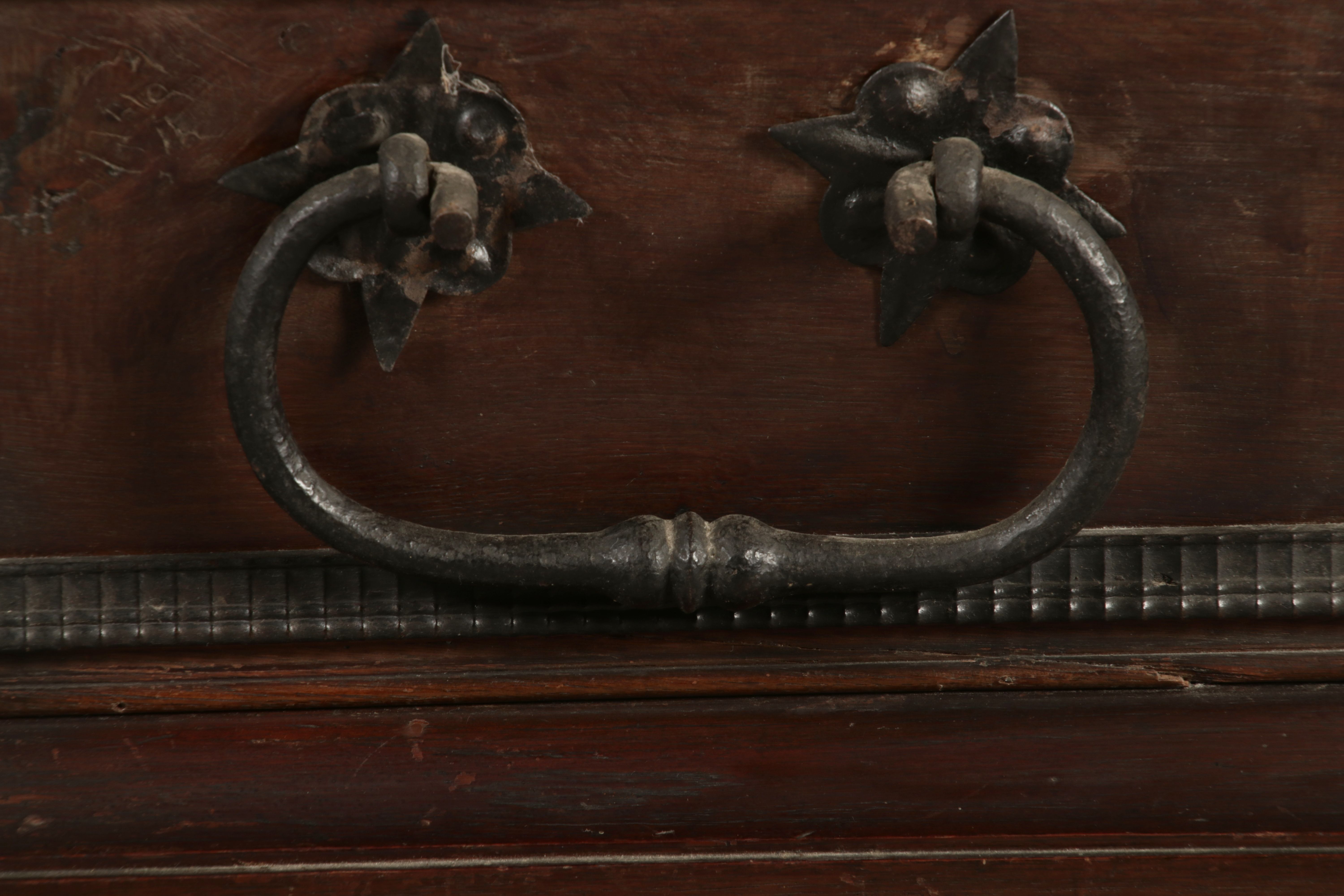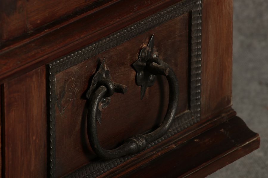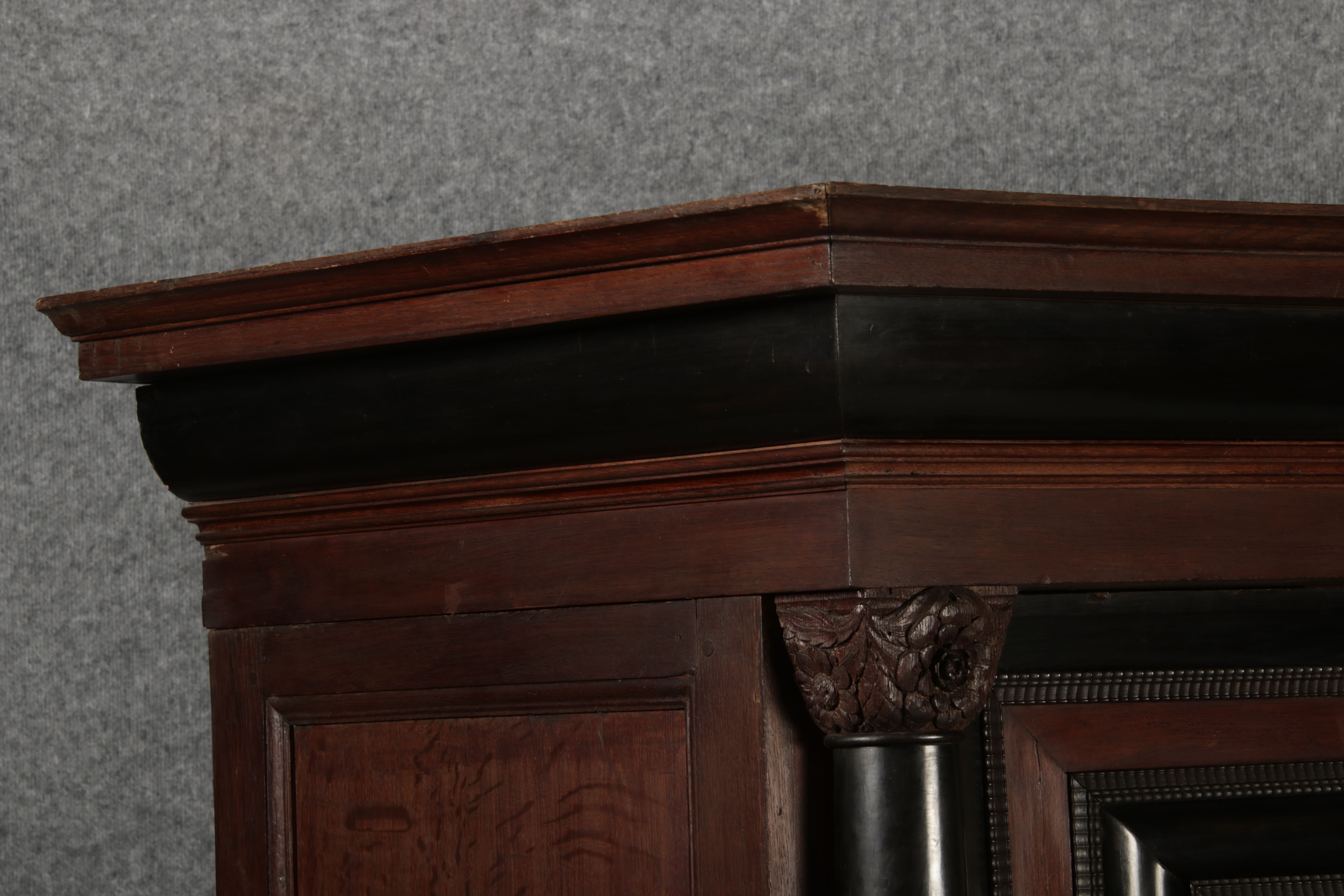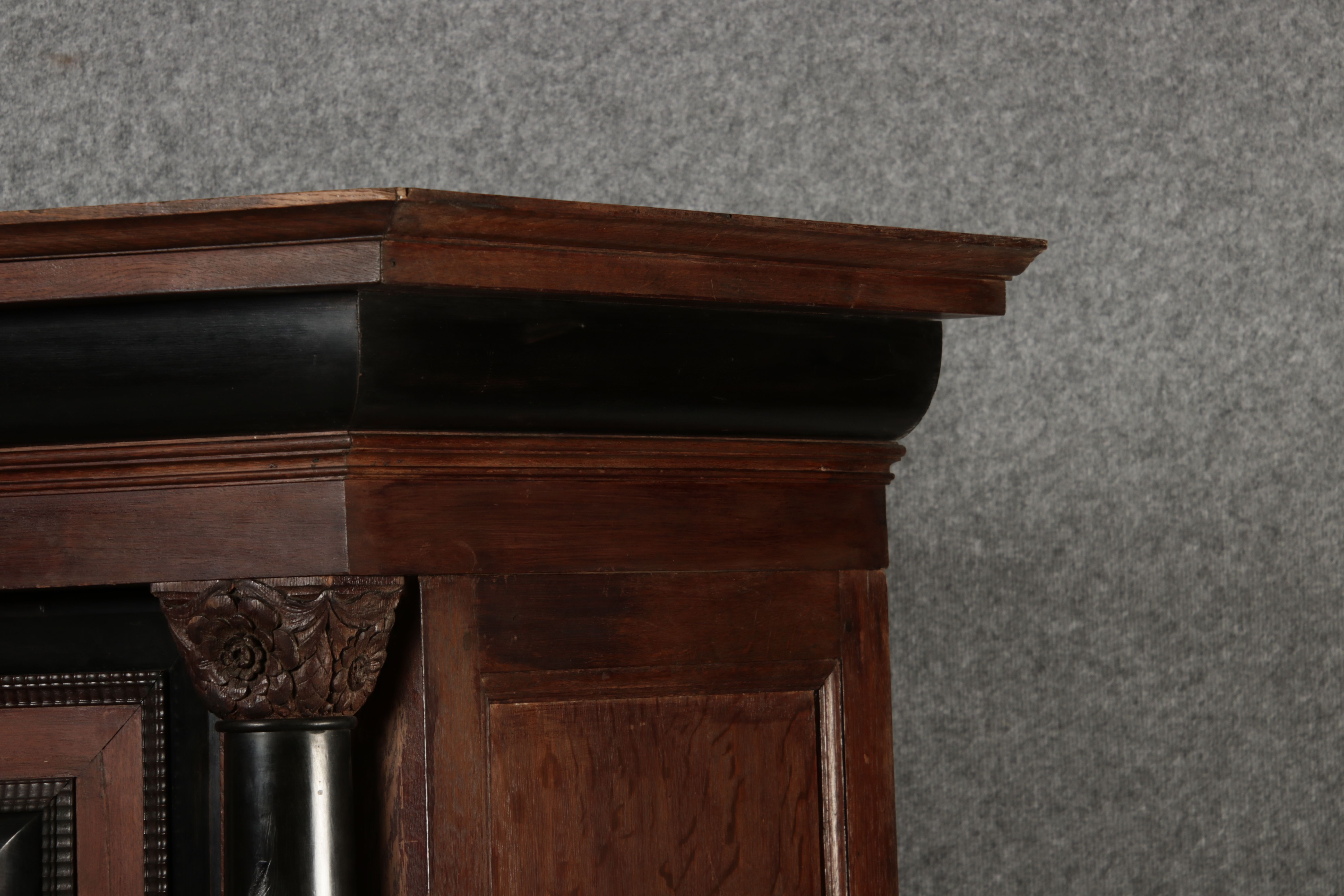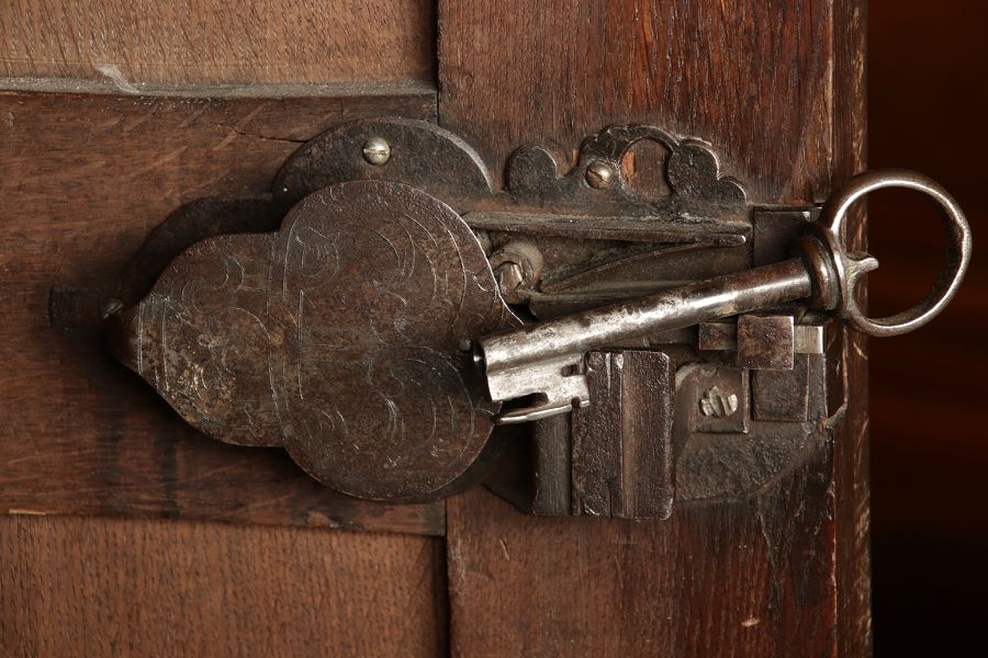 | Antiker Holländischer Renaissance früh Barock Schrank mit 3 Säulen Eisenschloss um 1700 |