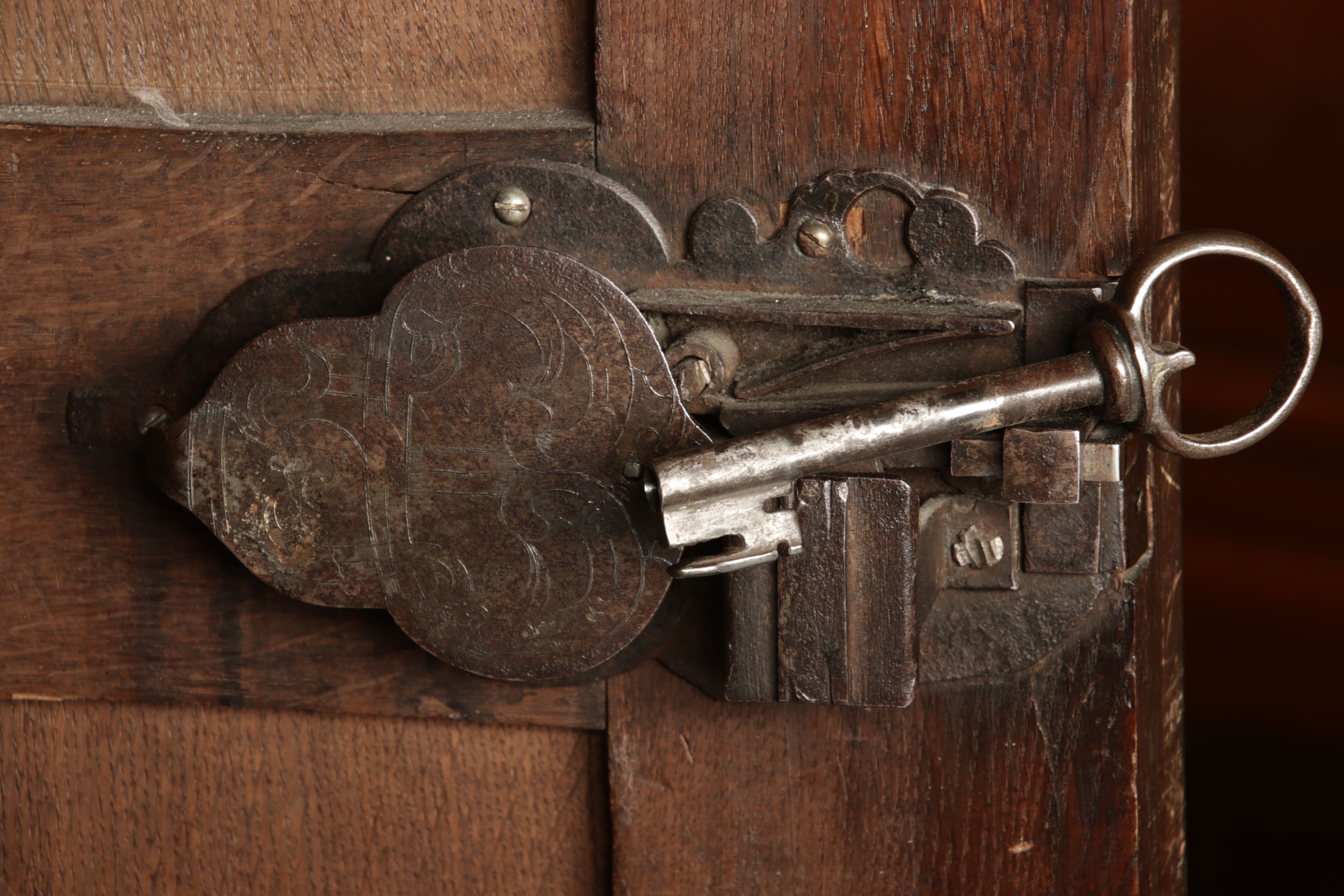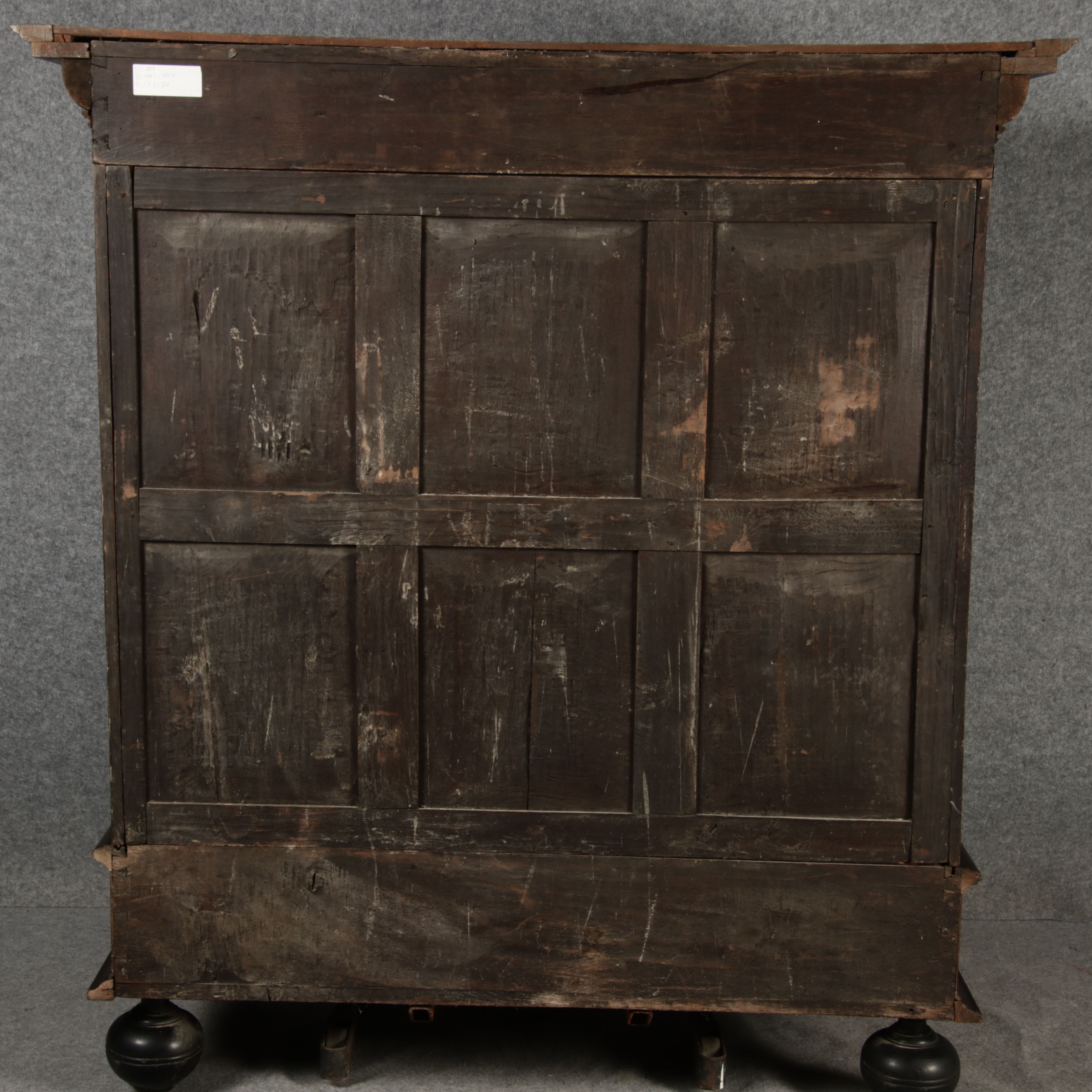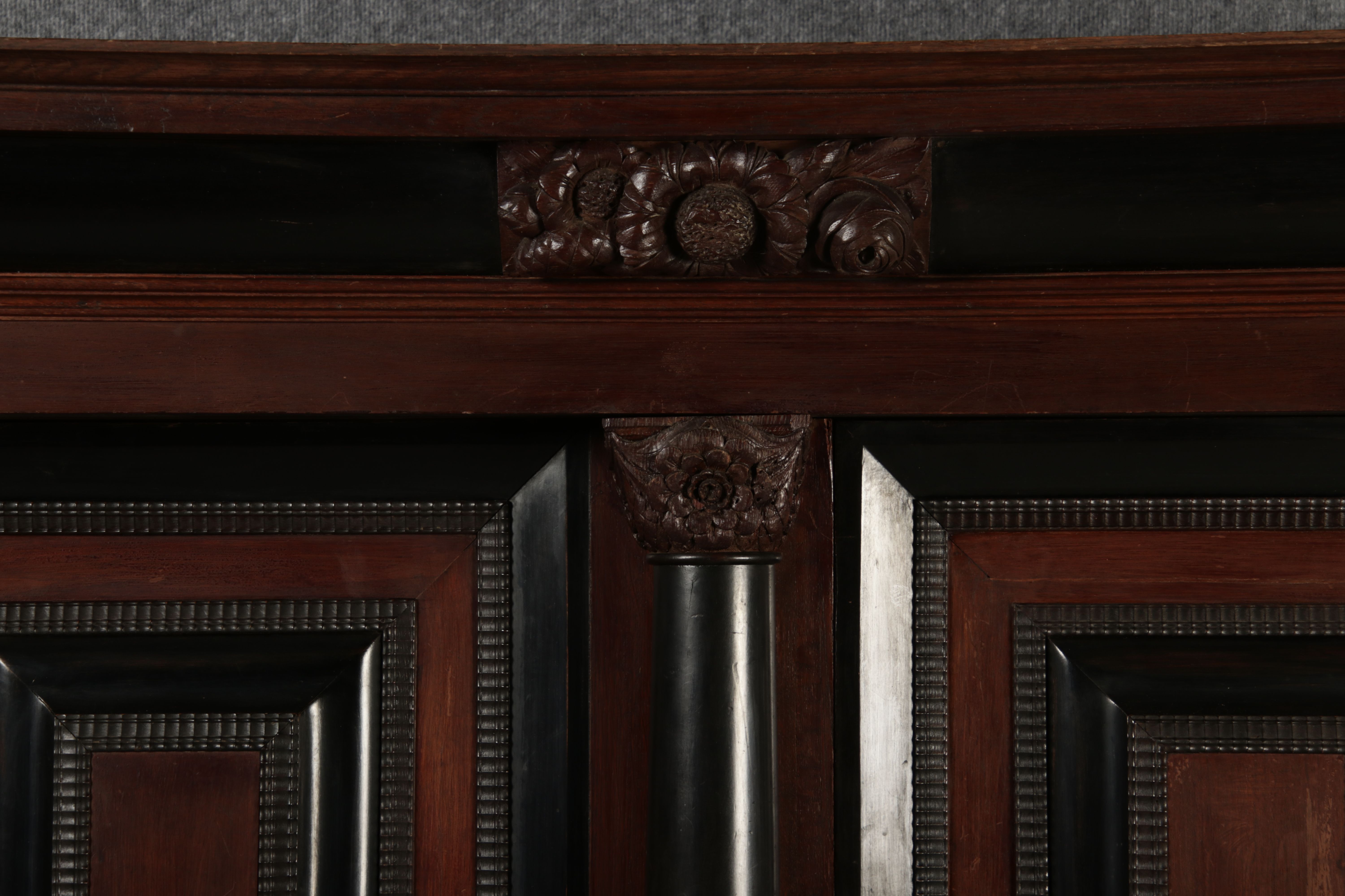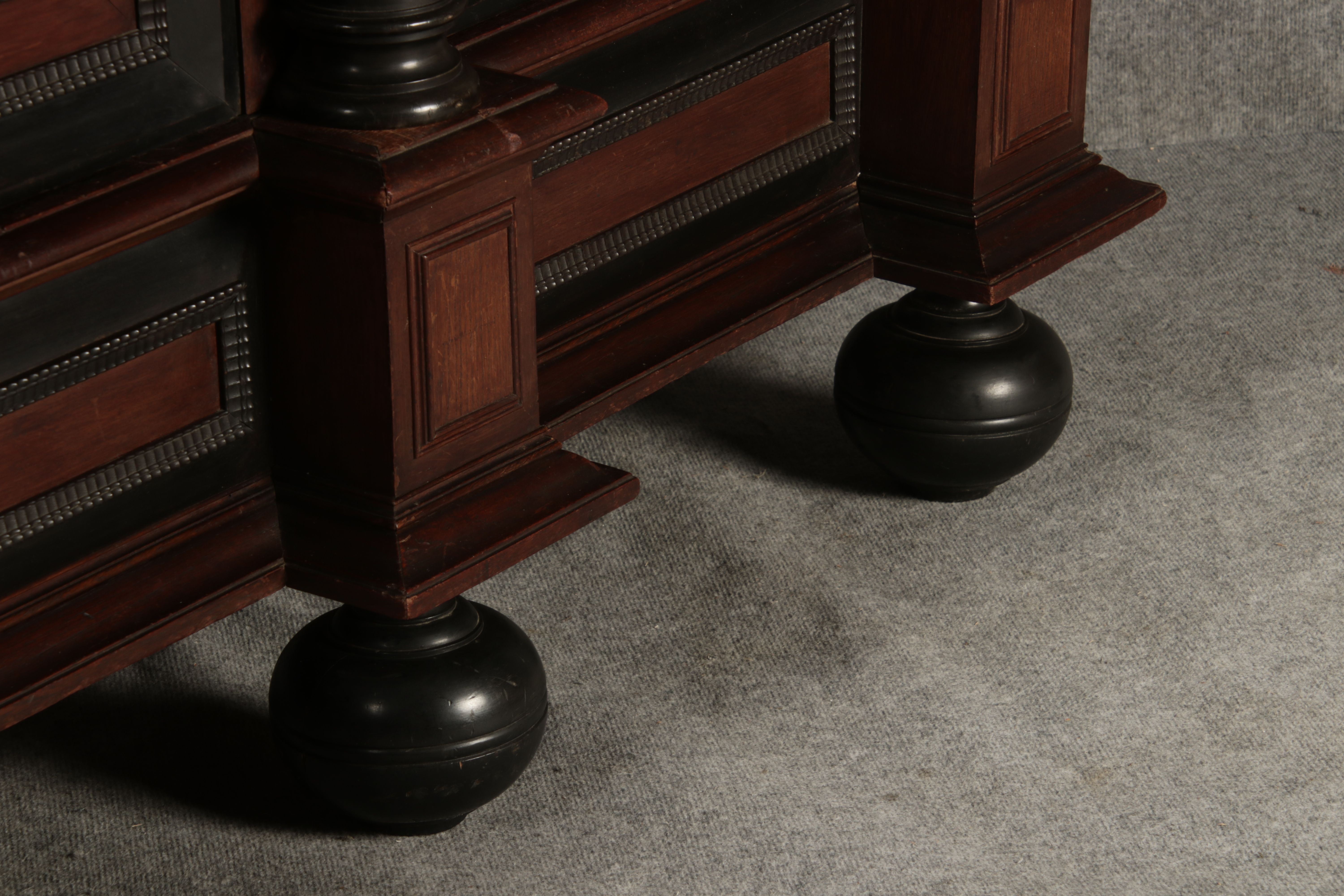 | Antiker Holländischer Renaissance früh Barock Schrank mit 3 Säulen Eisenschloss um 1700 |