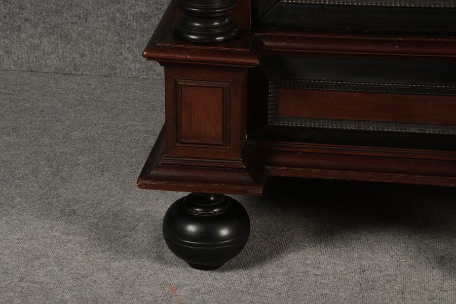 key: Die Holzart ist Palisander und Ebonisiertes Holz auf Eiche ,er hat 1 Schlüssel