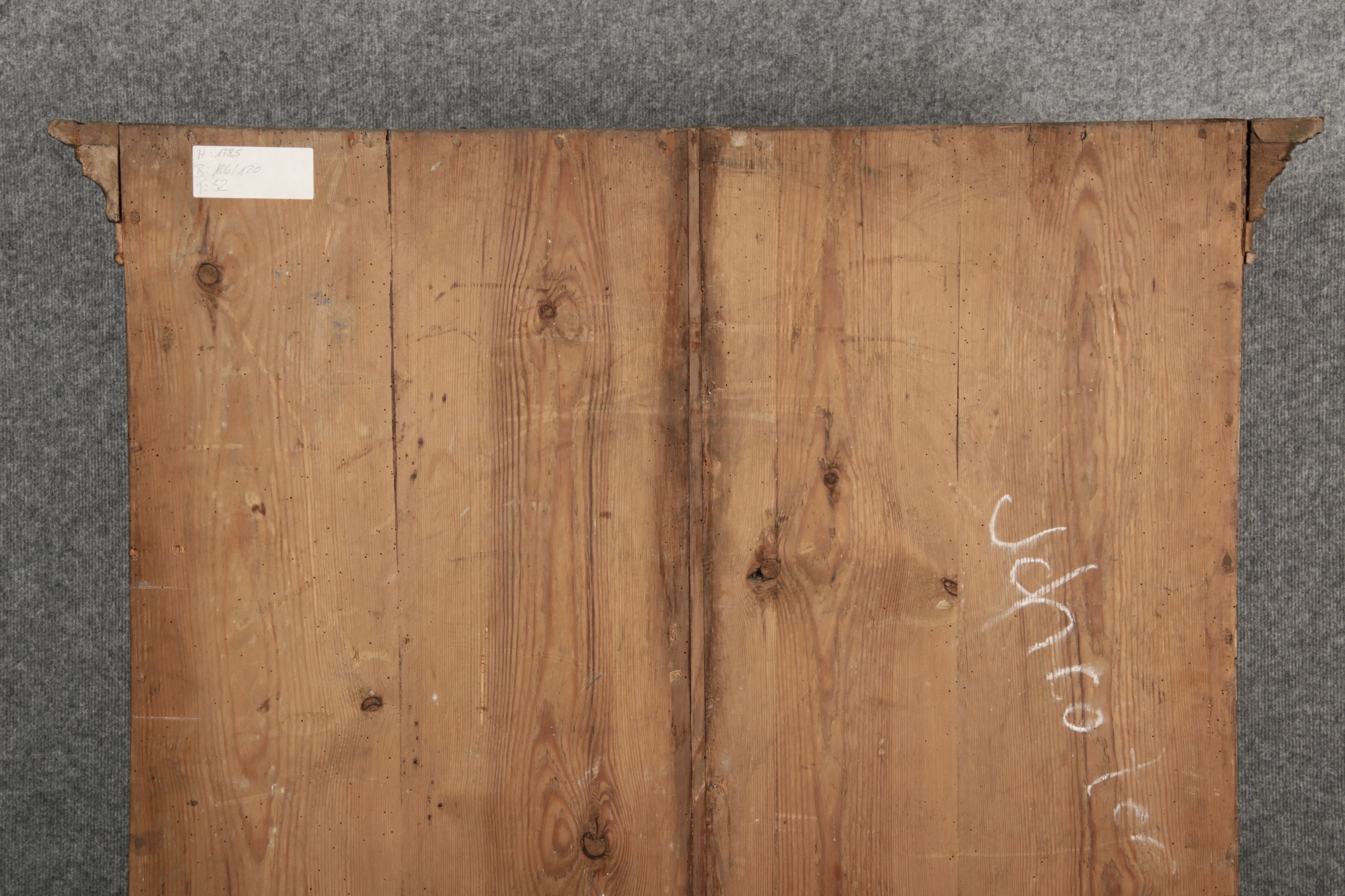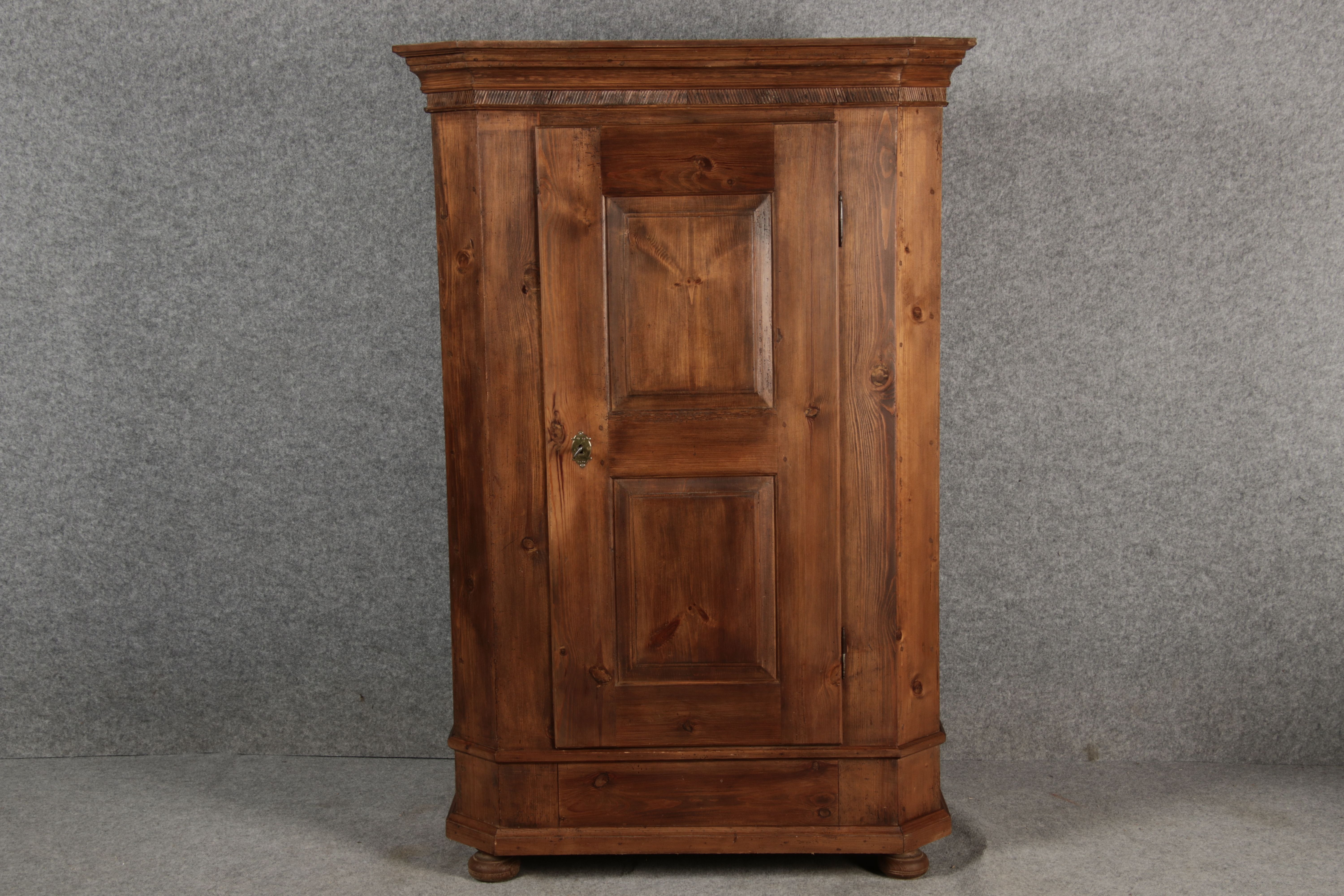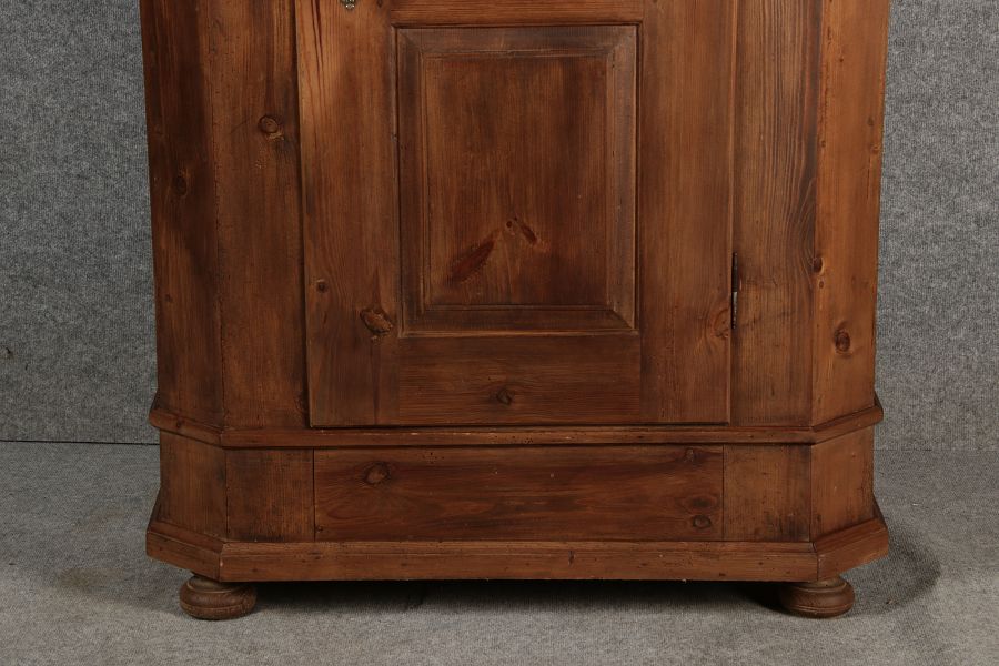 Masse/dimensions: Höhe/Height ca. 178,5 cm, Breite Korpus/Broad Boda ca. 106 cm, Breite Gesims/Broad cornice ca. 120 cm, Tiefe /Deep ca. 52 cm Holz, Schlüssel/wood,