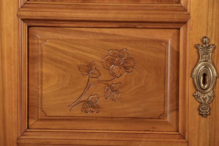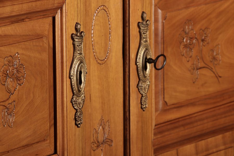 | Antiker Barockschrank massiv Nussbaum mit Schnitzereien um 1800 |