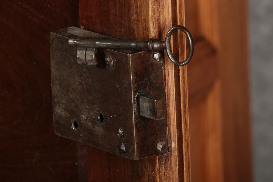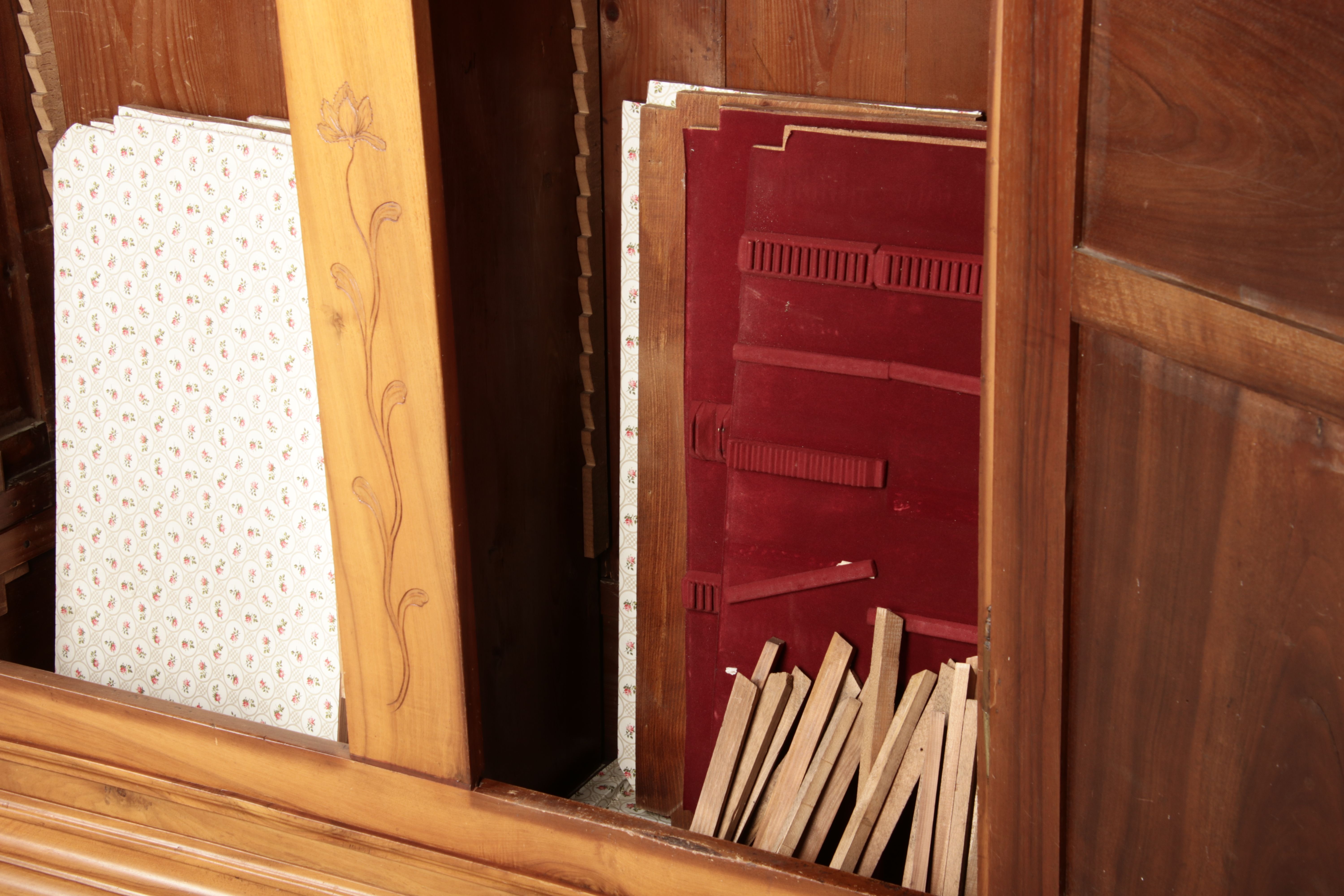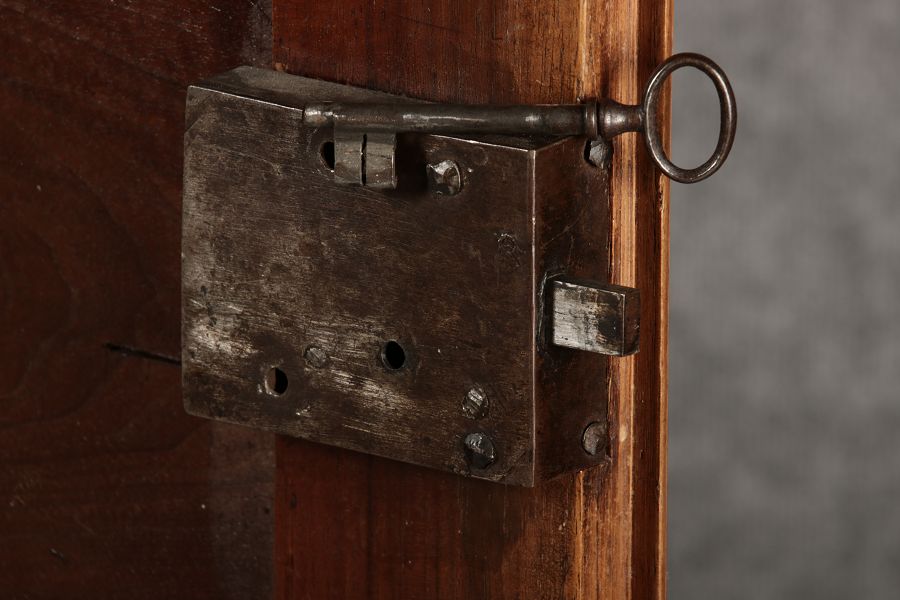key: Die Holzart ist Nussbaum massiv ,er hat 1 Schlüssel