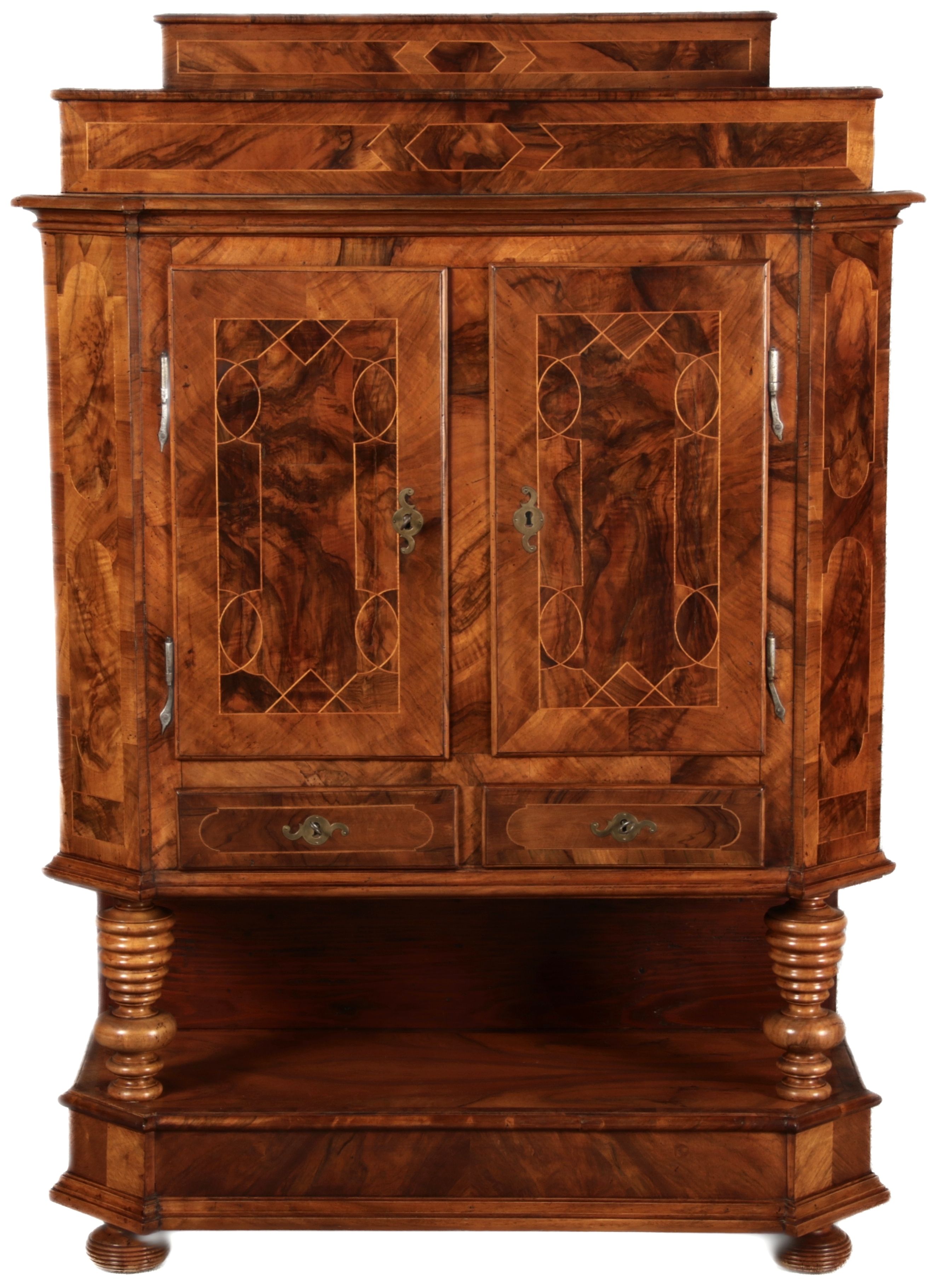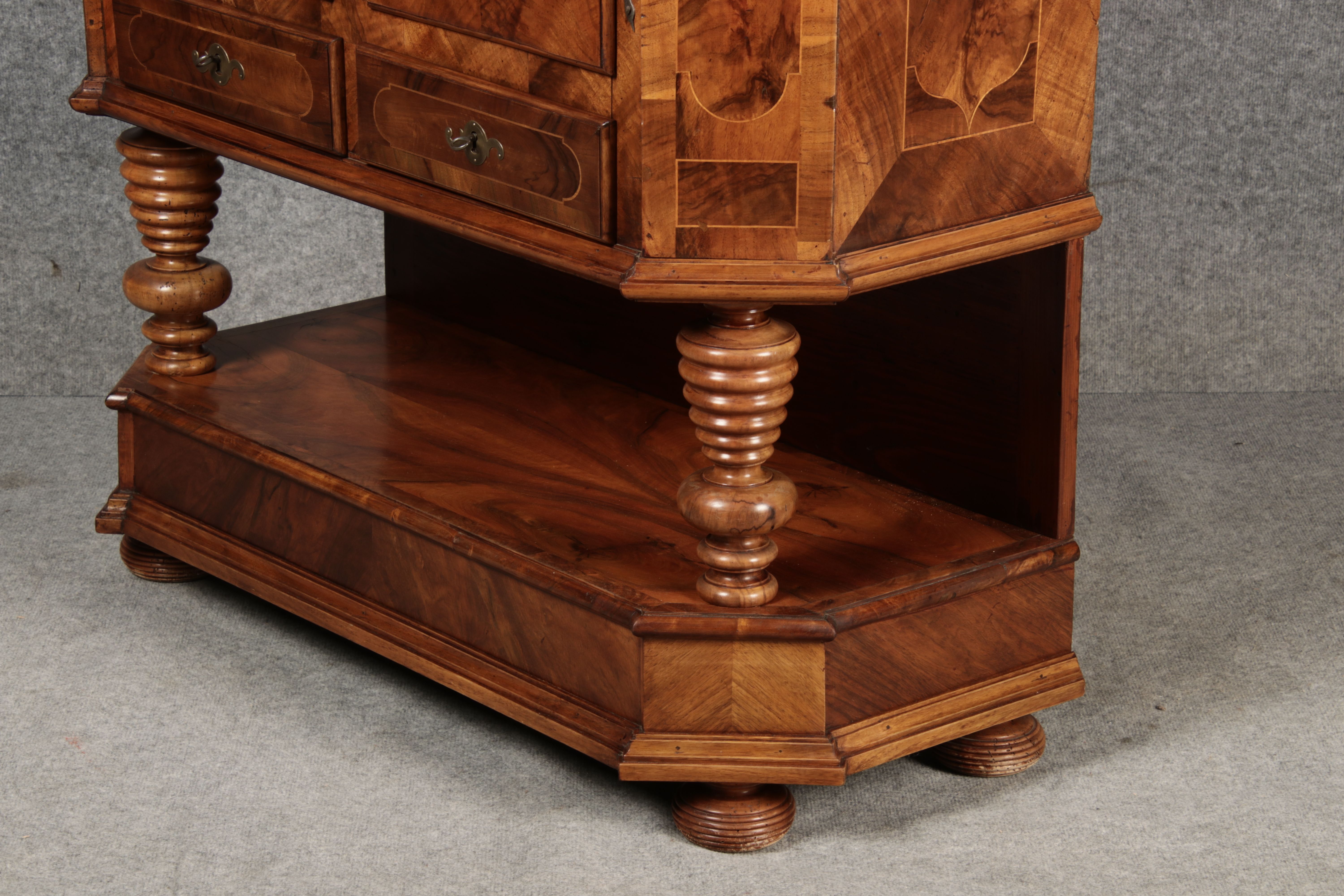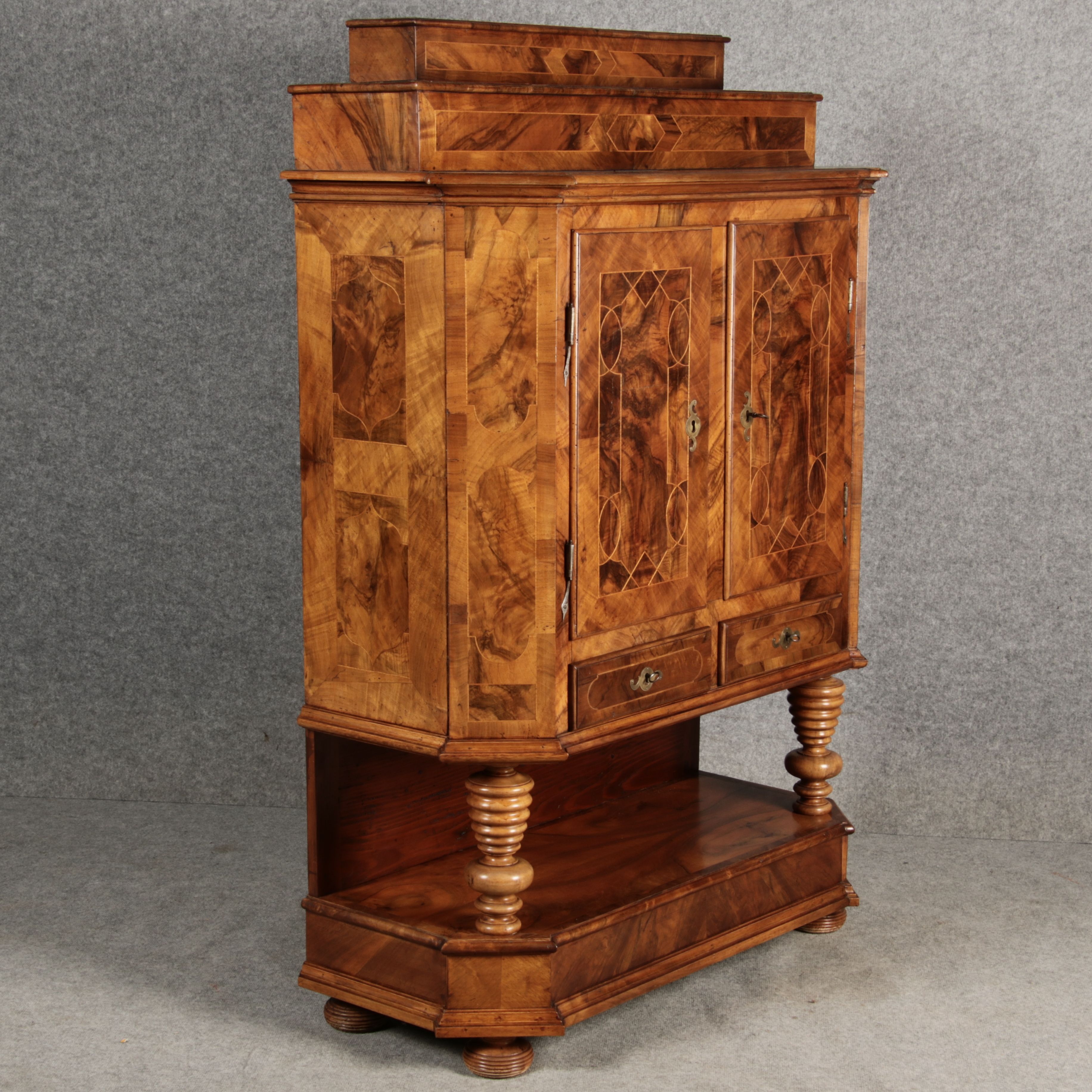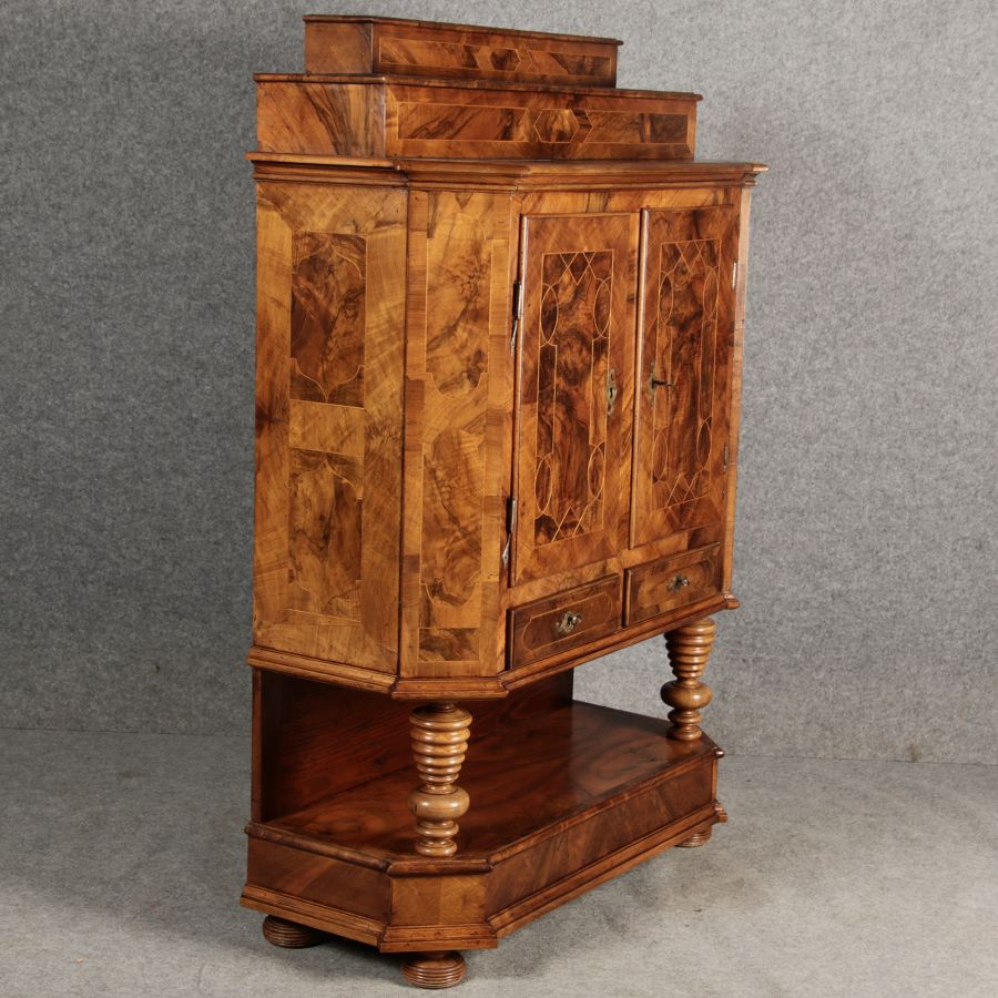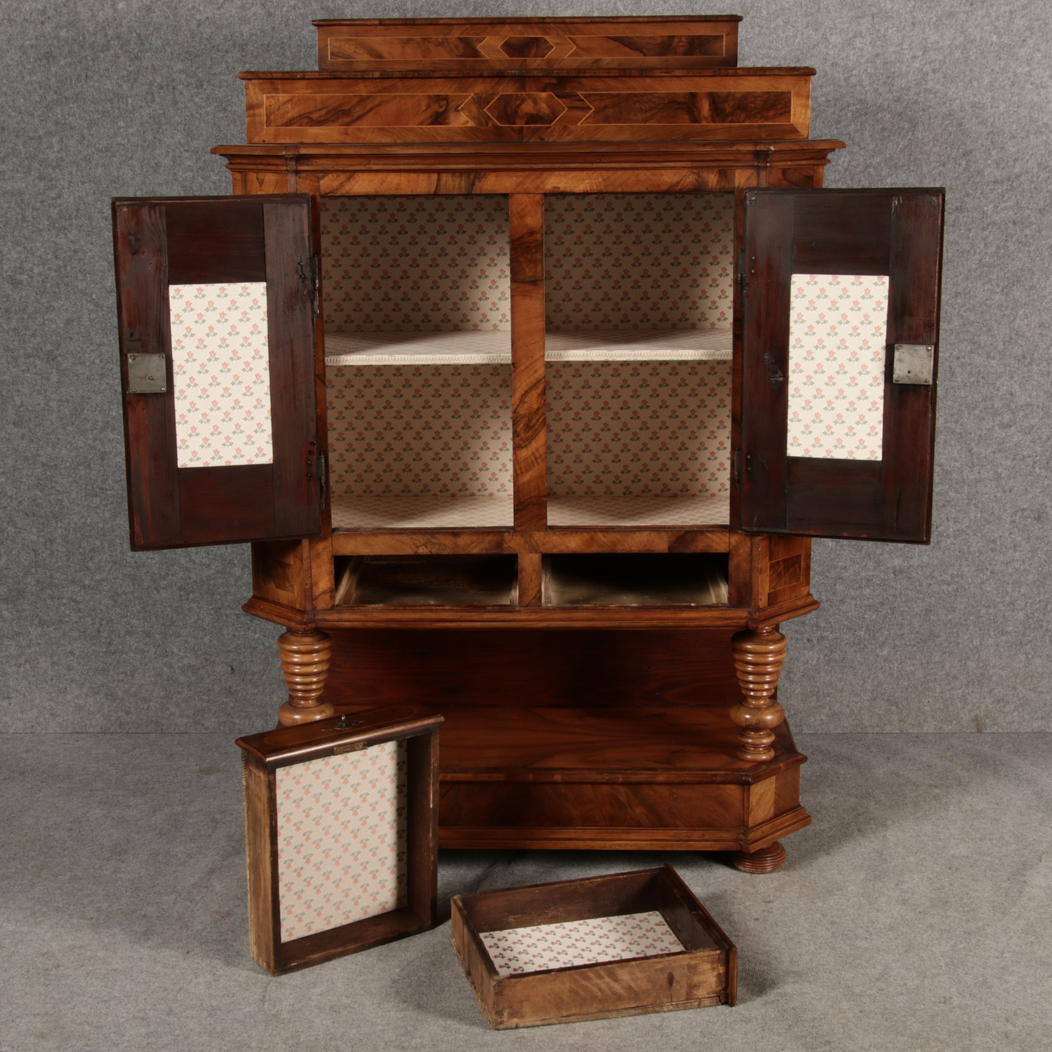 | Antiker Barock Stollenschrank Schrank Nussbaum mit Einlegearbeiten um 1720-50 |