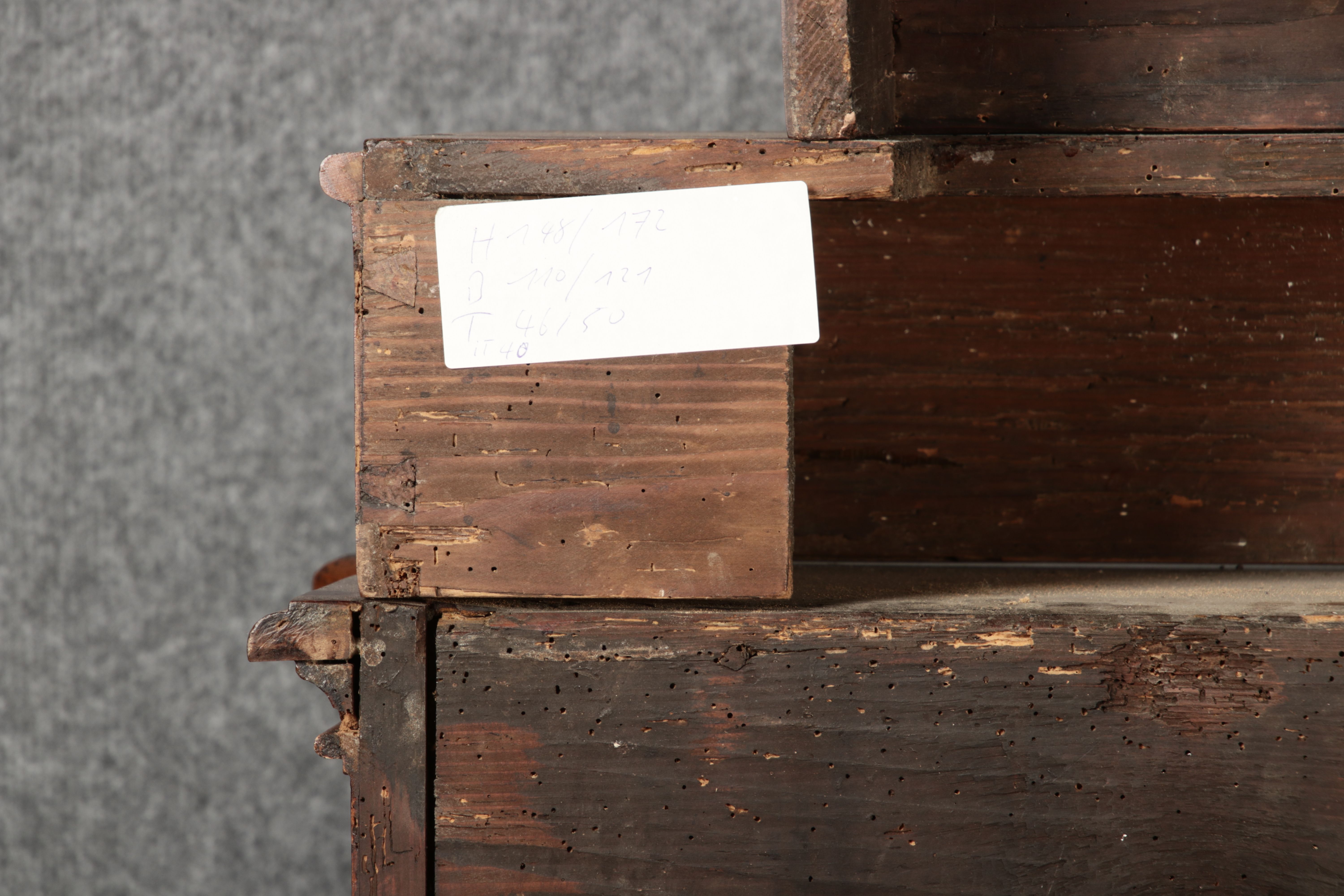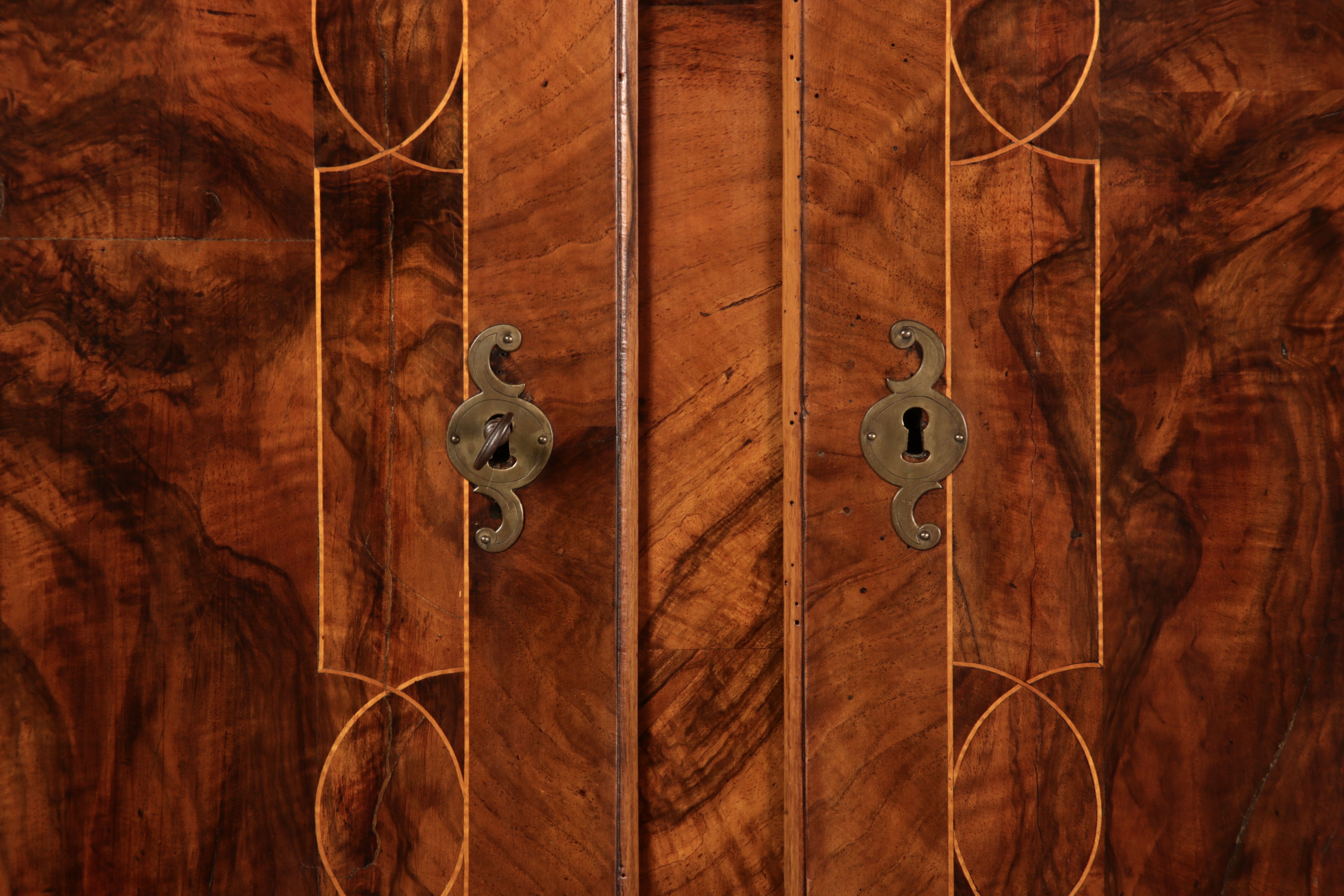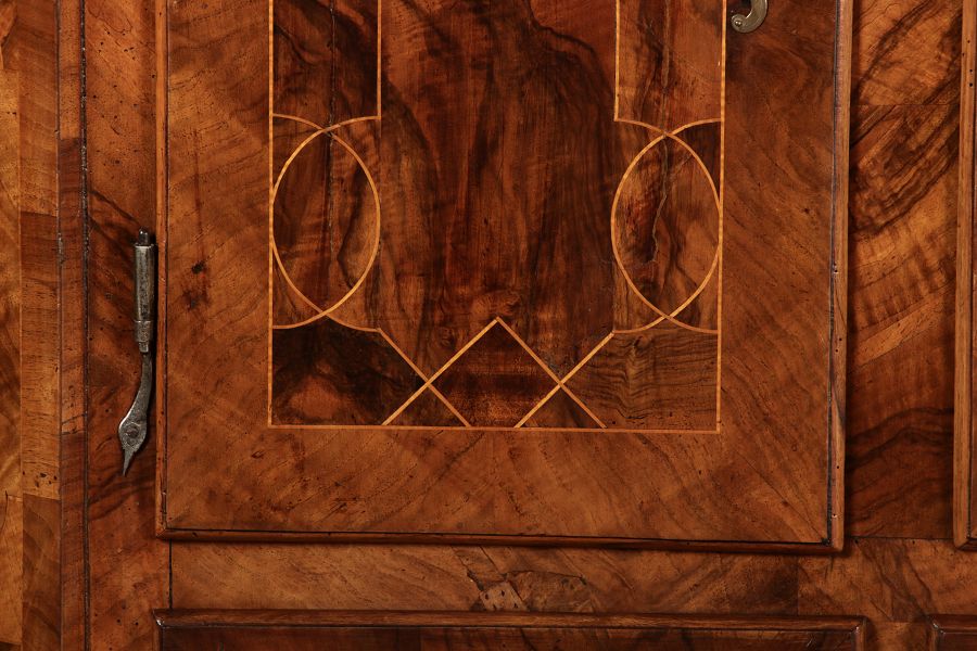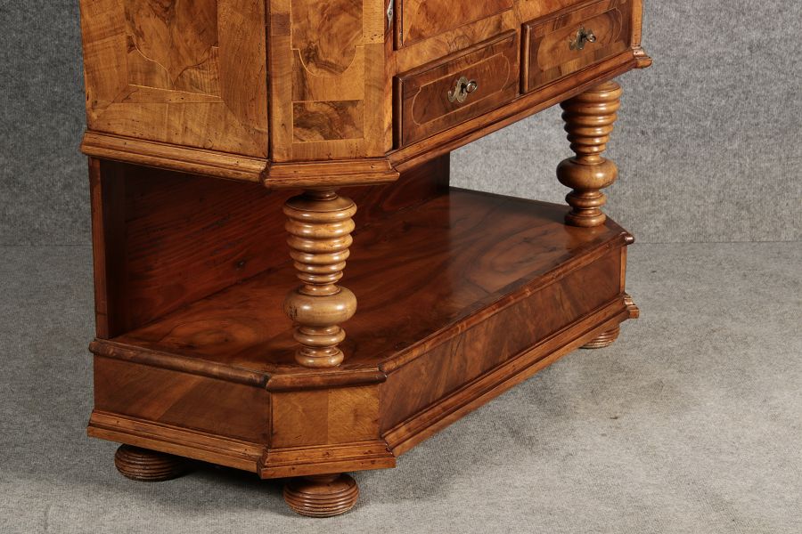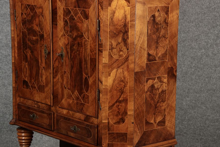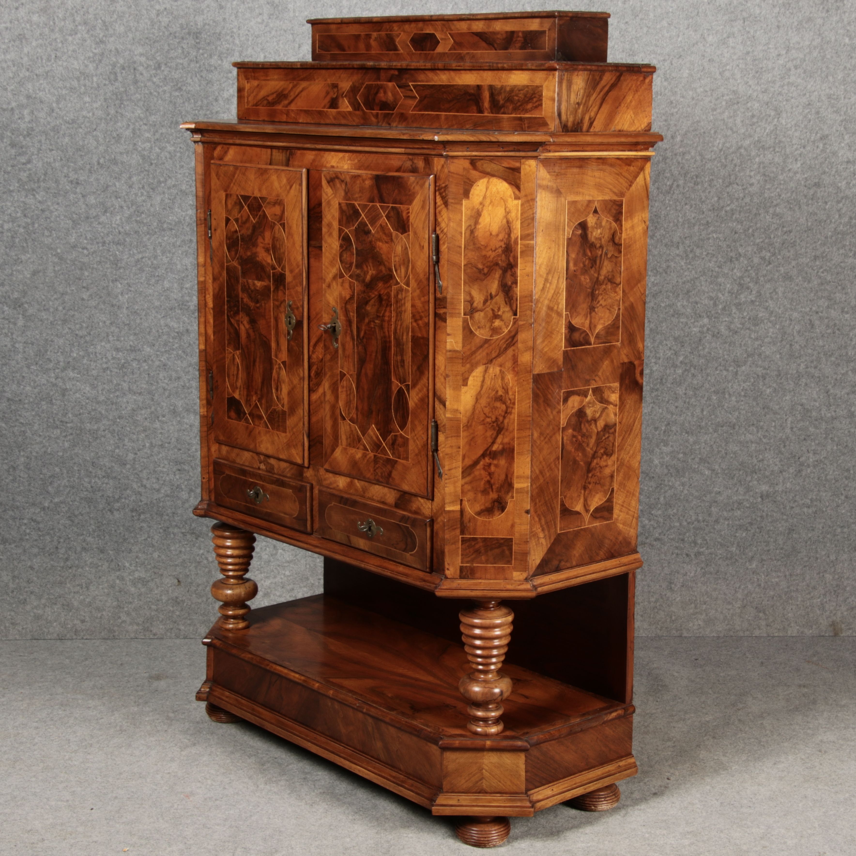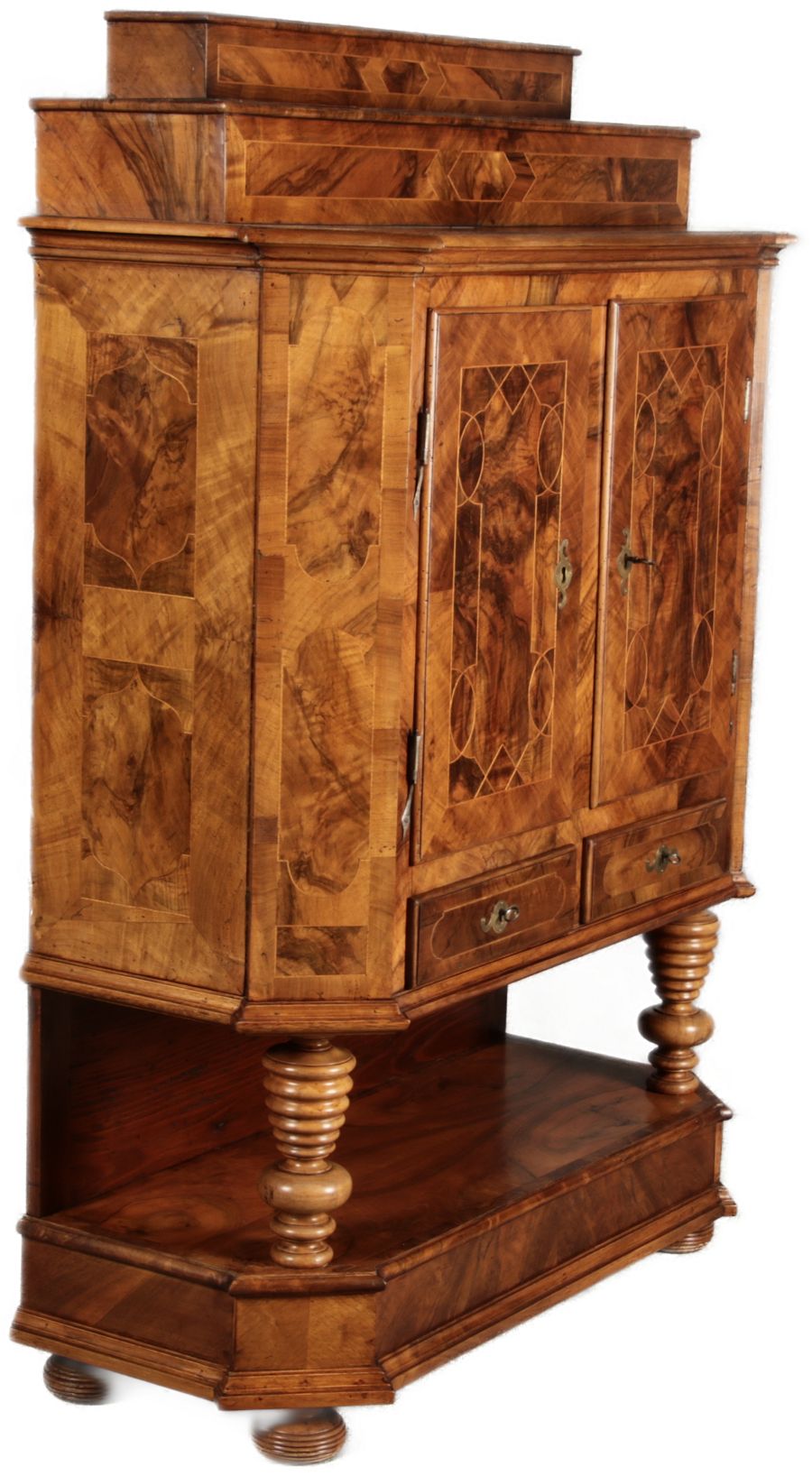 | Antiker Barock Stollenschrank Schrank Nussbaum mit Einlegearbeiten um 1720-50 |