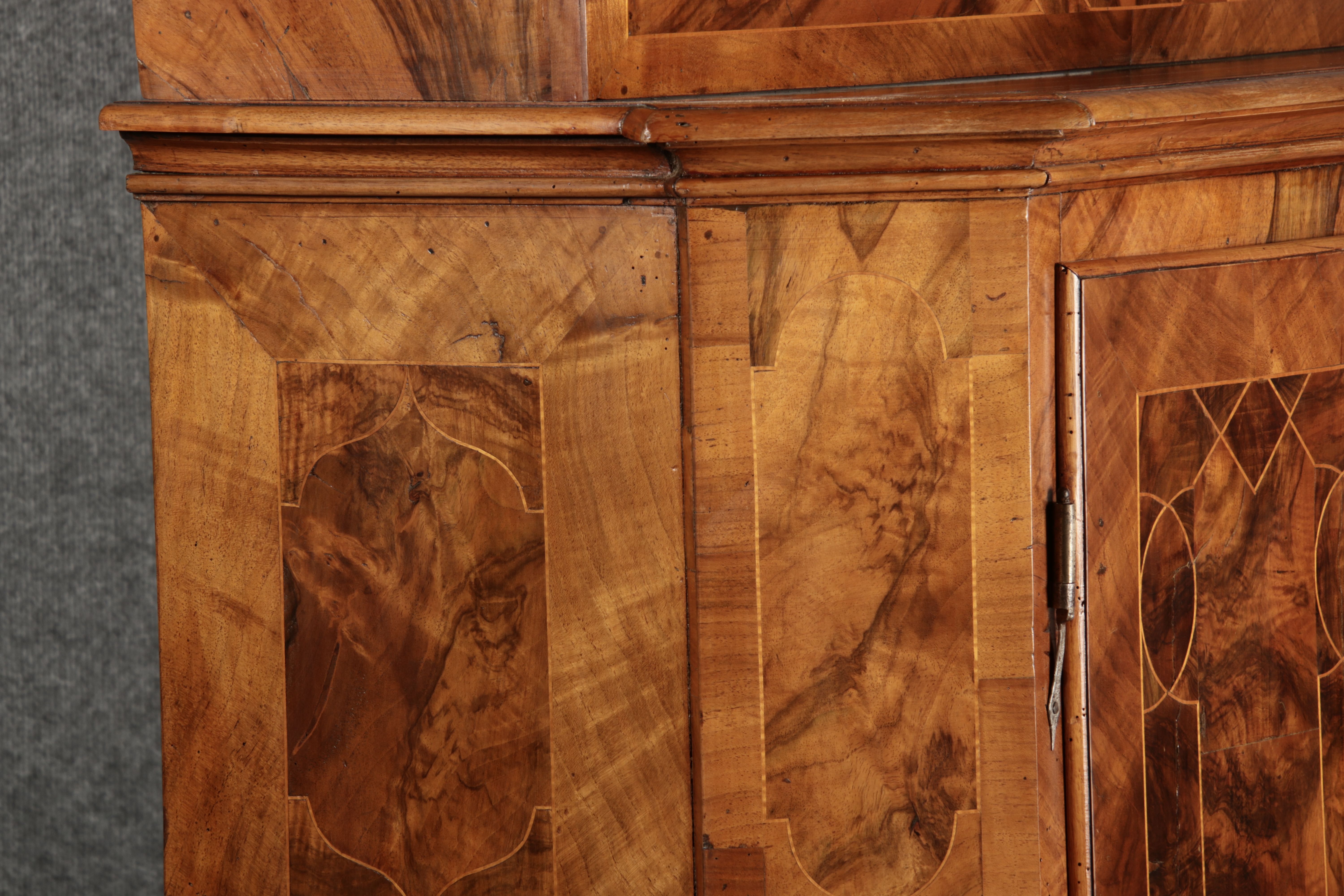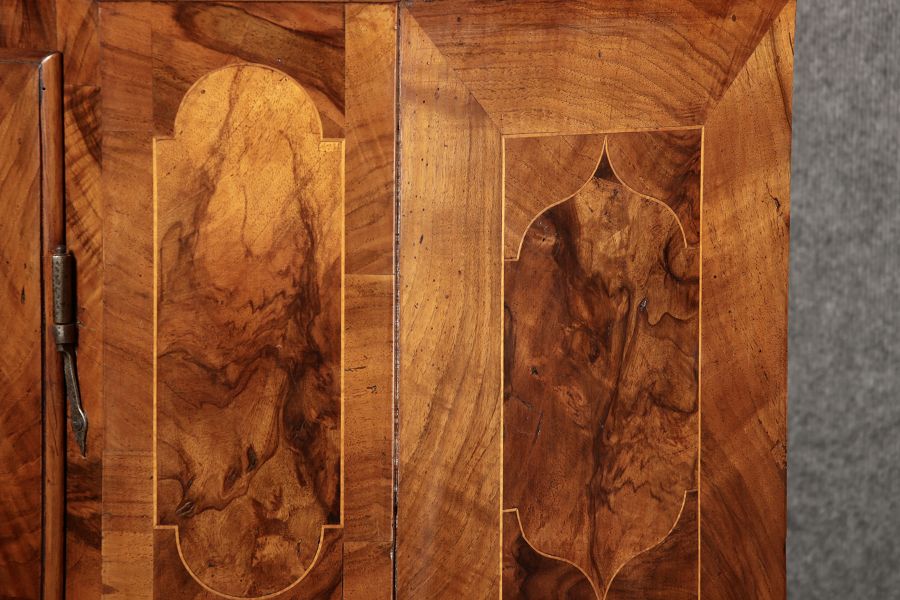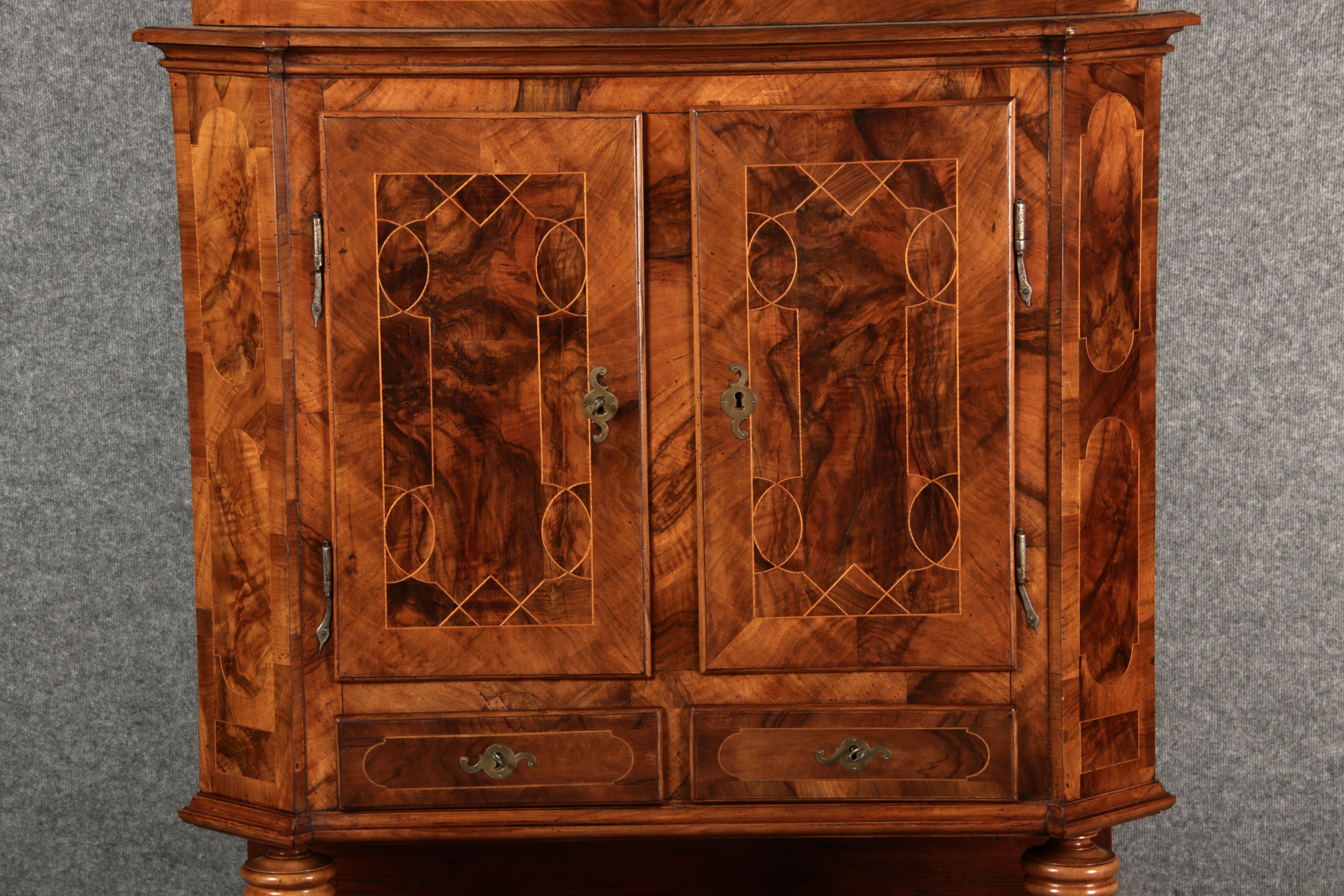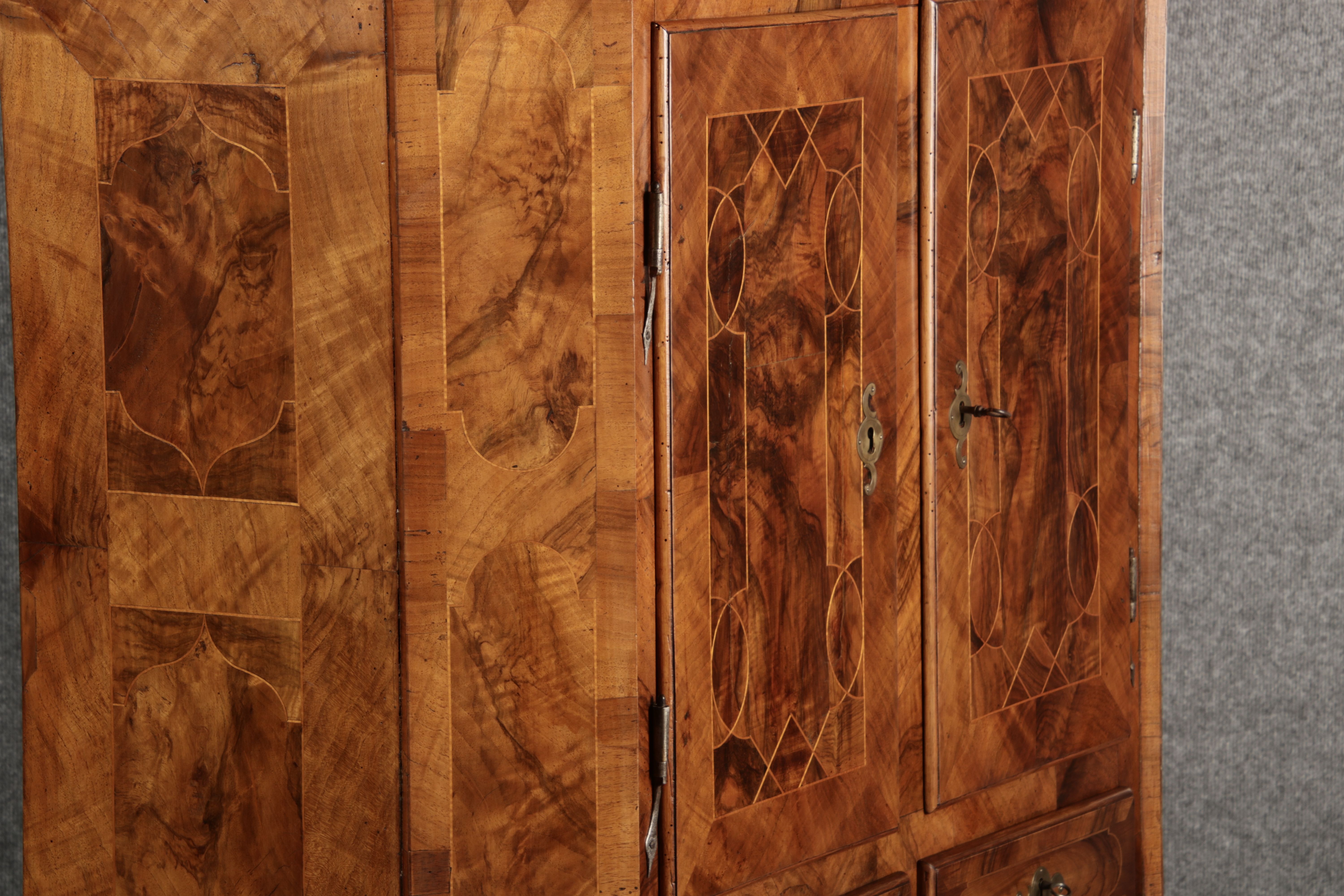 | Antiker Barock Stollenschrank Schrank Nussbaum mit Einlegearbeiten um 1730-50 |