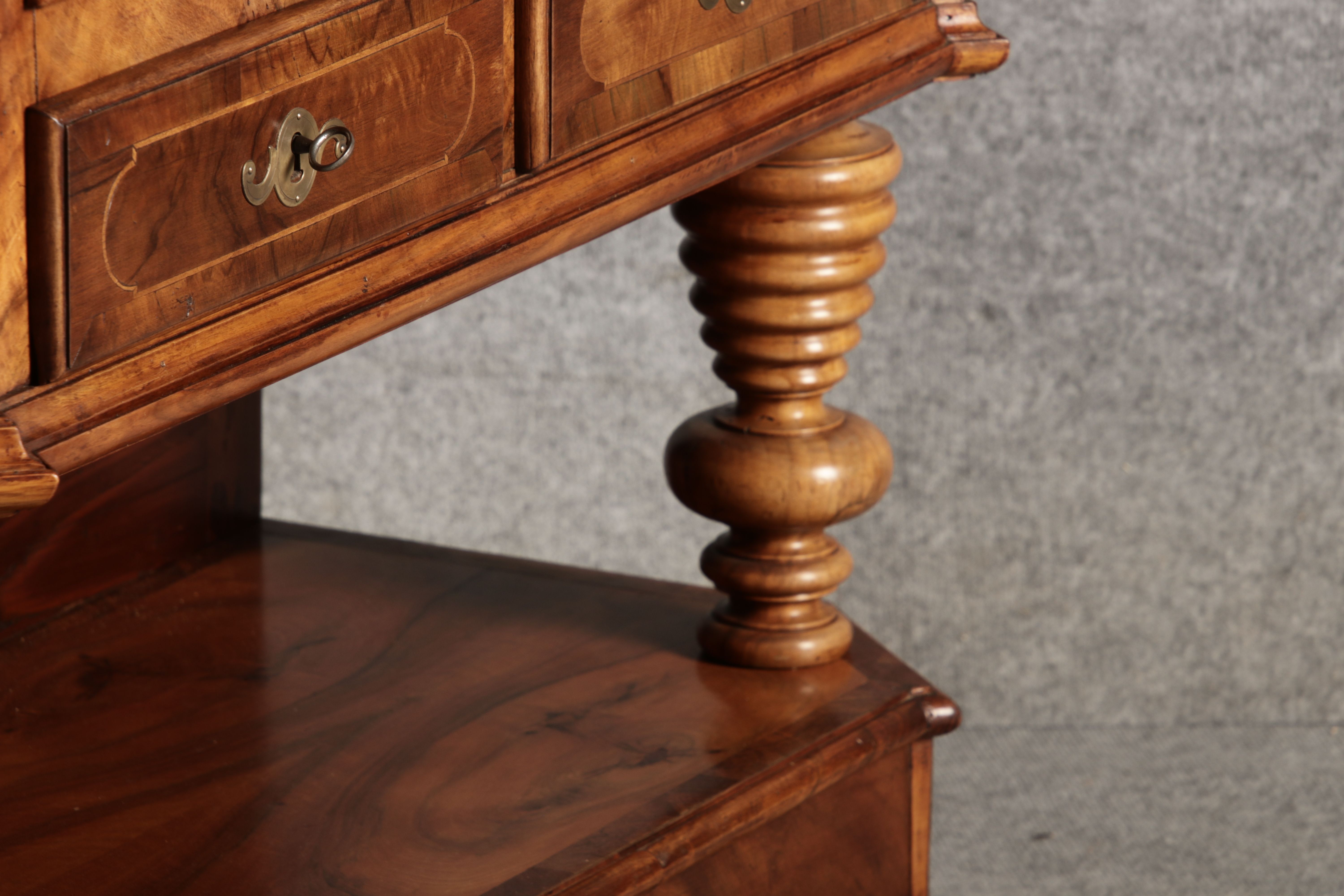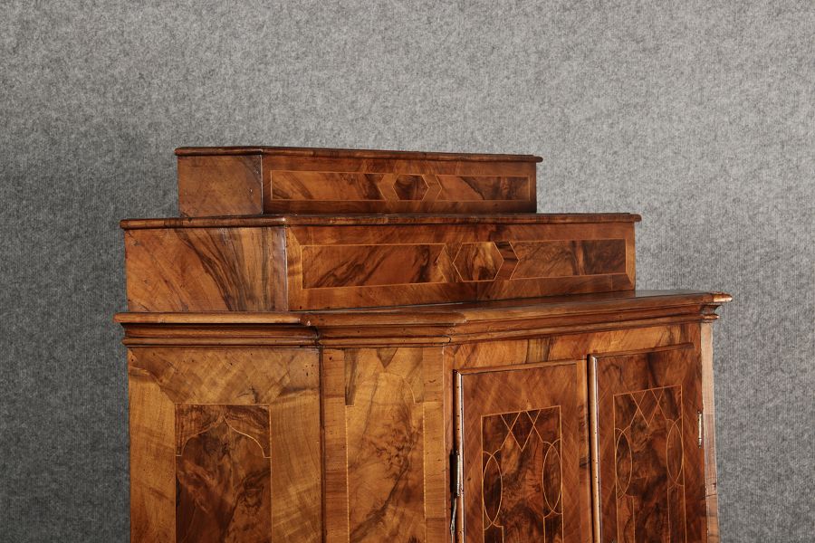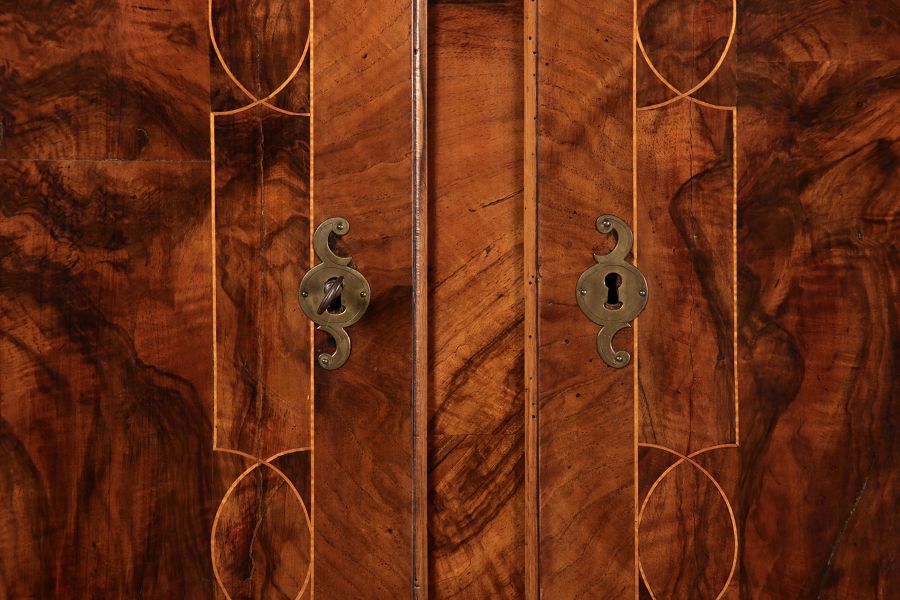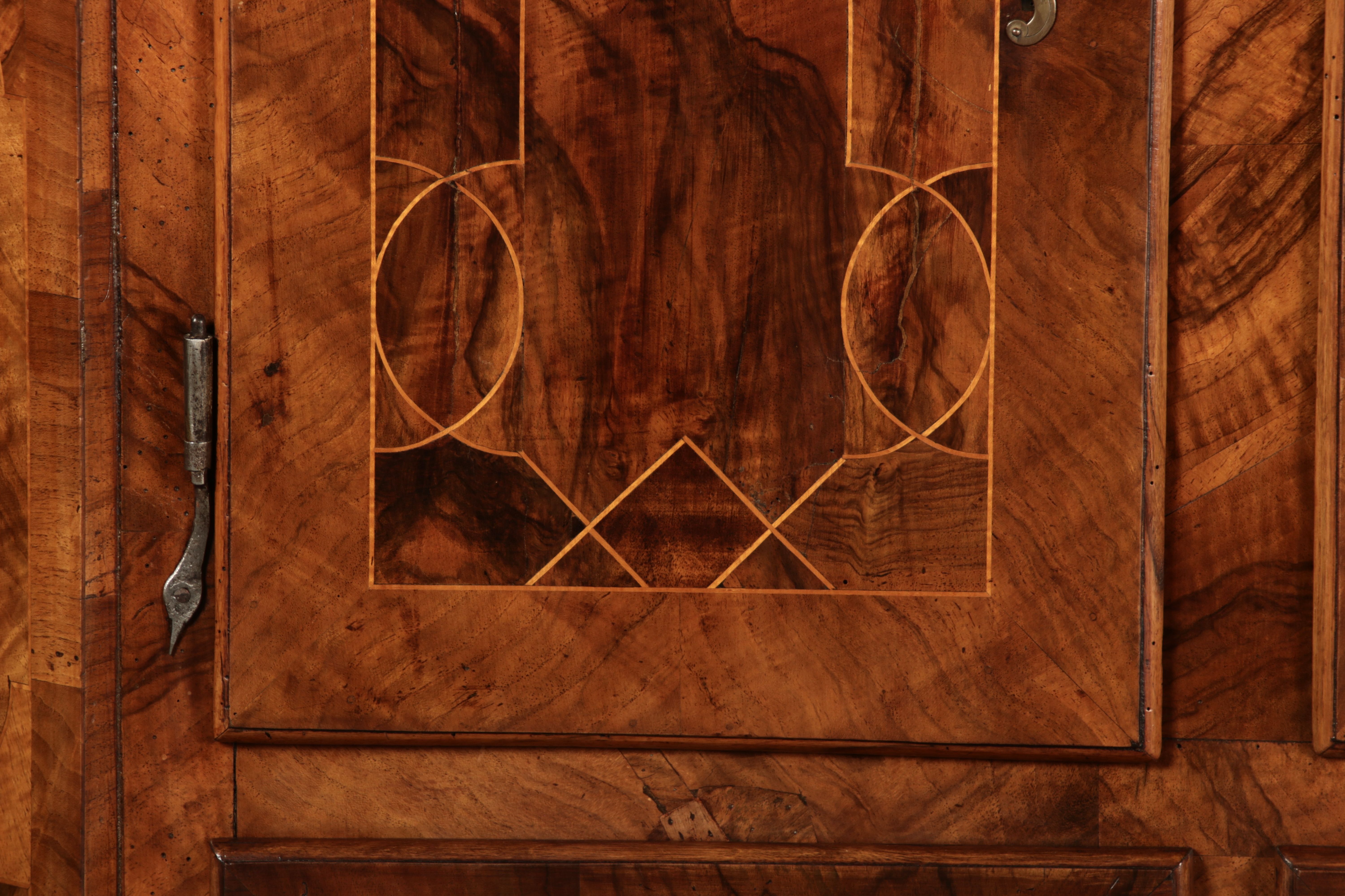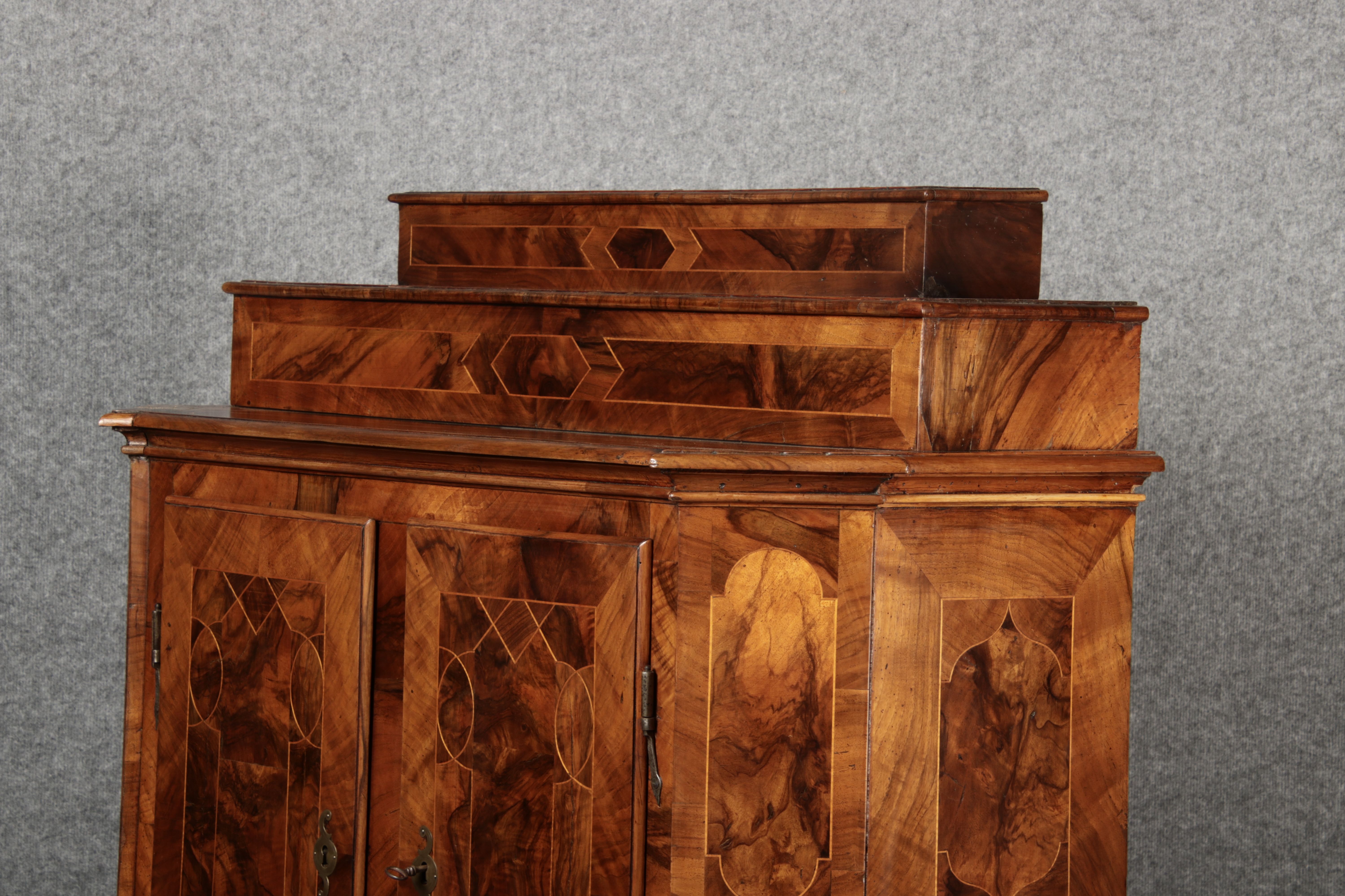 | Antiker Barock Stollenschrank Schrank Nussbaum mit Einlegearbeiten um 1730-50 |