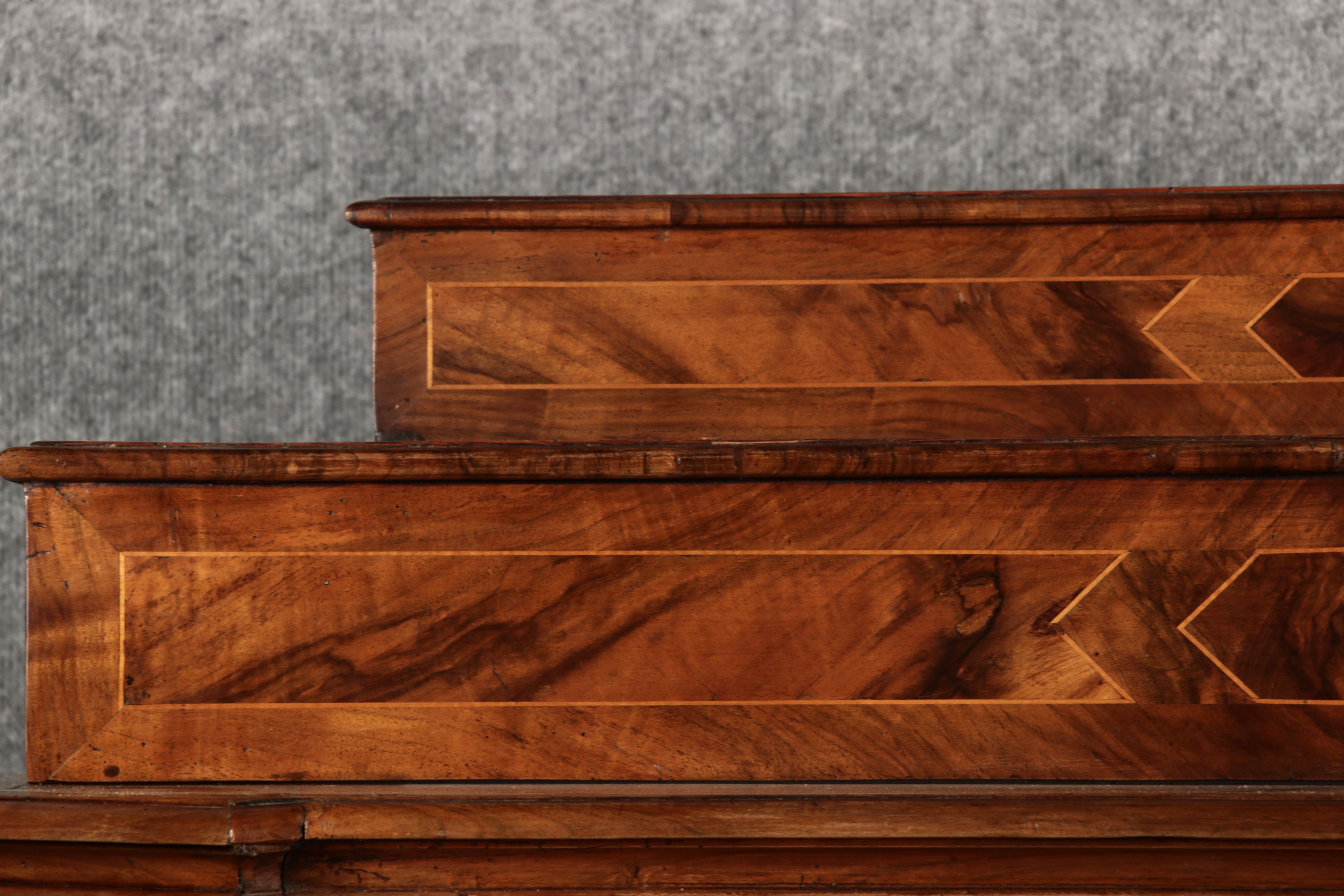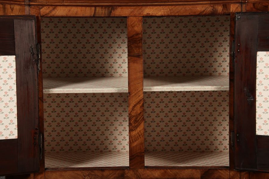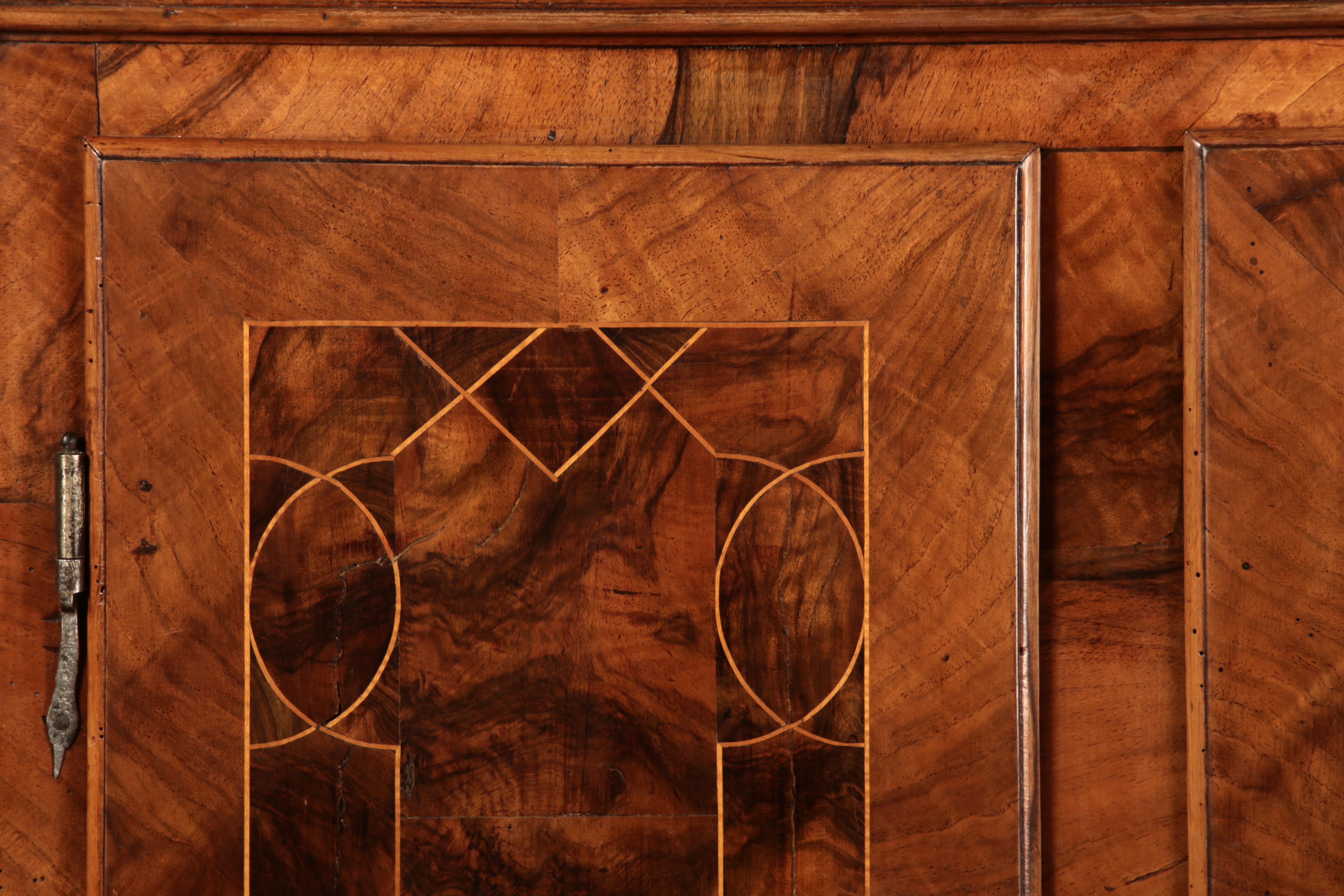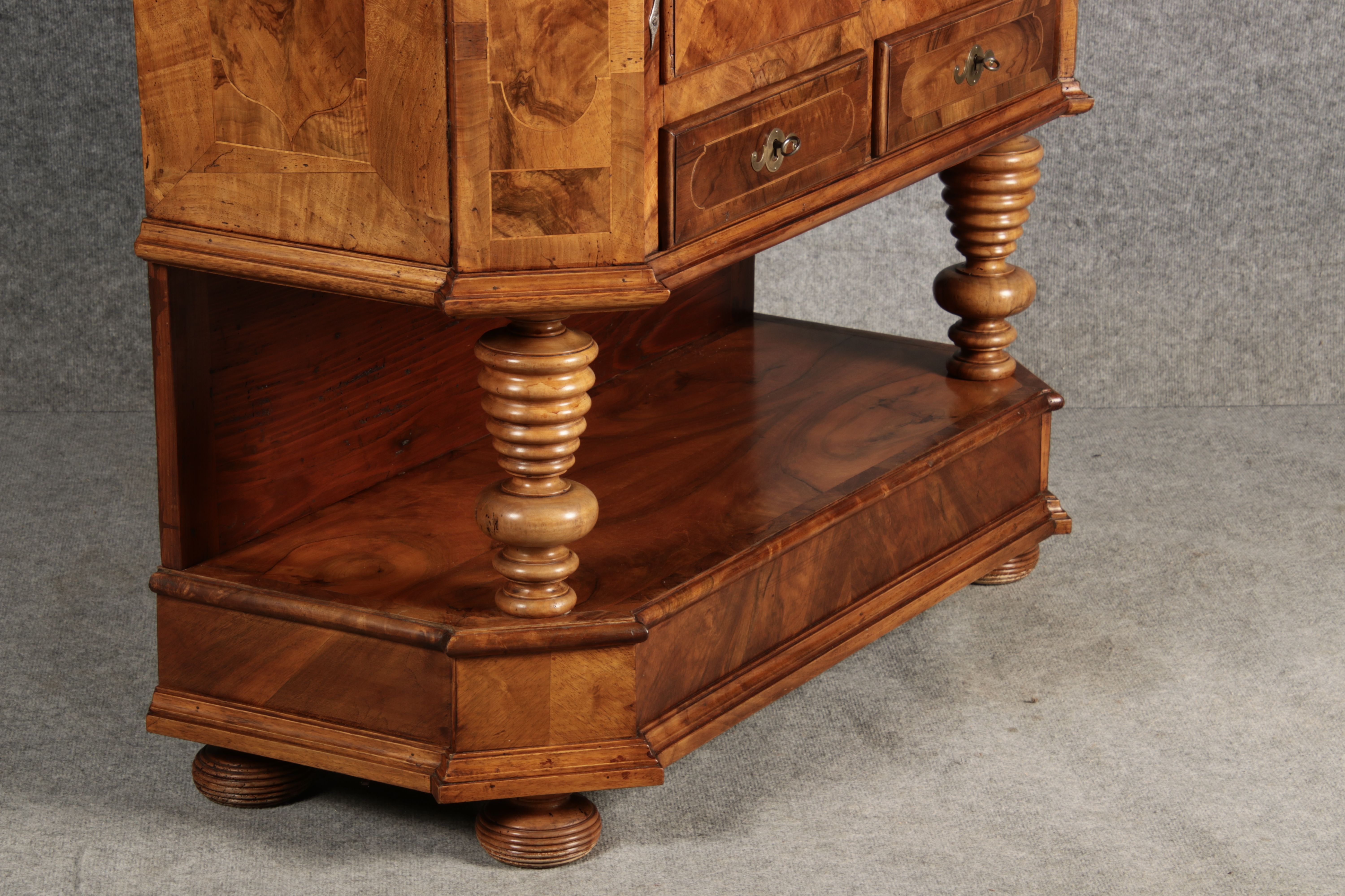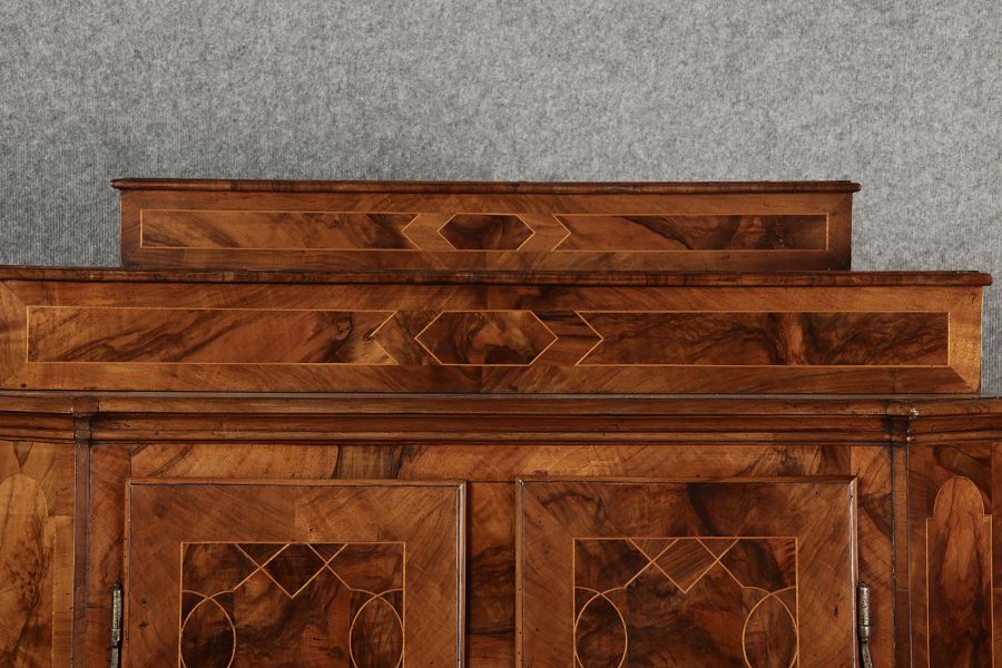 | Antiker Barock Stollenschrank Schrank Nussbaum mit Einlegearbeiten um 1730-50 |