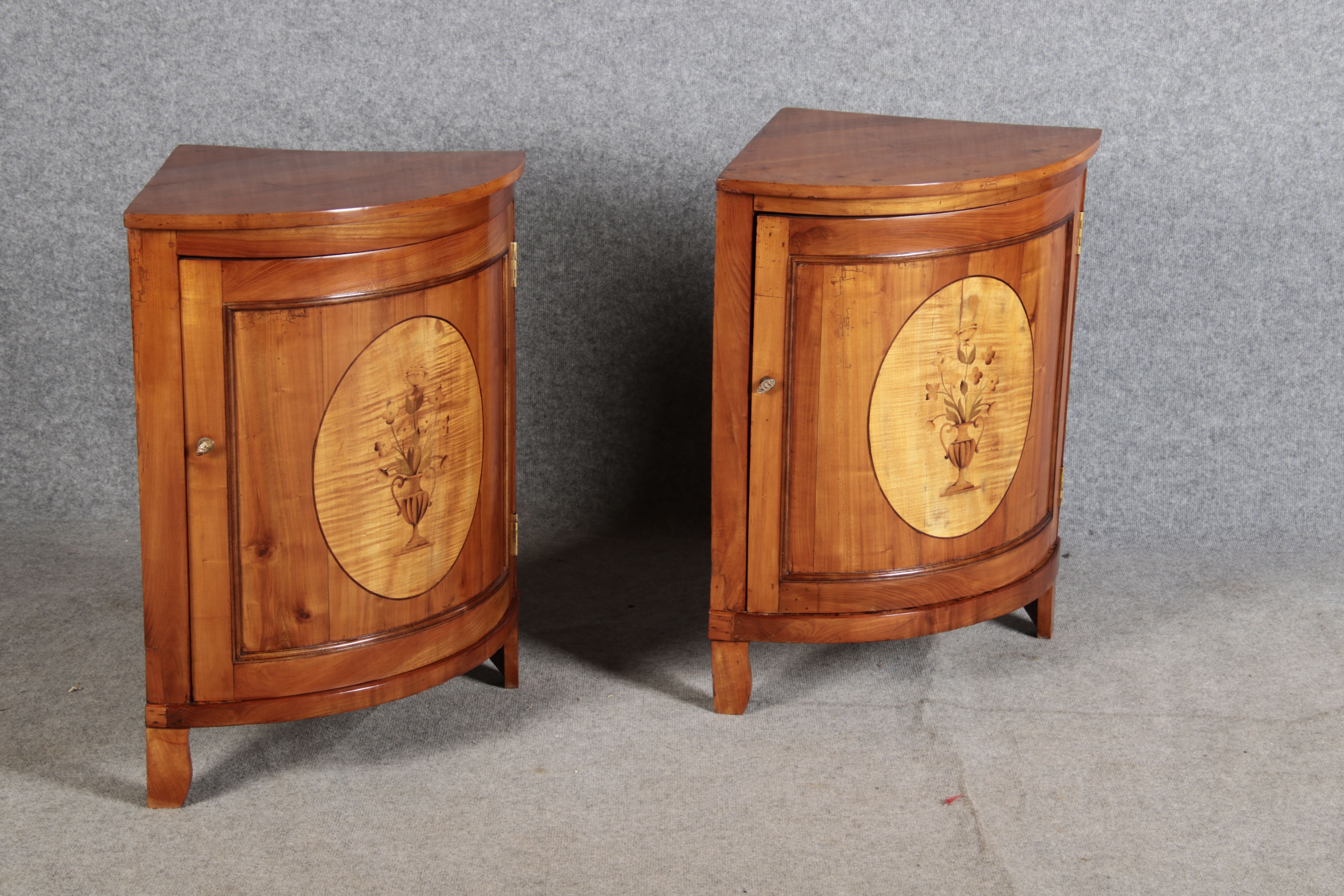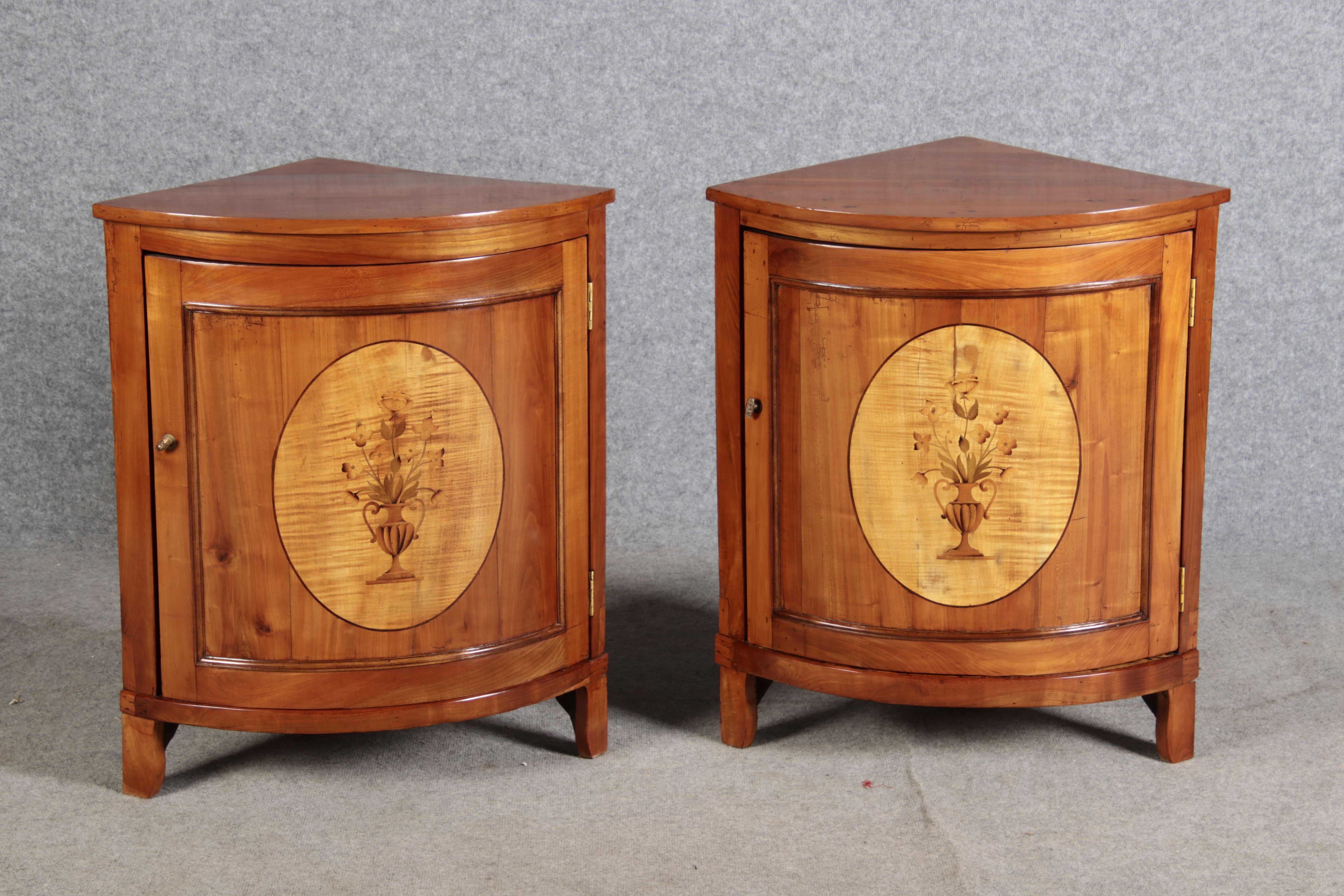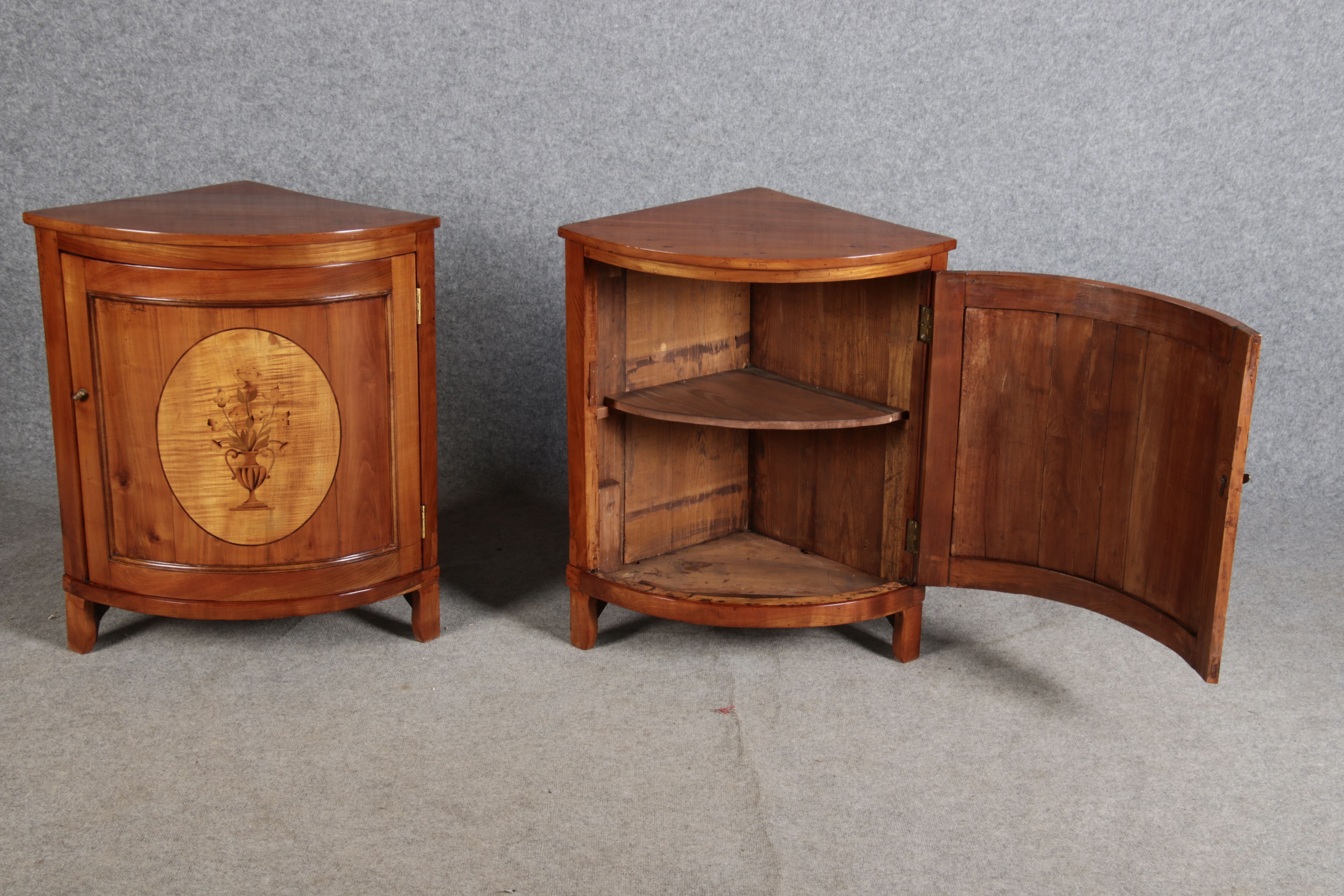 | Zwei kleine Antike Eckschränke um 1800 Kirschbaum |