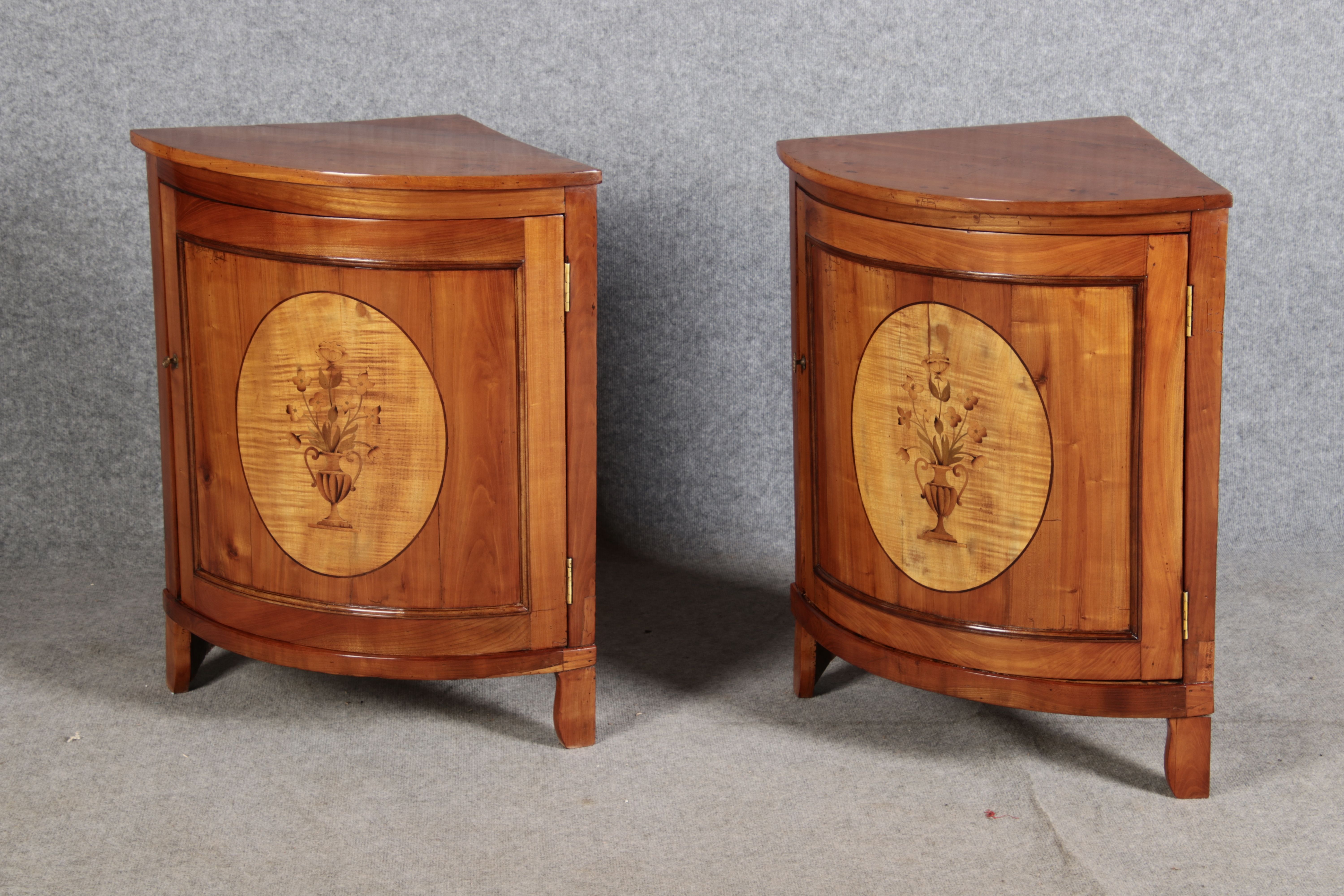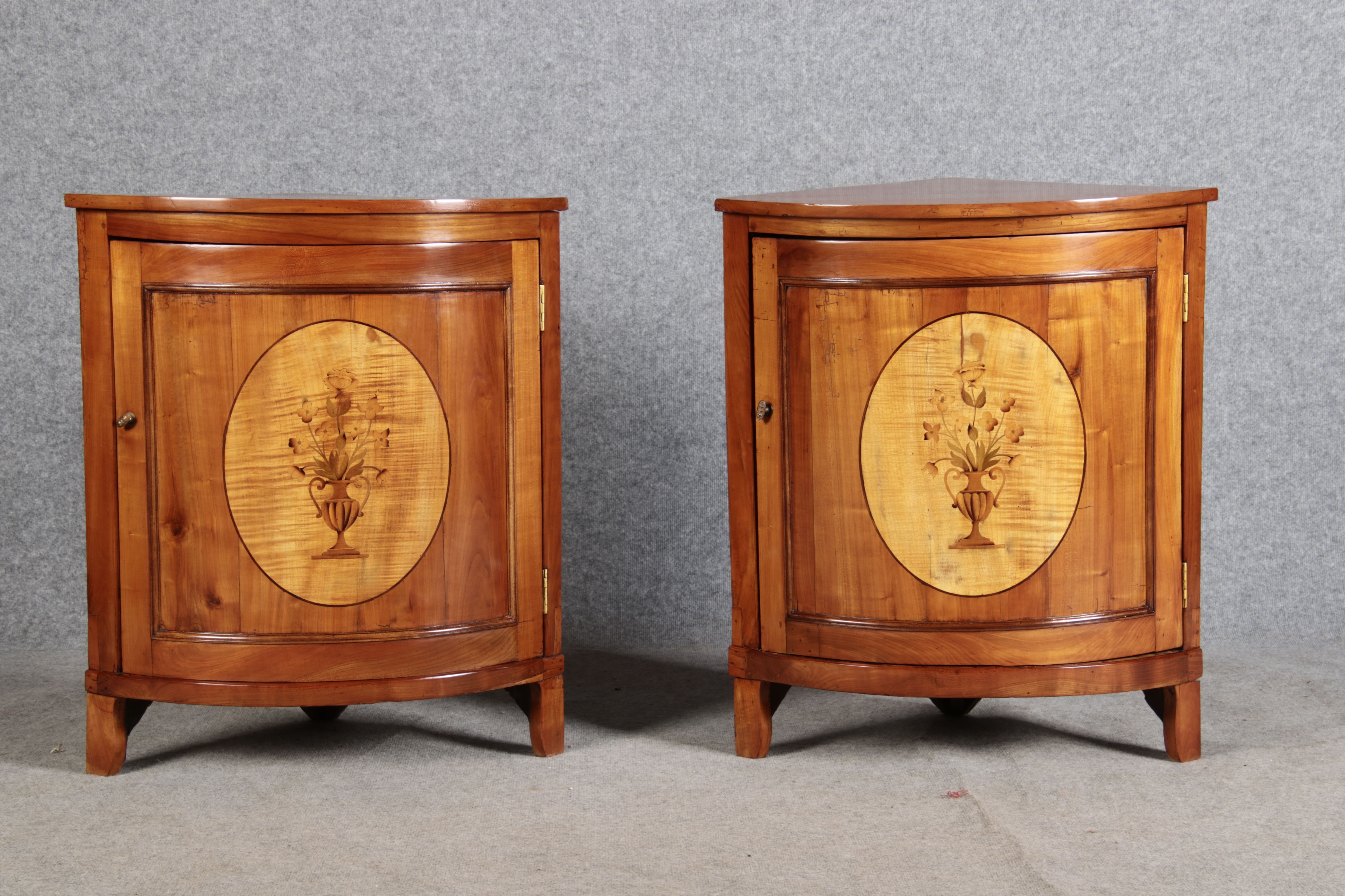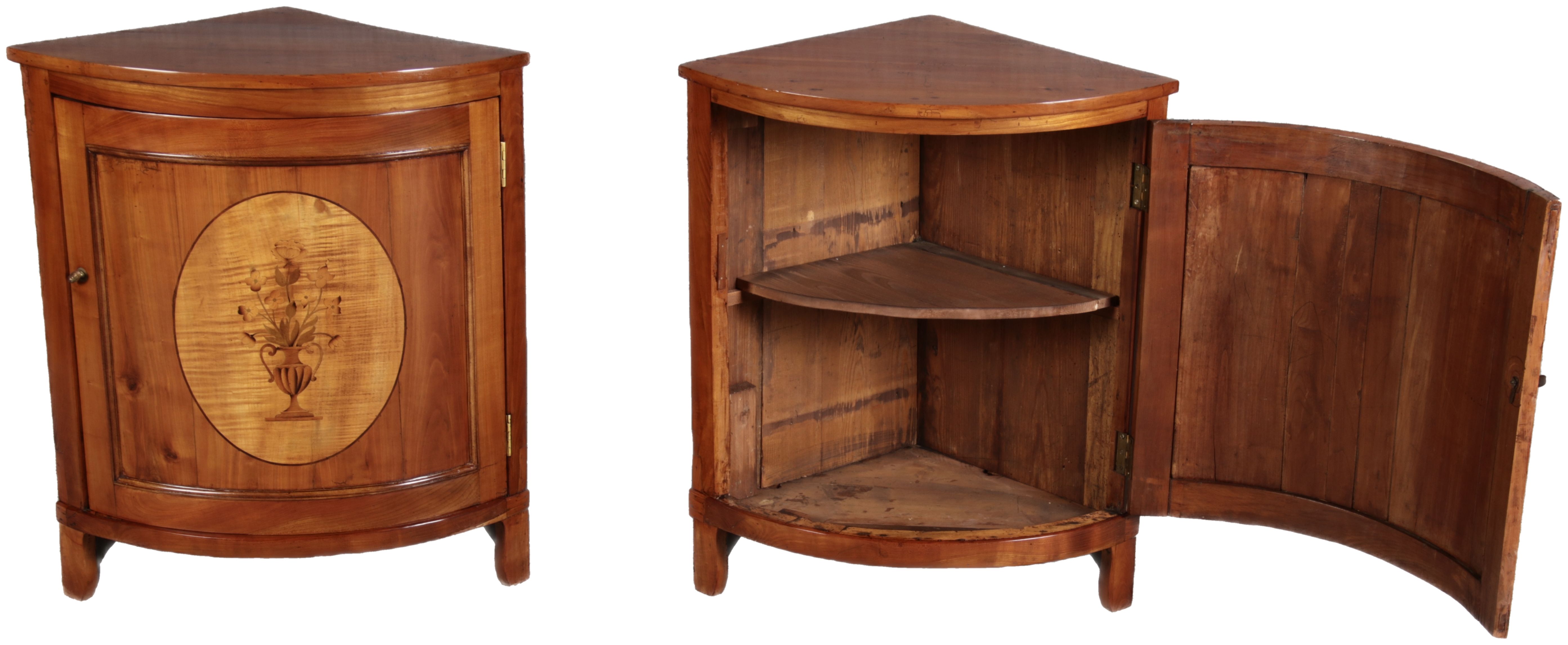 | Zwei kleine Antike Eckschränke um 1800 Kirschbaum |