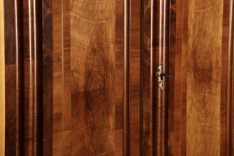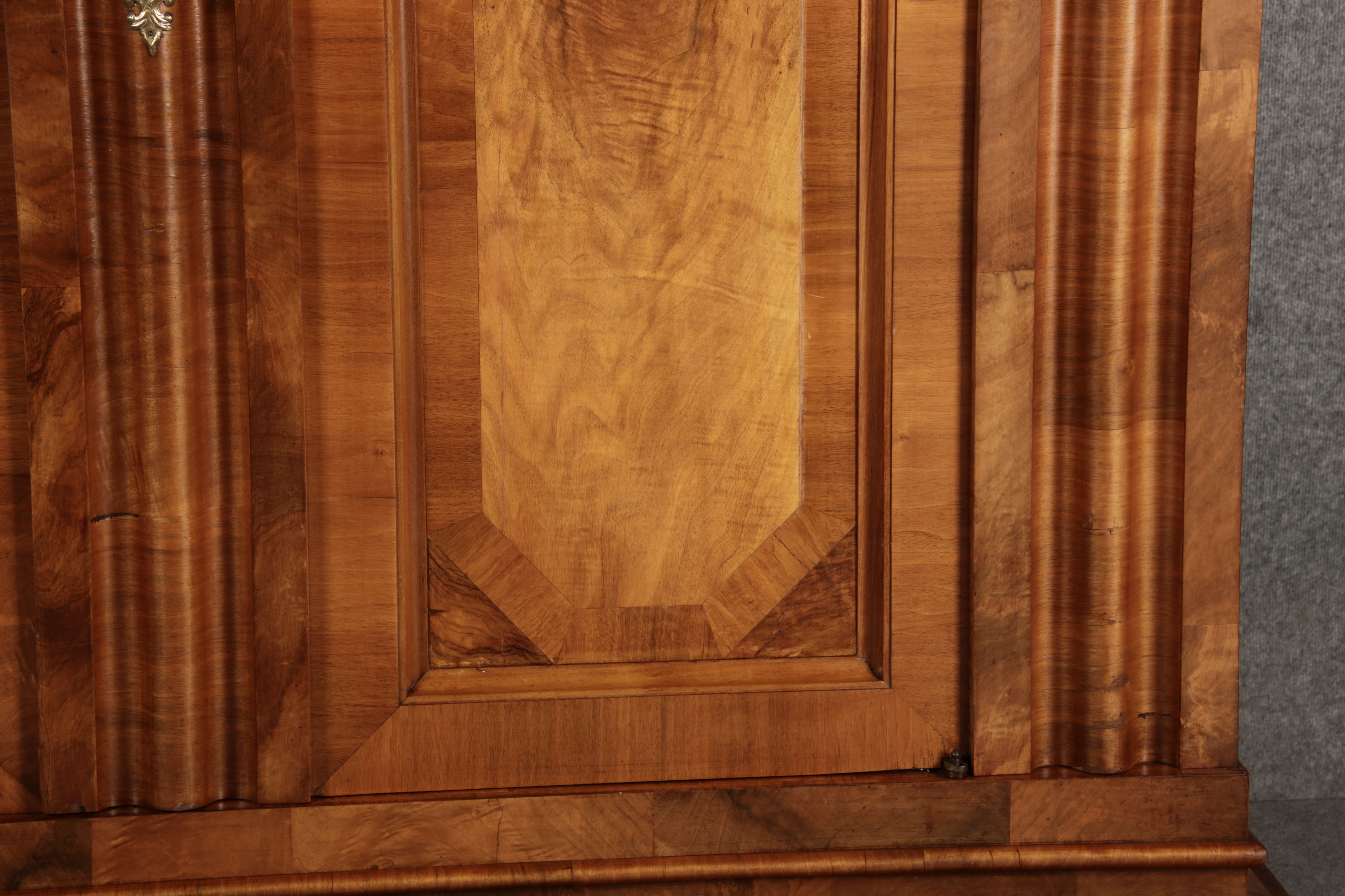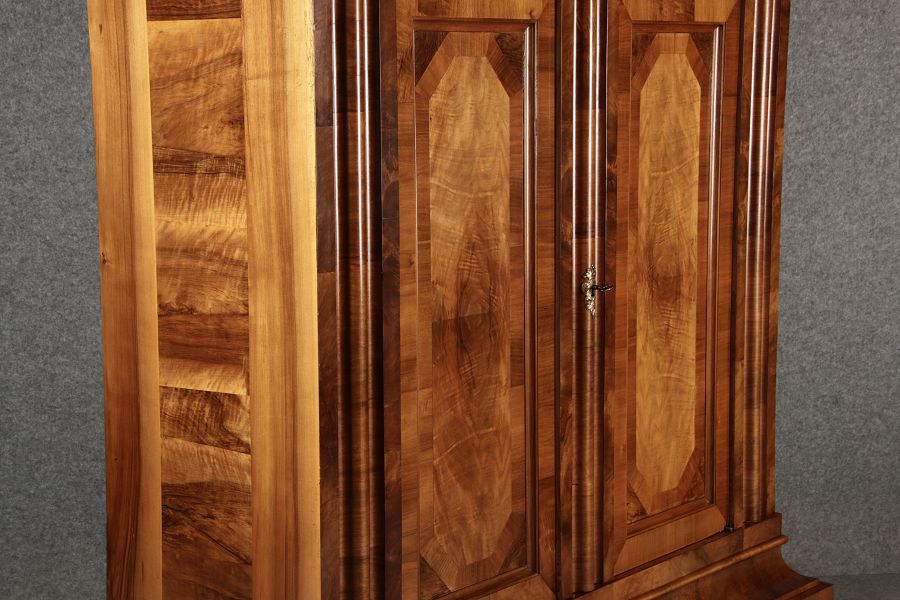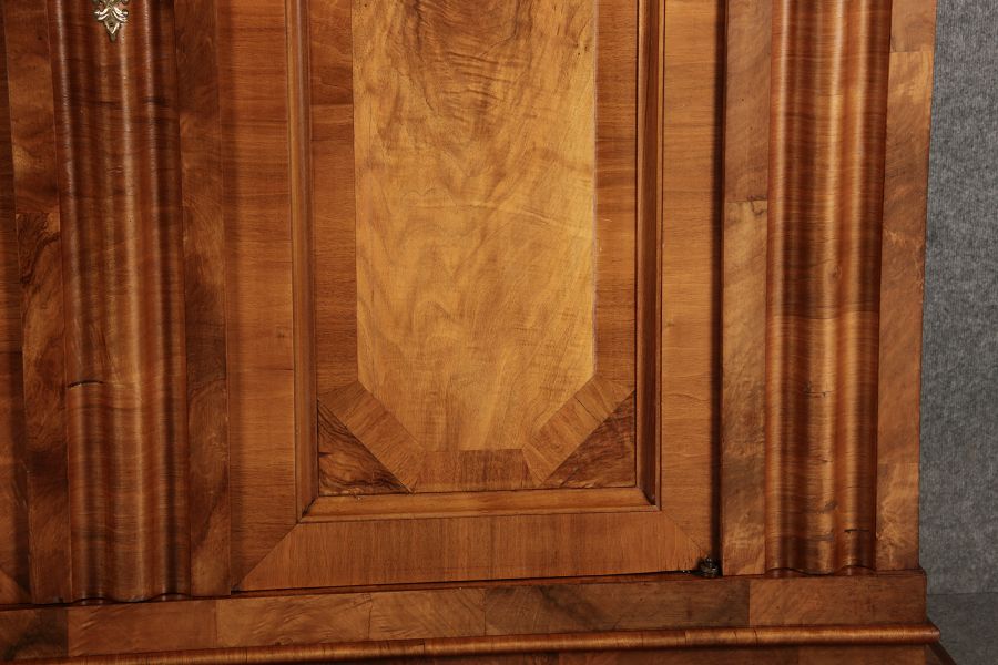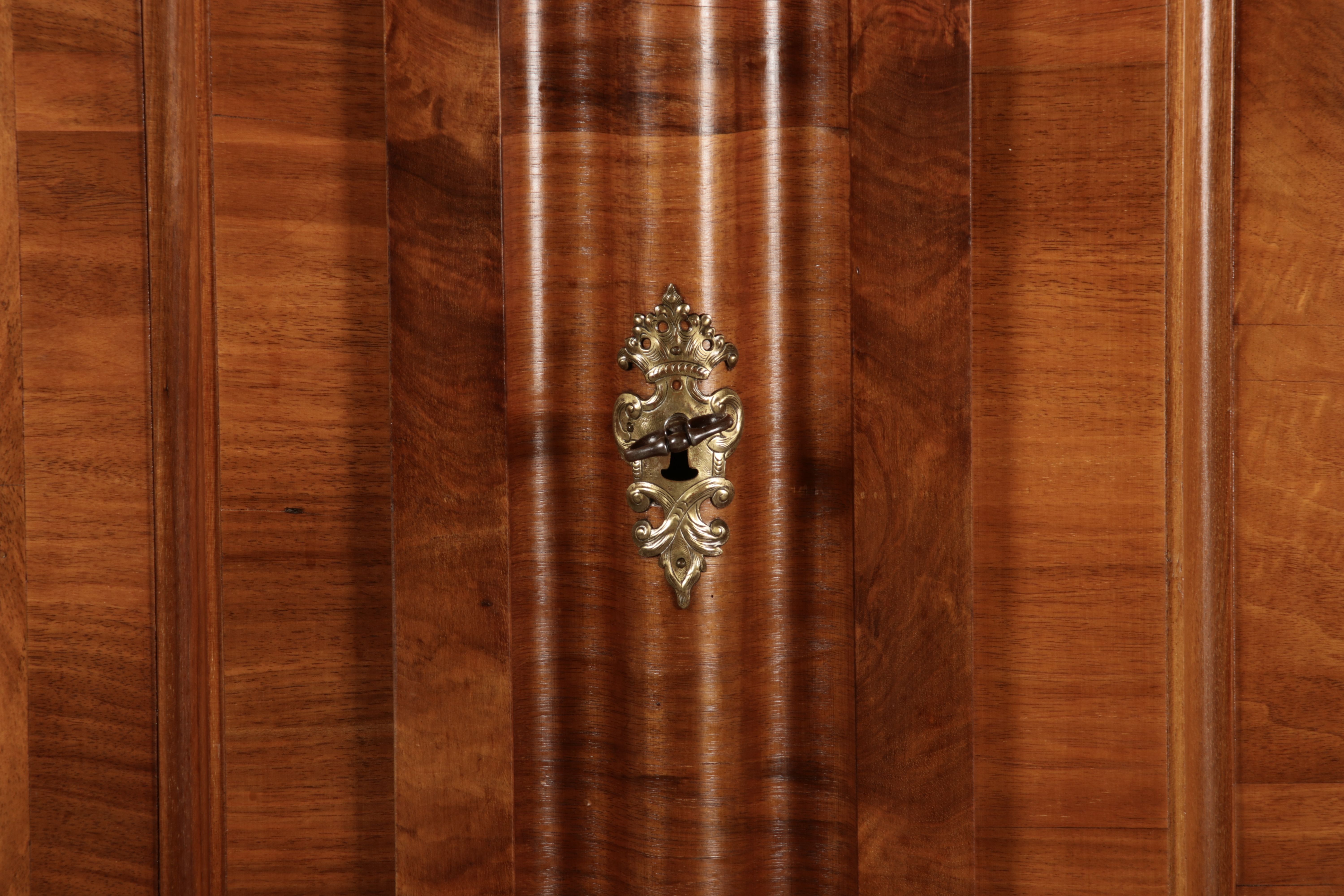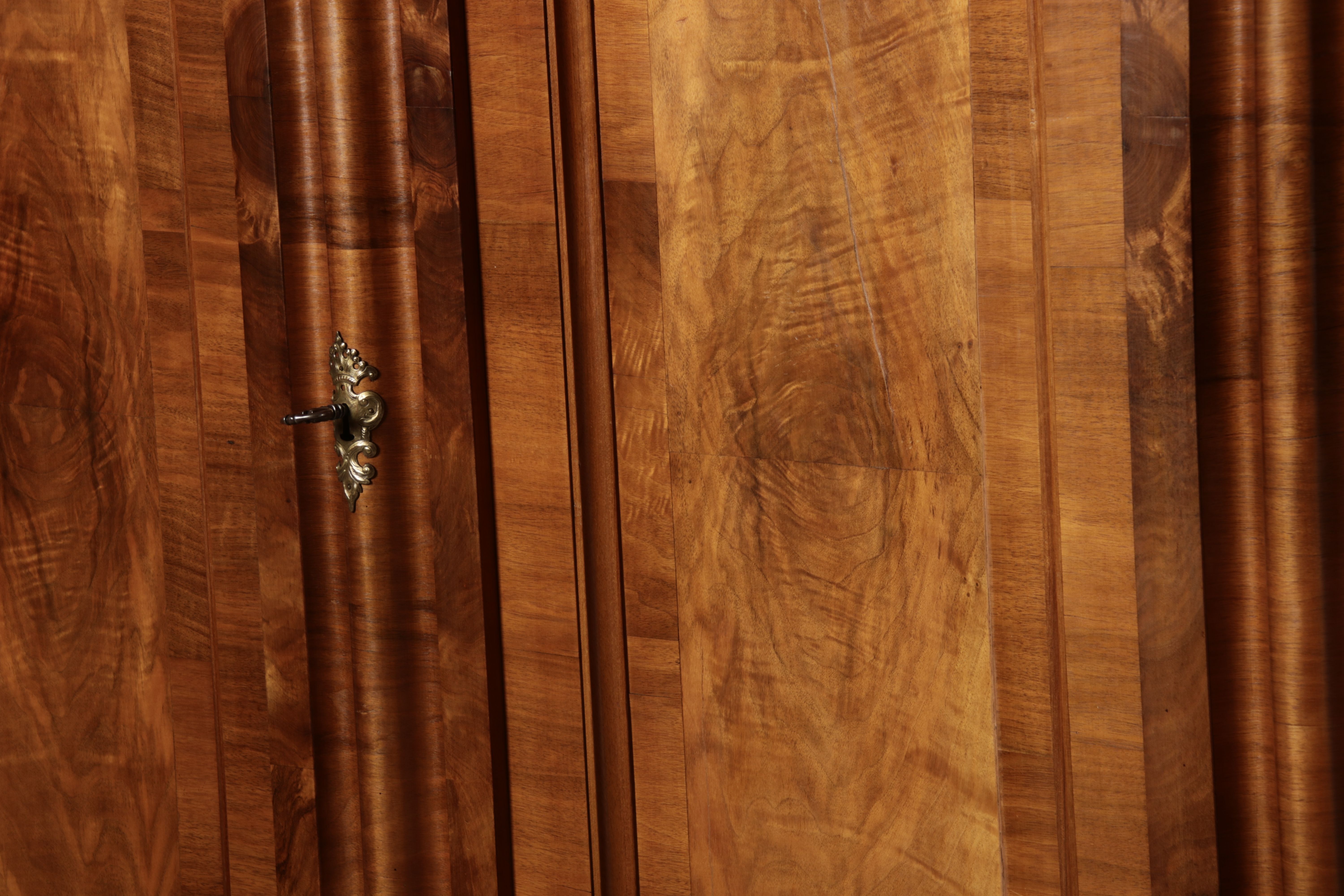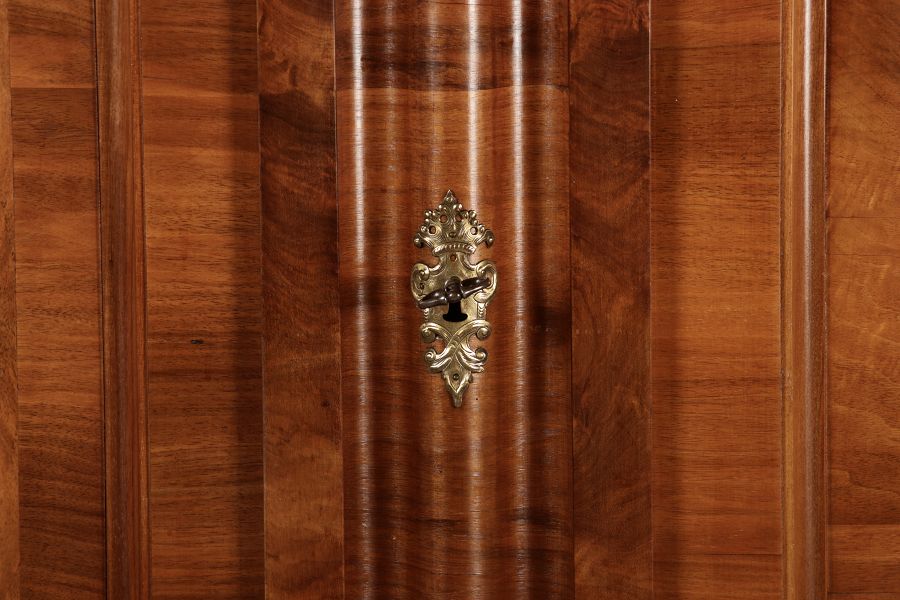| Antiker Barock- Halbwellen- Schrank Nussbaumfurniert um 1750 Einschloss |