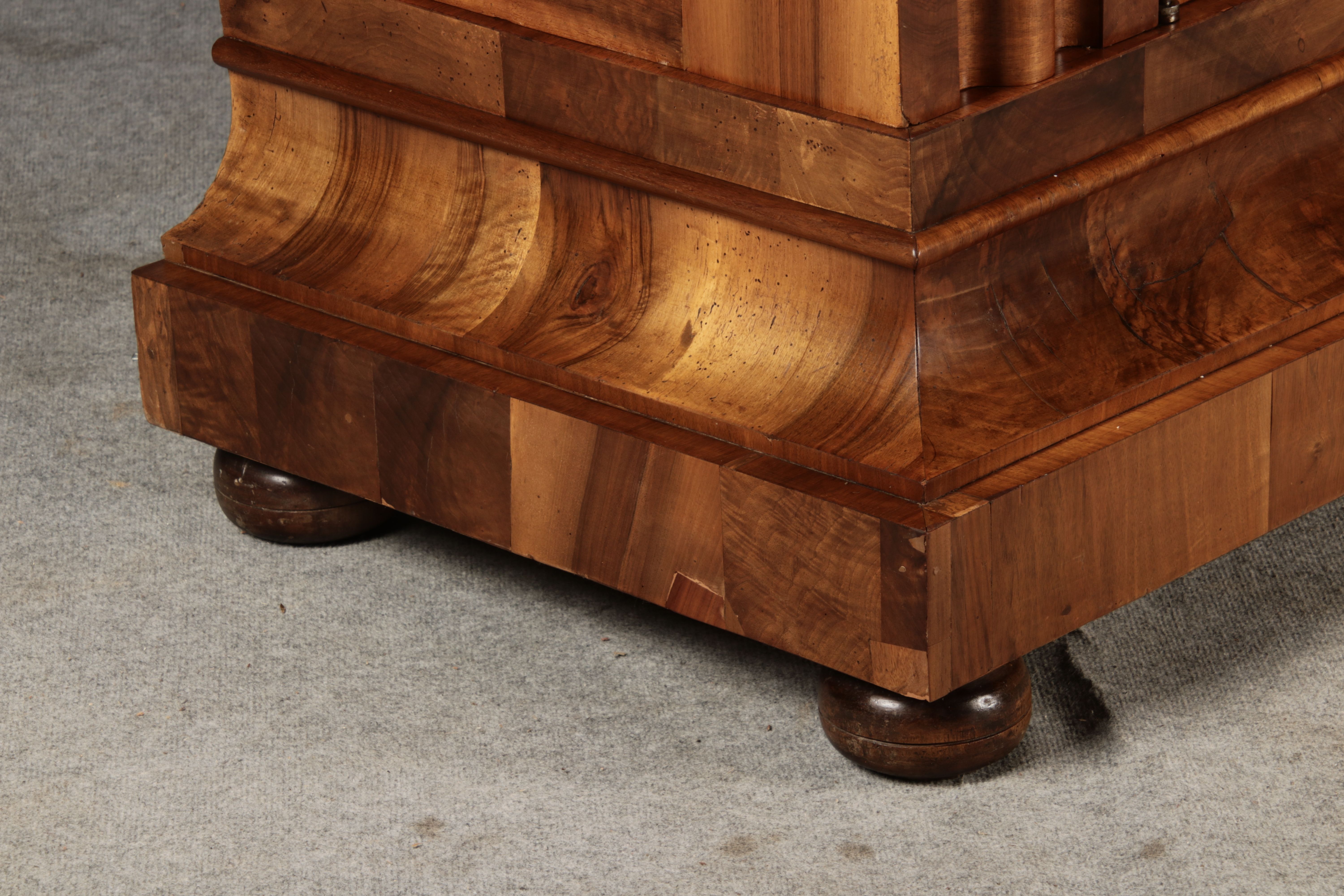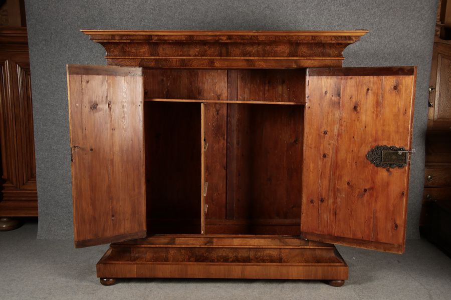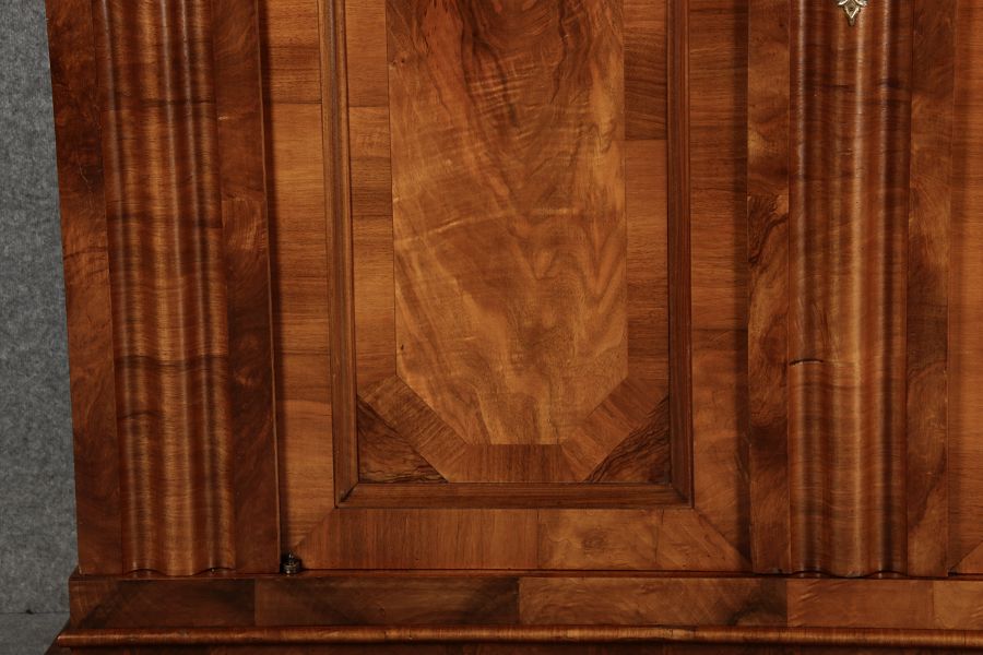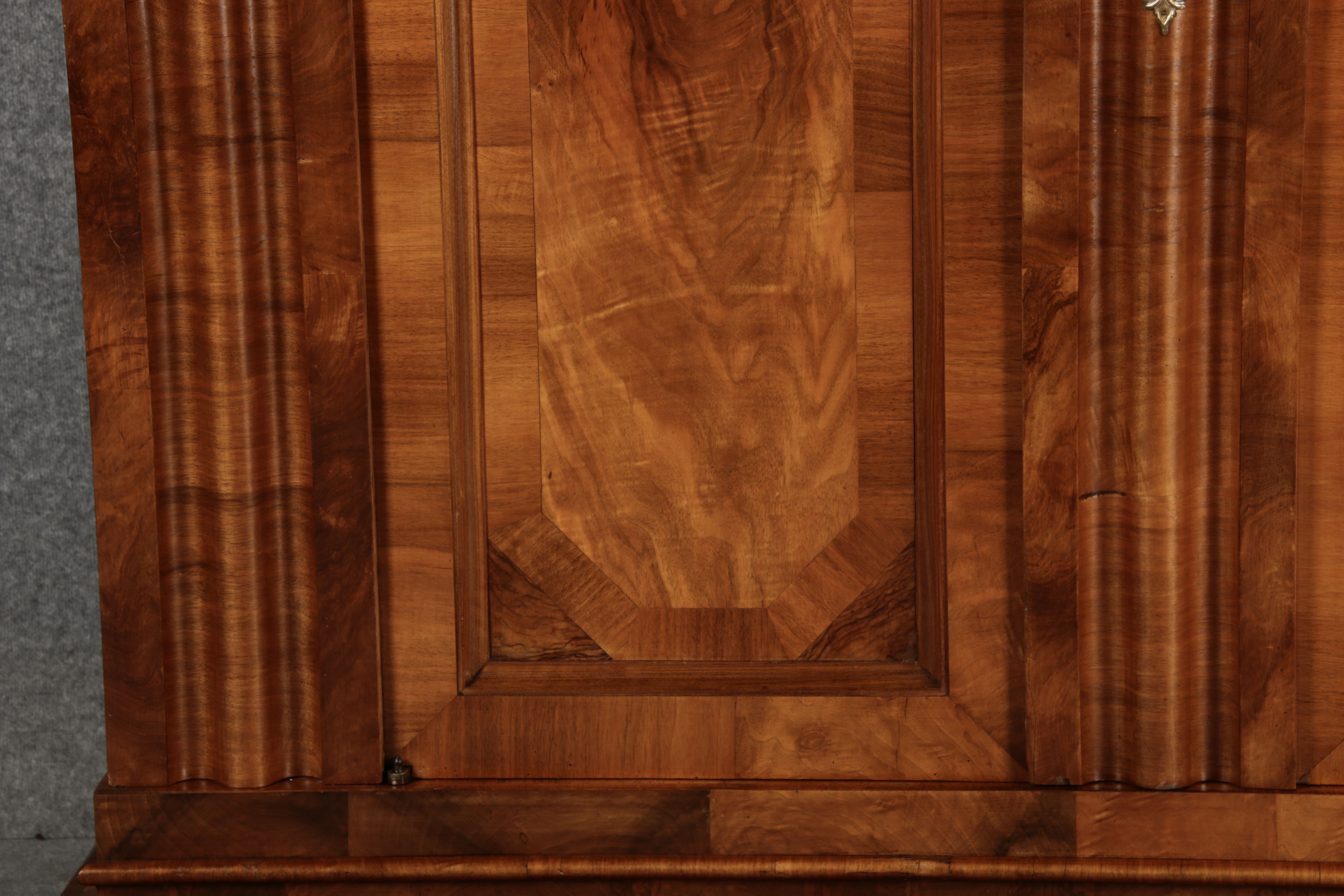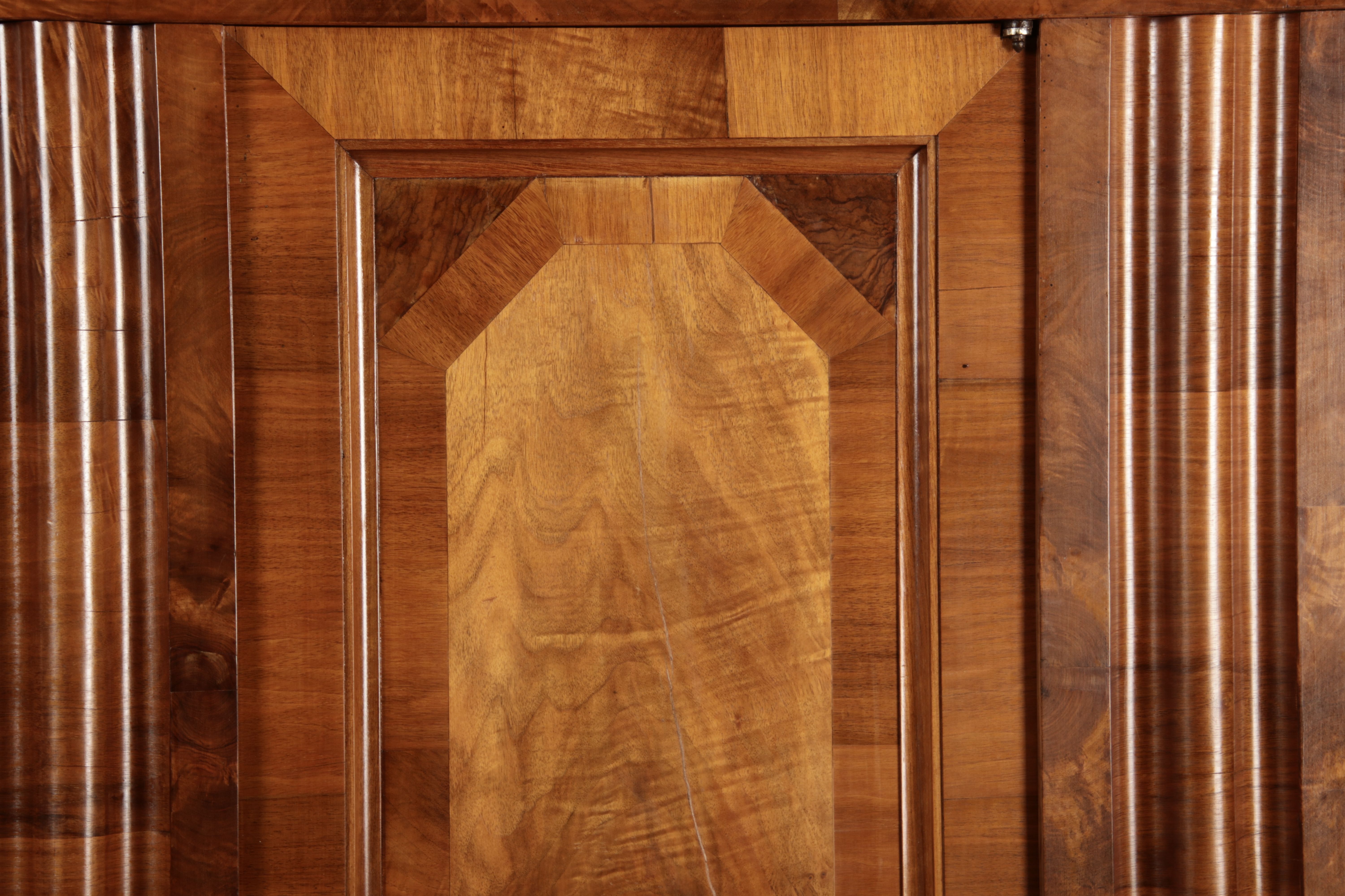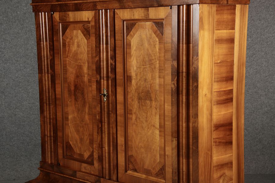 | Antiker Barock- Halbwellen- Schrank Nussbaumfurniert um 1750 Einschloss |