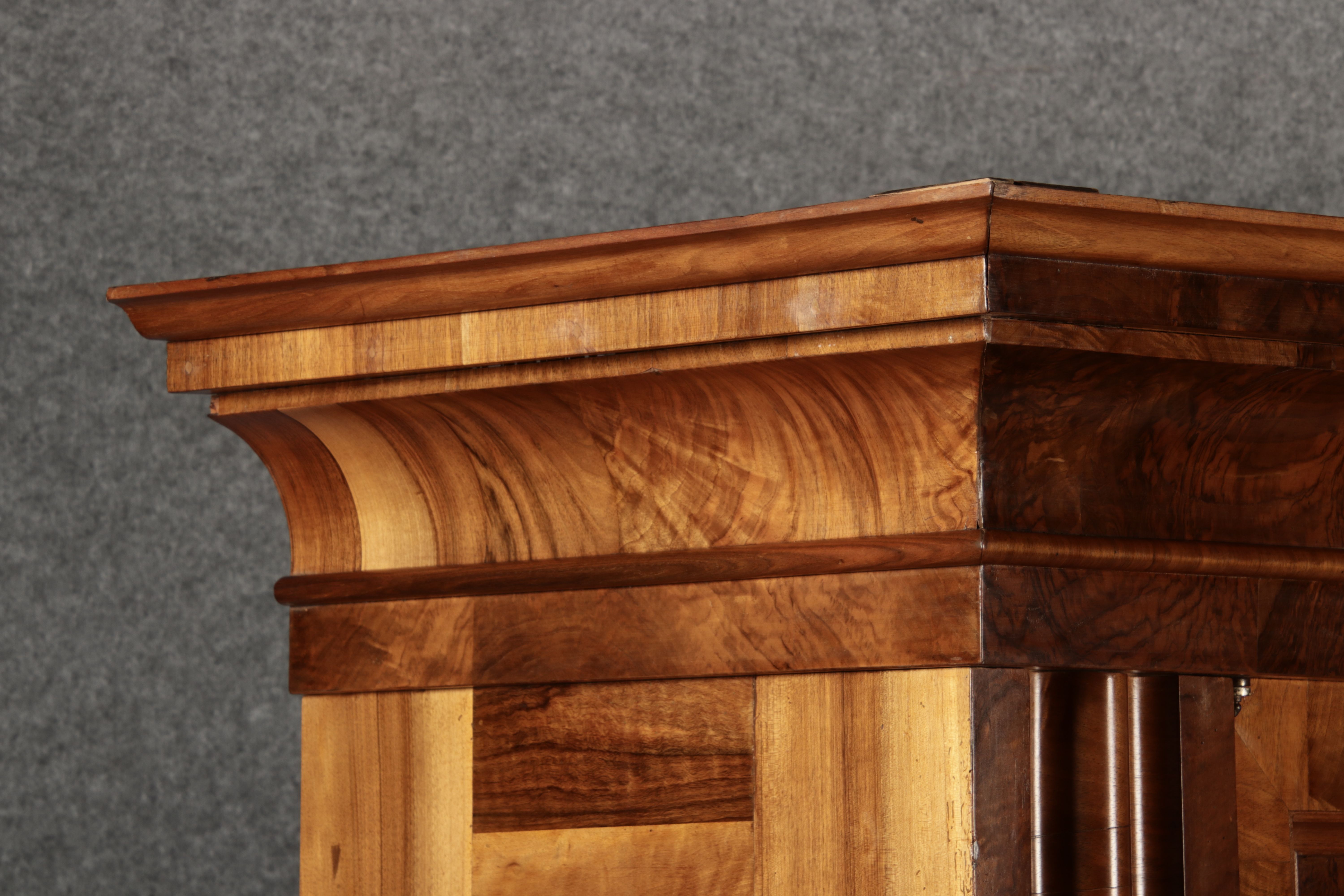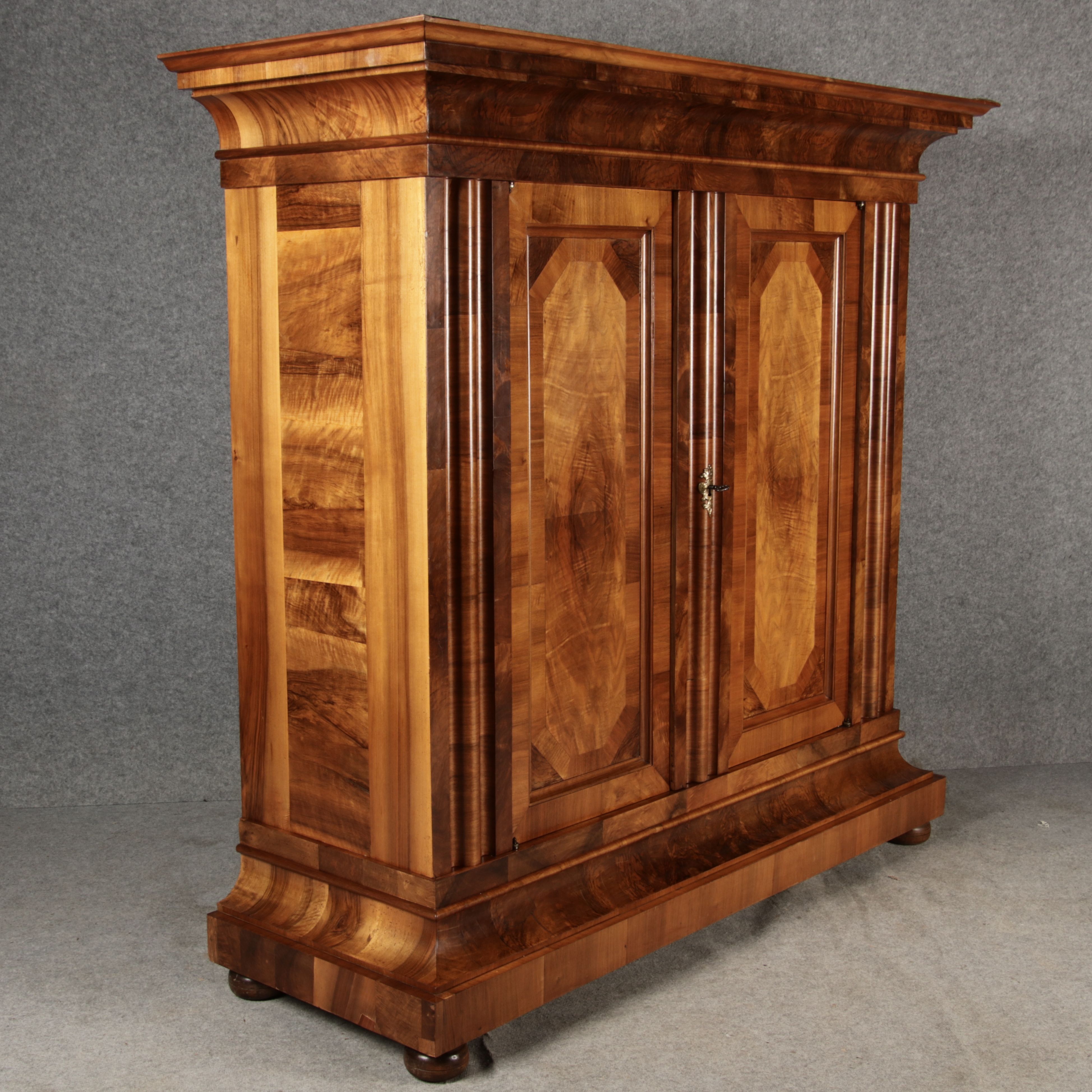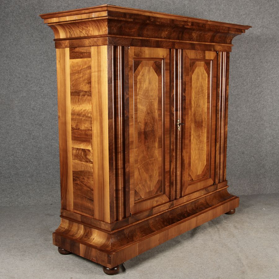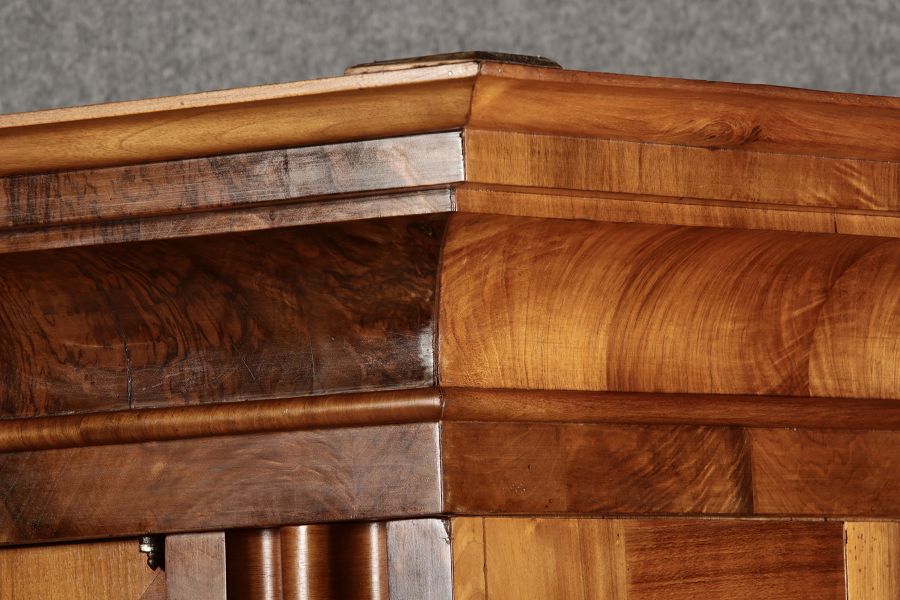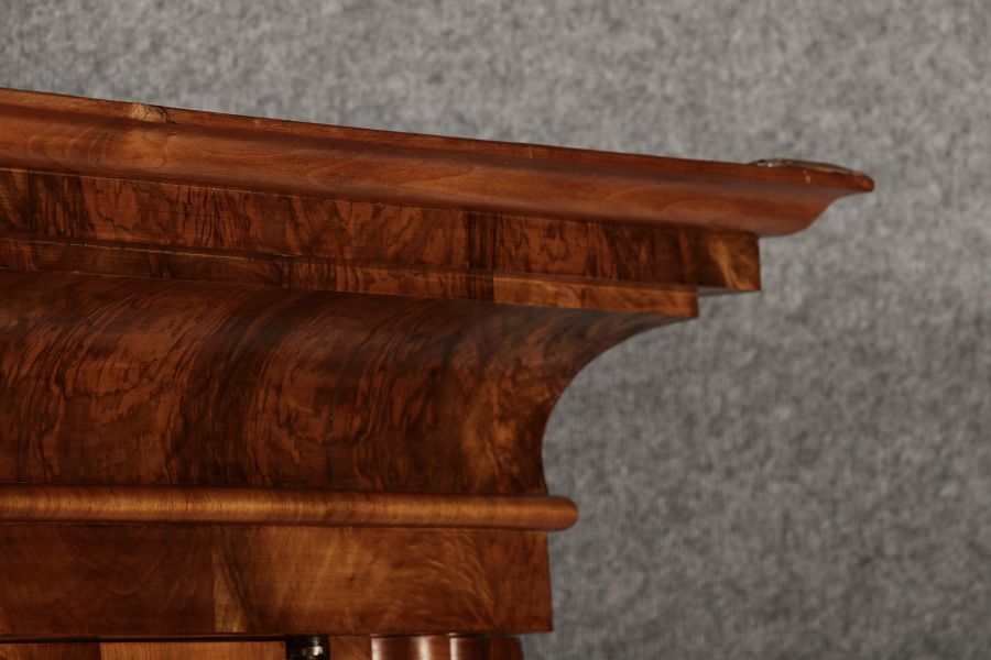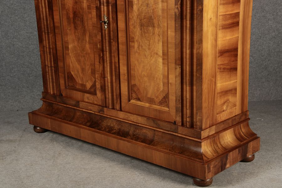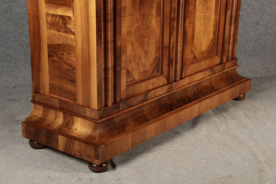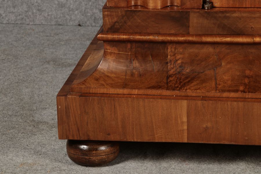 | Antiker Barock- Halbwellen- Schrank Nussbaumfurniert um 1750 Einschloss |