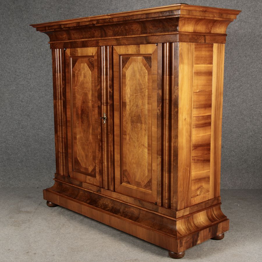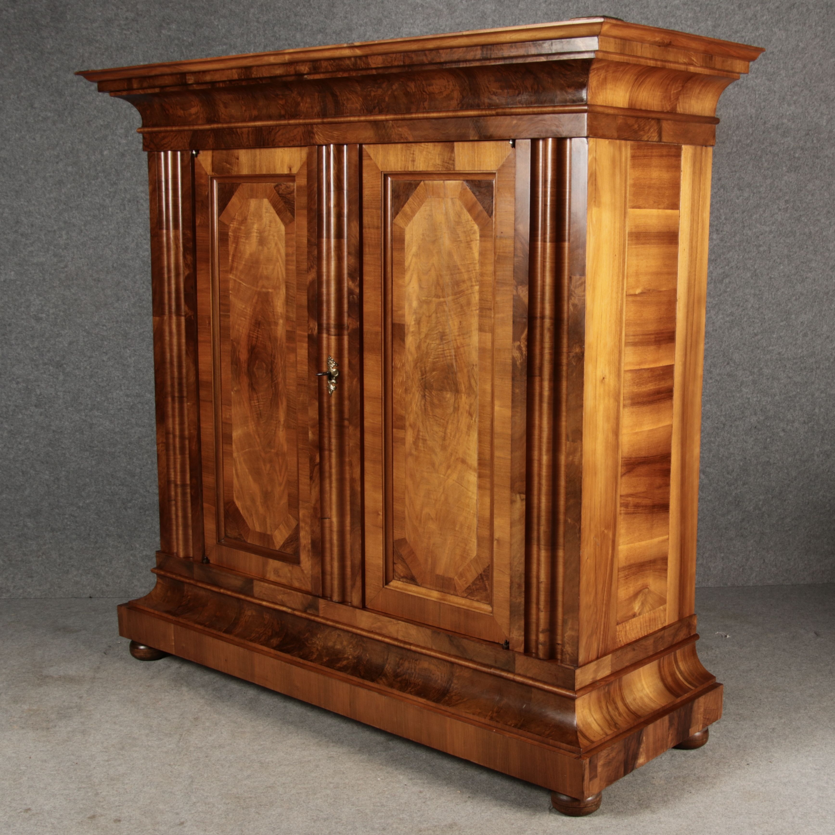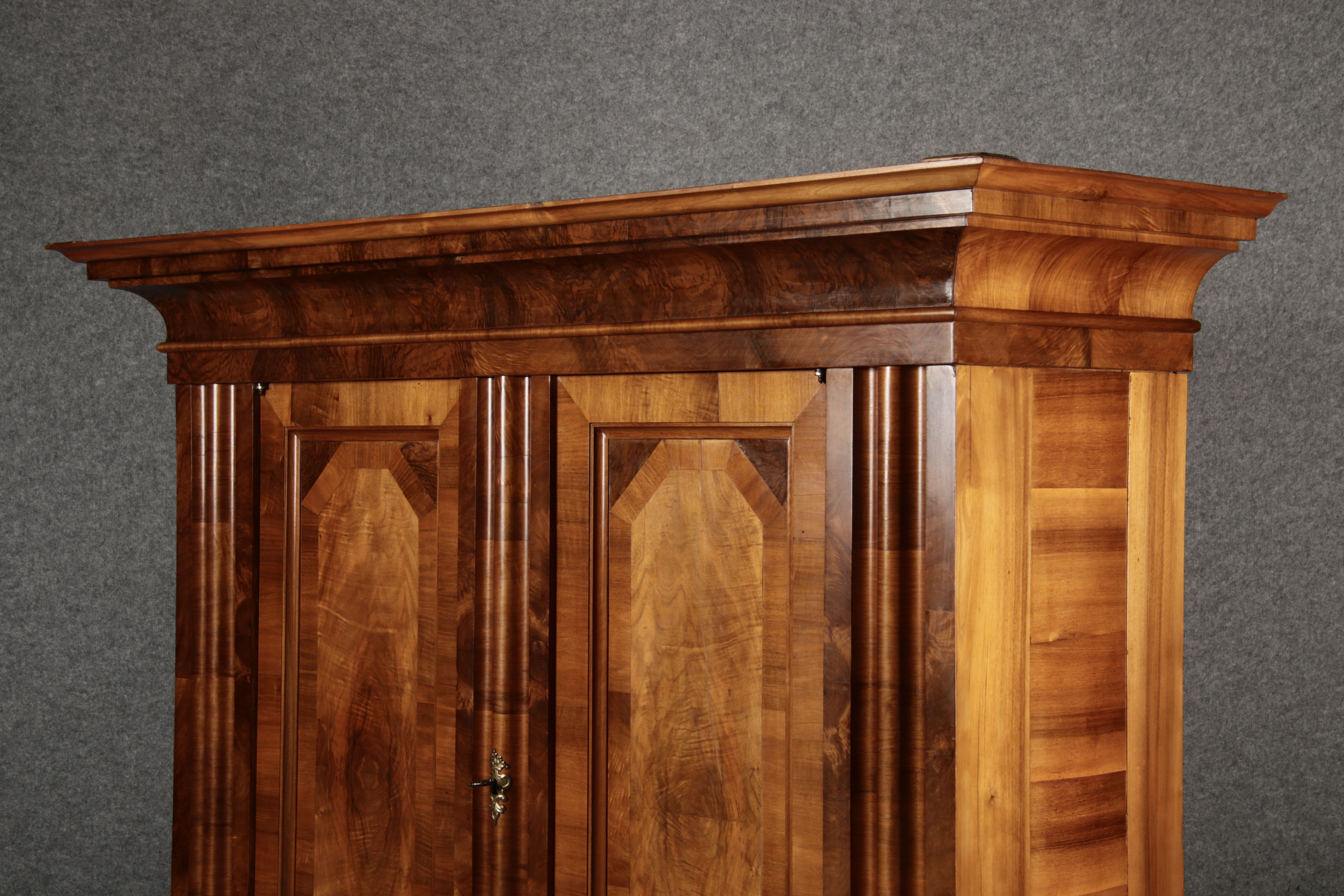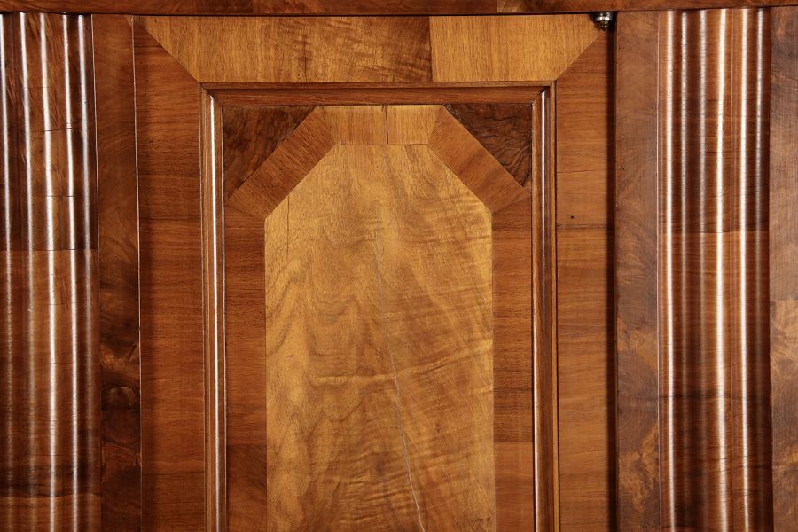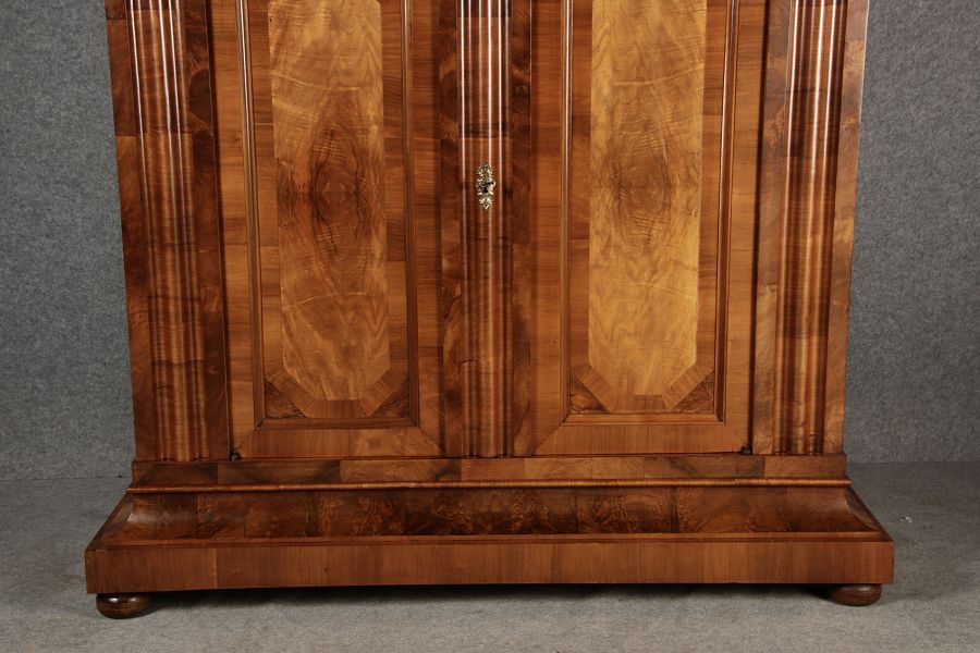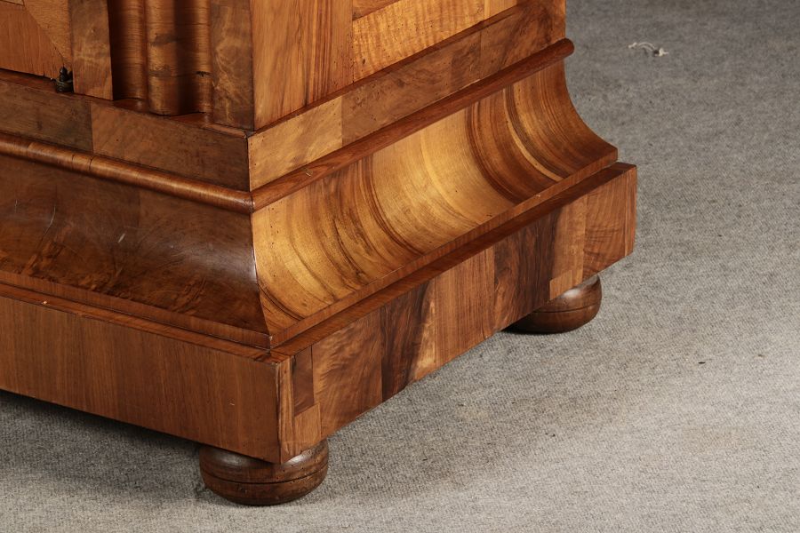 | Antiker Barock- Halbwellen- Schrank Nussbaumfurniert um 1750 Einschloss |