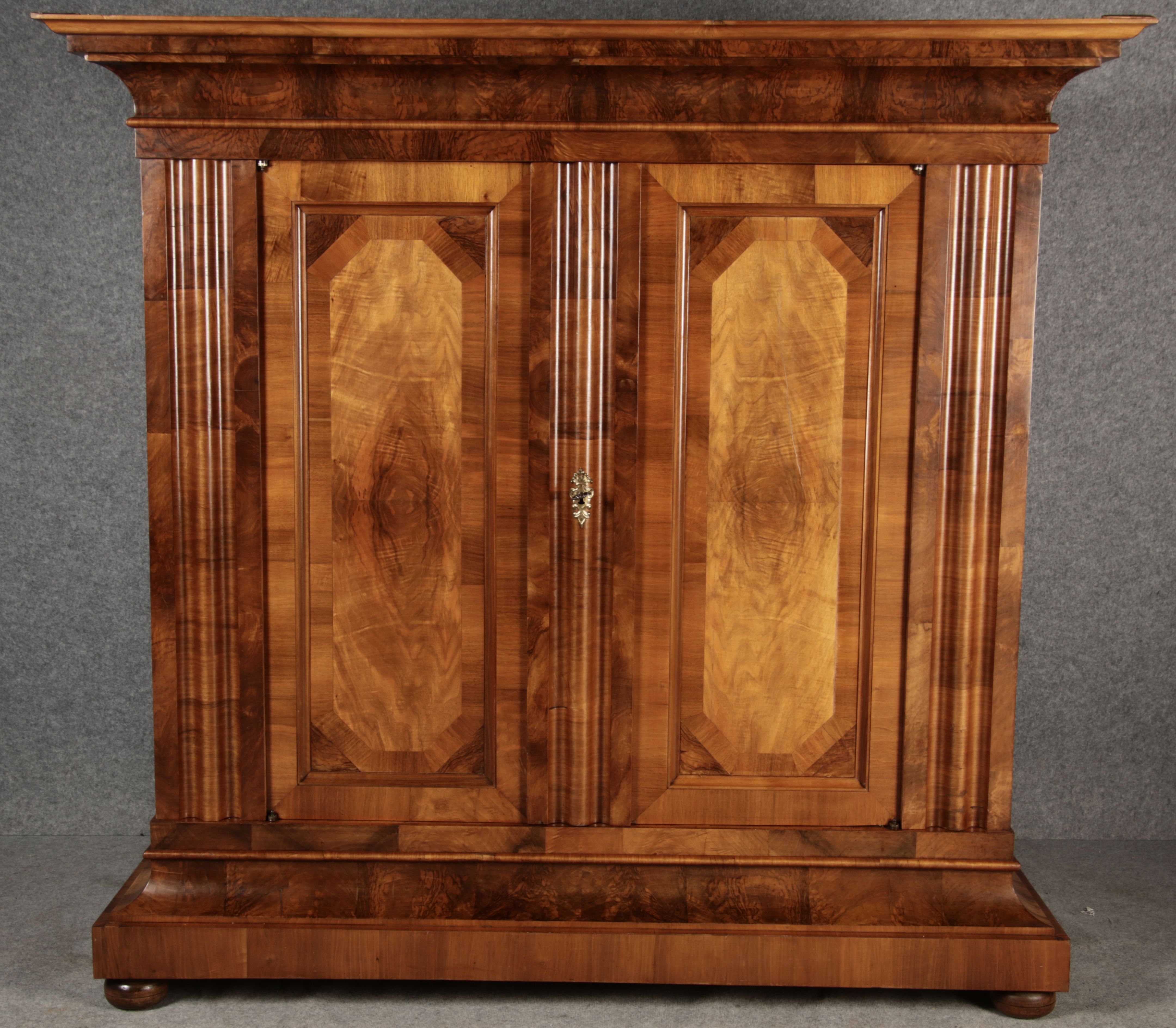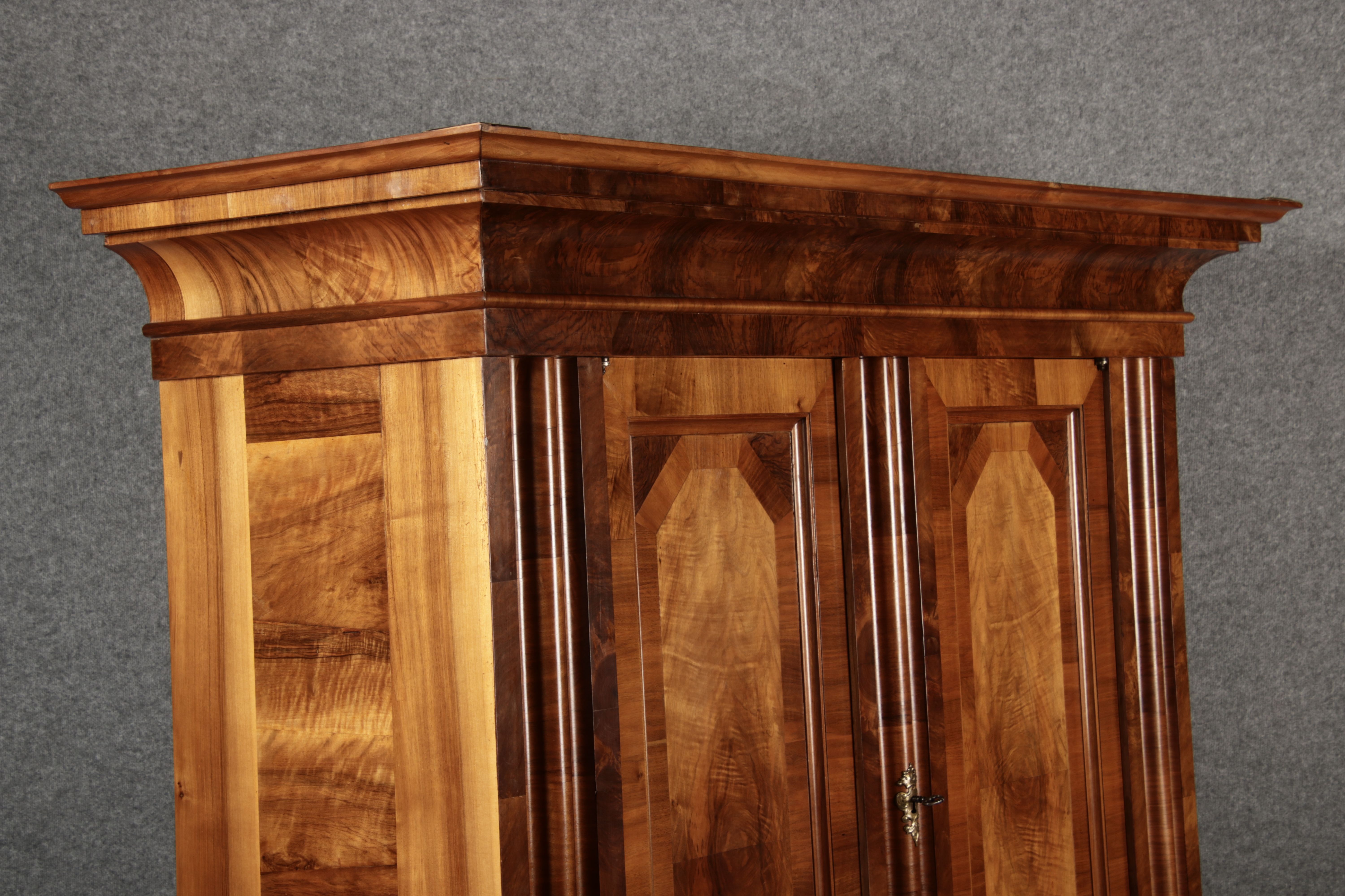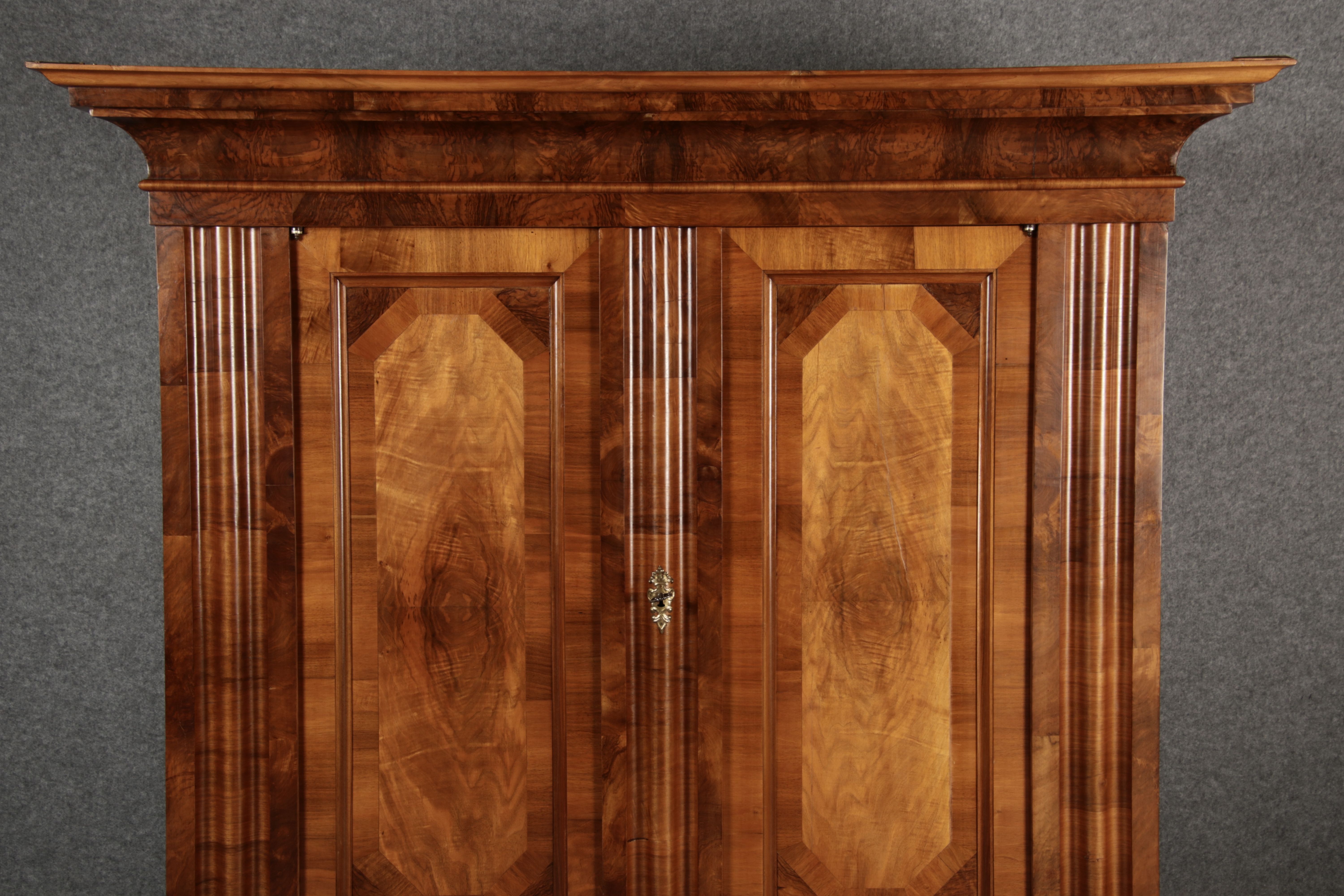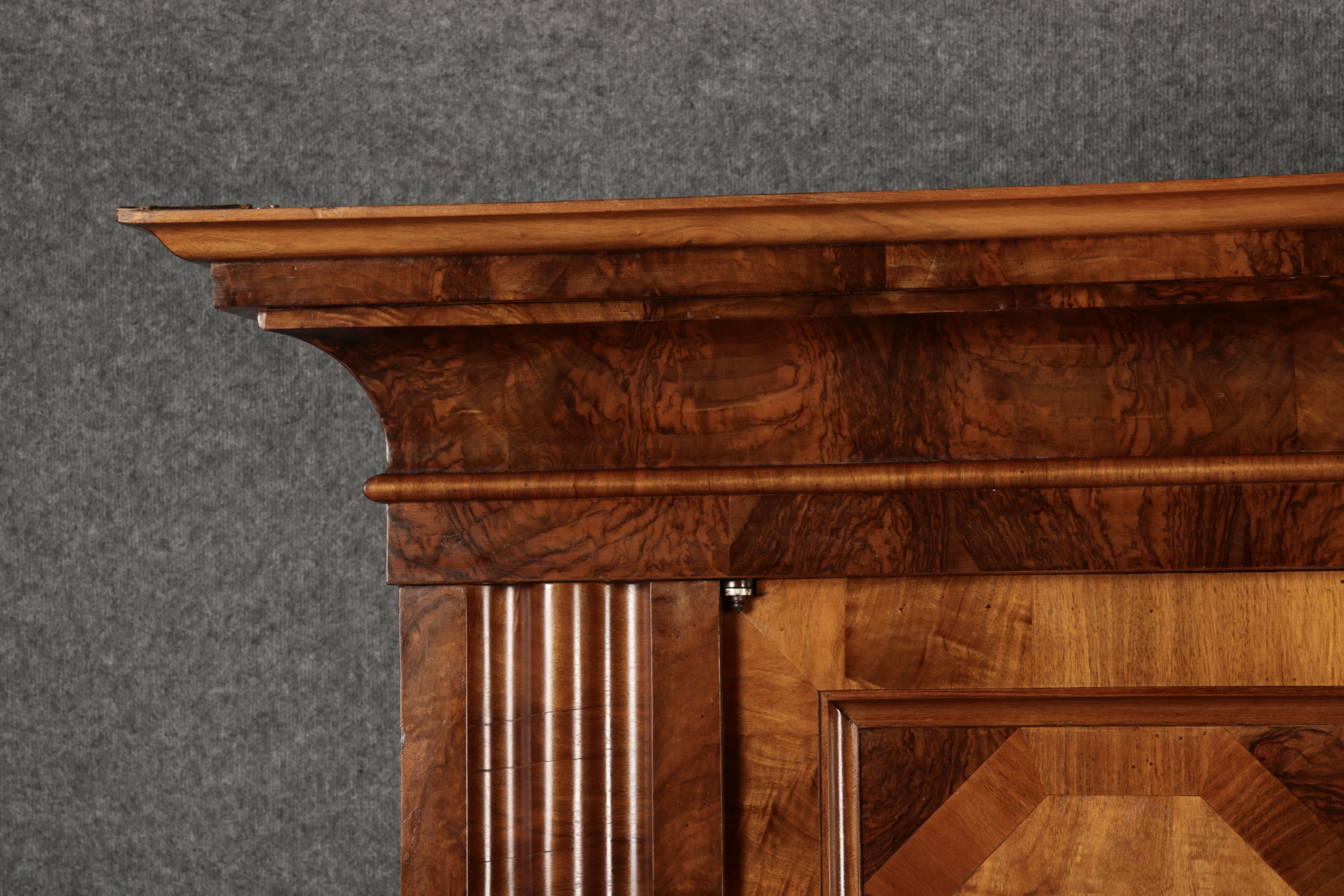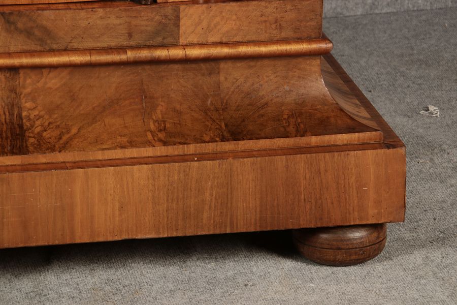 | Antiker Barock- Halbwellen- Schrank Nussbaumfurniert um 1750 Einschloss |