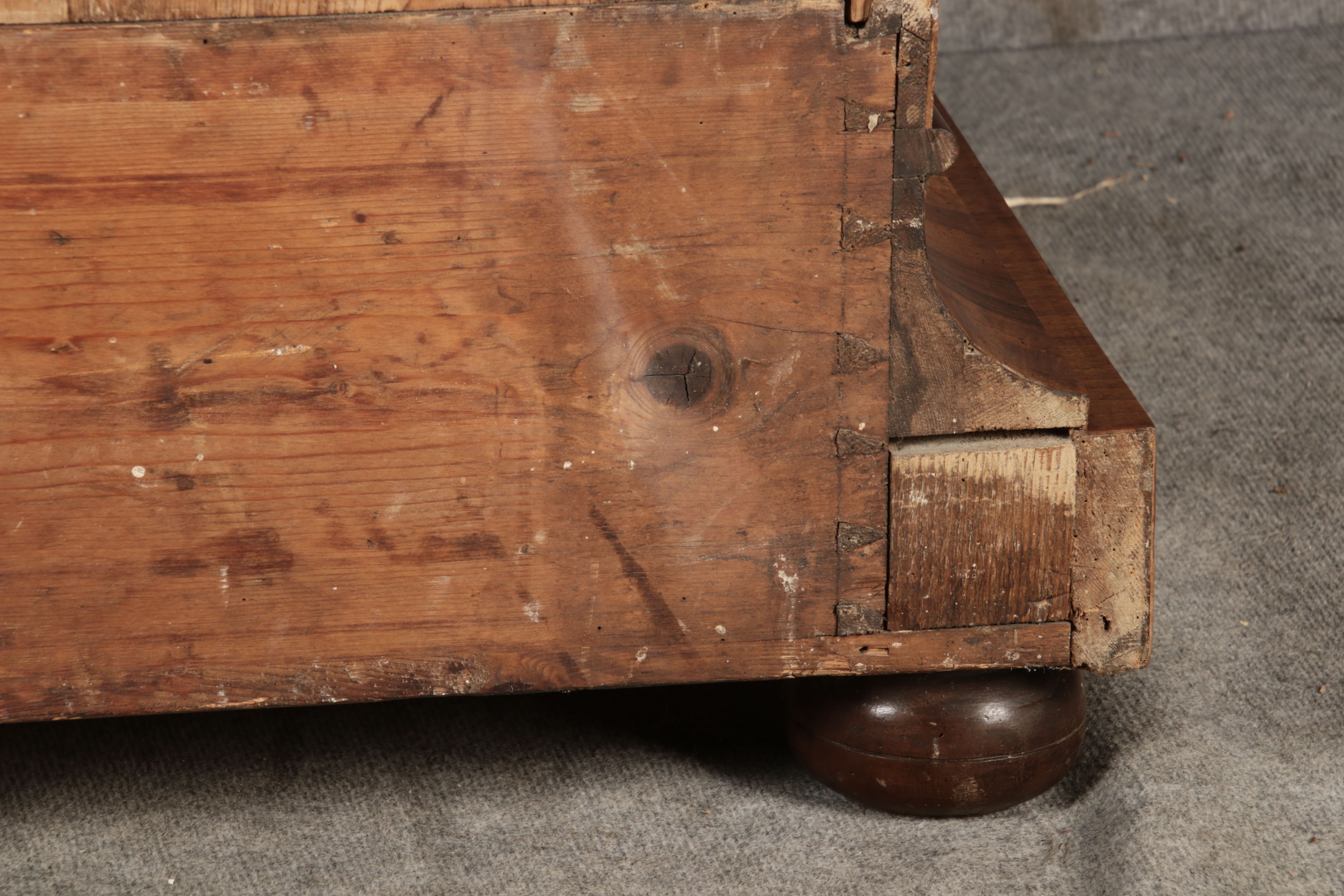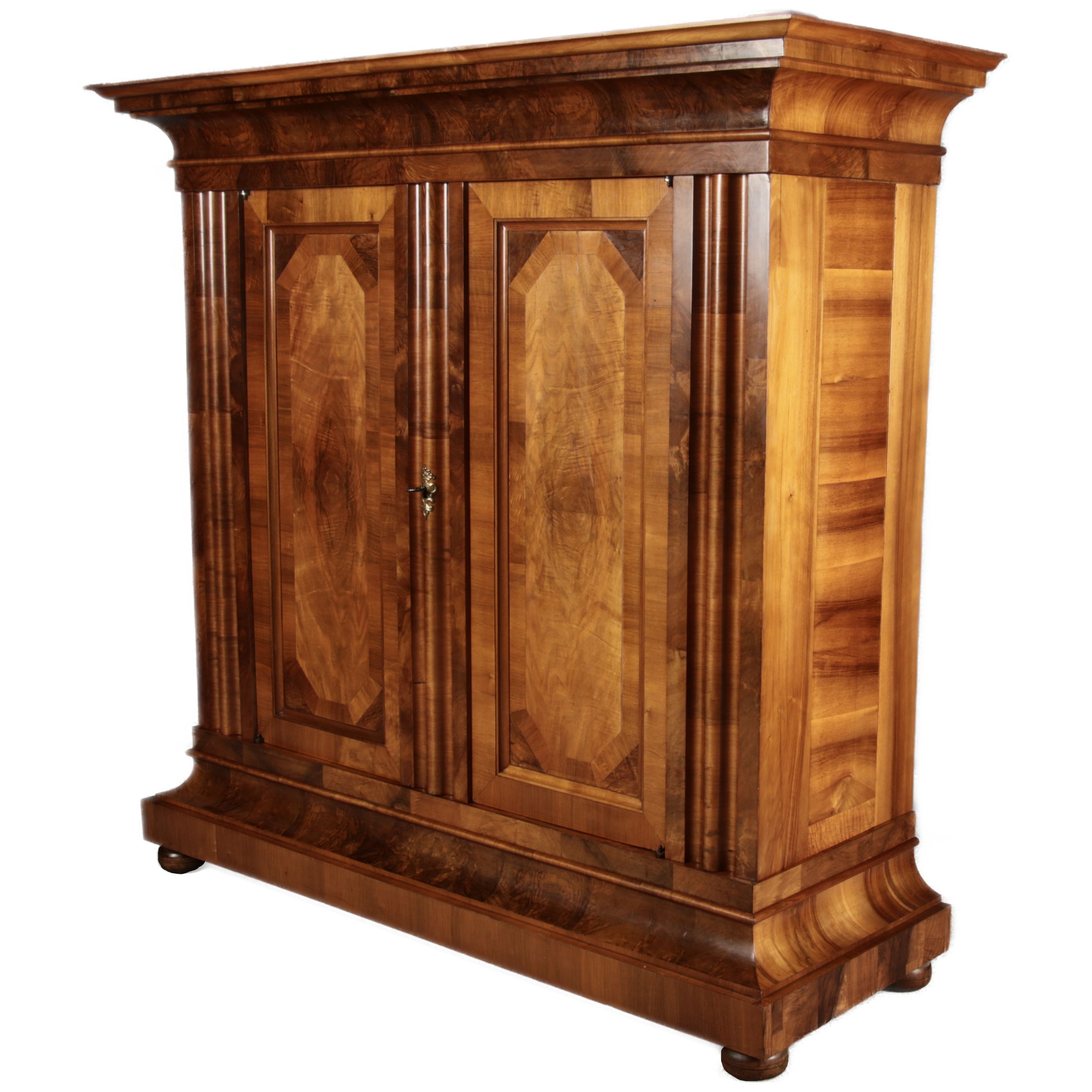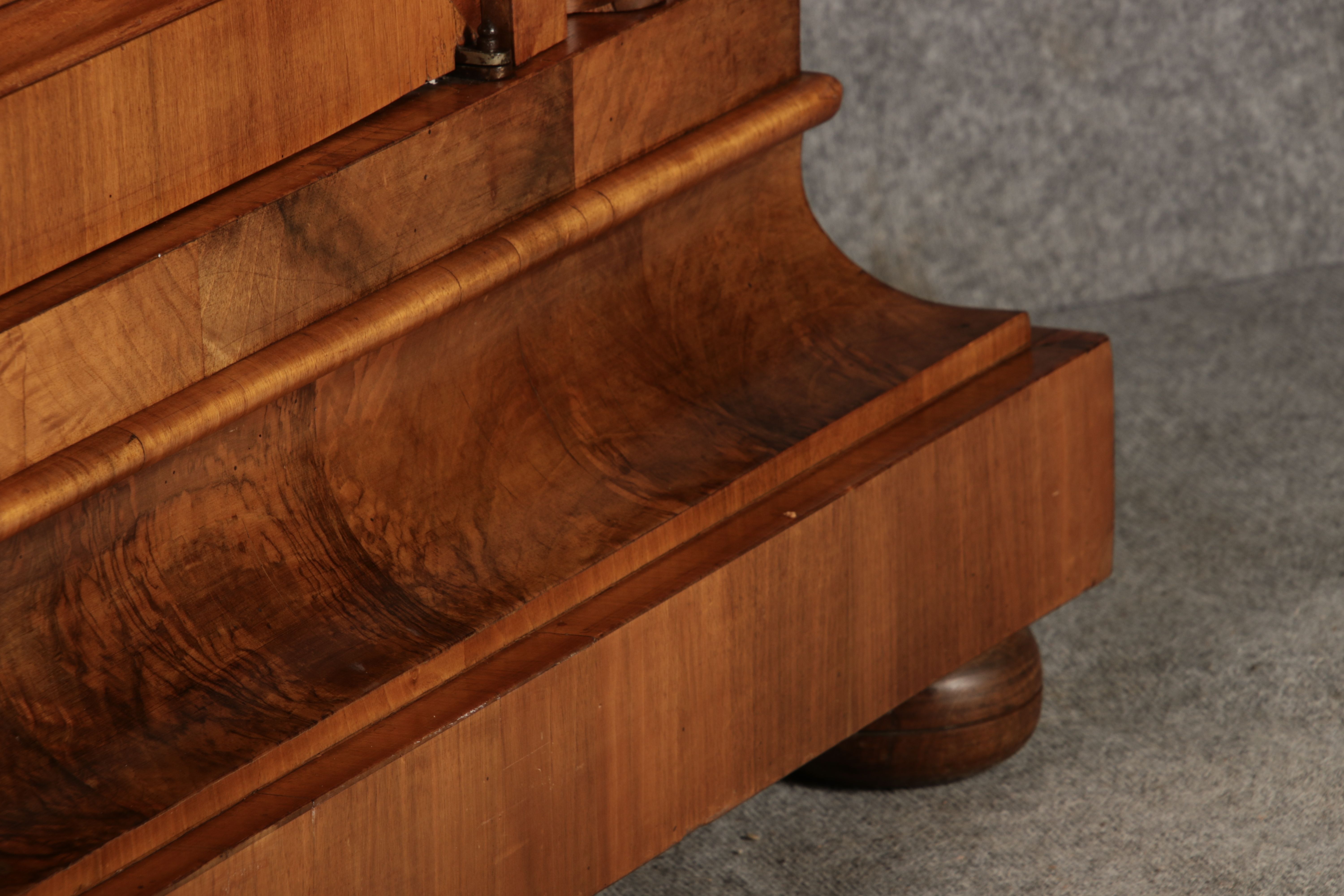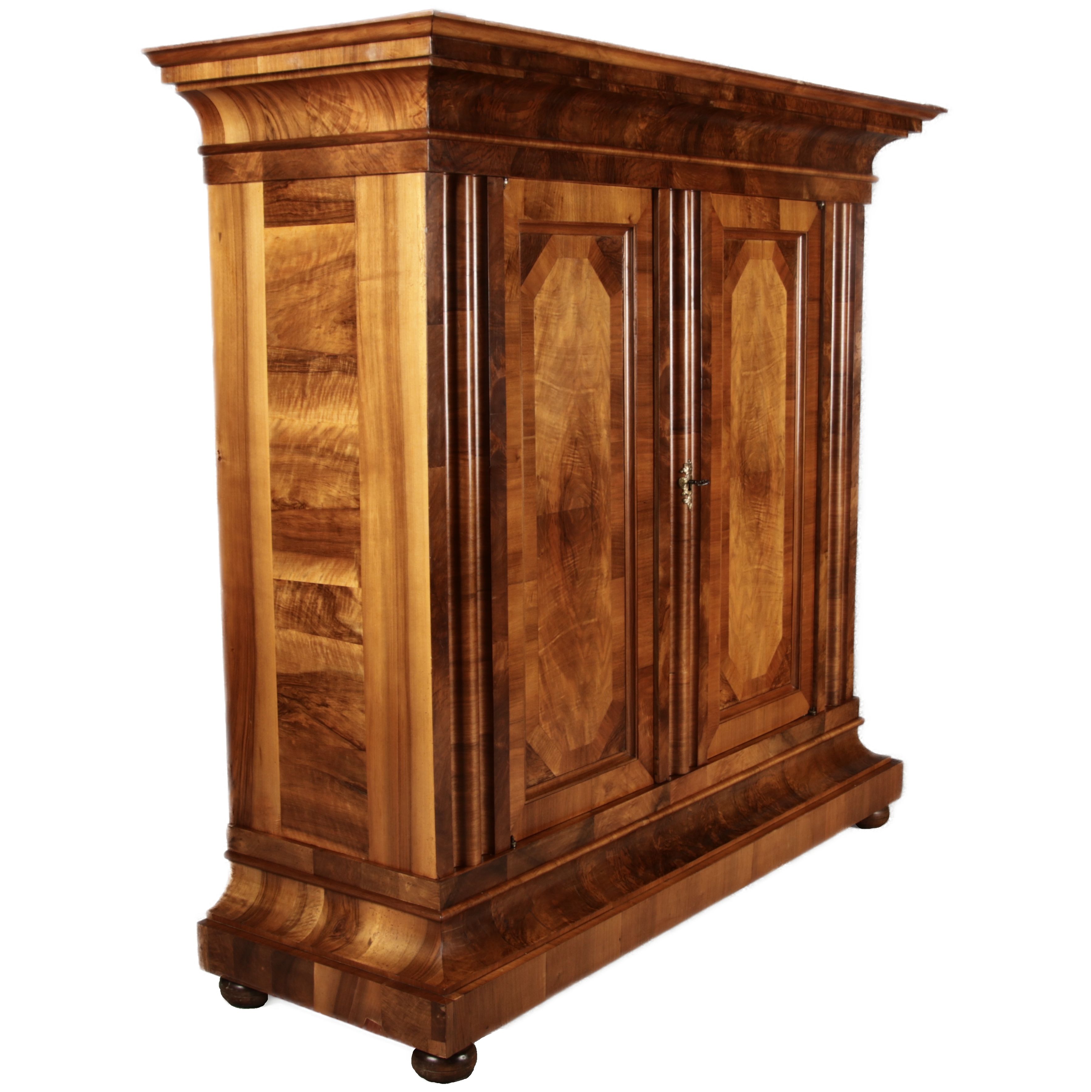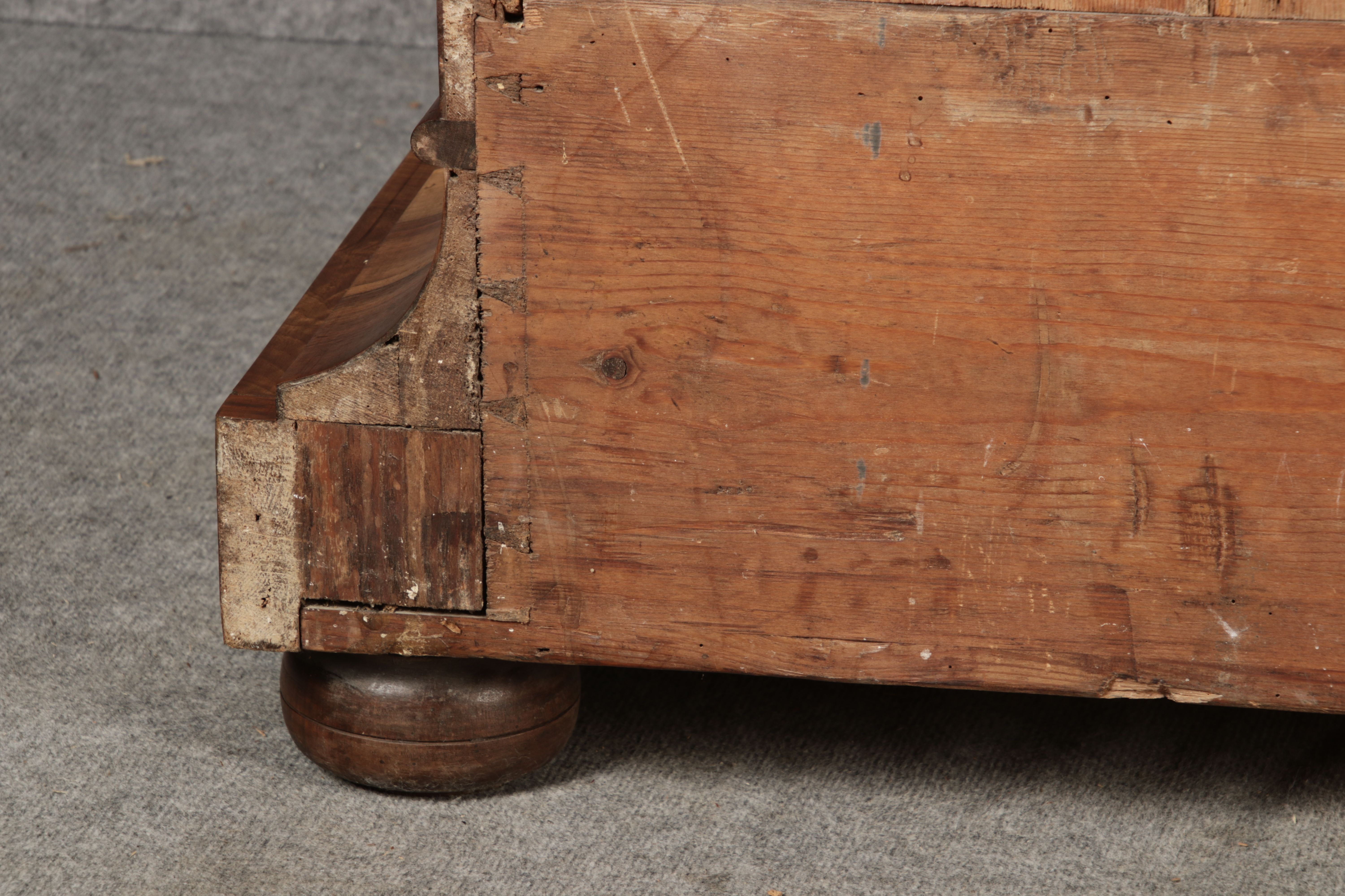 | Antiker Barock- Halbwellen- Schrank Nussbaumfurniert um 1750 Einschloss |