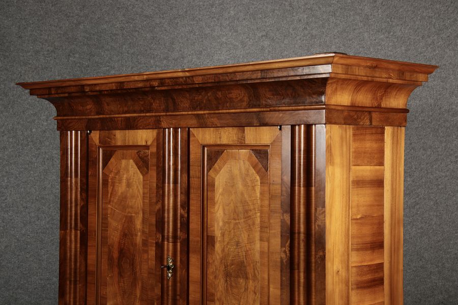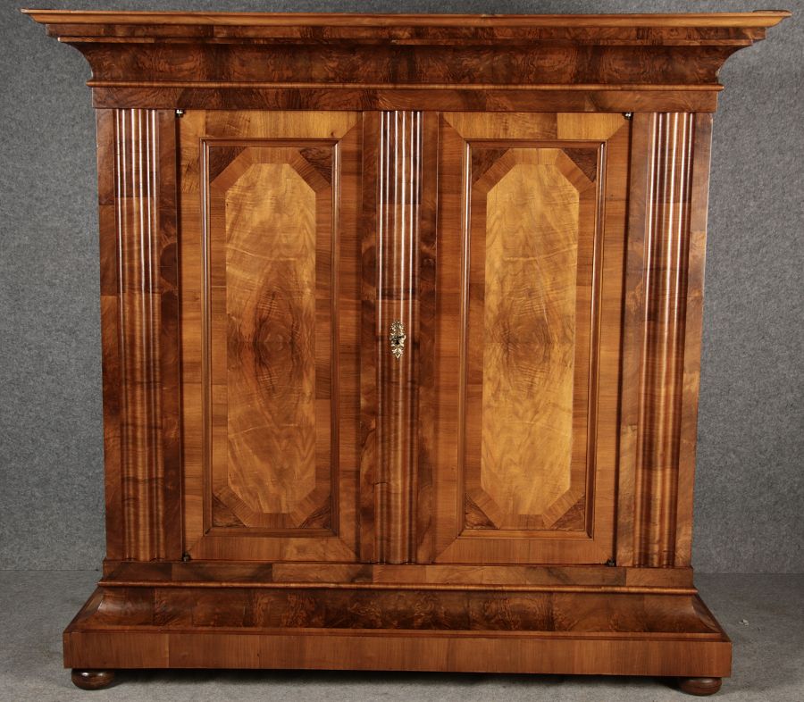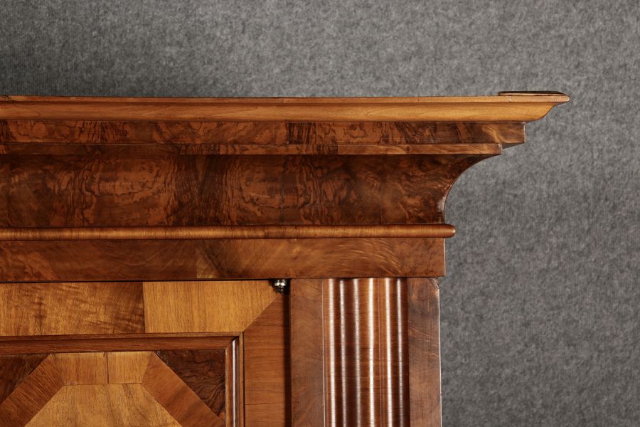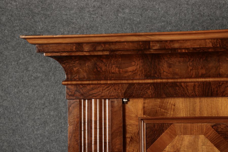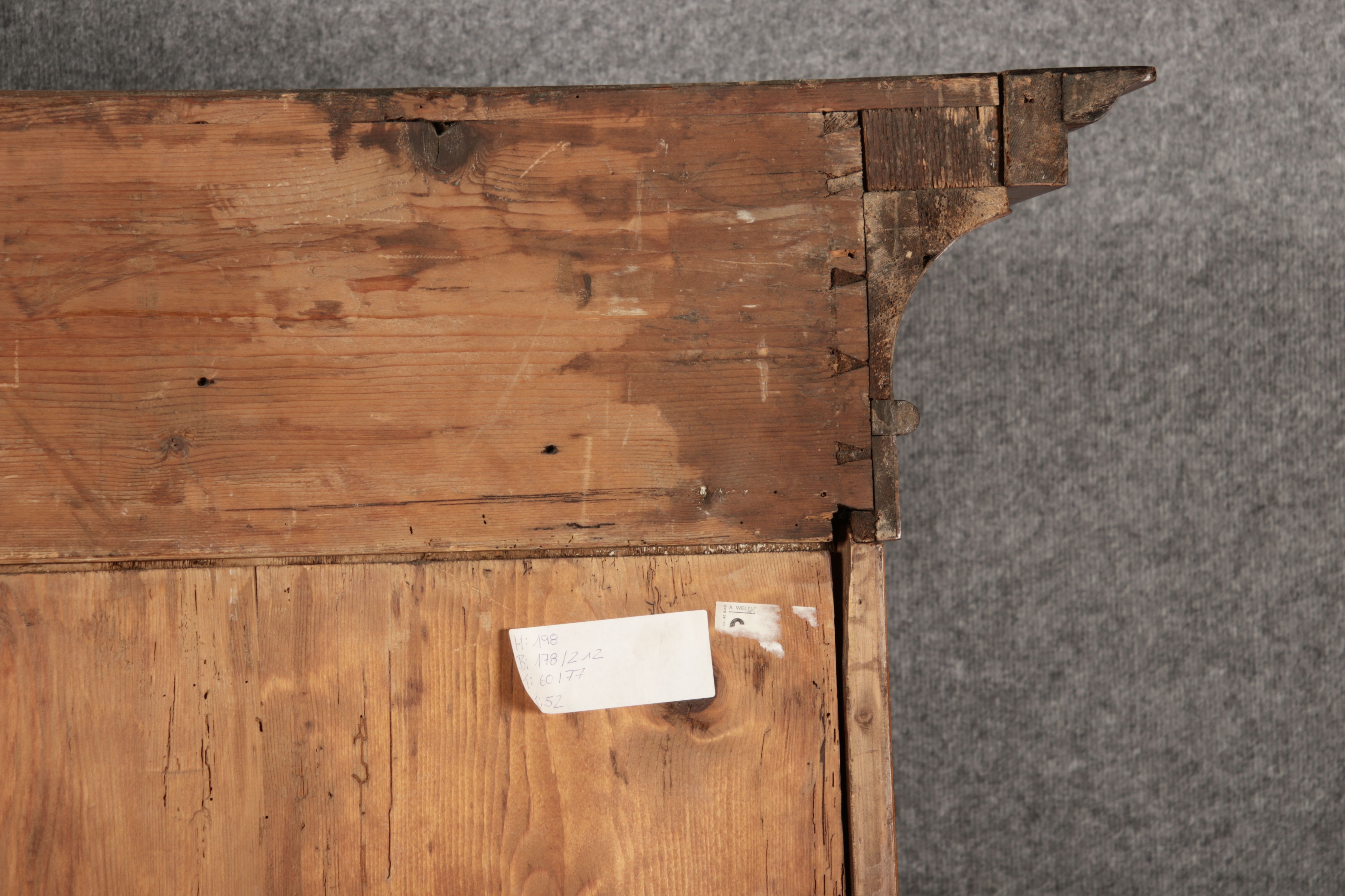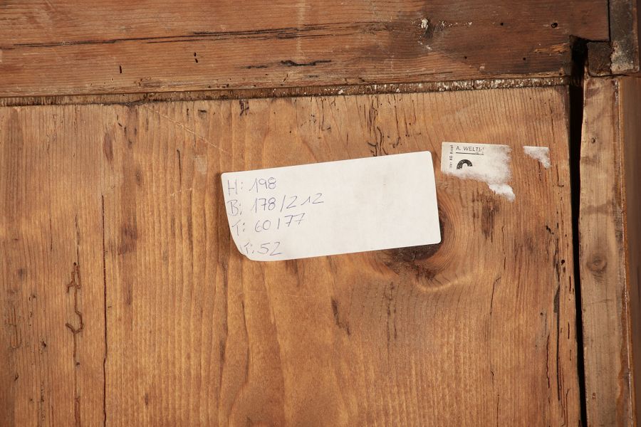 Masse/dimensions: Höhe/Height ca. 198 cm, Breite Korpus/Broad Boda ca. 178 cm, Breite Gesims/Broad cornice ca. 212 cm, Tiefe Korpus/Deep body ca. 60 cm, Tiefe Gesims/Deep cornice ca. 77 cm,