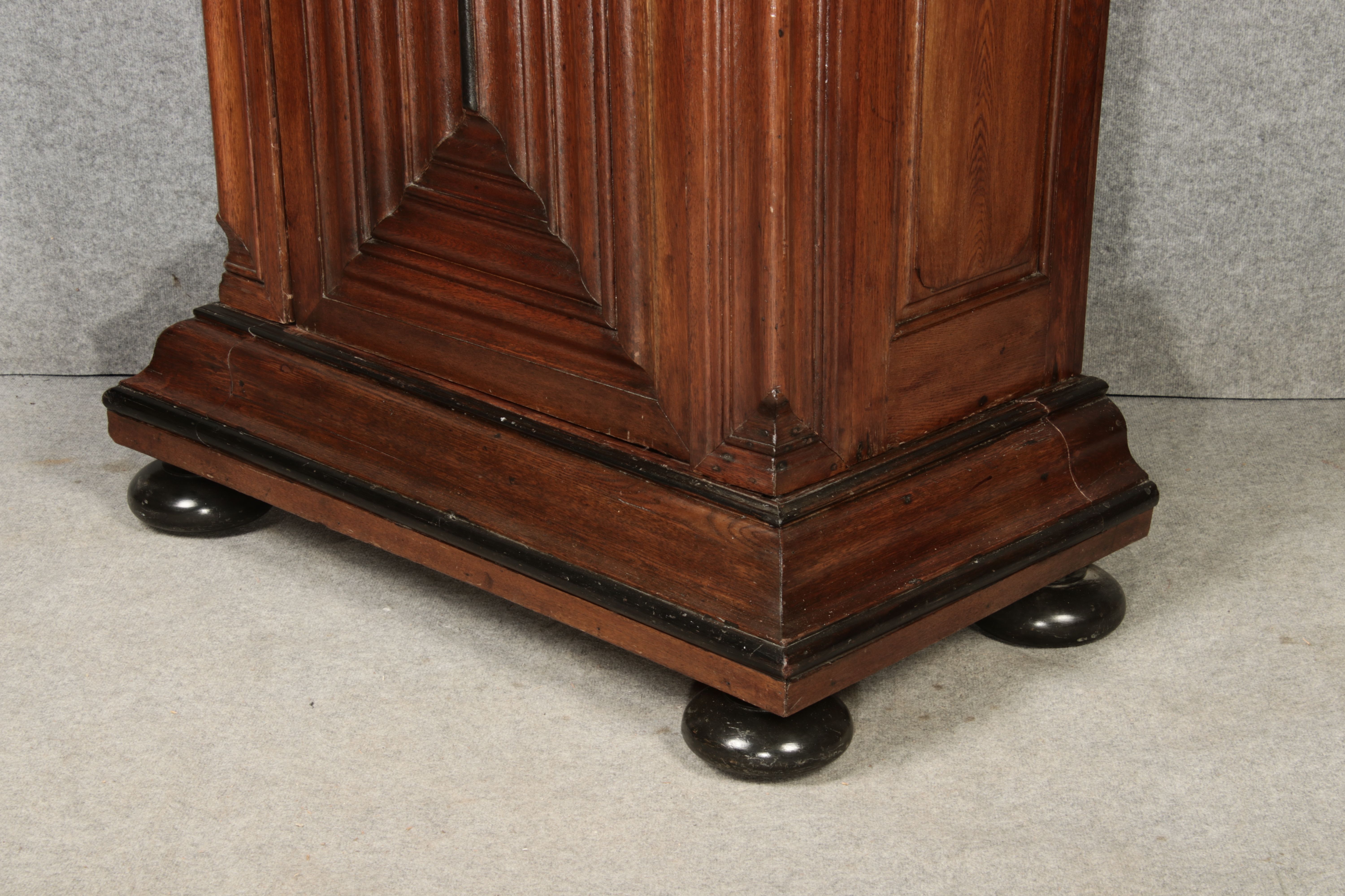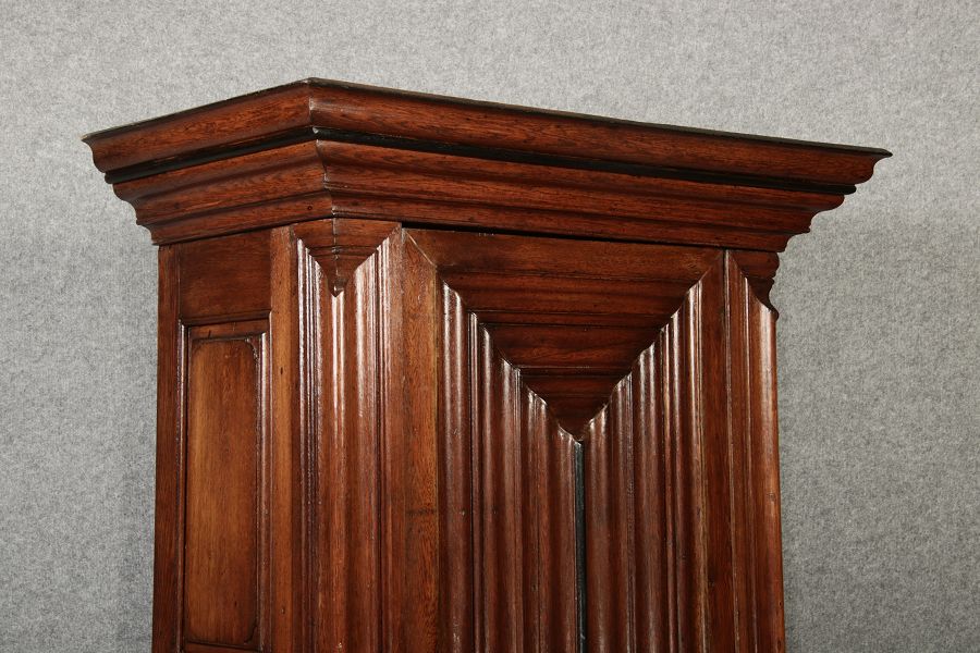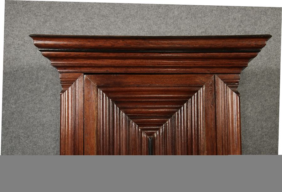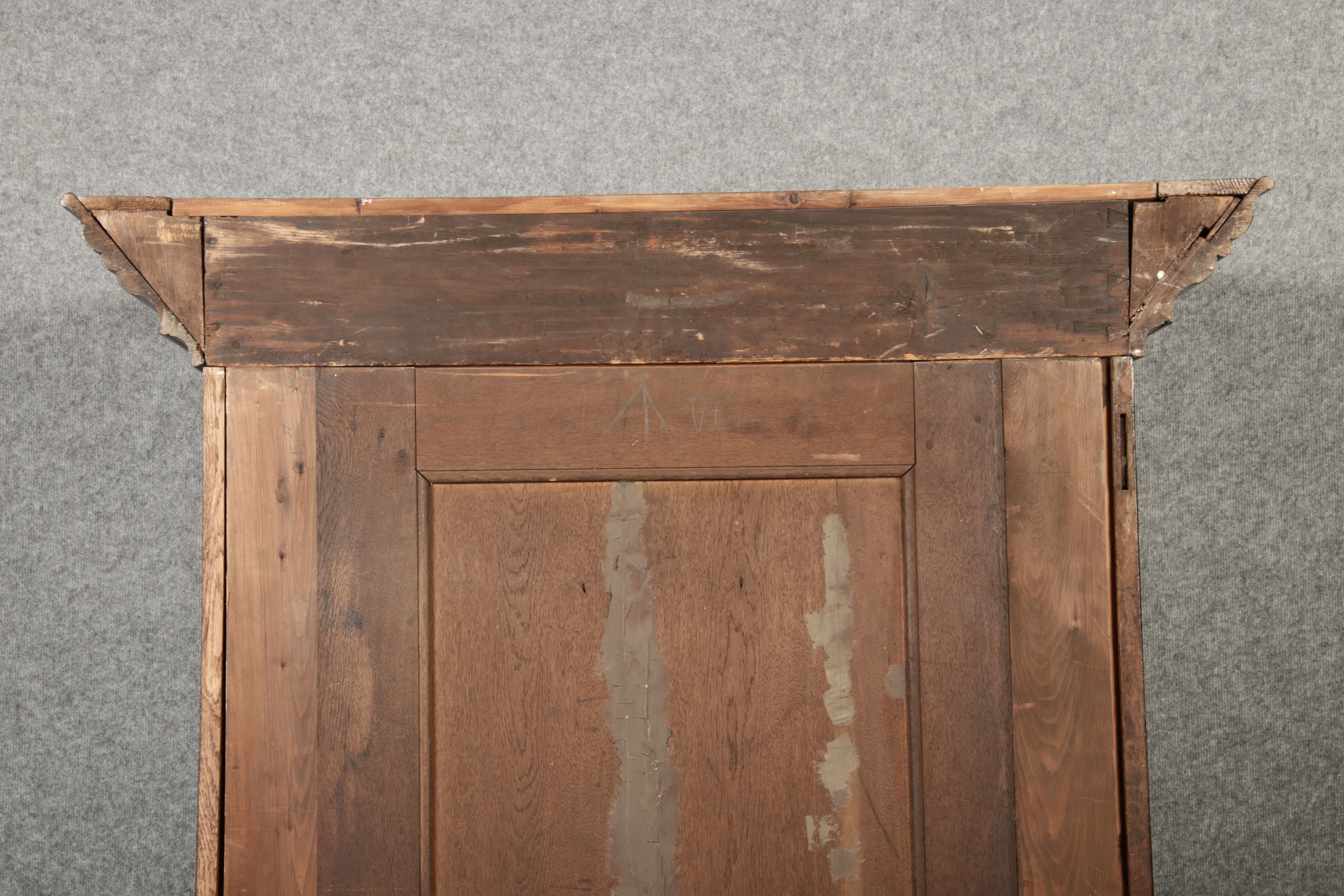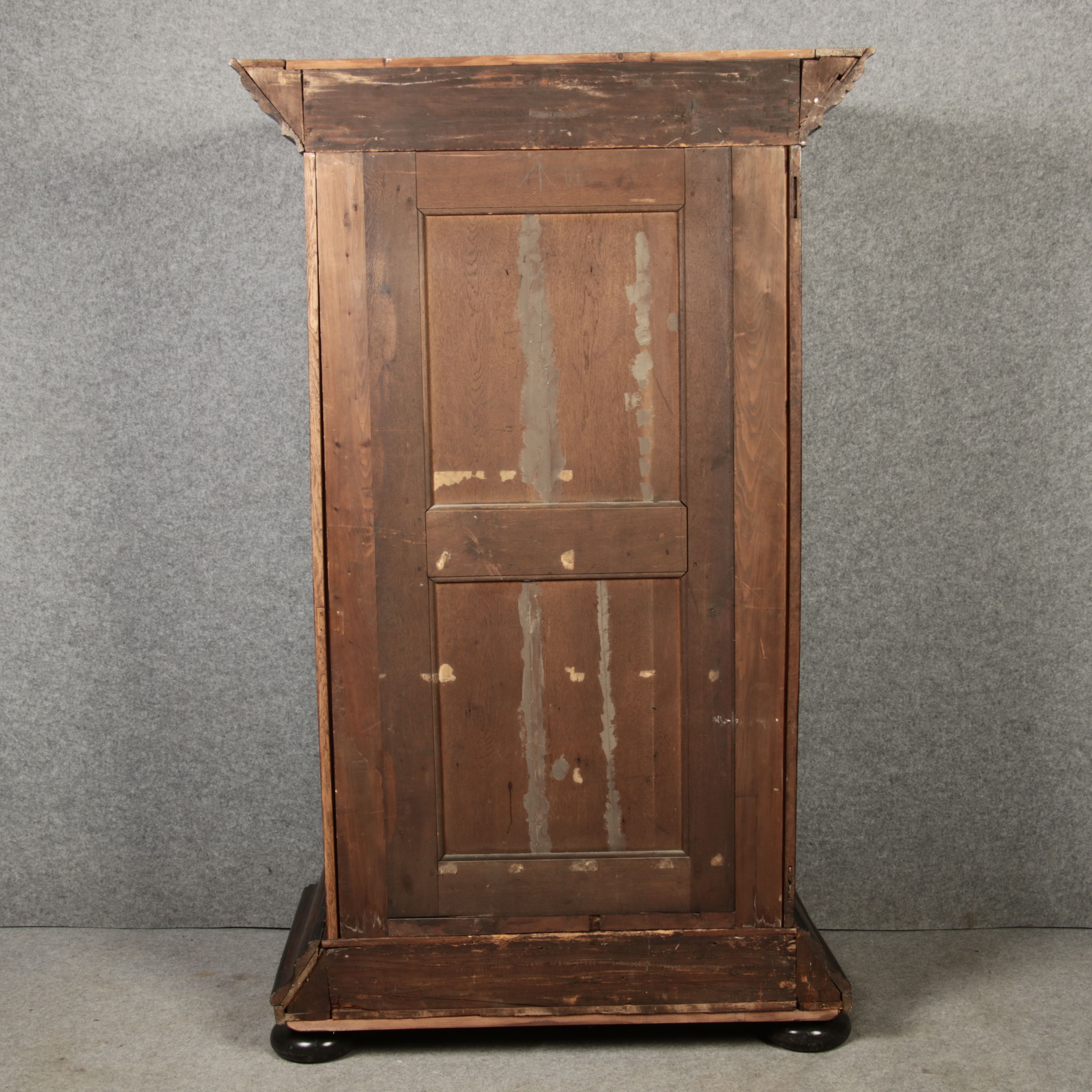 Masse/dimensions: Höhe/Height ca. 215,5 cm, Breite Korpus/Broad Boda ca. 103 cm, Breite Gesims/Broad cornice ca. 132 cm, Tiefe Korpus/Deep body ca. 60 cm, Tiefe Gesims/Deep cornice ca. 75 cm,