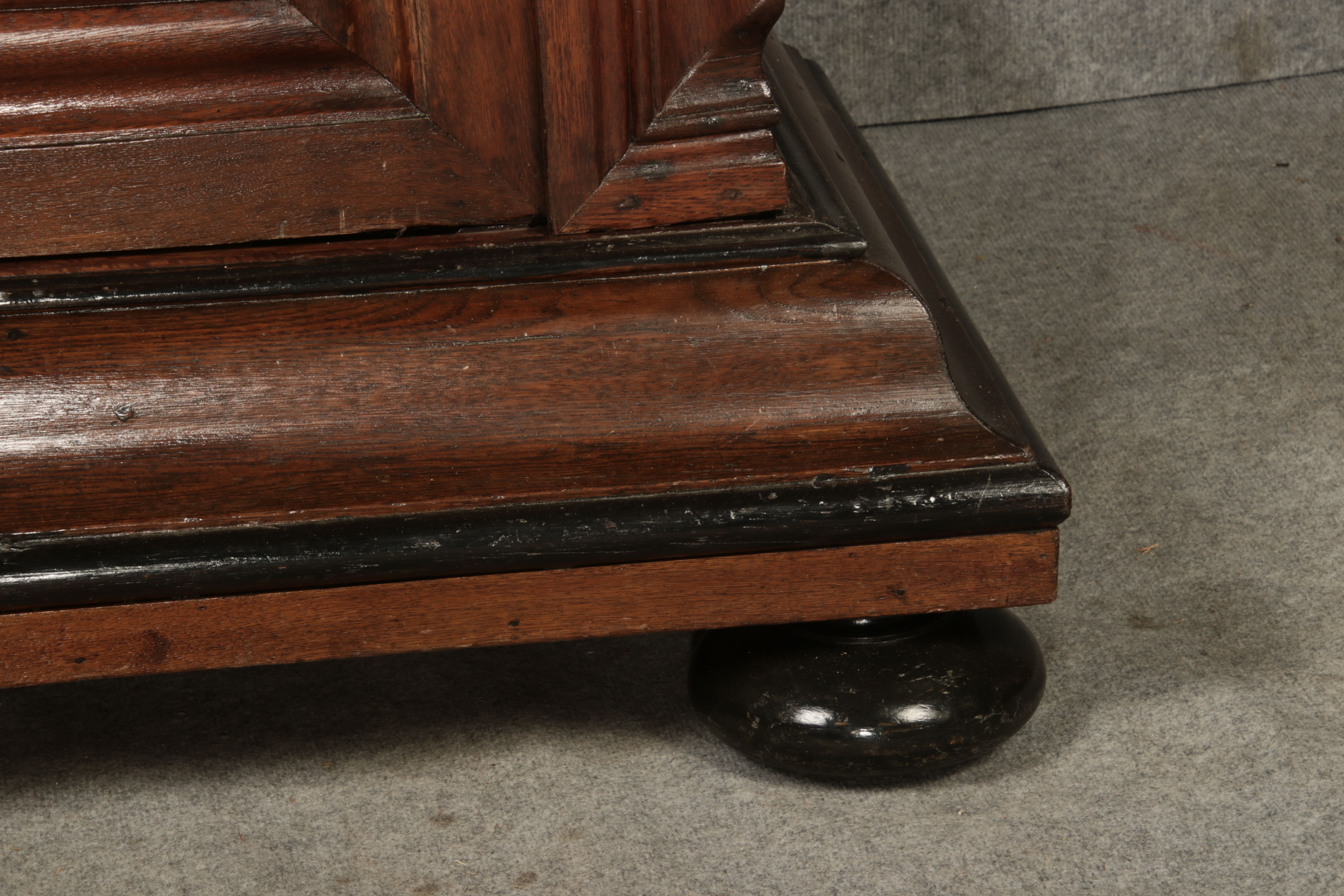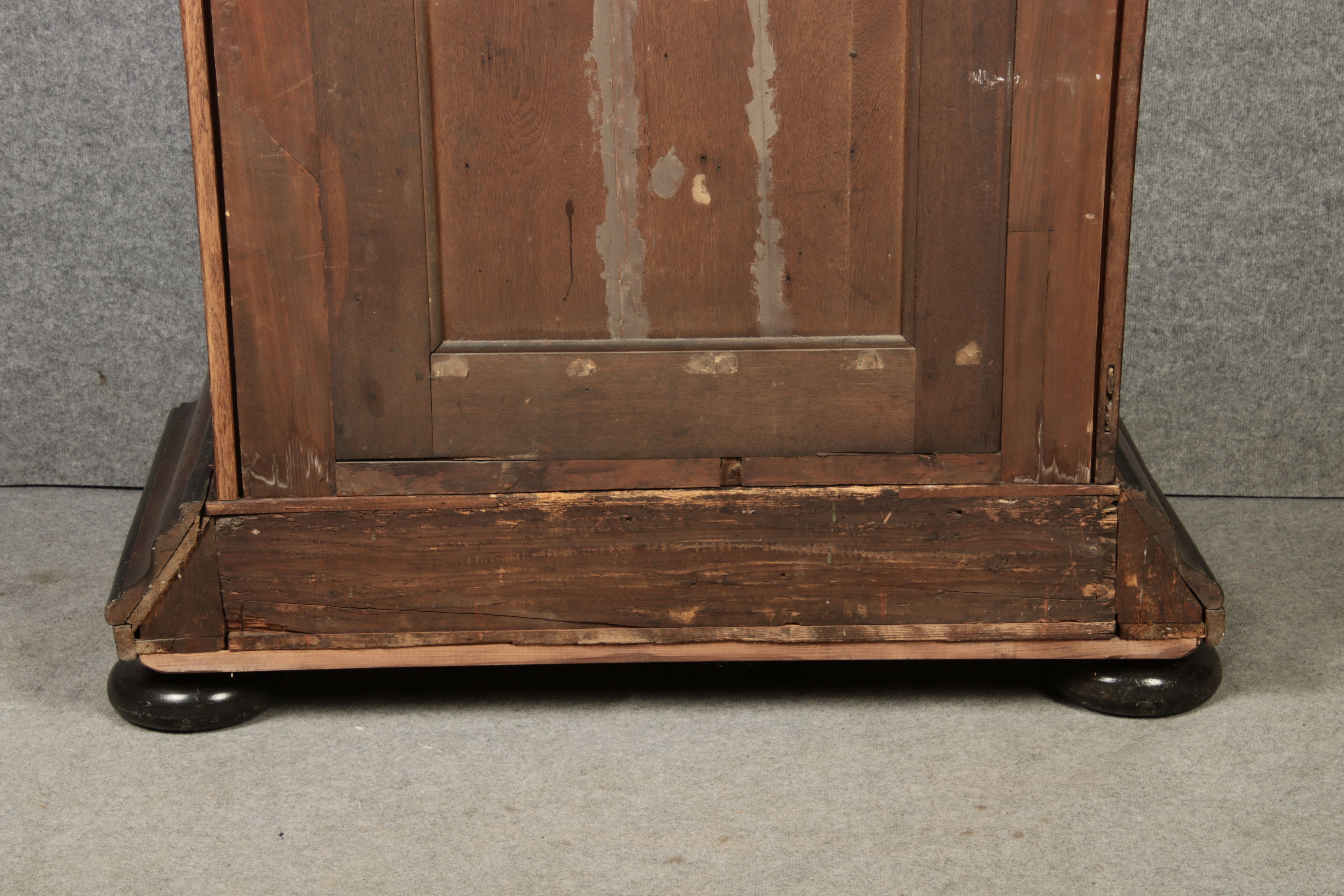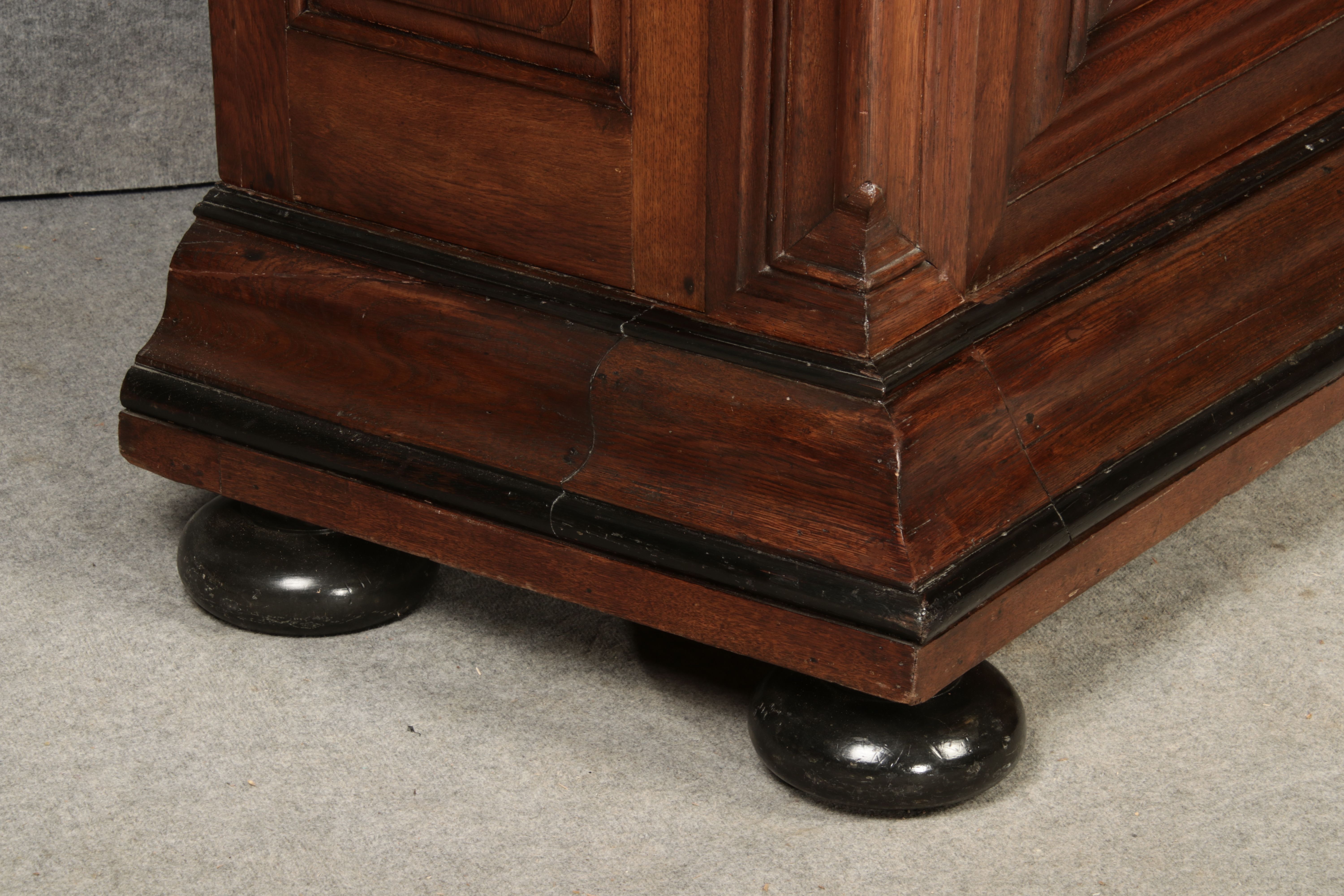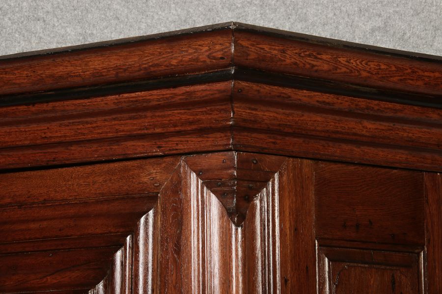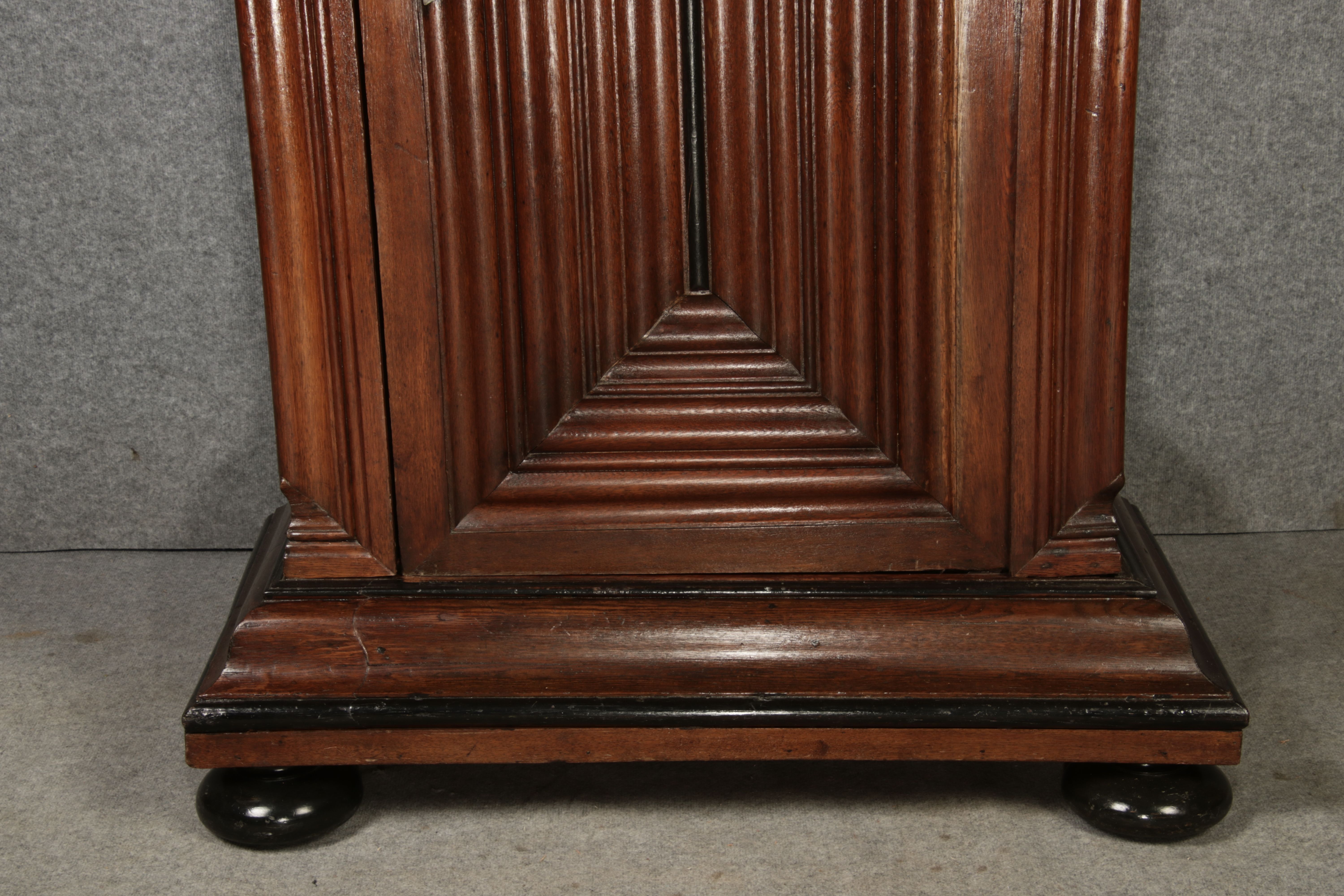 Masse/dimensions: Höhe/Height ca. 215,5 cm, Breite Korpus/Broad Boda ca. 103 cm, Breite Gesims/Broad cornice ca. 132 cm, Tiefe Korpus/Deep body ca. 60 cm, Tiefe Gesims/Deep cornice ca. 75 cm,
