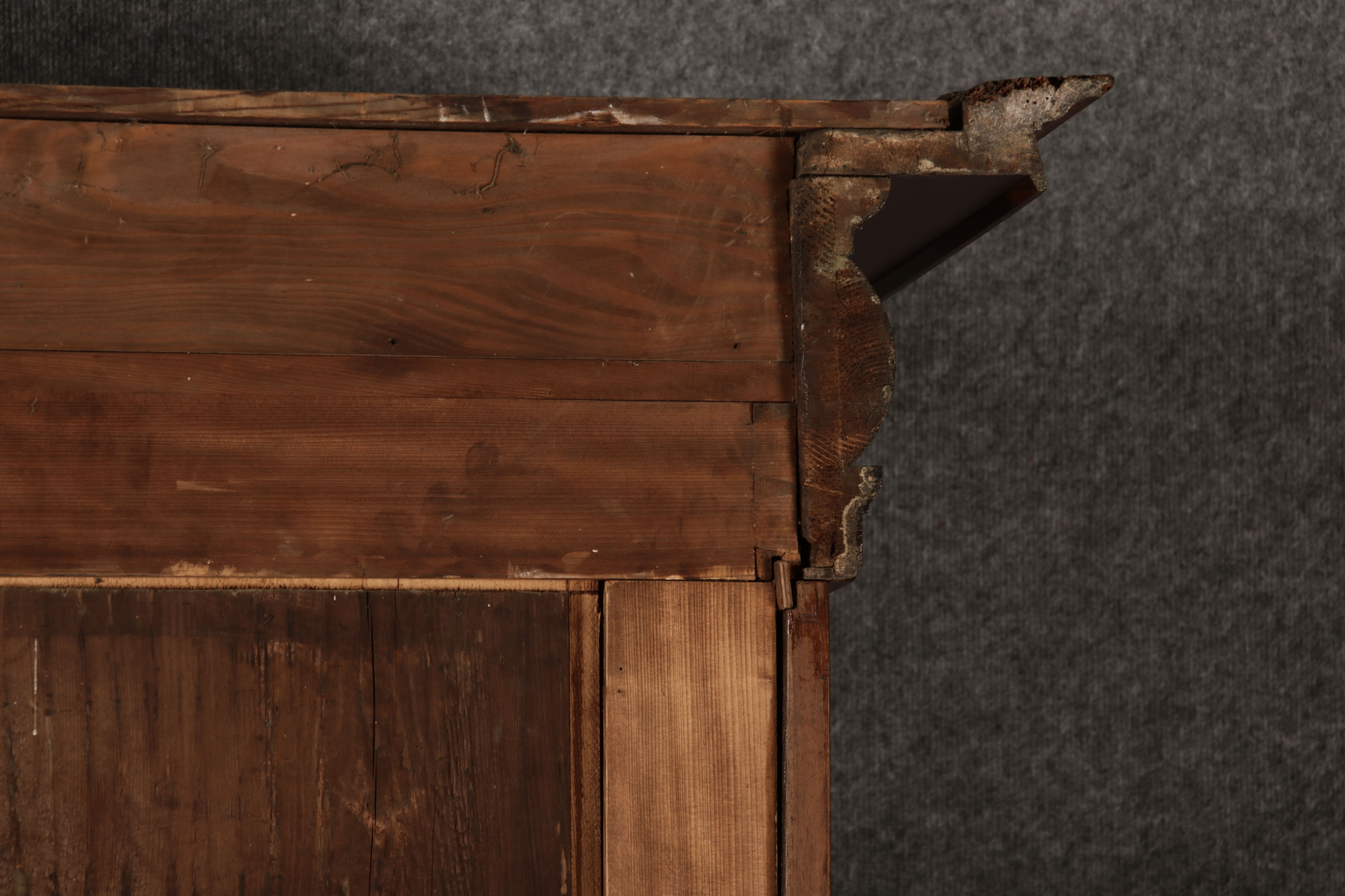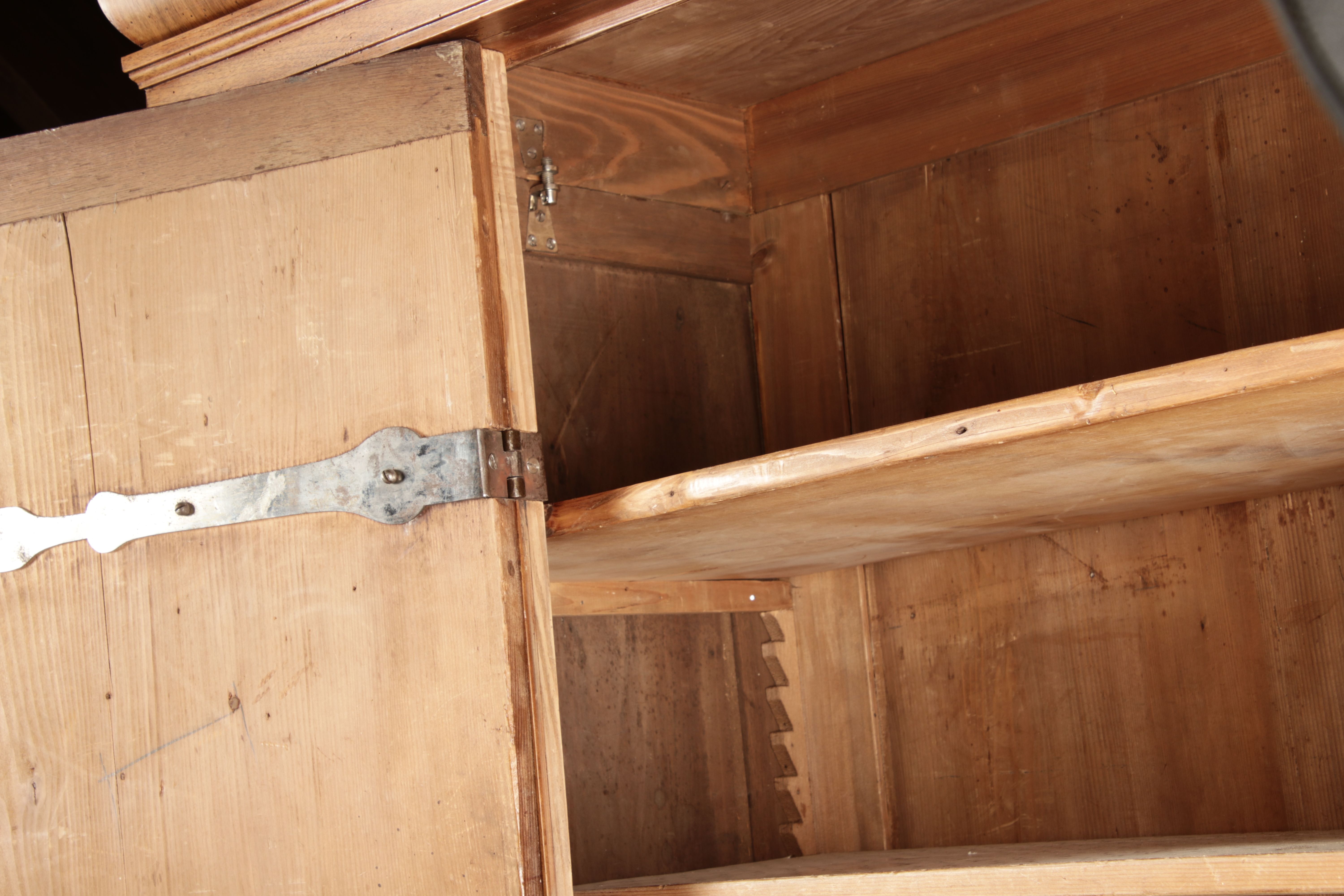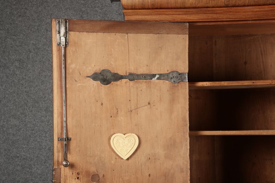 Masse/dimensions: Höhe/Height ca. 237 cm, Breite Korpus/Broad Boda ca. 191 cm, Breite Gesims/Broad cornice ca. 223 cm, Tiefe Korpus/Deep body ca. 57 cm, Tiefe Gesims/Deep cornice ca. 75 cm,