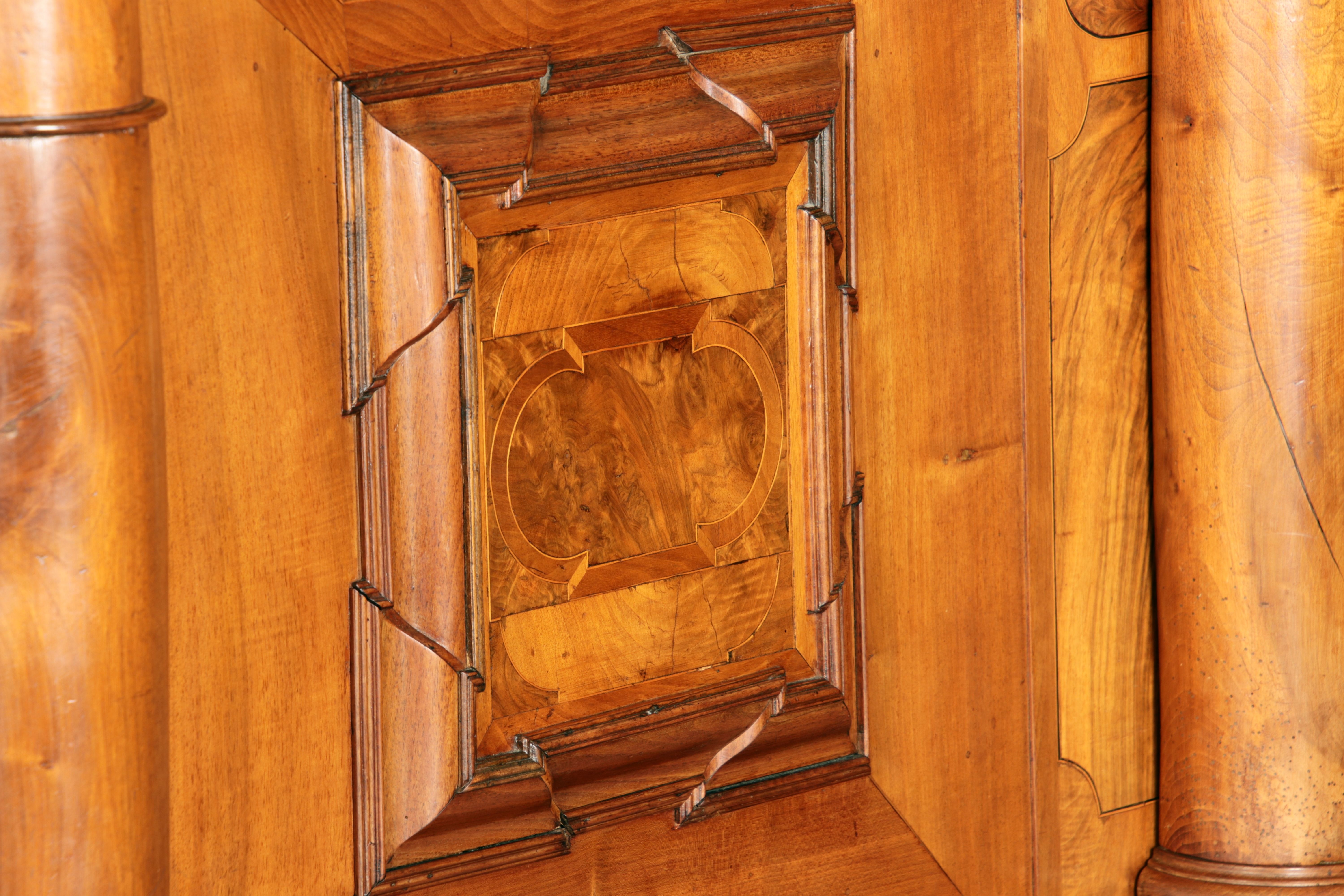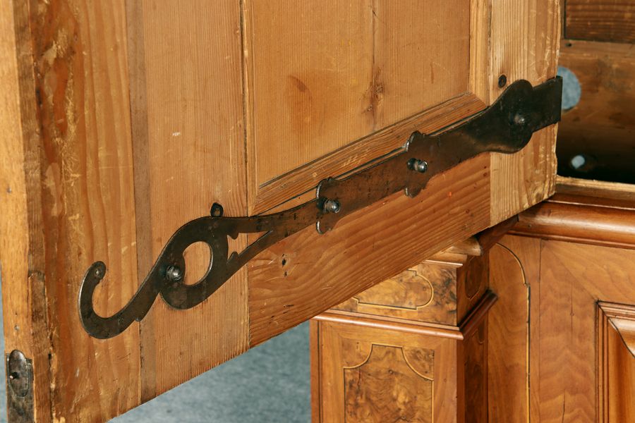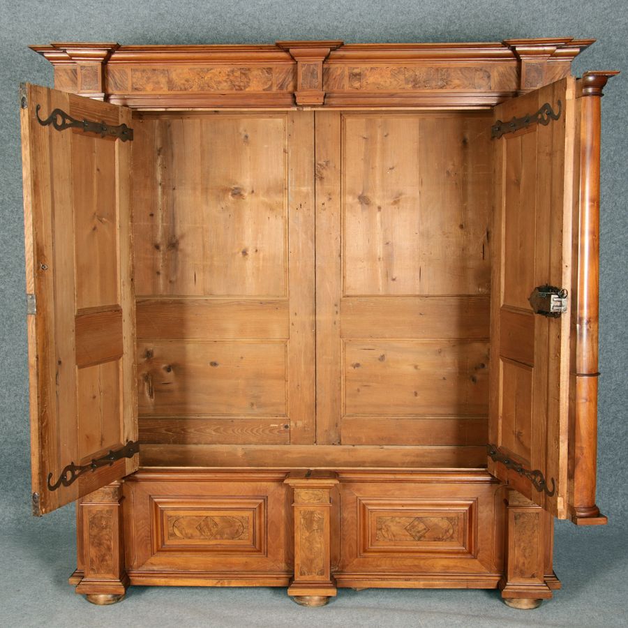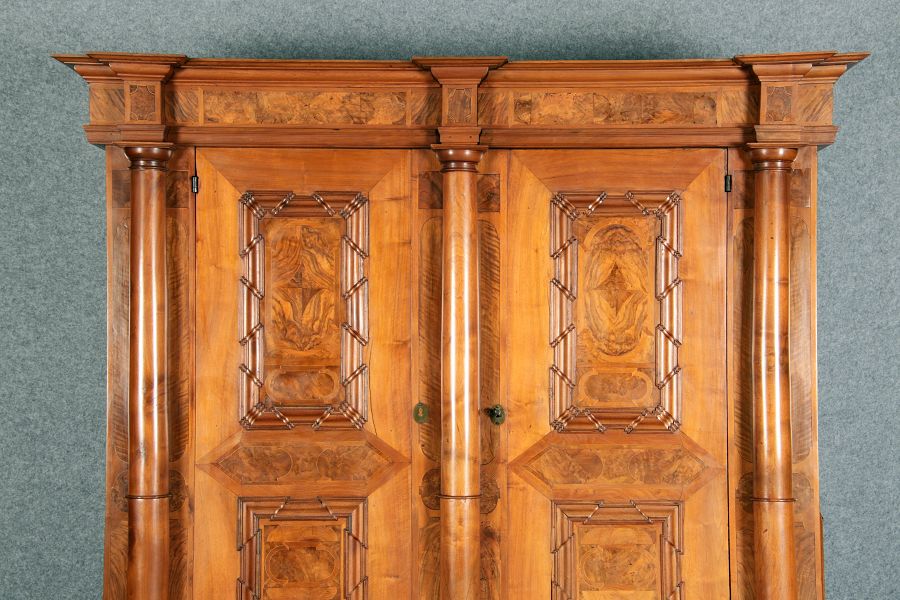 Großer Basler Barockschrank um 1720, Nussbaum furniert