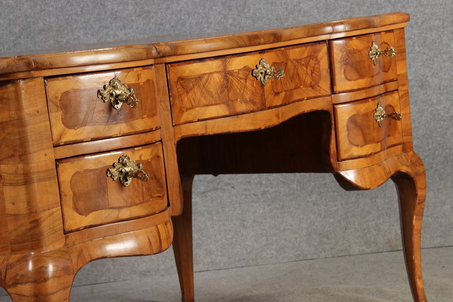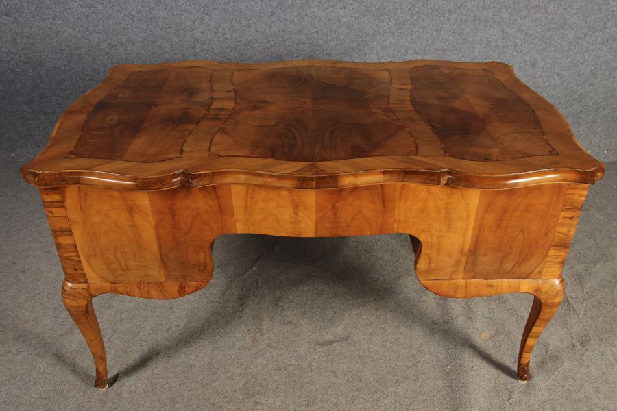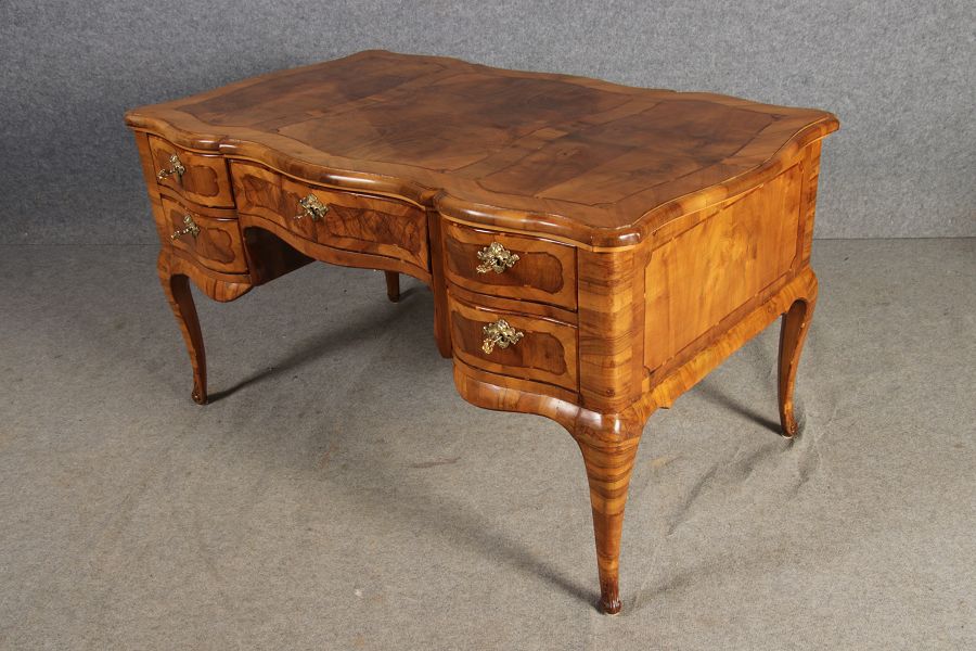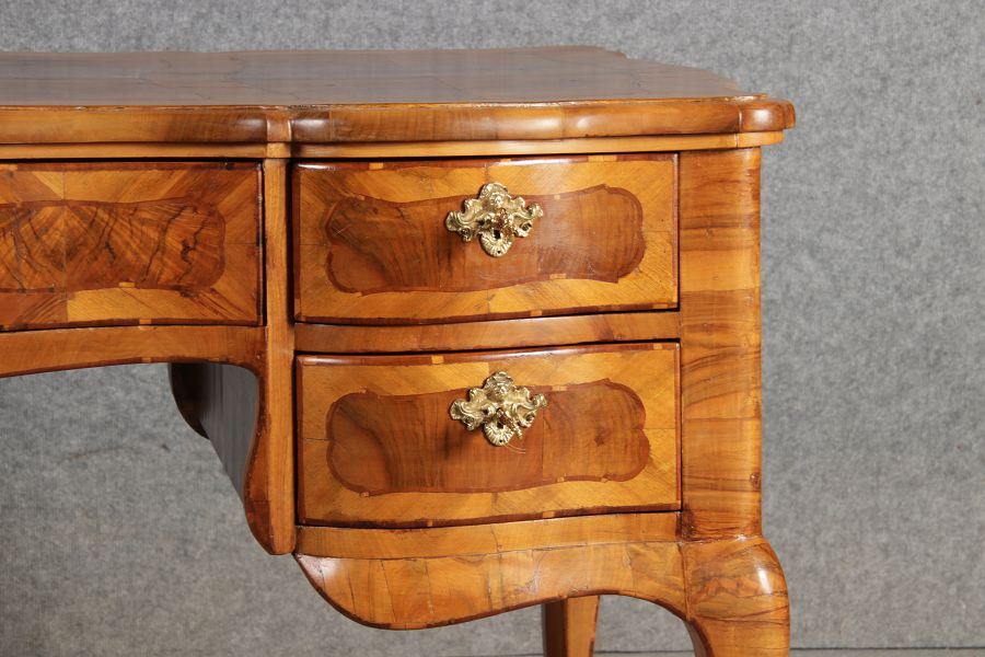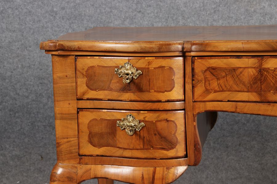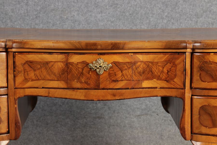 | Antiker Barock Schreibtisch 18 Jh. Nussbaum Intarsien | ||