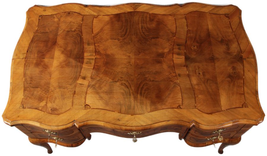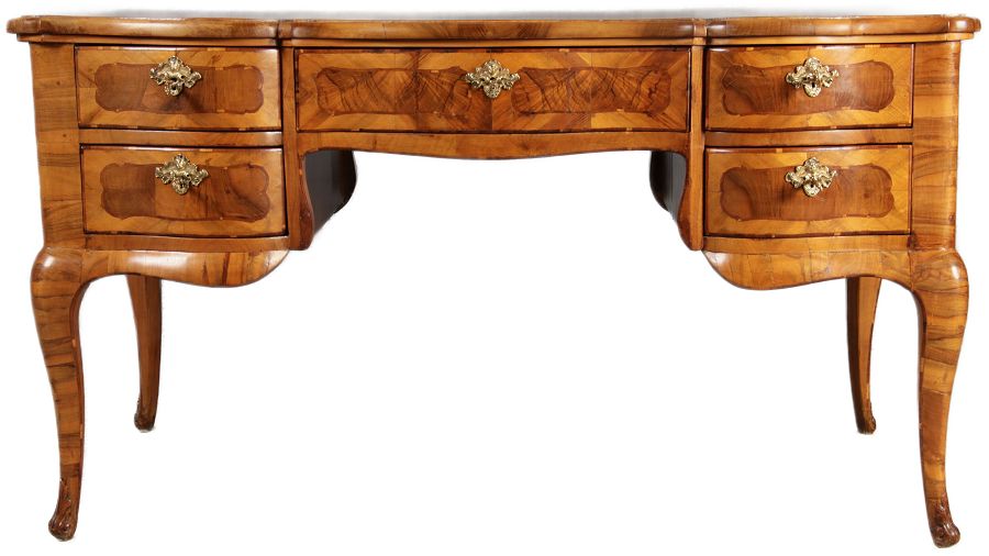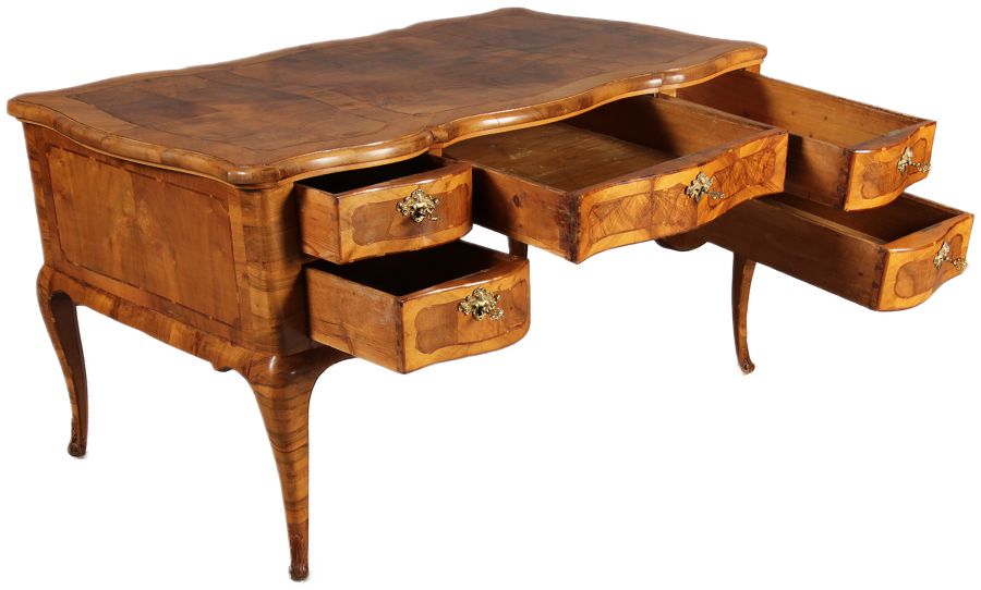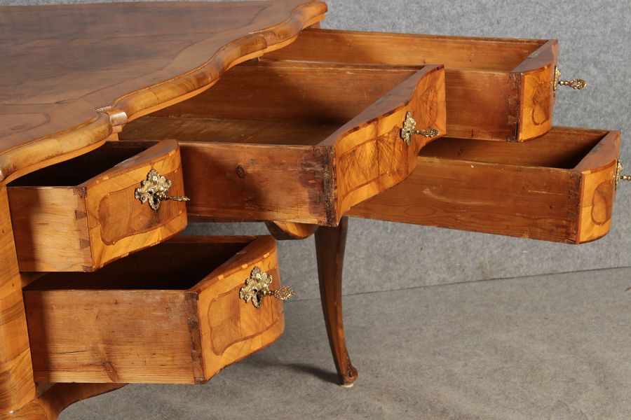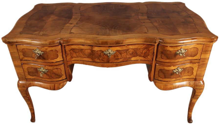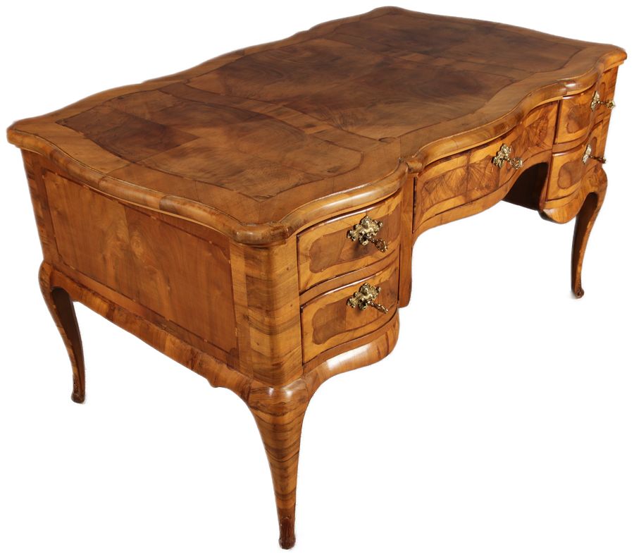 | Antiker Barock Schreibtisch 18 Jh. Nussbaum Intarsien | ||