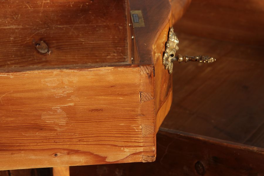 Masse/dimensions: Höhe/Height ca. 79 cm, Breite ca. 142 cm, Tiefe/Deep ca. 85 cm, Schreibplattenhöhe/writing tablet height ca. 79 cm. Holz,
