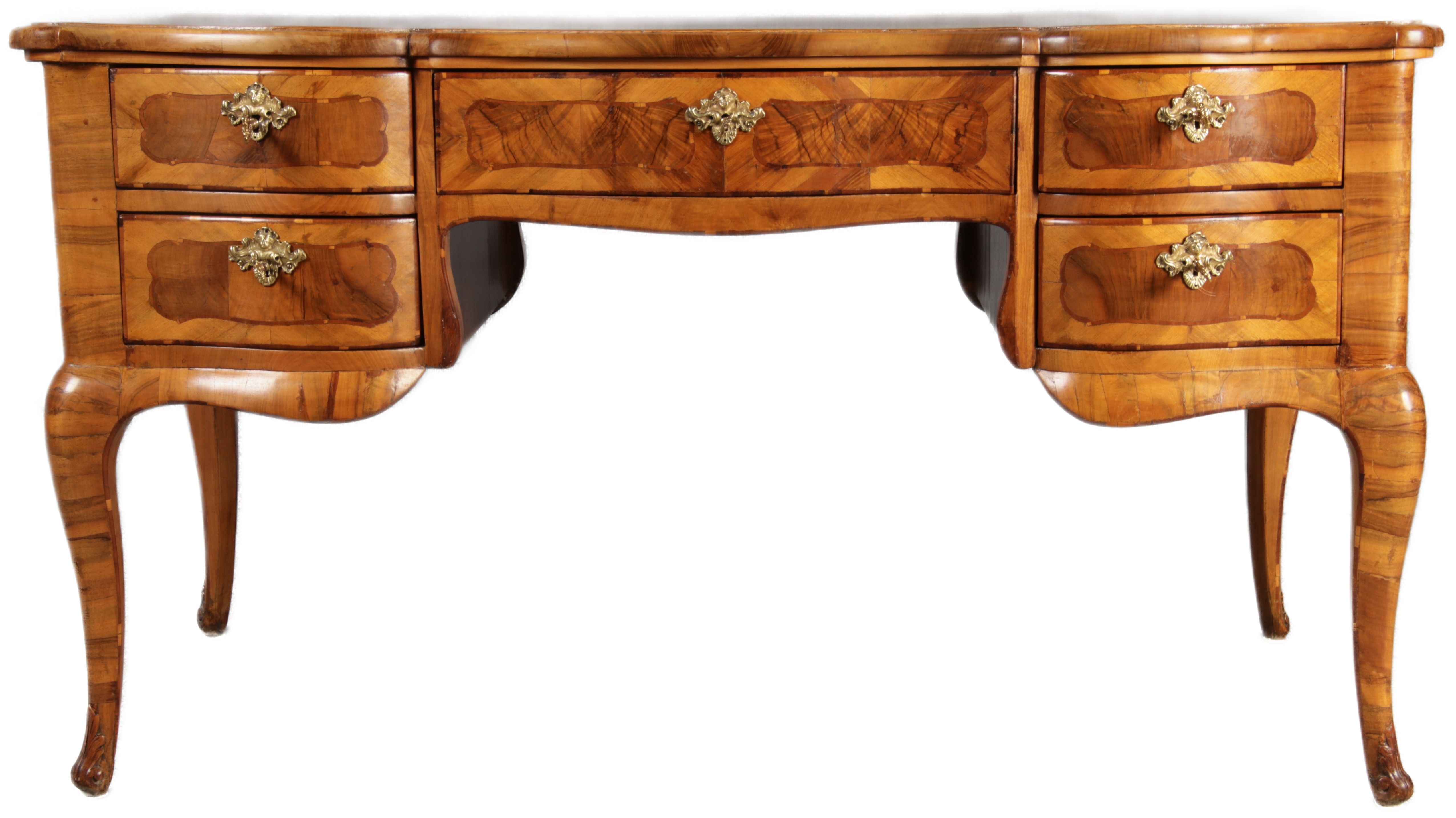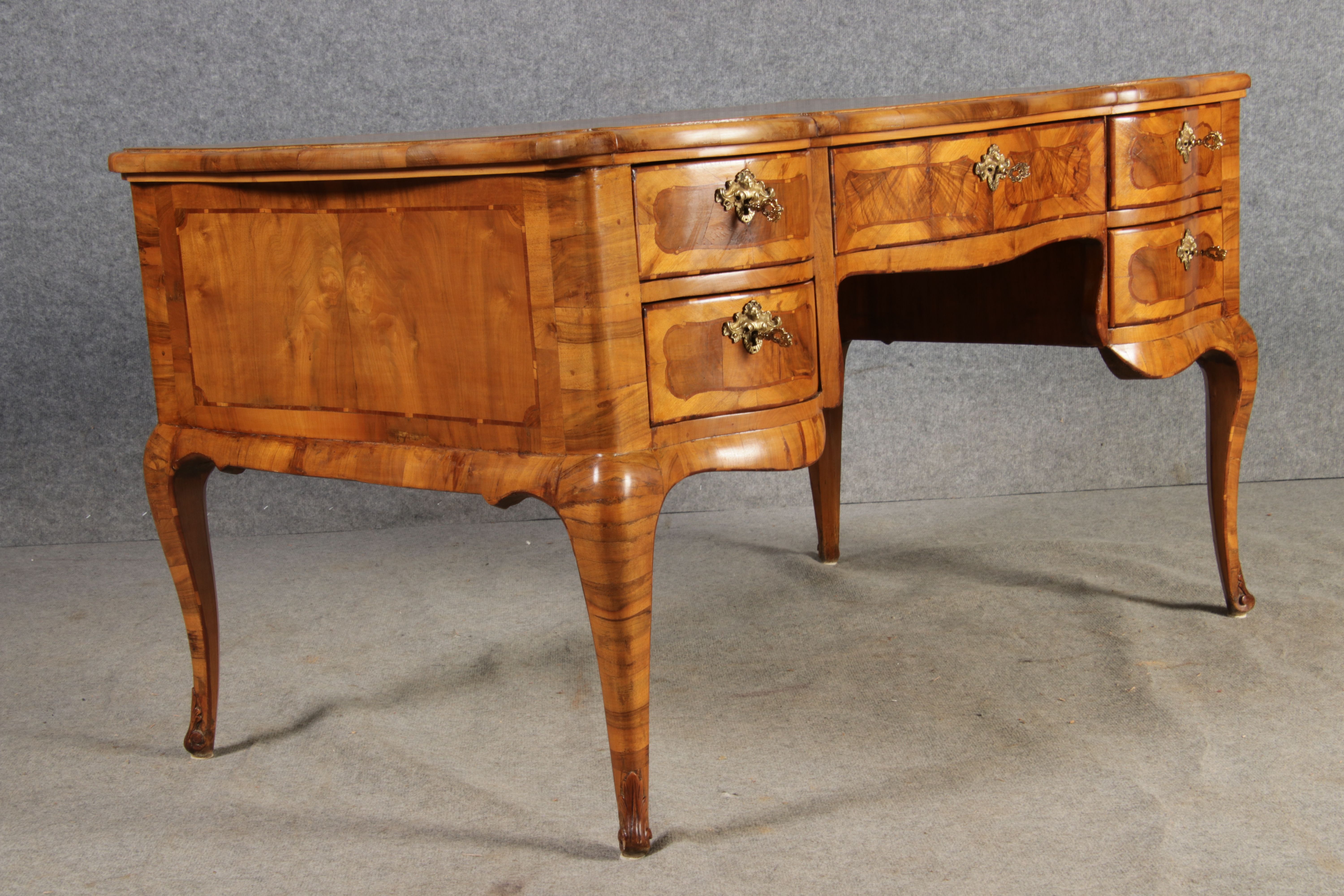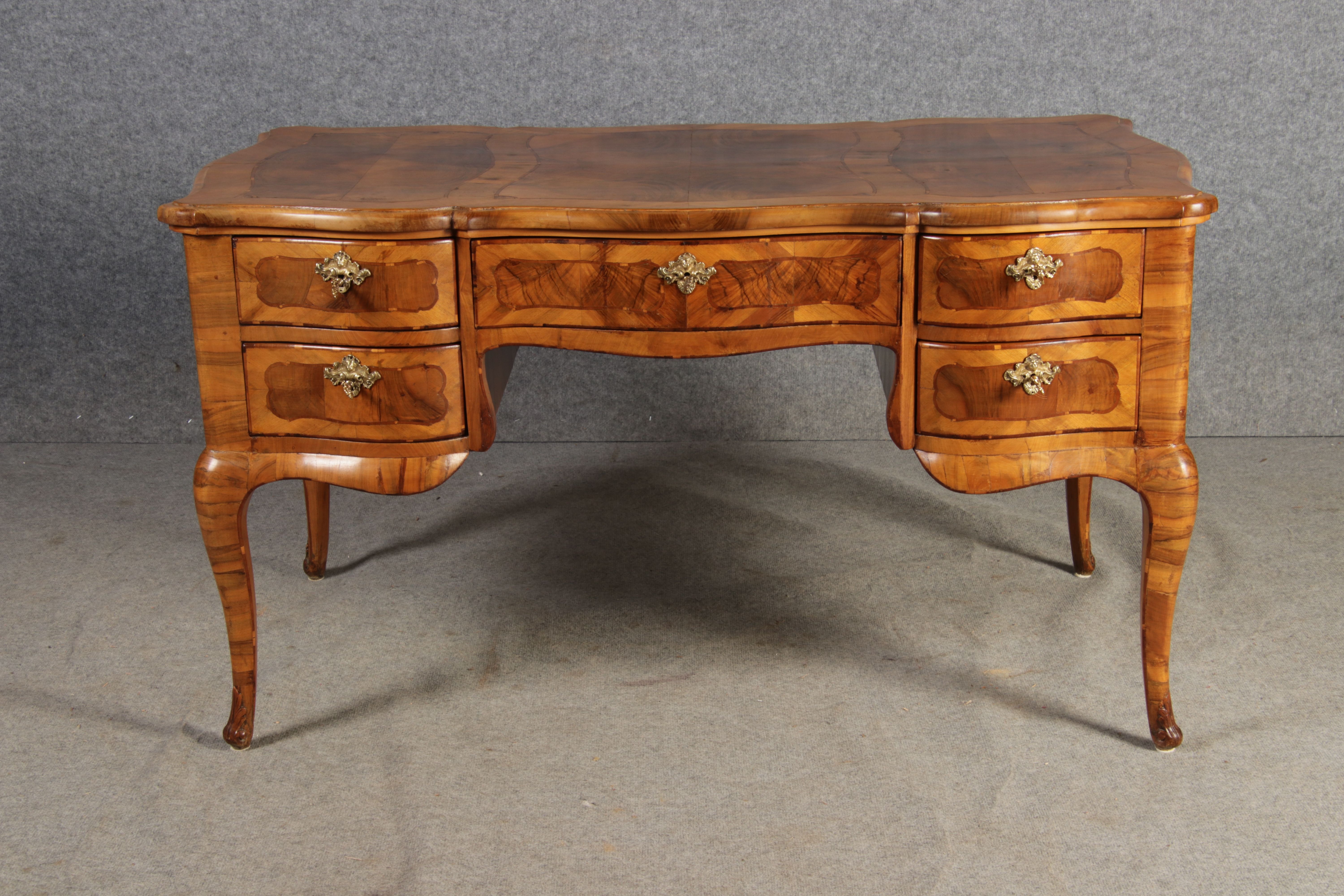 Antiker Barock Schreibtisch 18 Jh. Nussbaum Intarsien |
