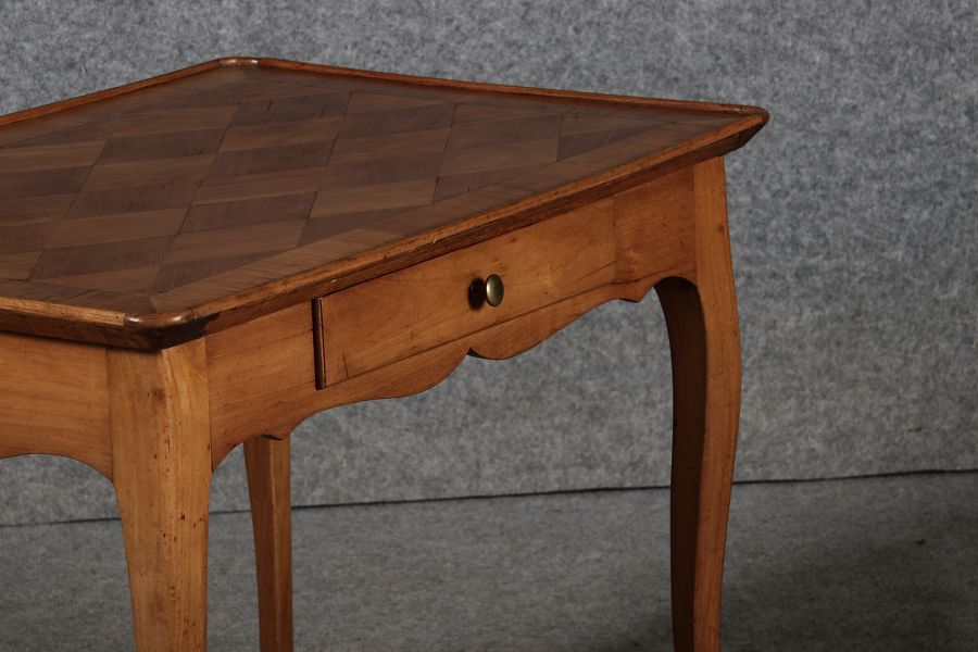 | Antiker Kleiner Damenschreibtisch Beistelltisch um 1760 Nussbaum Rauten Makerterie | ||