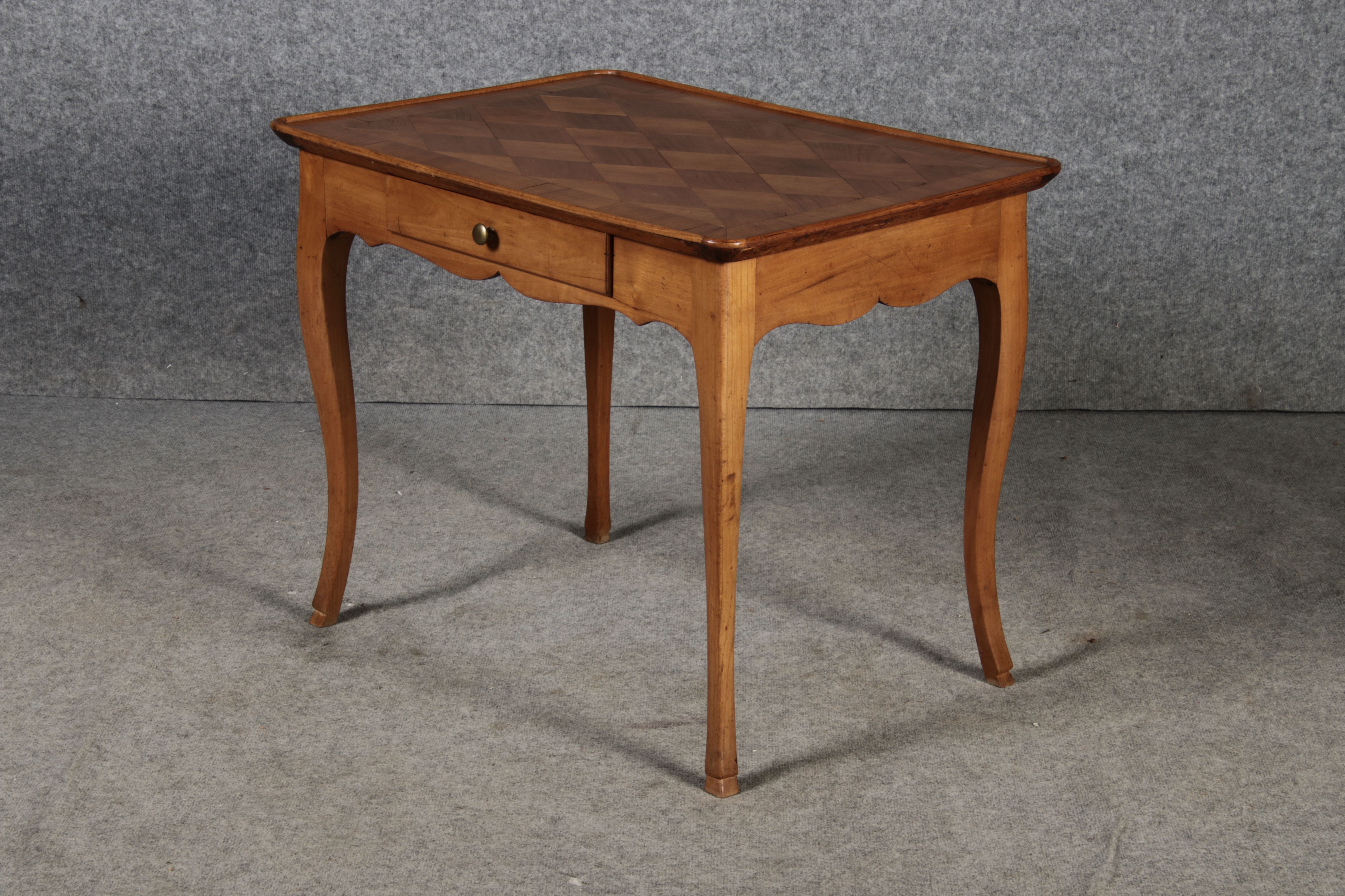 Antiker Kleiner Damenschreibtisch Beistelltisch um 1760 Nussbaum Rauten Makerterie |