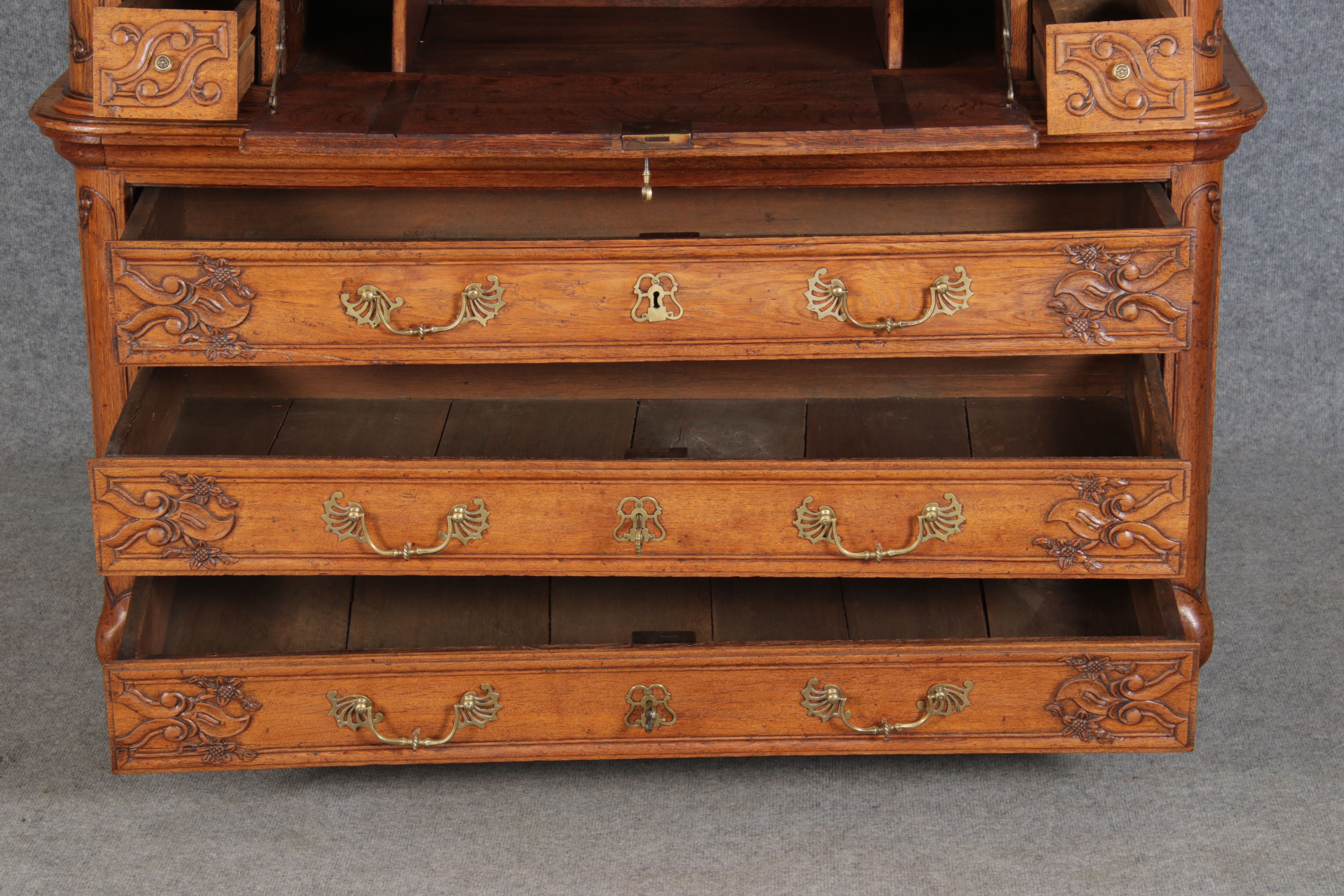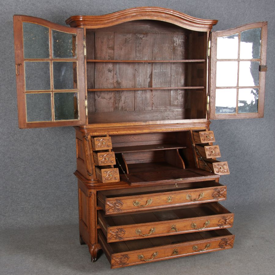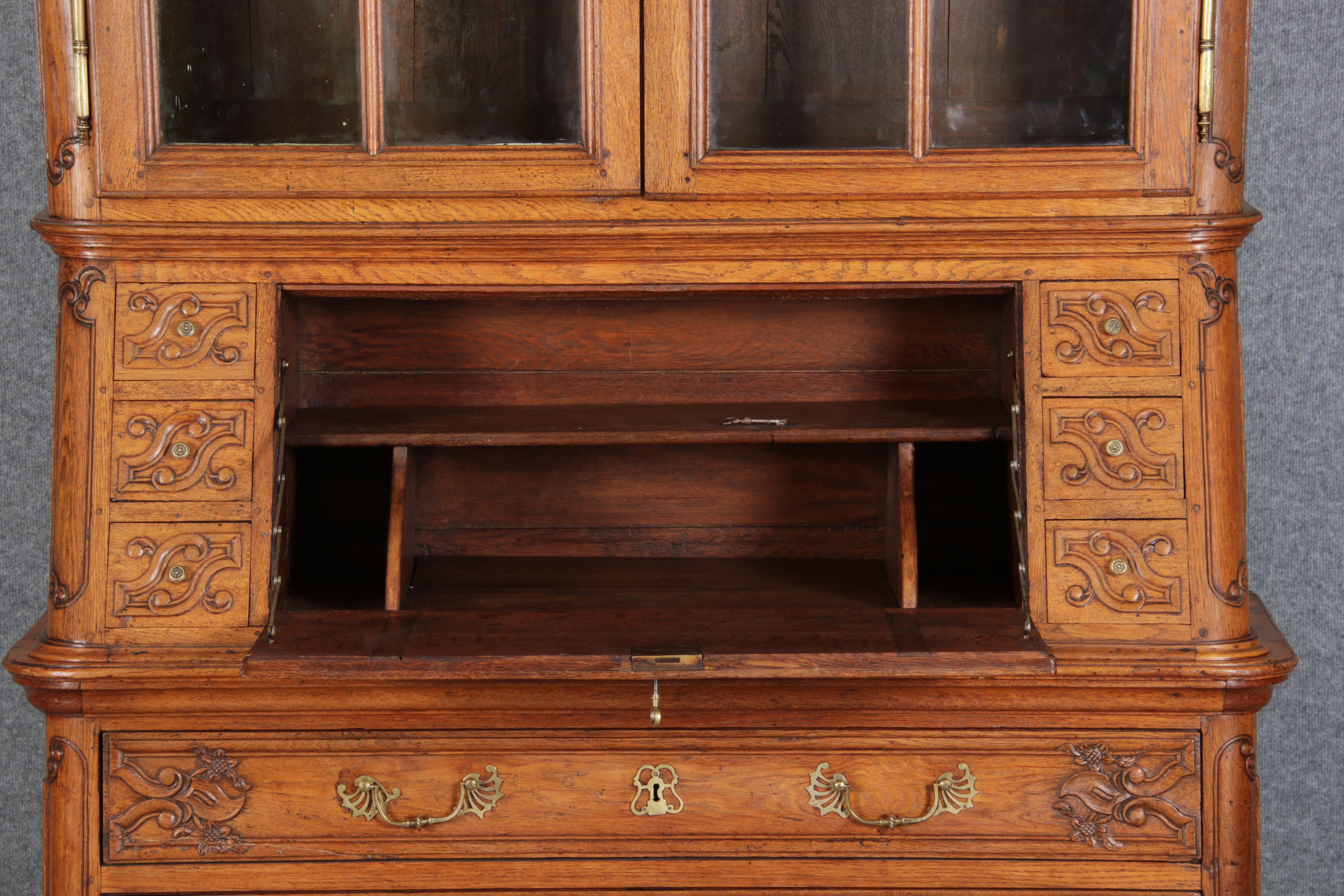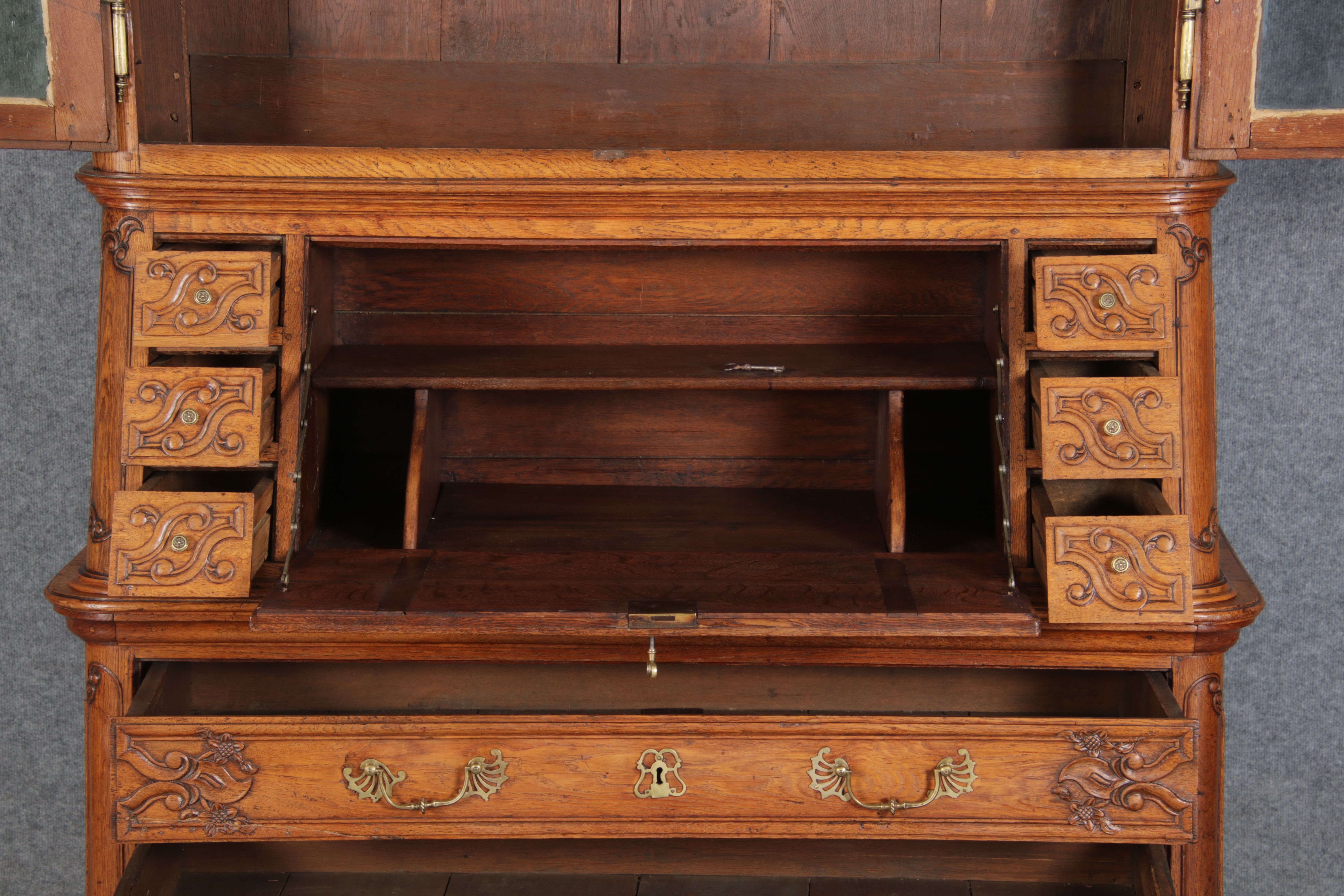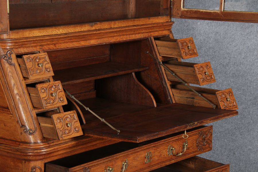 Rokoko Barocksekretär Eiche um 1760 mit Vitrine |